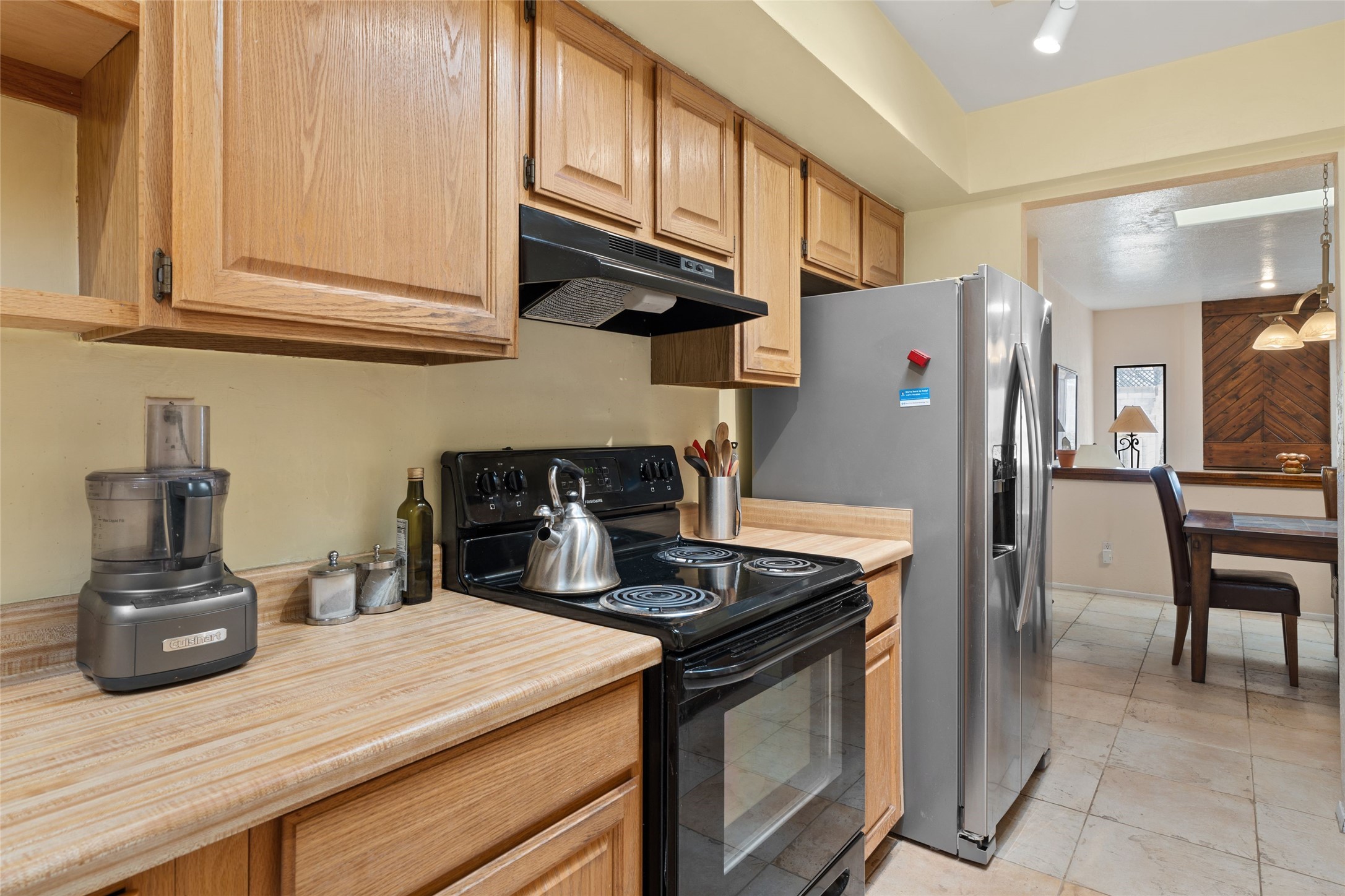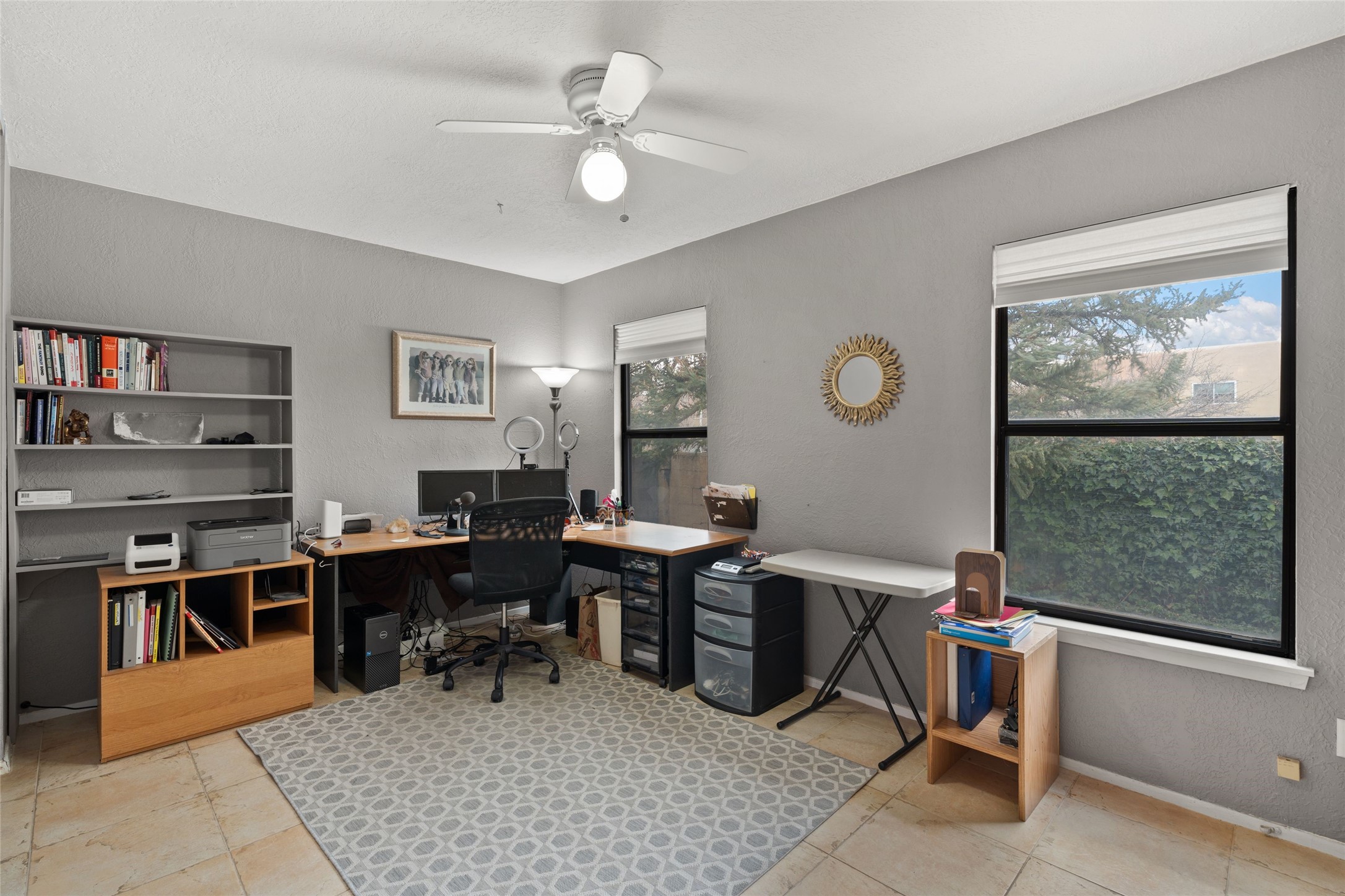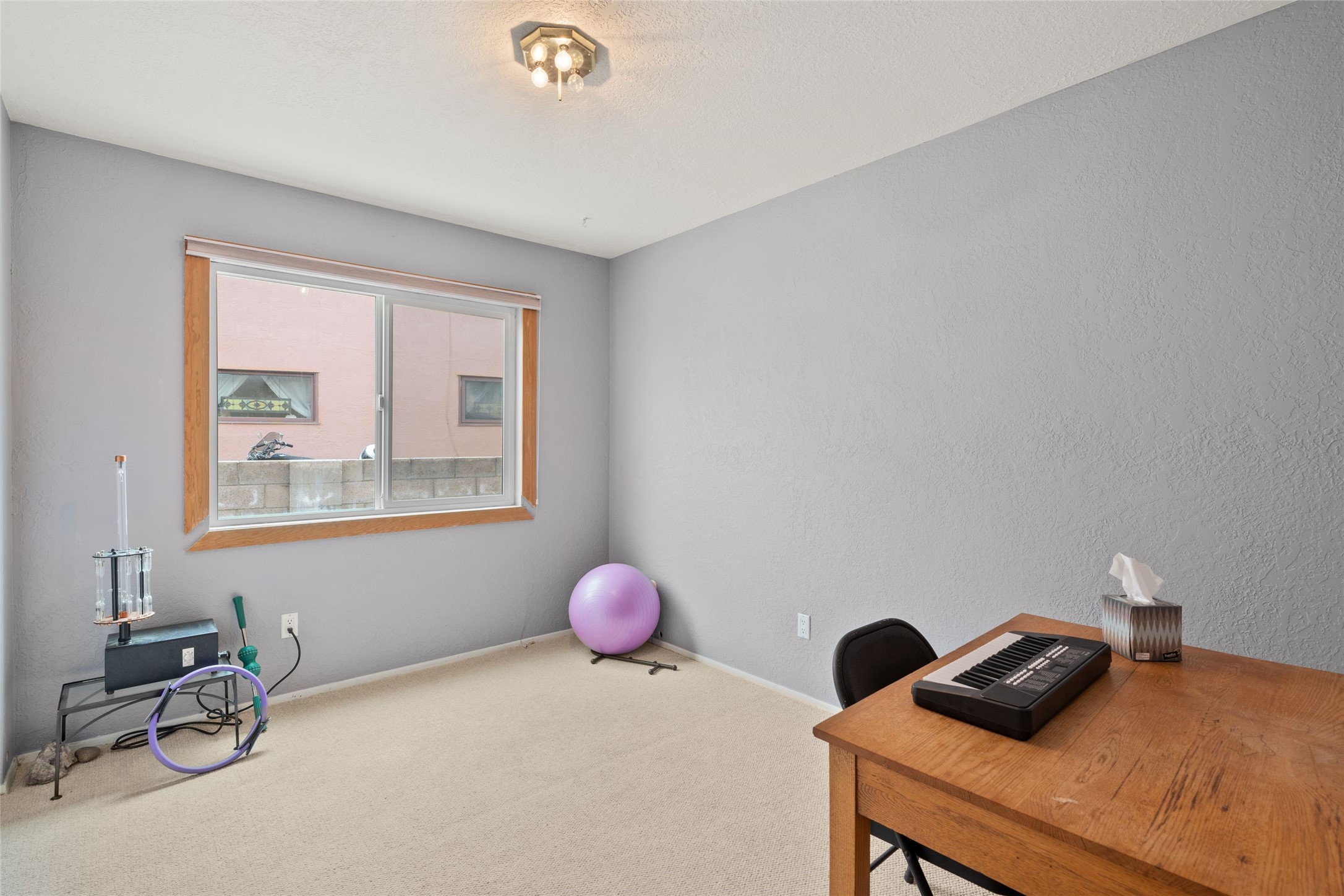 Property is in central Santa Fe location and backs to Ragle Park. Home has an open floor plan with nice dining area. Living space is light and bright with 4 skylights and tile floors. The 3 bedroom, 2 bath home has a one car attached garage. Location is convenient to Chaparral Elementary, Santa Fe High and Milagro Middle School, shopping and services. For commuters; the Zia Rail Runner Train Station is near; as is St. Francis Drive and I-25. New furnace in January of 2025. Front yard boasts the "neighborhood tree", a giant Colorado Spruce. Back yard is ready for your new garden ideas. Covered portal/patio awaits its new owner and guests. An enjoyable Santa Fe location to call home, raise your family or enjoy retirement. No HOA.