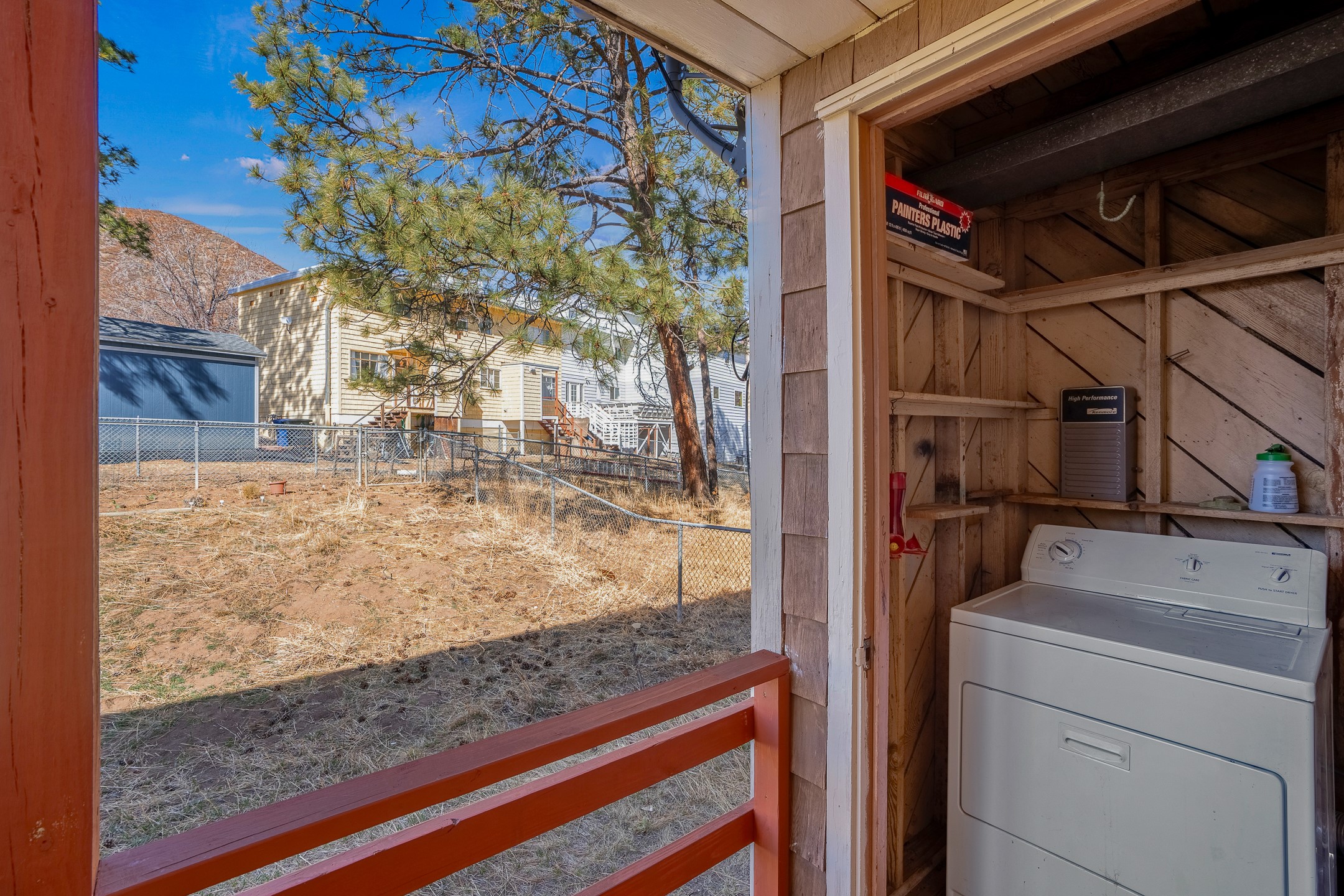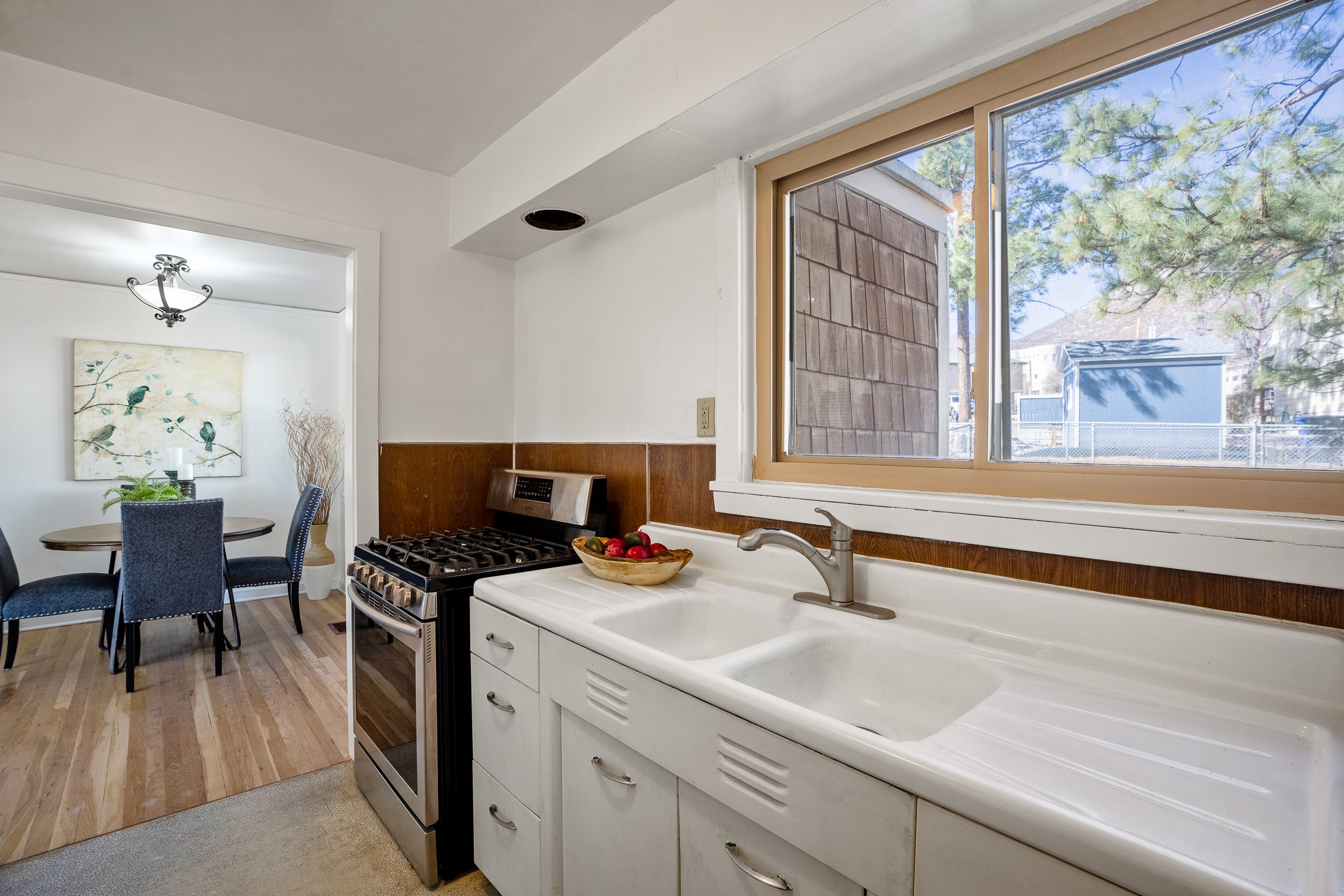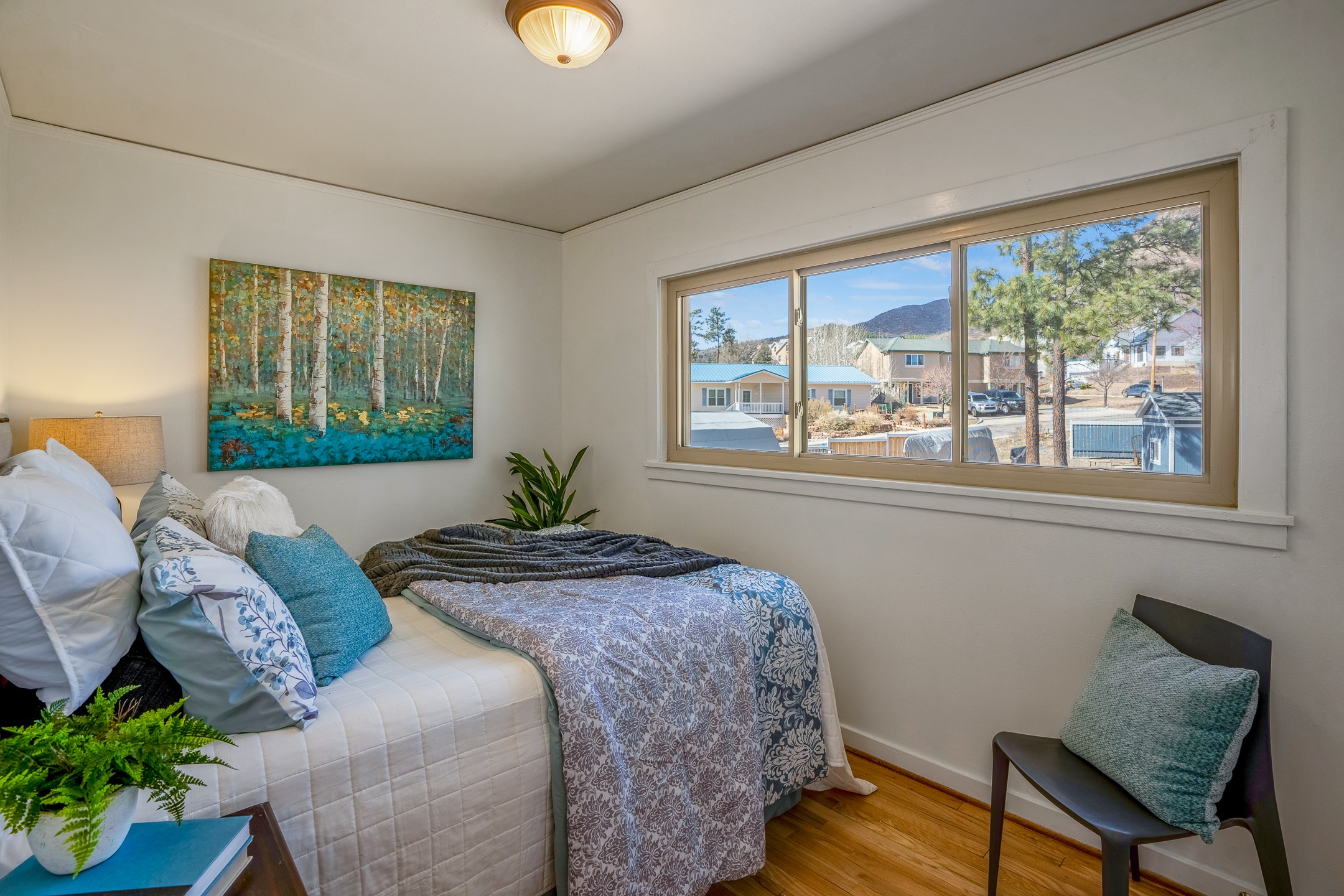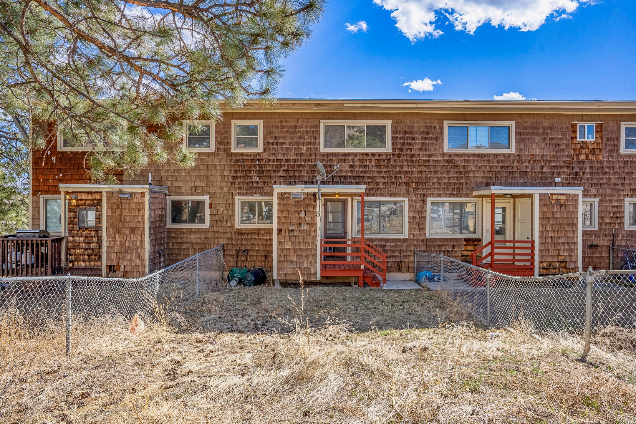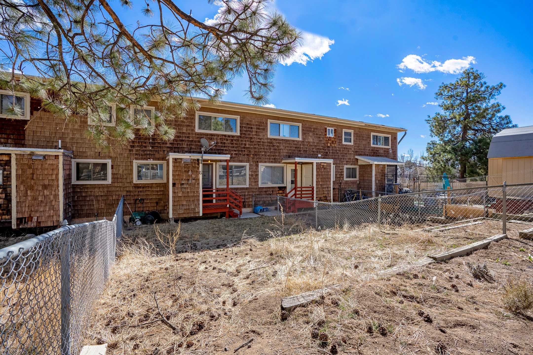 Affordable Quad, 3 Bedrooms, Fenced Yard, Refinished Hardwood Floors, Fresh Paint, Abundant Natural Light, Great Views of the Sangres, and More! Welcome to 2439-C 46th Street! As you enter this property, you are greeted by a wall of east-facing windows and a comfortable living room with refinished hardwood floors. The dining room features built-in cabinets and a west-facing window that provides great sunset views. This unit has a galley-style kitchen with white cabinets, a gas stove, and views of the backyard. Upstairs, you'll find three bedrooms and a full bathroom. Each spacious bedroom features large windows, refinished floors, and a closet, and both east-facing bedrooms have great views of the Sangre de Cristos to enjoy the sunrise. The bathroom has a new vanity and toilet and updated shower tile. Outside, you will find a fully-fenced backyard with a tiered landscape ready for your four-legged friends. Schedule your showing today to see all that this condo has to offer!