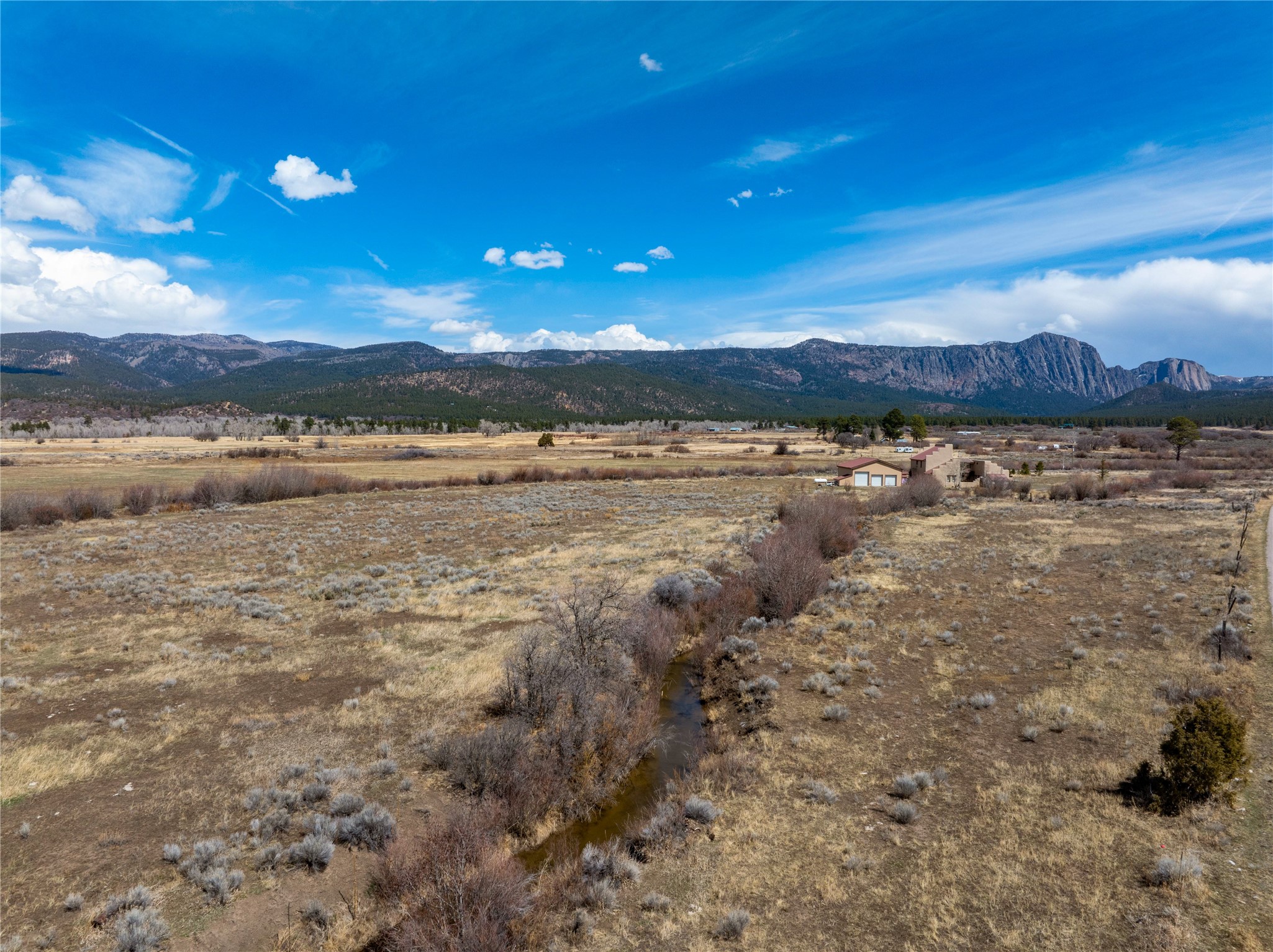 Lovely, versatile and flat parcel that's rich with history, beauty and spectacular views of the Brazos Cliffs all with easy access from paved County Road 328. What's unique is that two acequias run across this enchanting piece of land, with precious adjudicated water rights to the southerly Ensenada ditch, which was estimated to have been hand dug in the 1700's. This acequia is beautiful and is more like a country stream. Blue heron fish for trout from these waters. Parcel is flanked by residential and agricultural properties providing many options. Rio Arriba County: "CRAD Zoning allows for traditional agriculture, and single family homes with appurtenant structures". Confirm with the county for these and other permitted uses. Lot is mostly fenced with no thickets of trees to clear. Just 20 Minutes to Chama and Heron Lake State Park and 28 min. to El Vado Lake. COPY AND PASTE INTO GOOGLE MAPS FOR LOCATION: 3643'43.7"N 10630'40.3"W. See plat in documents with the subject property, Lot 27-D.