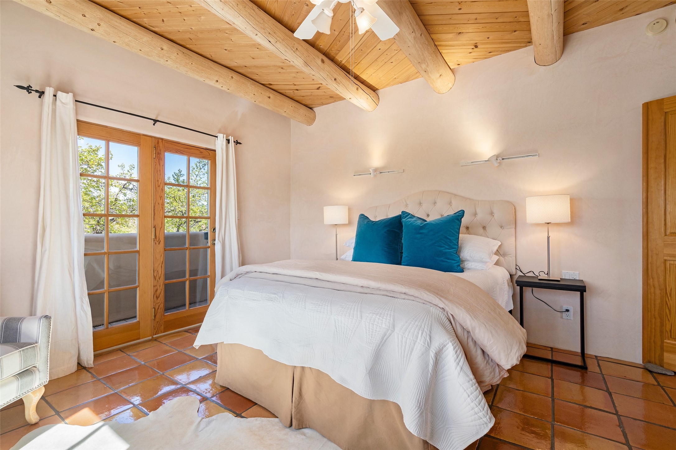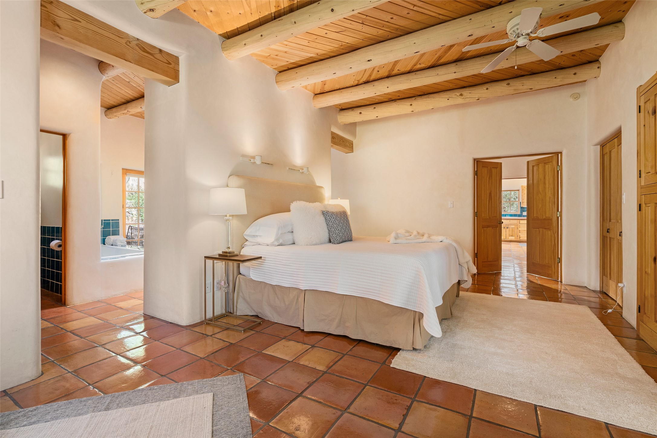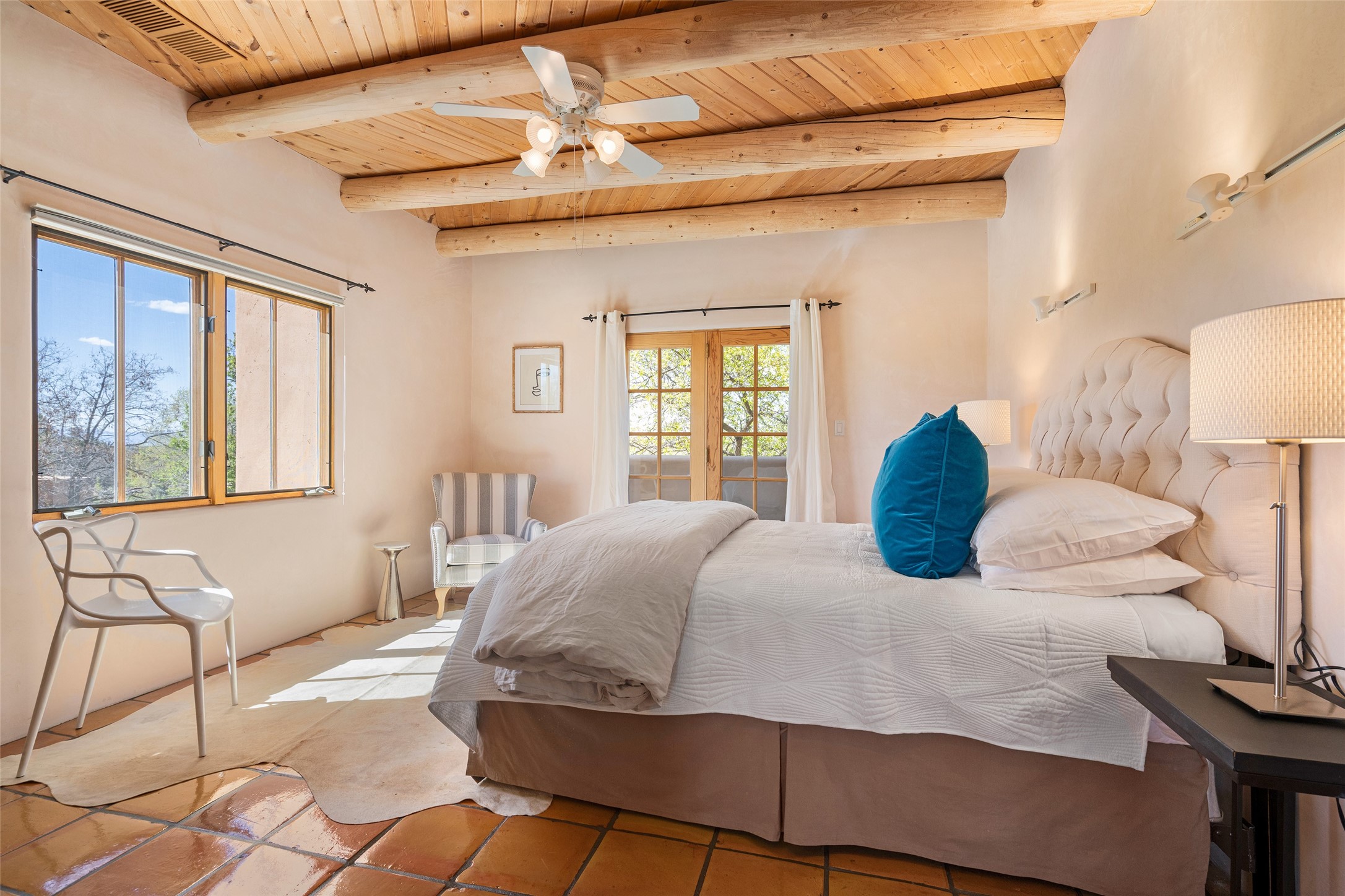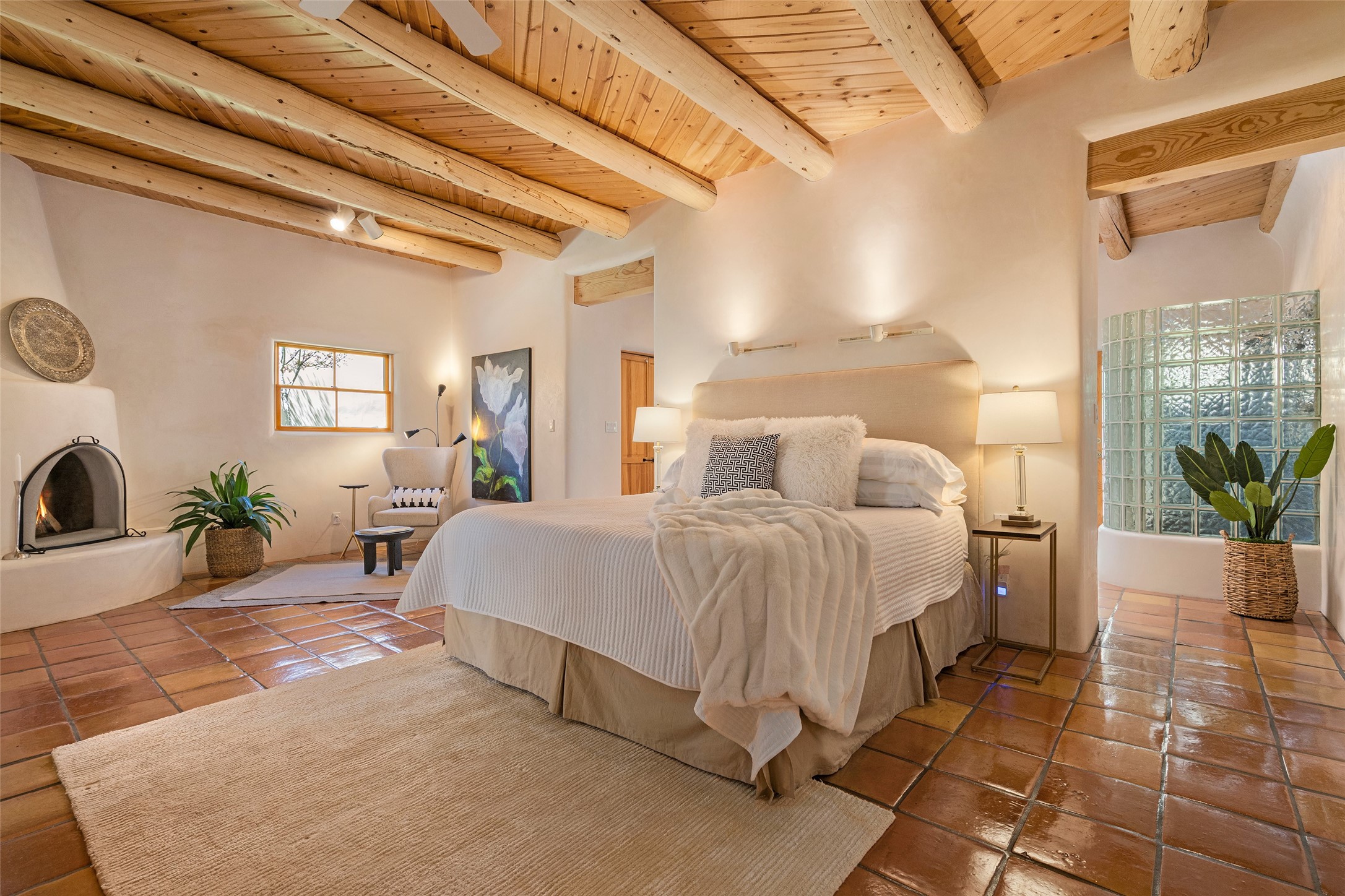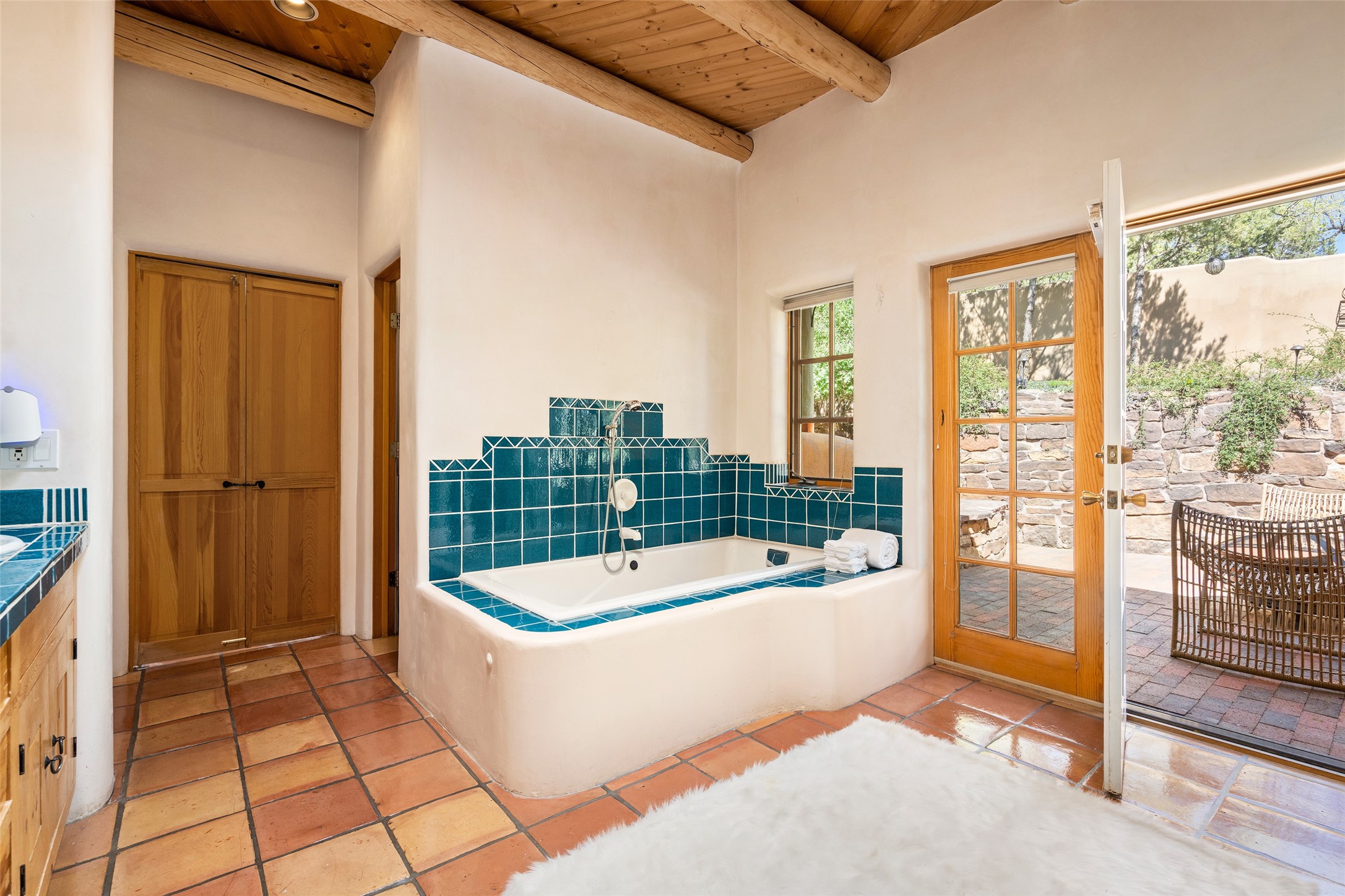 SECLUDED AT THE VERY END OF A LANE OFF GARCIA STREET THIS EASTSIDE SANTA FE HOME WITH AUTHENTIC CHARM & TIMELESS ELEGANCE HAS PHENOMENAL INDOOR/OUTDOOR ENTERTAINING SPACES COUPLED WITH A GARAGE AND PLENTY OF PRIVATE PARKING SO YOU CAN INVITE YOUR FRIENDS TO COME ENJOY TIME TOGETHER. Nestled in one of Santa Fe's most sought-after neighborhoods, just moments from the historic Plaza, this exceptional Eastside residence offers a blend of traditional Santa Fe style and refined comfort. With approximately 3,298 square feet in the main house and an additional 144 square feet in charming, attached studio, this two-story home is full of warmth, character, and rare privacy. Featuring 3 bedrooms and 4 bathrooms, the home is graced with classic Saltillo tile floors, coved ceiling treatments, and a seamless indoor-outdoor flow that celebrates the region's enchanting climate. The upstairs level offers a private retreat, ideal as a guest suite, complete with its own terrace. Outdoor living shines here - mature landscaping, a soothing water feature, a pergola-shaded grill area for al fresco dining, multiple patios, and second story terraces create the perfect setting for entertaining or quiet relaxation. Inside, both formal and informal dining areas cater to every occasion, while the attached studio offers flexible space for creativity or work. A 2-car garage, generous off-street parking, central heating and cooling, and close proximity to world-class dining, galleries, and cultural landmarks make this a rare Eastside offering. A true sanctuary in the heart of the city, this property captures the essence of Santa Fe living at its finest.