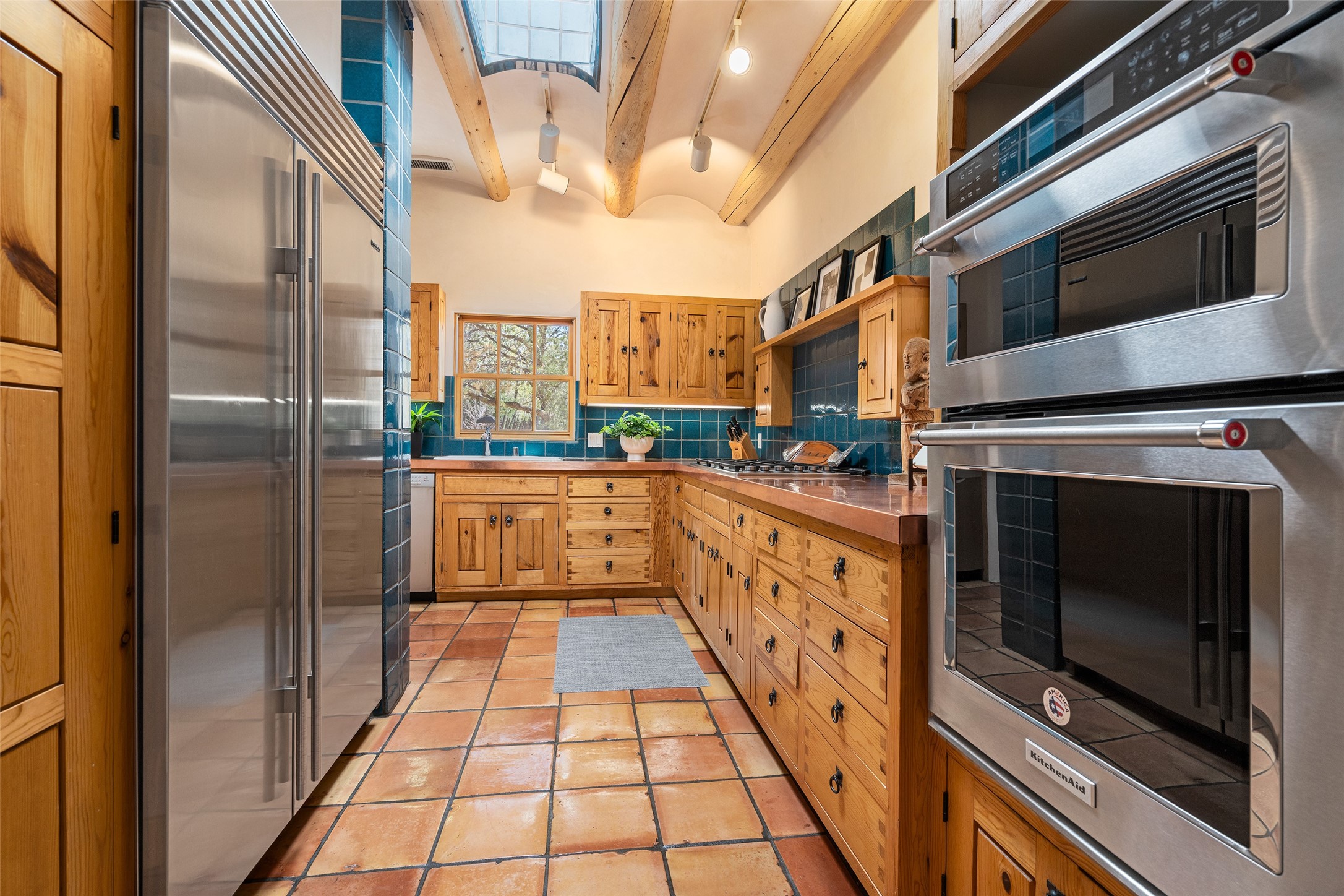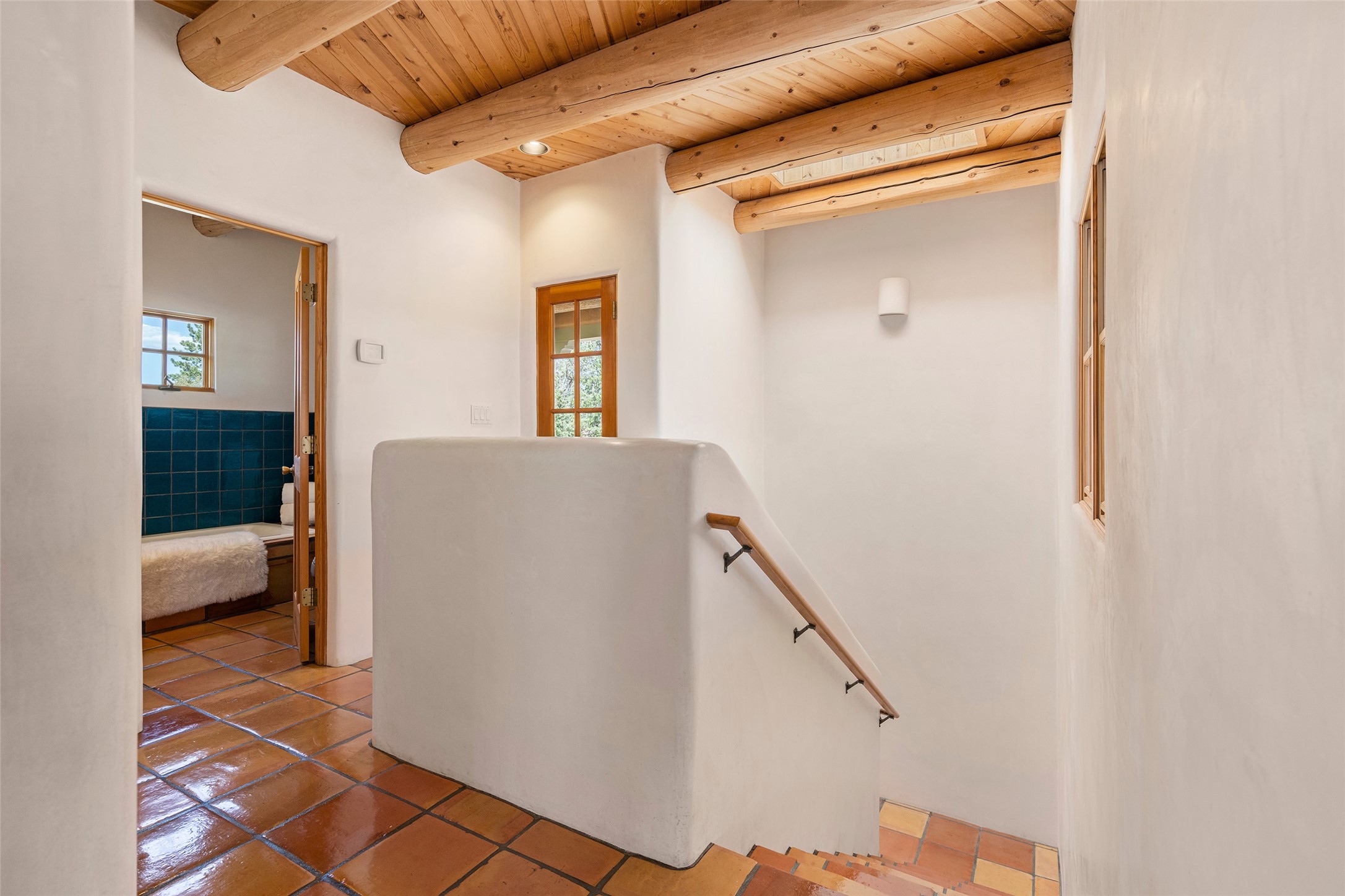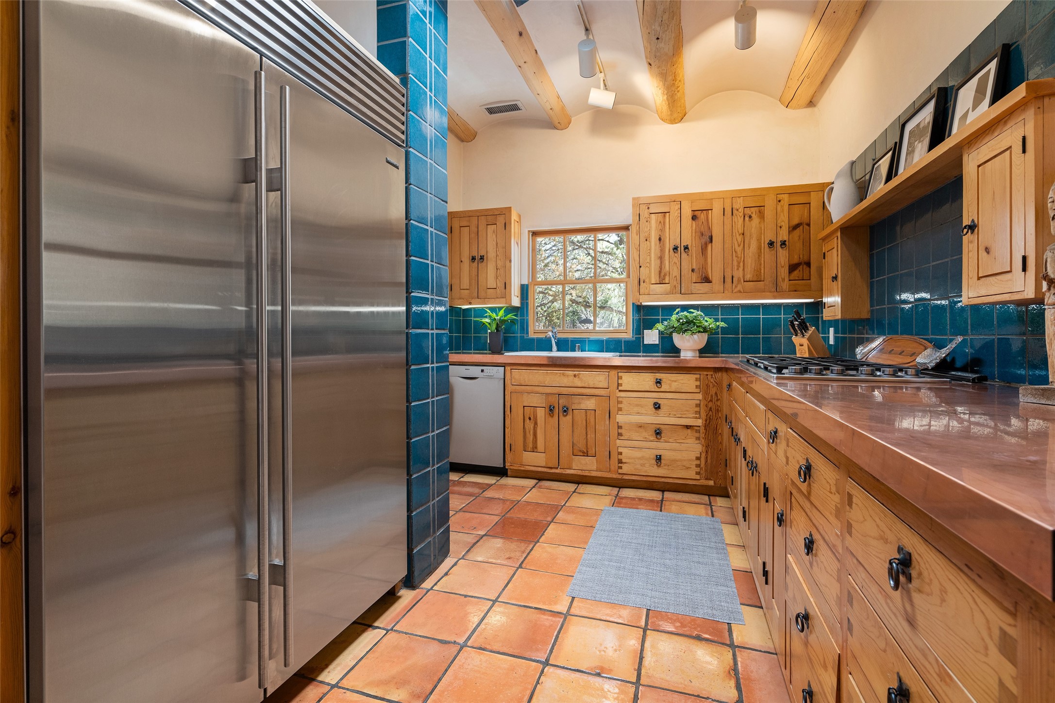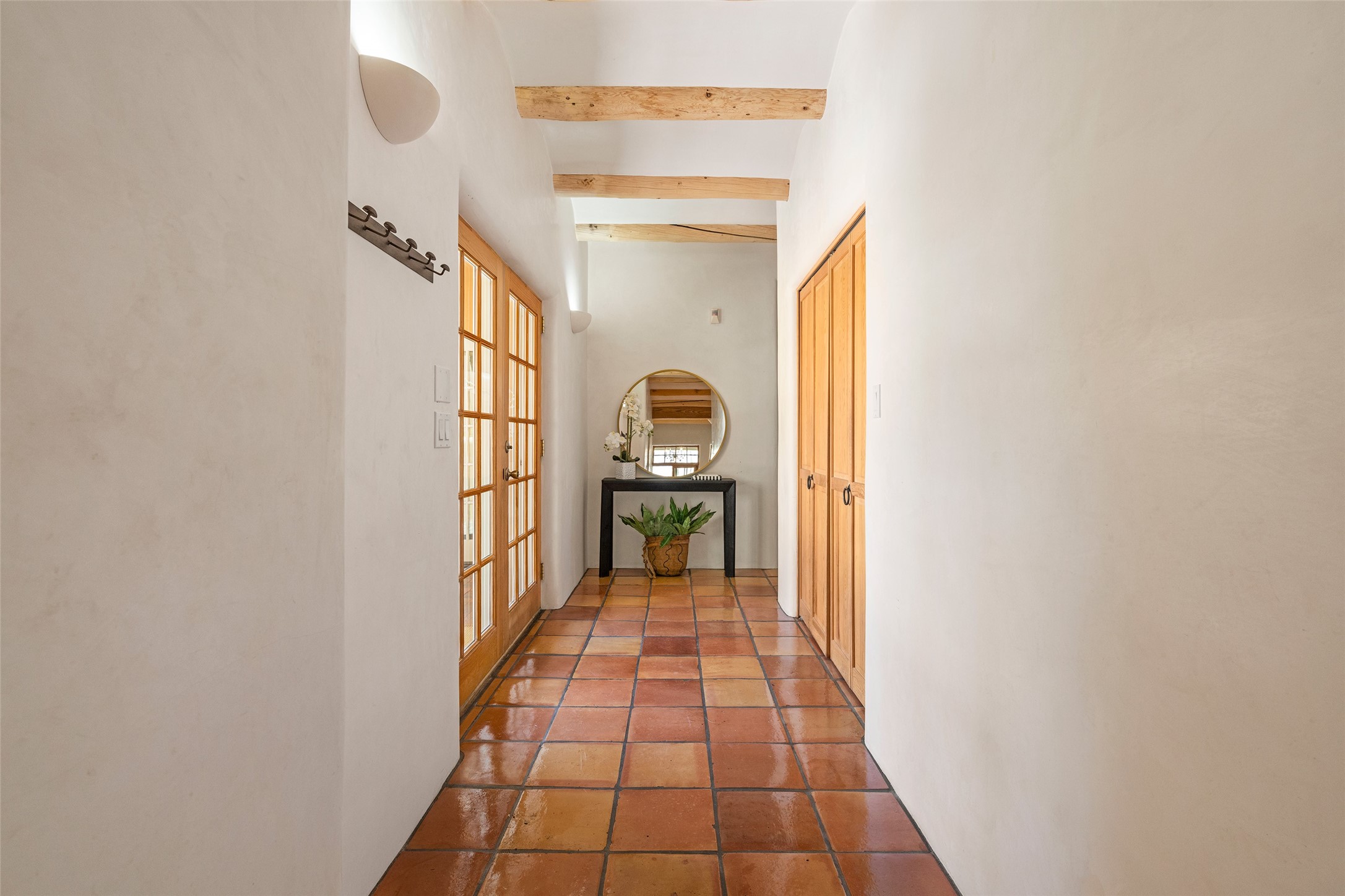 SECLUDED AT THE VERY END OF A LANE OFF GARCIA STREET THIS EASTSIDE SANTA FE HOME WITH AUTHENTIC CHARM & TIMELESS ELEGANCE HAS PHENOMENAL INDOOR/OUTDOOR ENTERTAINING SPACES COUPLED WITH A GARAGE AND PLENTY OF PRIVATE PARKING SO YOU CAN INVITE YOUR FRIENDS TO COME ENJOY TIME TOGETHER. Nestled in one of Santa Fe's most sought-after neighborhoods, just moments from the historic Plaza, this exceptional Eastside residence offers a blend of traditional Santa Fe style and refined comfort. With approximately 3,298 square feet in the main house and an additional 144 square feet in charming, attached studio, this two-story home is full of warmth, character, and rare privacy. Featuring 3 bedrooms and 4 bathrooms, the home is graced with classic Saltillo tile floors, coved ceiling treatments, and a seamless indoor-outdoor flow that celebrates the region's enchanting climate. The upstairs level offers a private retreat, ideal as a guest suite, complete with its own terrace. Outdoor living shines here - mature landscaping, a soothing water feature, a pergola-shaded grill area for al fresco dining, multiple patios, and second story terraces create the perfect setting for entertaining or quiet relaxation. Inside, both formal and informal dining areas cater to every occasion, while the attached studio offers flexible space for creativity or work. A 2-car garage, generous off-street parking, central heating and cooling, and close proximity to world-class dining, galleries, and cultural landmarks make this a rare Eastside offering. A true sanctuary in the heart of the city, this property captures the essence of Santa Fe living at its finest.