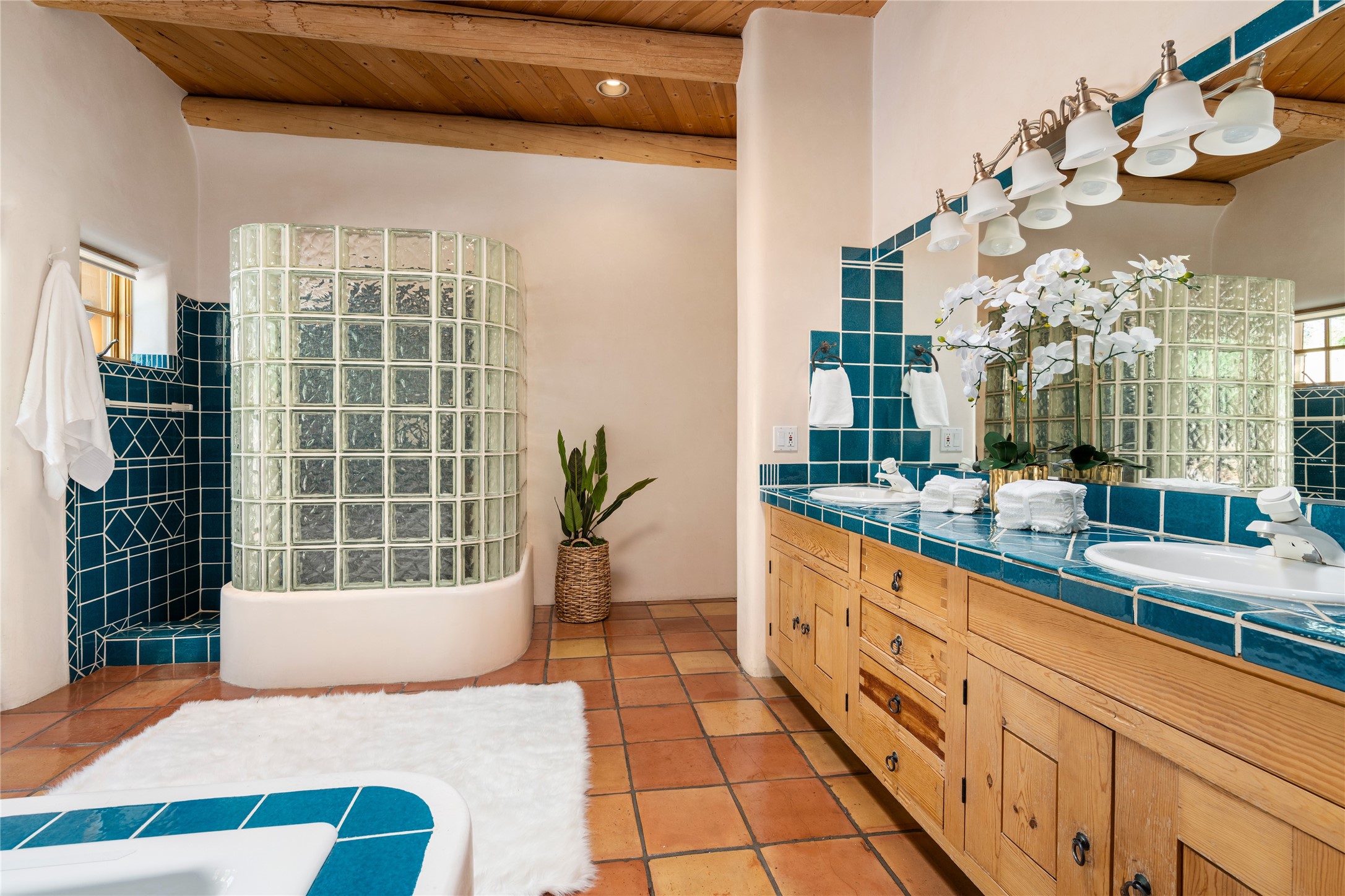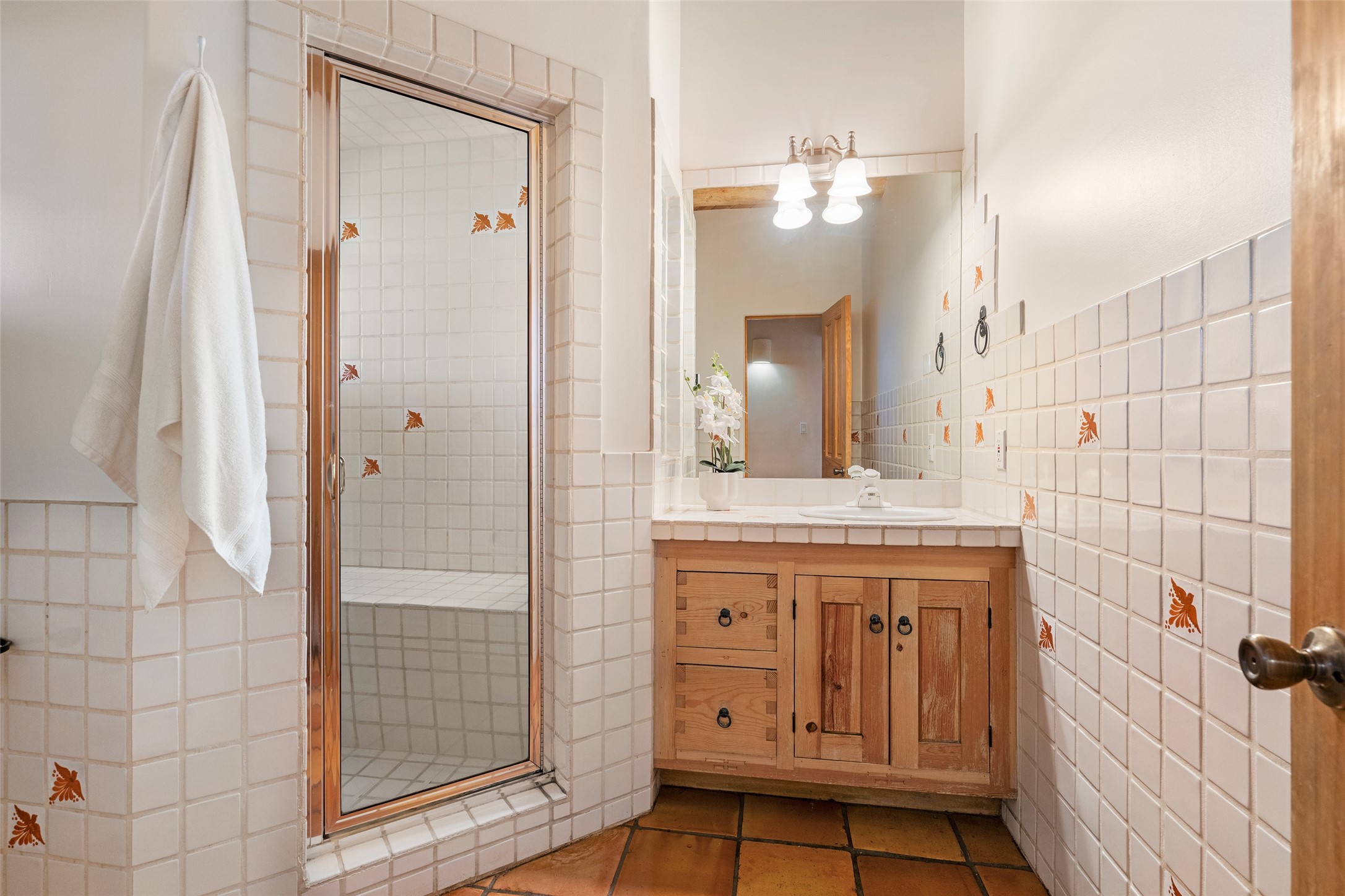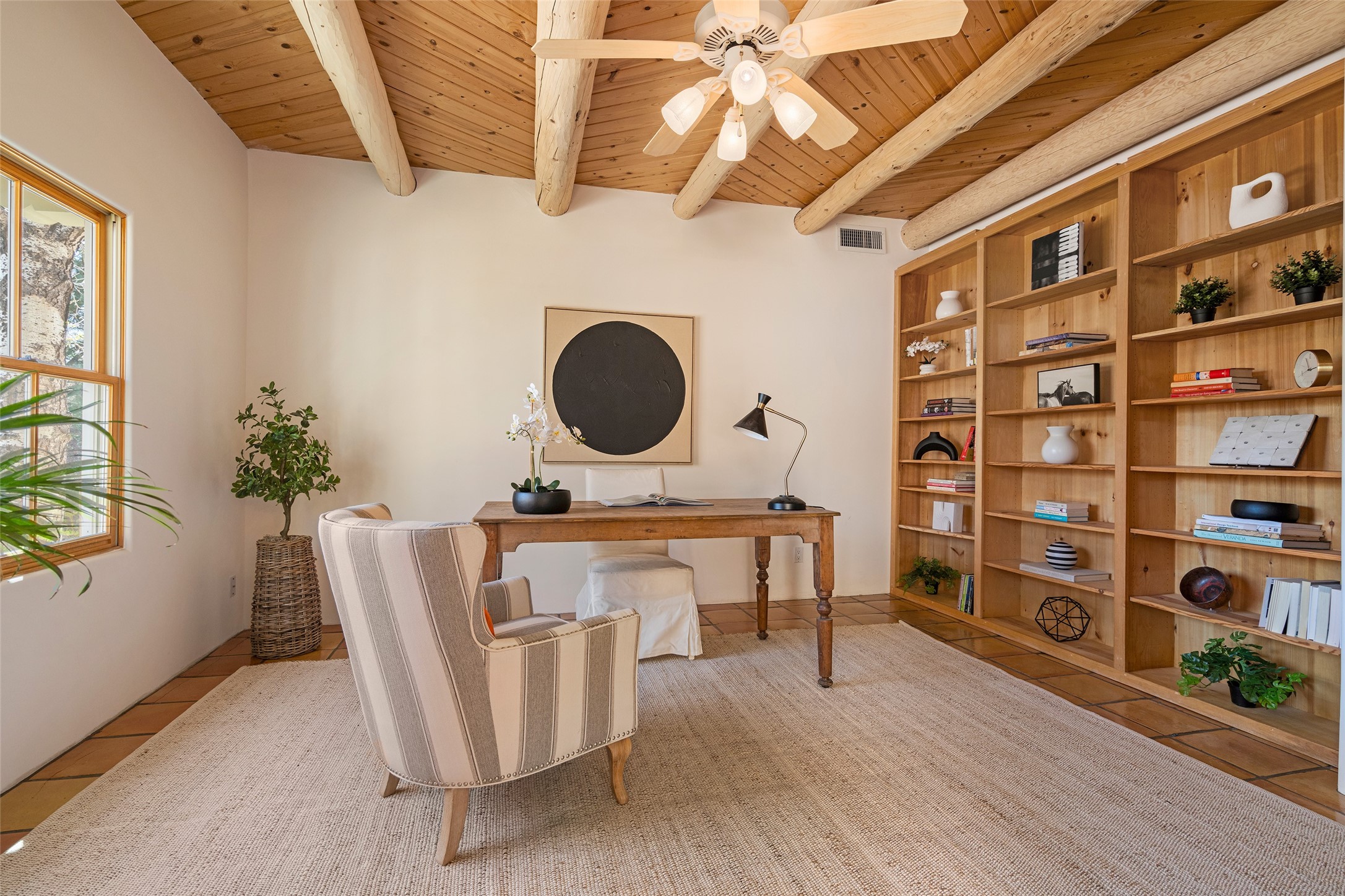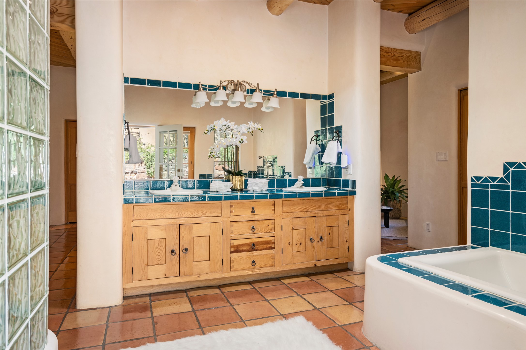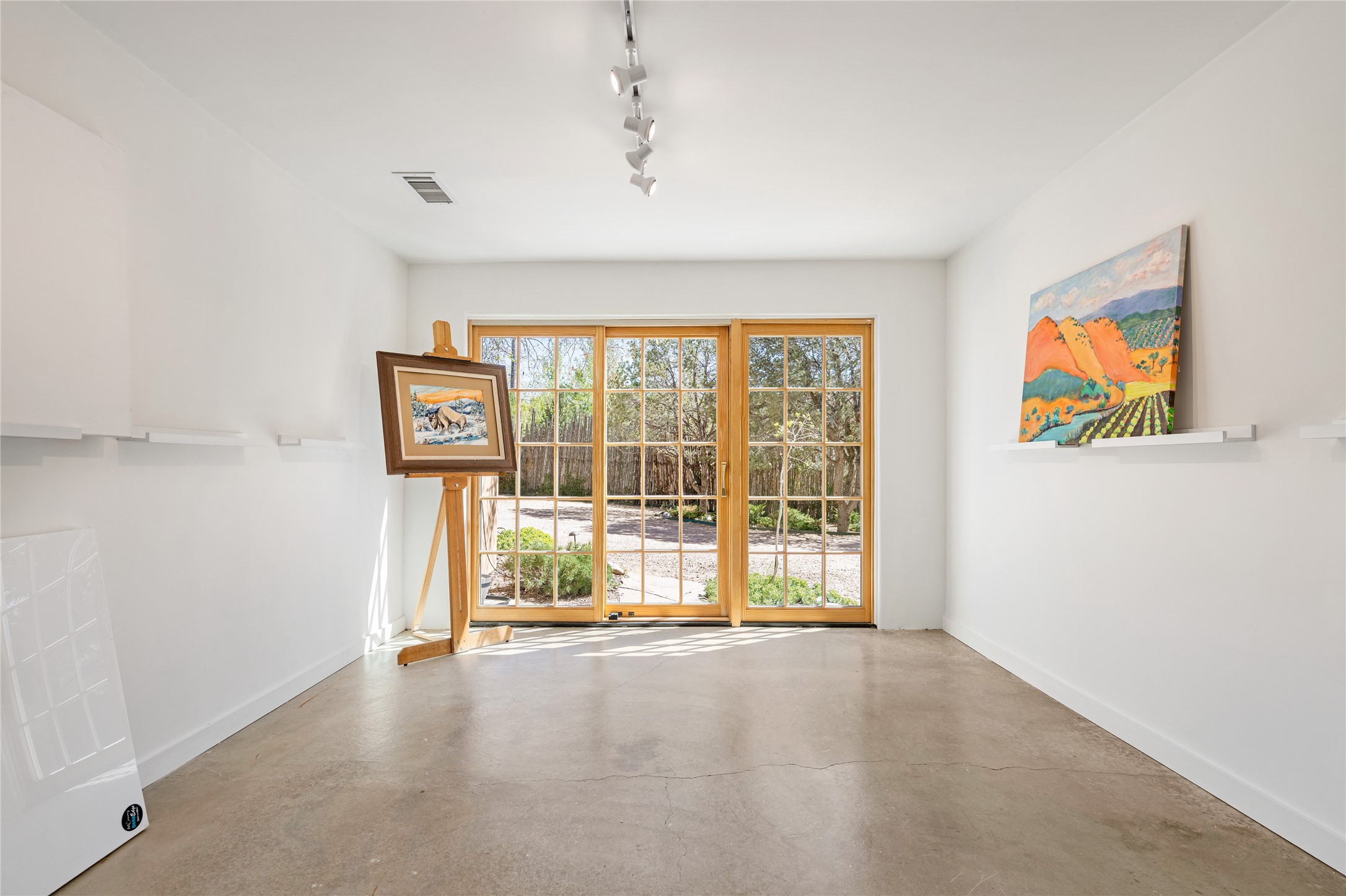 SECLUDED AT THE VERY END OF A LANE OFF GARCIA STREET THIS EASTSIDE SANTA FE HOME WITH AUTHENTIC CHARM & TIMELESS ELEGANCE HAS PHENOMENAL INDOOR/OUTDOOR ENTERTAINING SPACES COUPLED WITH A GARAGE AND PLENTY OF PRIVATE PARKING SO YOU CAN INVITE YOUR FRIENDS TO COME ENJOY TIME TOGETHER. Nestled in one of Santa Fe's most sought-after neighborhoods, just moments from the historic Plaza, this exceptional Eastside residence offers a blend of traditional Santa Fe style and refined comfort. With approximately 3,298 square feet in the main house and an additional 144 square feet in charming, attached studio, this two-story home is full of warmth, character, and rare privacy. Featuring 3 bedrooms and 4 bathrooms, the home is graced with classic Saltillo tile floors, coved ceiling treatments, and a seamless indoor-outdoor flow that celebrates the region's enchanting climate. The upstairs level offers a private retreat, ideal as a guest suite, complete with its own terrace. Outdoor living shines here - mature landscaping, a soothing water feature, a pergola-shaded grill area for al fresco dining, multiple patios, and second story terraces create the perfect setting for entertaining or quiet relaxation. Inside, both formal and informal dining areas cater to every occasion, while the attached studio offers flexible space for creativity or work. A 2-car garage, generous off-street parking, central heating and cooling, and close proximity to world-class dining, galleries, and cultural landmarks make this a rare Eastside offering. A true sanctuary in the heart of the city, this property captures the essence of Santa Fe living at its finest.