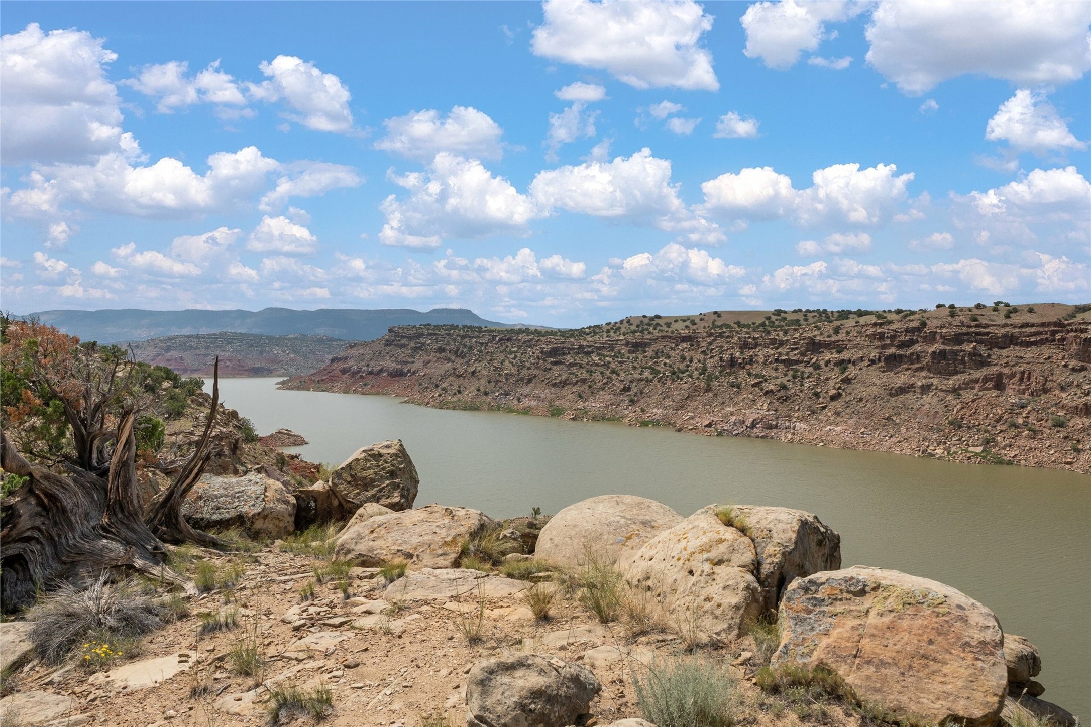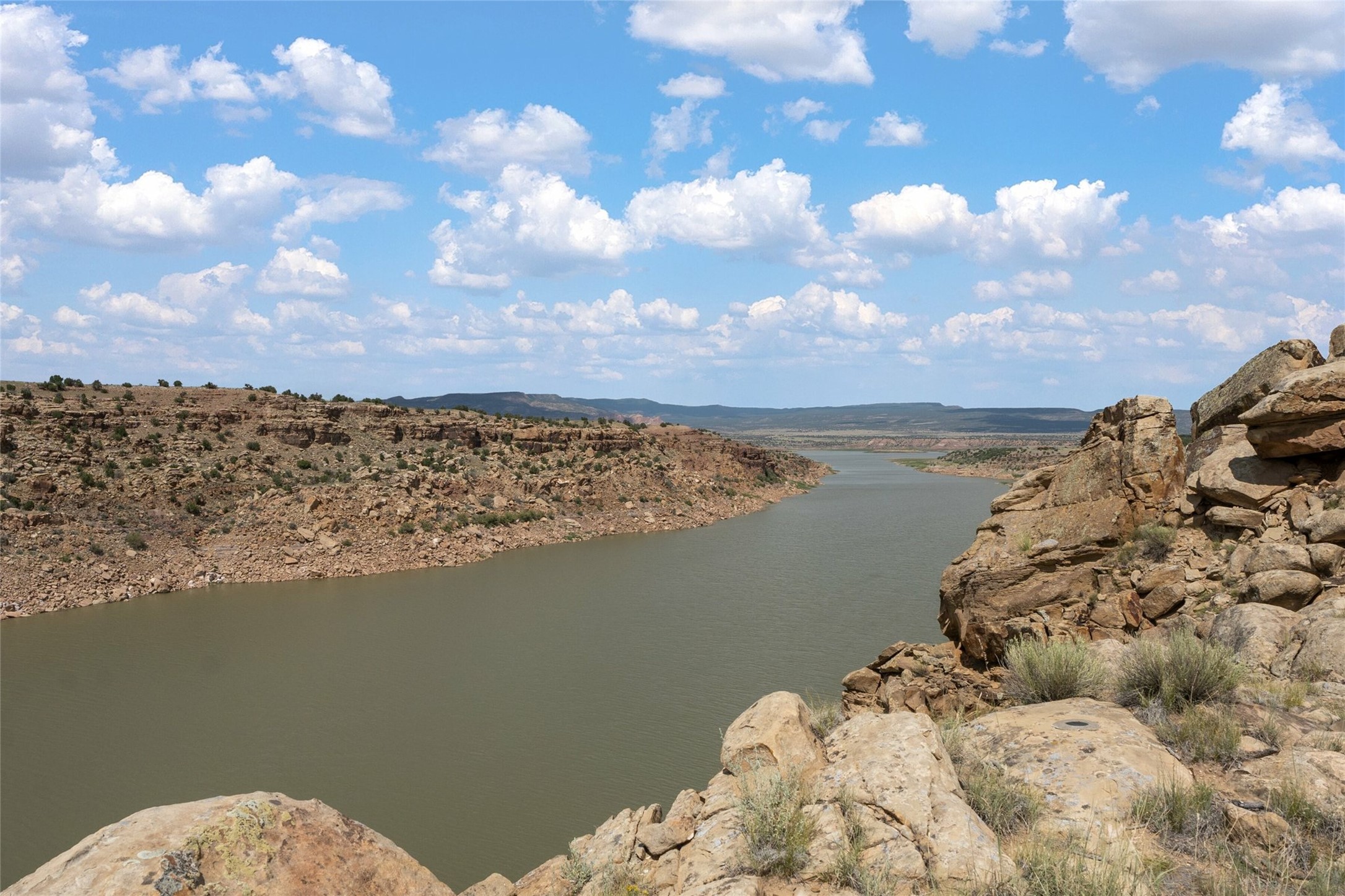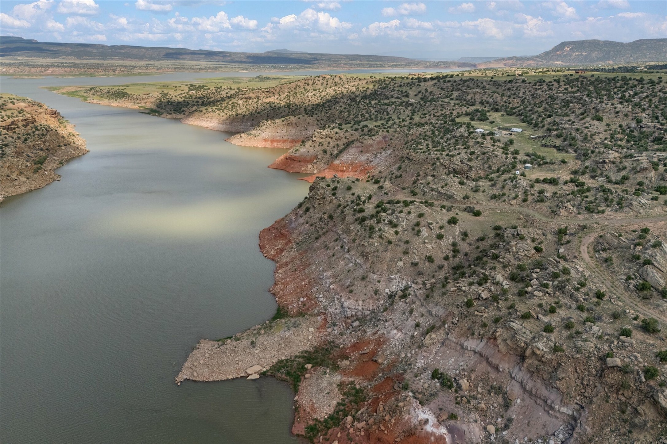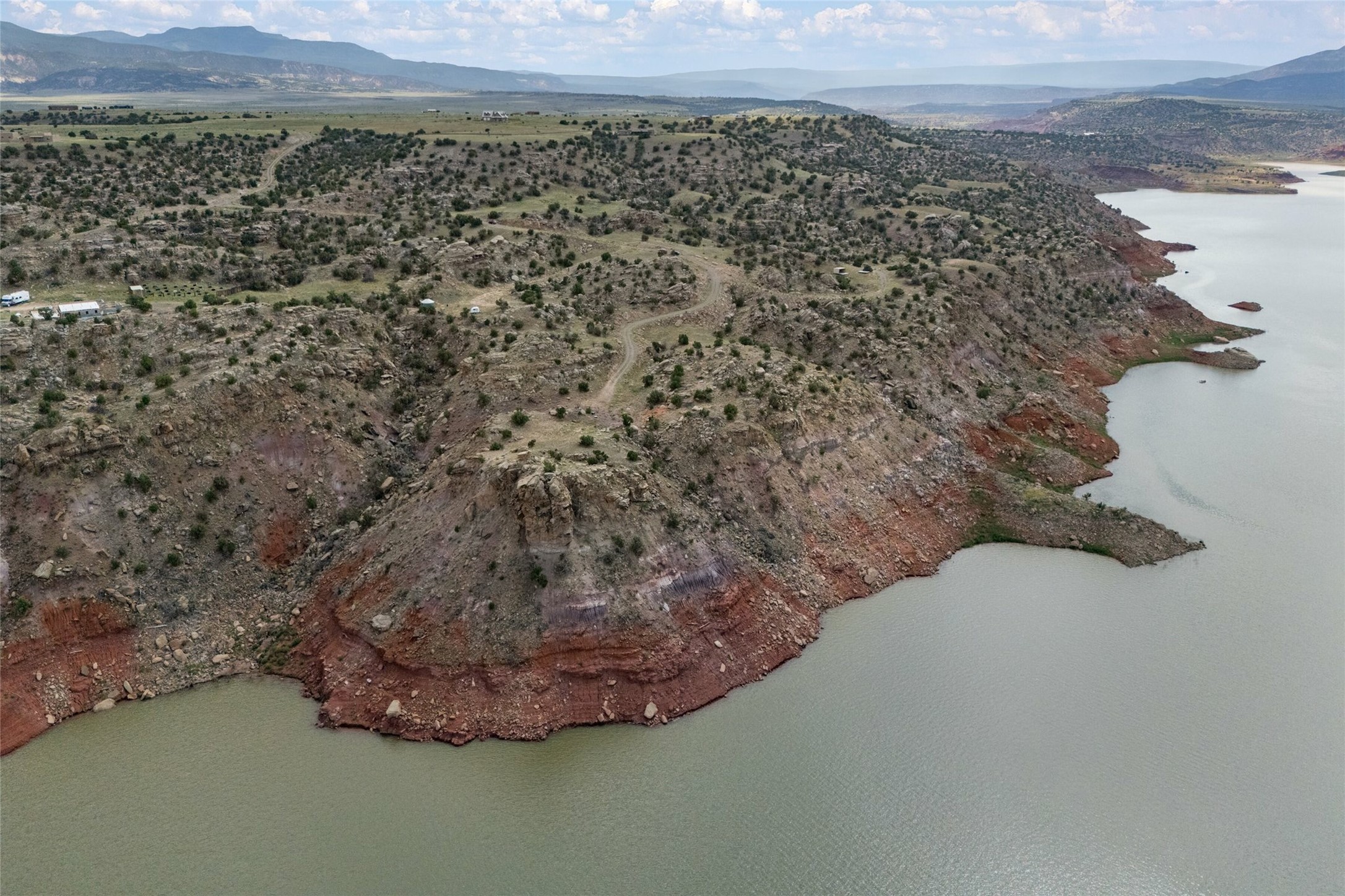 Who has waterfront property in New Mexico? It is unheard of! And yet, there is a rare, very special 14.49 acre view parcel right on the water at Lake Abiquiu! It sits on a private, majestic ridge surrounded by panoramas of Ghost Ranch and the legendary multi-colored cliffs memorialized in Georgia O'Keeffe's art, with views and access all the way up the Chama river as well. There are several spectacular building sites to choose from, magnificent character rocks, total privacy, peace, silence and tranquility in overwhelming beauty, looking out over the world and Lake Abiquiu. Electric is in, and a shared well, plus membership in the private community Lot 16 boat ramp and picnic area. 5 minutes to Abiquiu, an hour from Santa Fe, and a short drive south of the Colorado border, this is a once in a lifetime opportunity to experience waterfront property in New Mexico!
