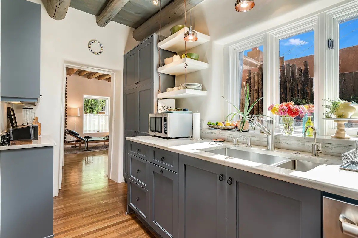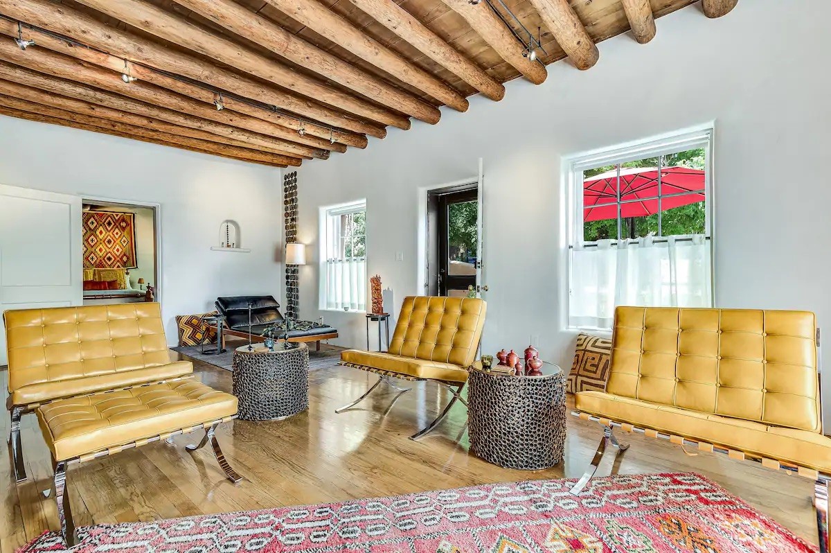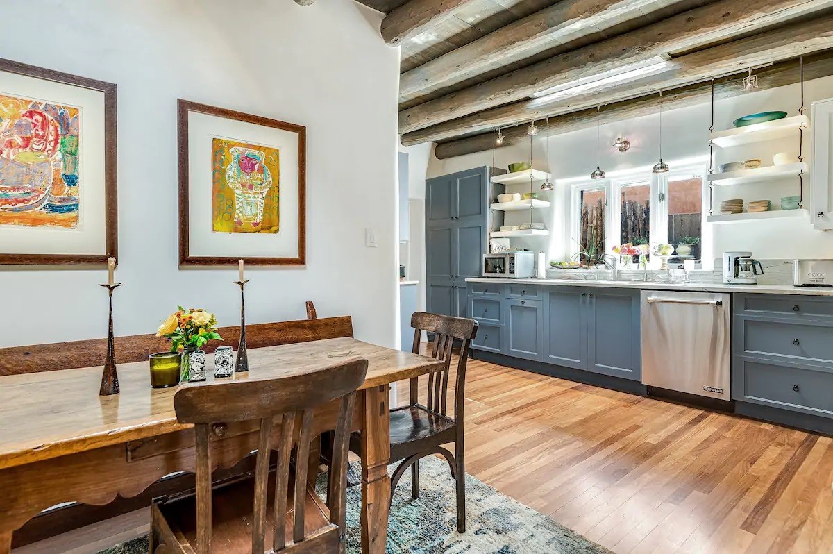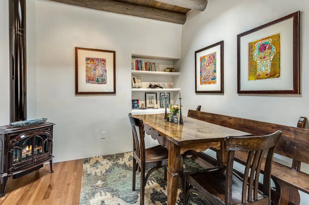 Gracious, warm, and filled with natural light, this 2-bedroom historic Palace Avenue home is one of the most charming eastside offerings on the market today. Rich wood floors, classic vigas, and a fabulous kiva fireplace all contribute to the timeless, traditional design of this meticulously maintained residence. Perfectly situated within walking distance to the Plaza and the renowned Canyon Road Art District, and just steps from Santa Fe's finest dining, galleries, and cultural attractions -- this home embodies everything that makes Santa Fe an extraordinary destination and a beloved place to call home. Unit C is also for sale and would make a wonderful casita for this property.