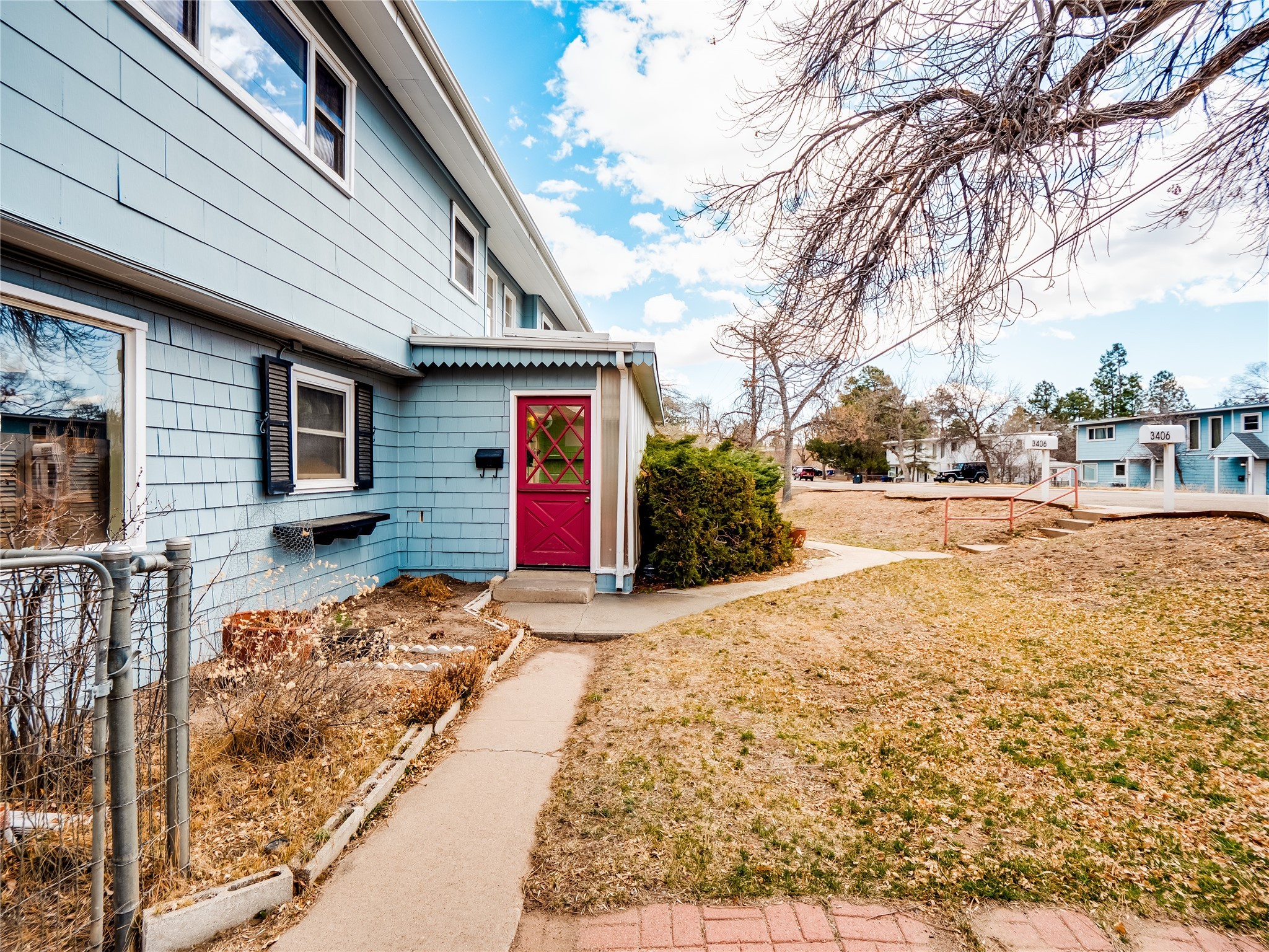 Located in a desirable West Area-East neighborhood, this charming two-story condo offers a perfect blend of comfort, and natural beauty. From the street-level designated parking spot, descend the stairs to a spacious front grass lawn, mature trees and shrubs, creating a welcoming atmosphere. Head inside through the bright enclosed porch/sunroom, an ideal space for plants and protection from the elements before entering the cozy interior. The front entryway features carpet flooring that extends throughout the living spaces, along with a convenient storage coat closet. Straight ahead, the inviting living room is filled with natural light from a wall of windows adorned with half shutters and a door leading to the backyard. Galley-style kitchen with tile flooring, warm wood cabinets with black hardware, and a pantry closet. Included appliances--refrigerator, gas stove, and a washer-dryer combo. A side door leads to the yard and an additional storage closet. Upstairs, there's three bedrooms. Two well-sized guest bedrooms, with one offering a double closet. And a spacious primary bedroom with treeline views, complete with a generous walk-in closet. A shared bath has a single sink vanity, tile flooring, and a tiled shower/tub with a sliding door enclosure. The fenced backyard offers a blend of open space and natural scenery. A covered porch off the living room provides a shaded retreat. The yard slopes gently down to the canyon, where mature trees and native vegetation create a picturesque, private setting. To the side, a spacious wood deck with built-in seating and a pergola serves as the ideal spot for outdoor gatherings. Whether you're hosting a summer barbecue, relaxing with a book, or savoring your favorite beverage under the stars, this inviting space is perfect for year-round enjoyment. The yard also offers plenty of room for gardening and pets. Just a short drive to downtown, parks, trails, shopping, and restaurants, this fantastic property is a must-see.
