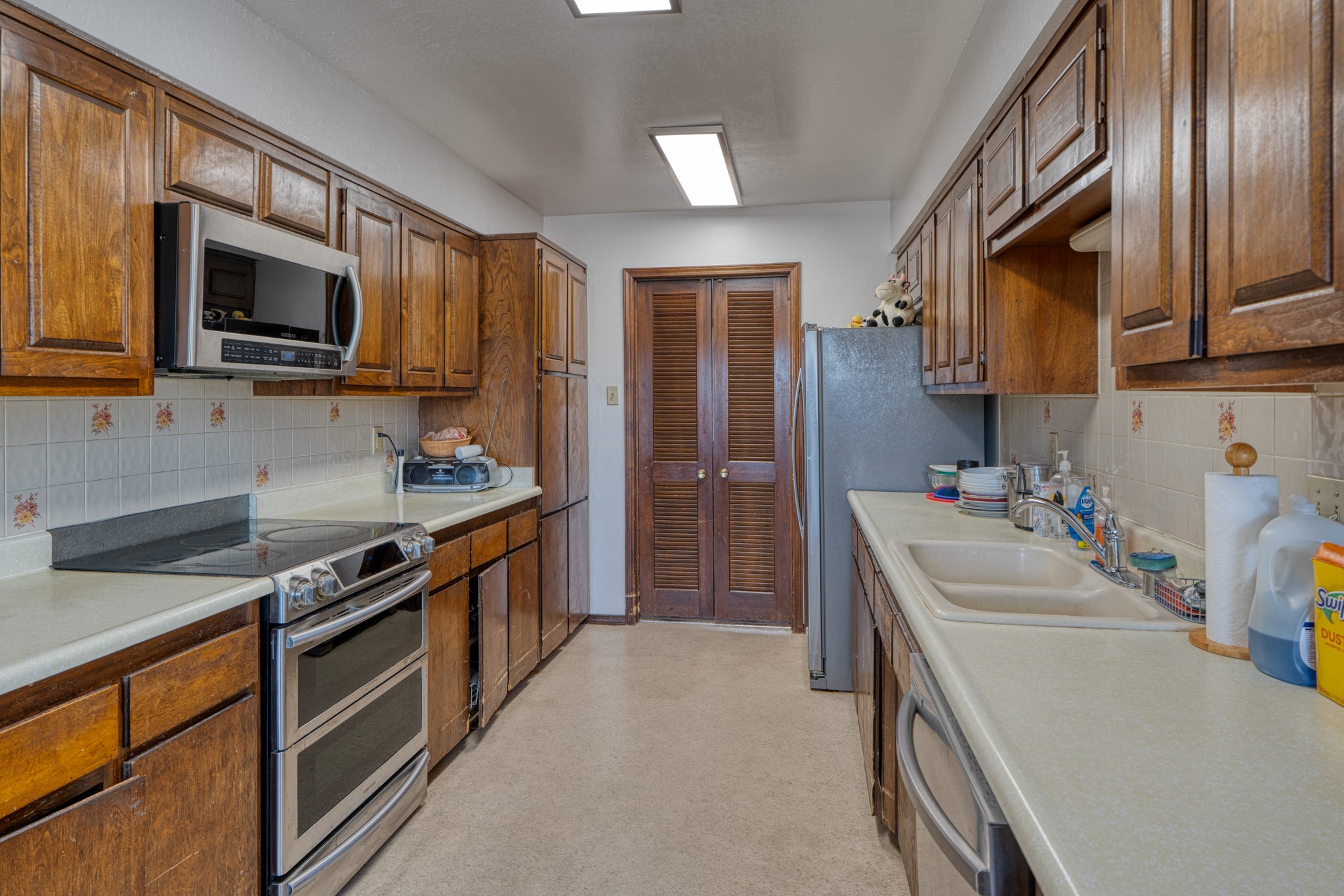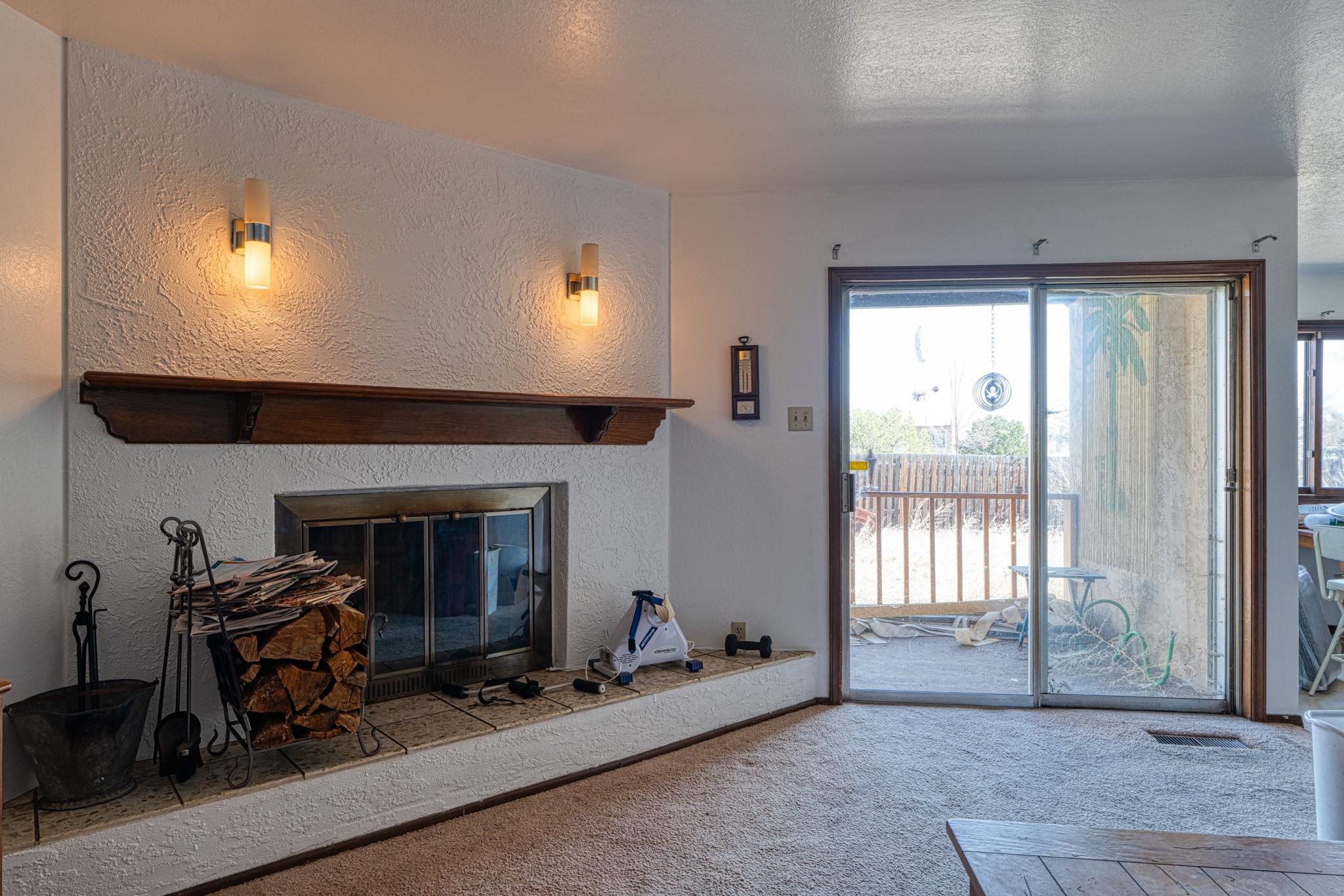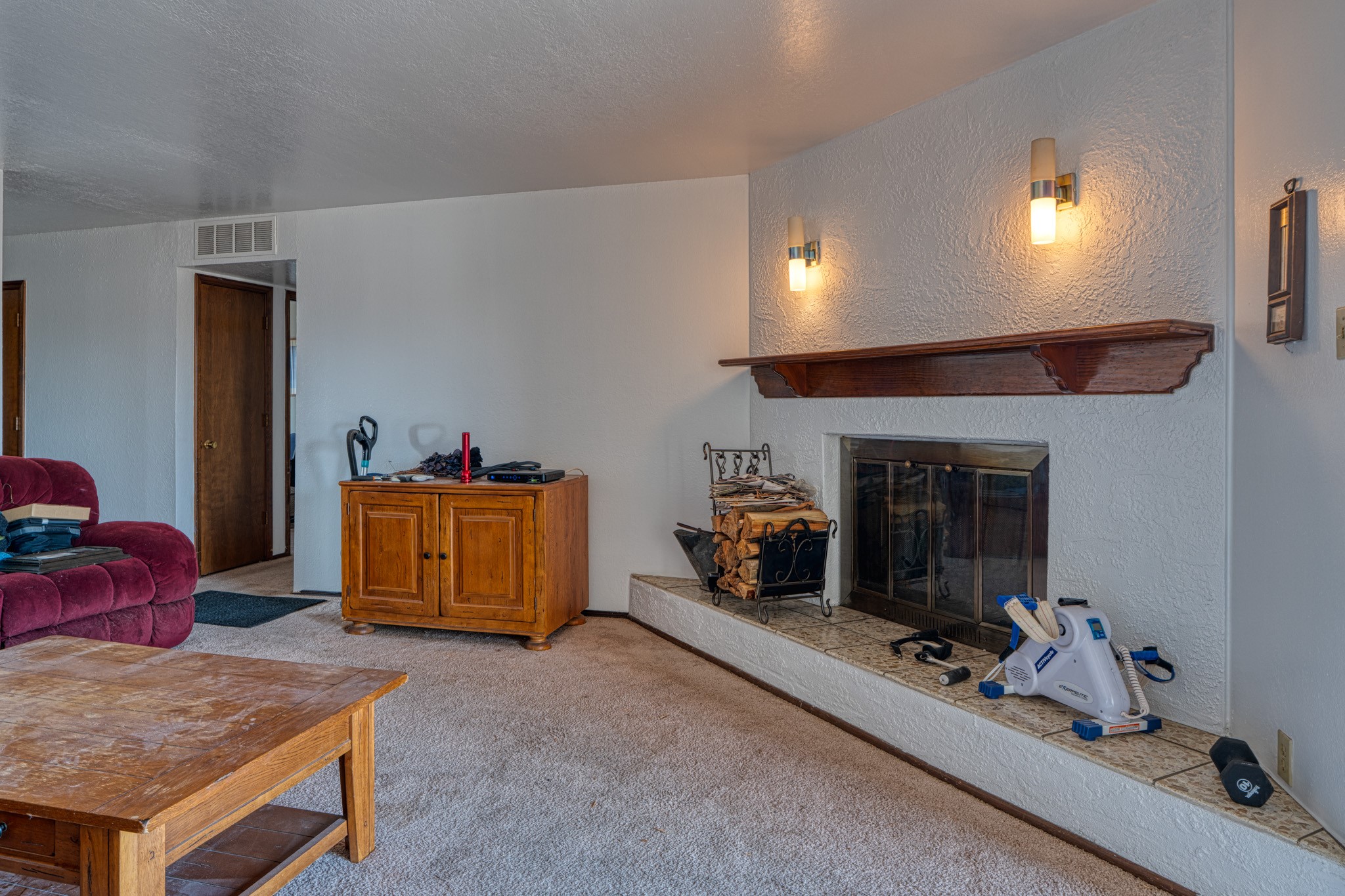 Nestled in the serene community of White Rock, this charming home offers a fantastic floor plan and an abundance of natural light. The property boasts a brand-new TPO roof, installed in 2024, and fresh interior paint. Situated just steps away from the scenic Chamisa Park, the backyard offers a tranquil, unobstructed view of the expansive space. Inside, the spacious layout includes two versatile living areas, providing the perfect balance of comfort and flexibility. The main living room is highlighted by a cozy fireplace and seamless access to the covered patio, ideal for outdoor entertaining. The second living space offers endless possibilities - whether as a formal dining room, home office, studio, or playroom. The primary suite is a true retreat, complete with a large walk-in closet and a luxurious three-quarter bath with a wheelchair-accessible, curb-less shower. Two additional guest bedrooms share a full bath, offering comfort and convenience for family or visitors. A spacious laundry room, located adjacent to the kitchen, includes built-in cabinets for added storage. The oversized, insulated garage is a standout, featuring a private workshop area with a utility sink and a large roll-up door that opens to create backyard access! Outside, the low-maintenance backyard features thoughtfully designed xeriscaping, and is ready for your touch. Large windows throughout the home flood each room with natural light, creating a warm and inviting atmosphere. Schedule a tour today and make this White Rock gem yours!