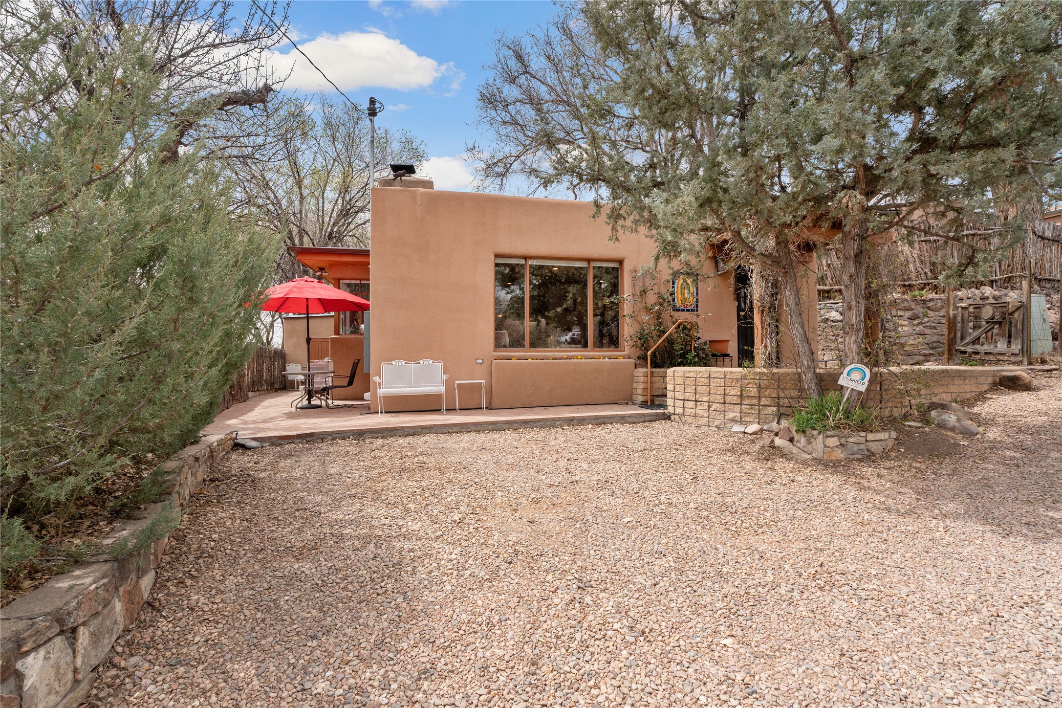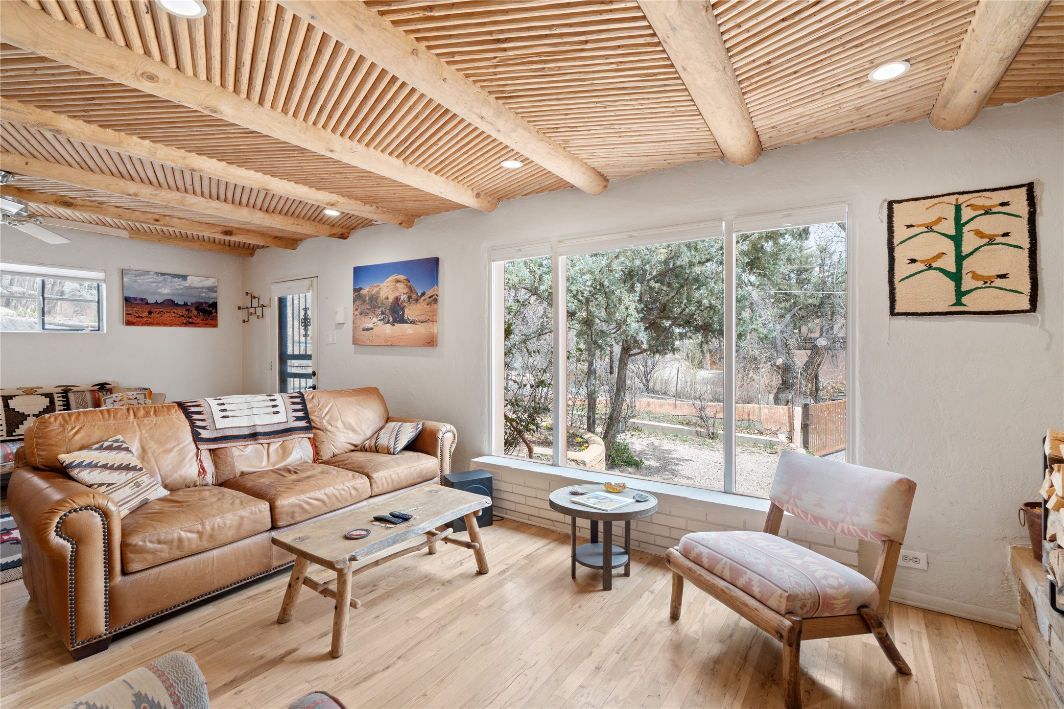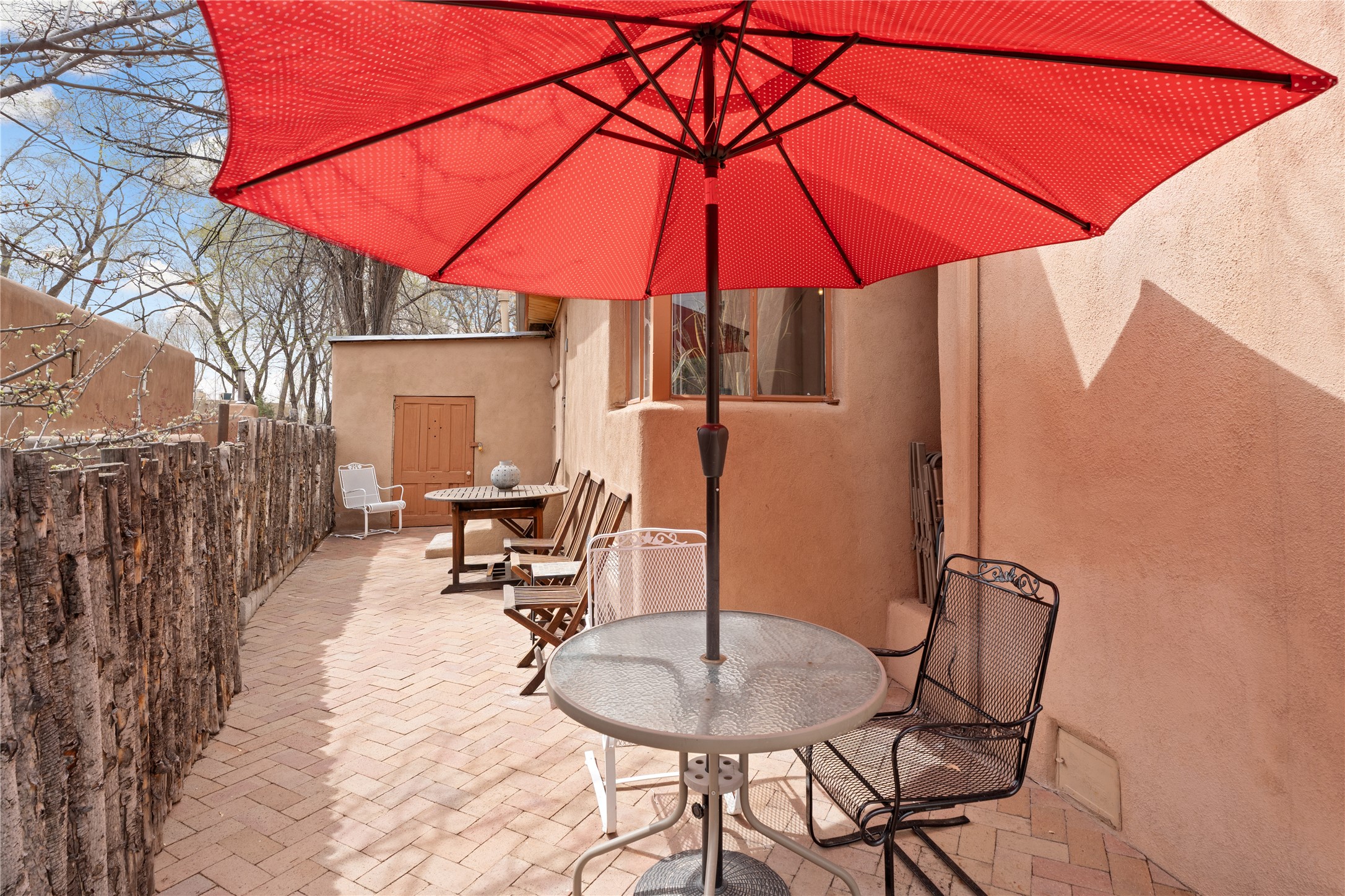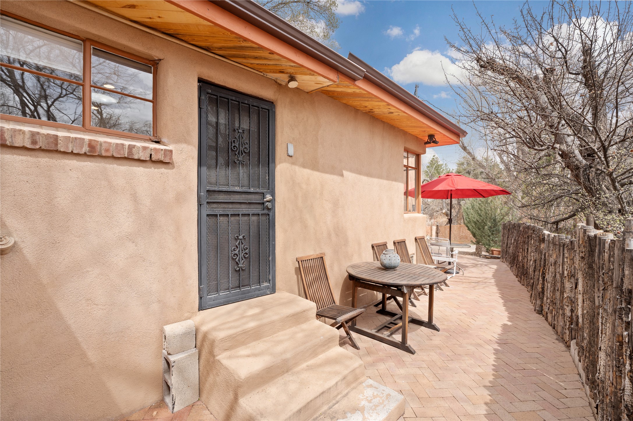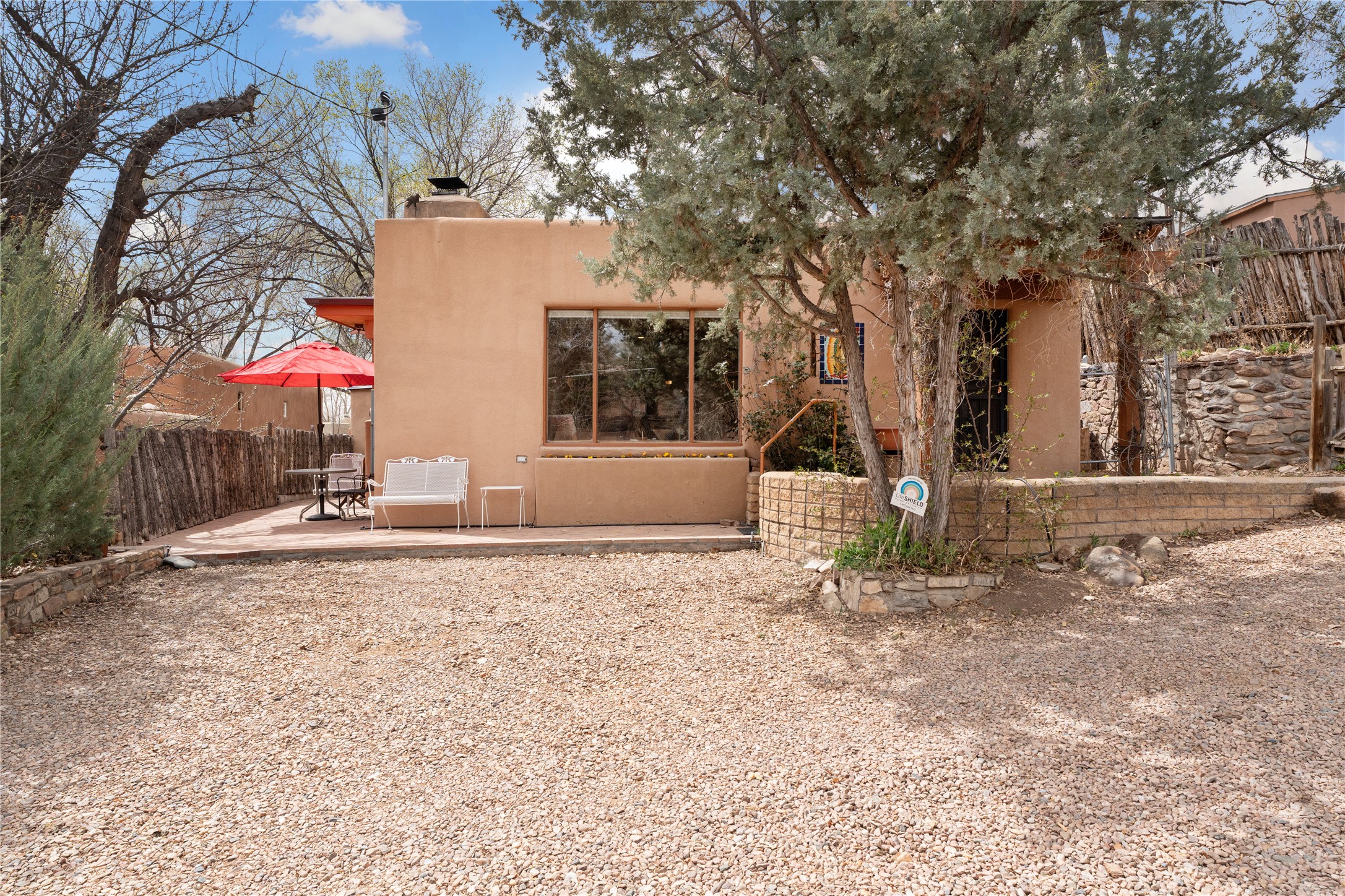 SHADE - TREES - WATER - all supreme attributes in this highly desirable location, as this historic Eastside pied-a-terre awaits at the east end of The Alameda with unlimited opportunities to enjoy the numerous old-growth large trees prevalent in the immediate area, water in the adjacent Acequia de la Muralla, and the popular and nurturing Santa Fe River walk along Camino Pequeno with its nature preserves and bird sanctuaries, and nearby Patrick Smith Park, the Water Park, and Canyon Road - all within a block or two and minutes from your new sanctuary. Hardwood floors, vigas and latillas, a living room fireplace, a ceiling fan, a private patio, an additional storage room (outside access), new kitchen appliances and upgrades, a new roof (2020) are some of the amenities and features of this home. As for the property's history, the original deed was conveyed to Salvador Gonzales in 1742 as the Canada Ancha Grant or Salvador Gonzales Grant consisting of approximately 200 acres of land from Gonzales Road to the hills of Cerro Gordo, from the Rio Santa Fe to Hyde Park Road. Lourdes Padilla Abeyta, a member of the Gonzales family and clan inherited the adobe casita in the 1940s from her parents, and her husband, a builder and mason, remodeled the original two rooms (today's bedrooms) and added all the other rooms and fireplace in the early 1950s. Opportunity knocks - rewards beckon - who will answer the call?