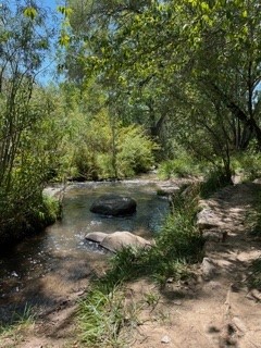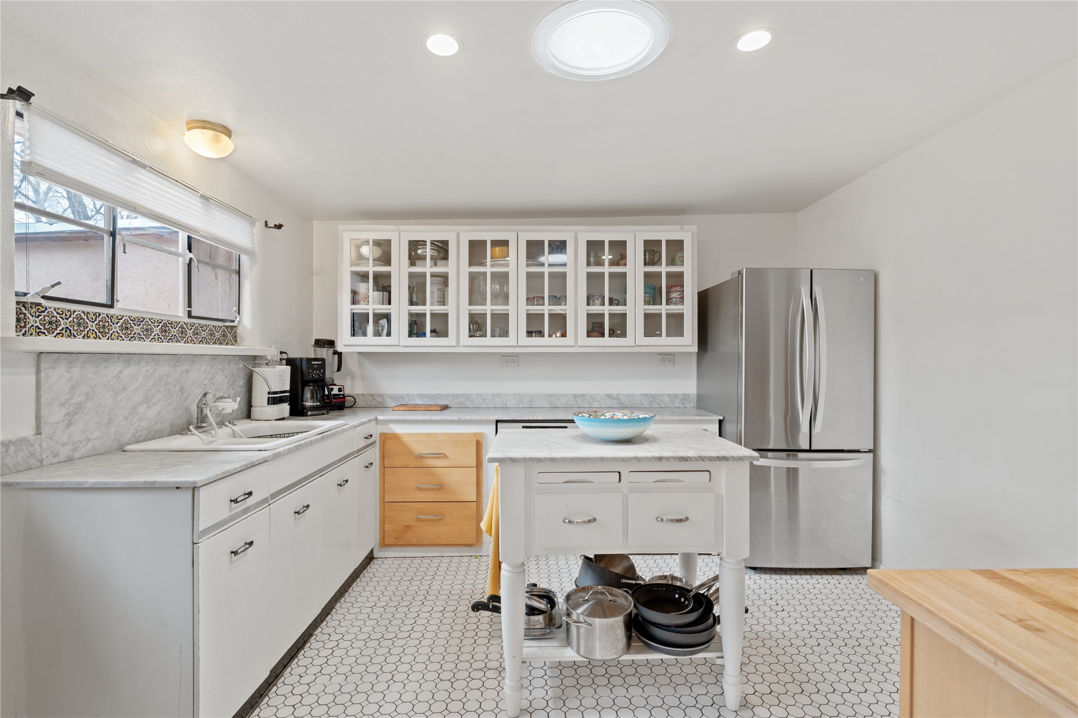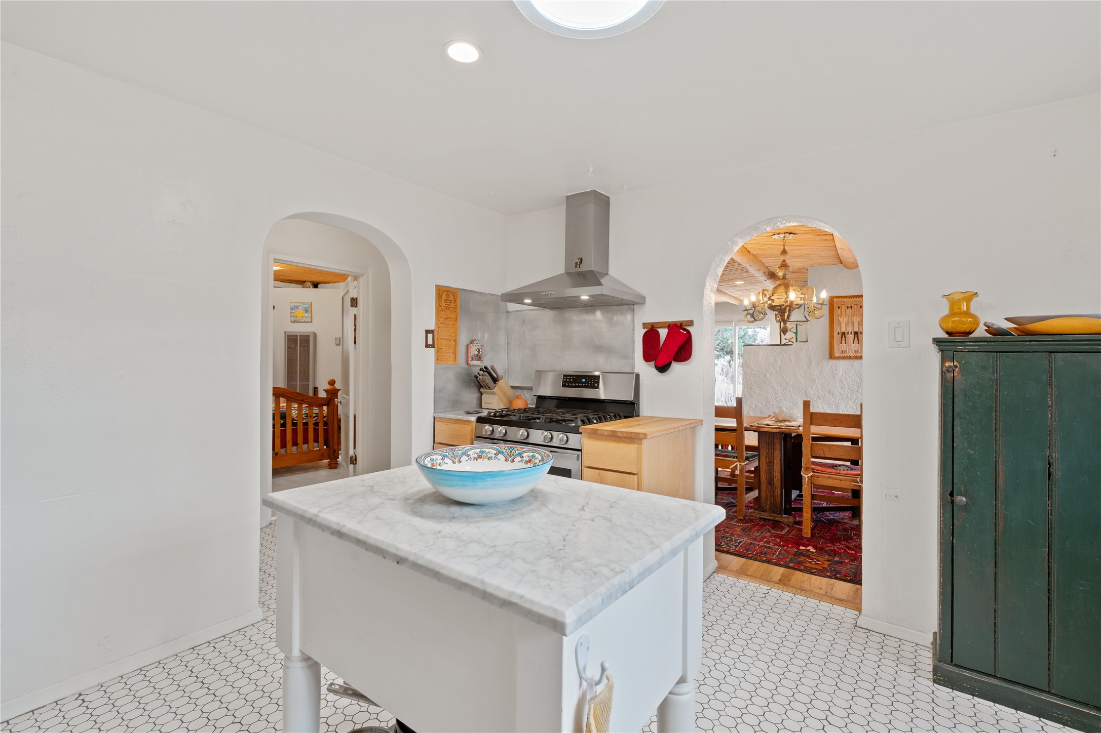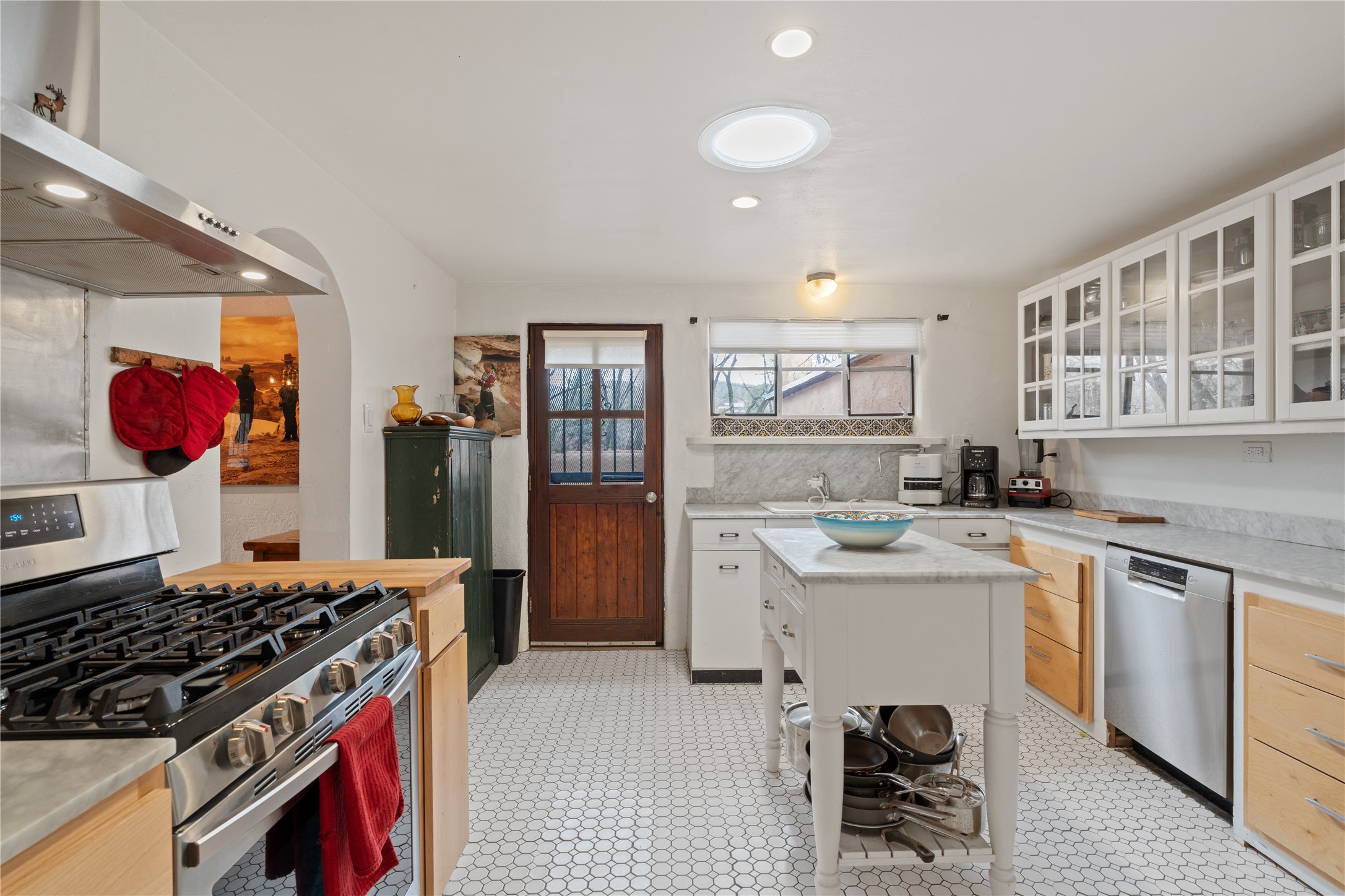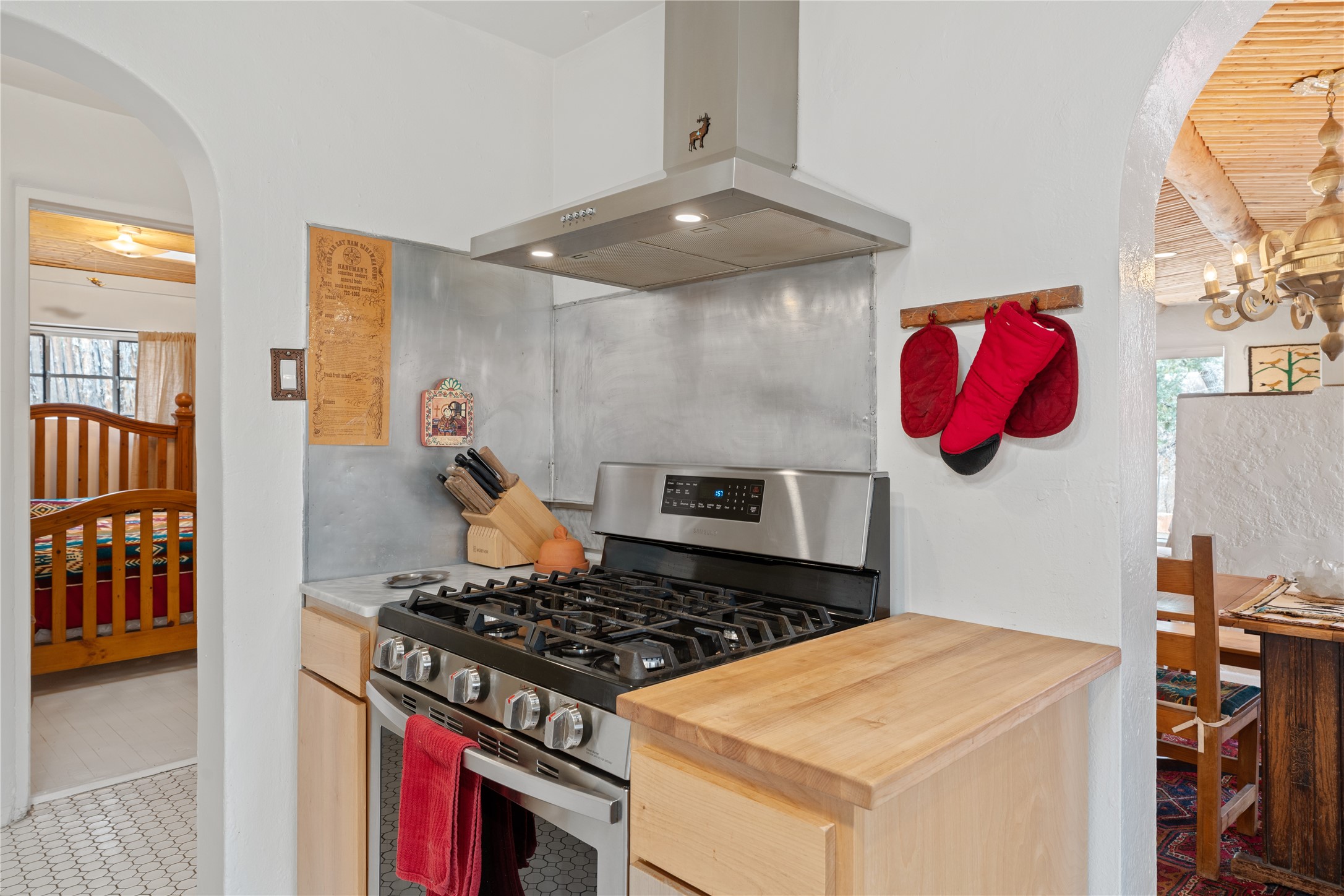 SHADE - TREES - WATER - all supreme attributes in this highly desirable location, as this historic Eastside pied-a-terre awaits at the east end of The Alameda with unlimited opportunities to enjoy the numerous old-growth large trees prevalent in the immediate area, water in the adjacent Acequia de la Muralla, and the popular and nurturing Santa Fe River walk along Camino Pequeno with its nature preserves and bird sanctuaries, and nearby Patrick Smith Park, the Water Park, and Canyon Road - all within a block or two and minutes from your new sanctuary. Hardwood floors, vigas and latillas, a living room fireplace, a ceiling fan, a private patio, an additional storage room (outside access), new kitchen appliances and upgrades, a new roof (2020) are some of the amenities and features of this home. As for the property's history, the original deed was conveyed to Salvador Gonzales in 1742 as the Canada Ancha Grant or Salvador Gonzales Grant consisting of approximately 200 acres of land from Gonzales Road to the hills of Cerro Gordo, from the Rio Santa Fe to Hyde Park Road. Lourdes Padilla Abeyta, a member of the Gonzales family and clan inherited the adobe casita in the 1940s from her parents, and her husband, a builder and mason, remodeled the original two rooms (today's bedrooms) and added all the other rooms and fireplace in the early 1950s. Opportunity knocks - rewards beckon - who will answer the call?