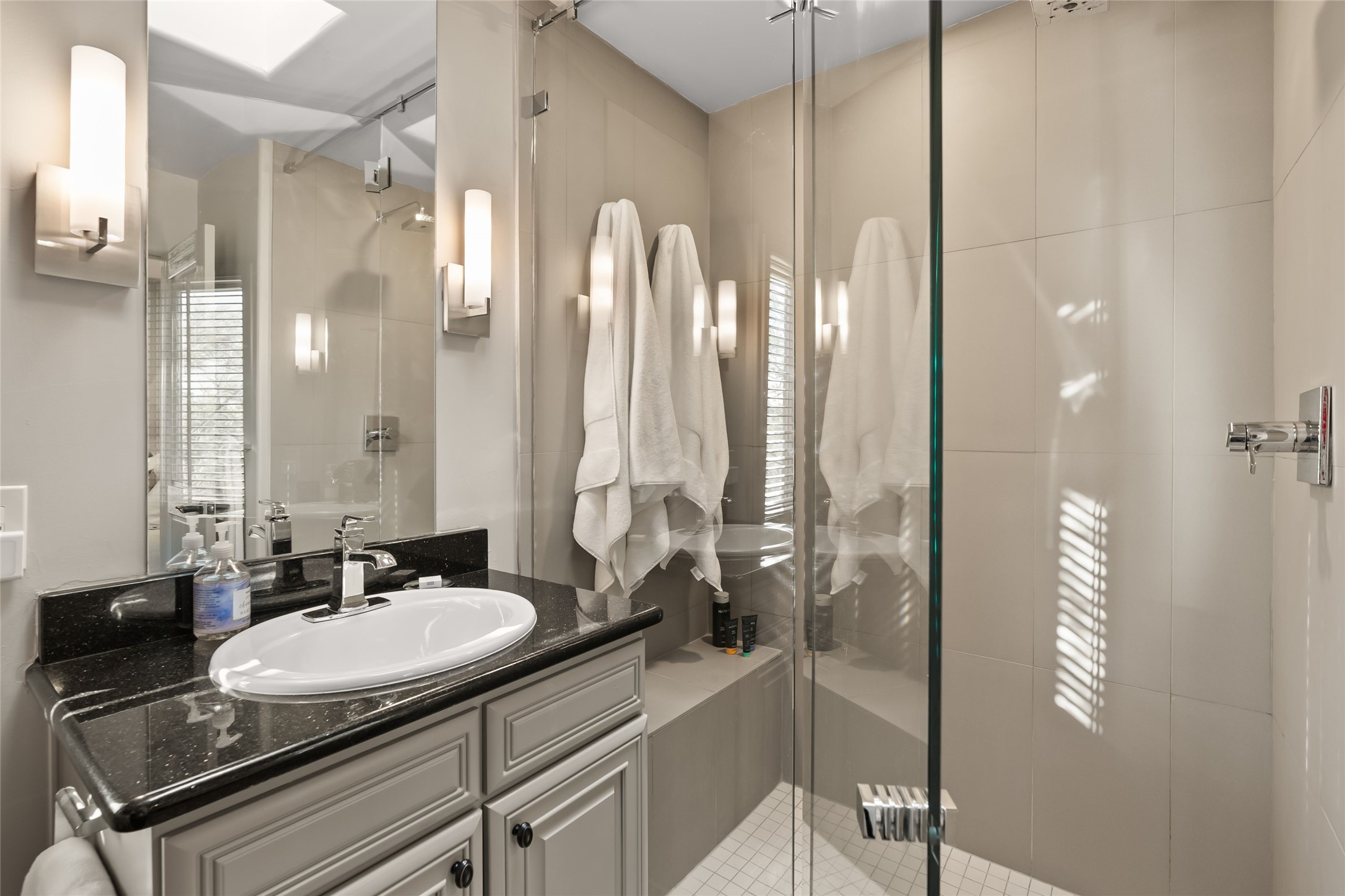 This inviting, Soft Contemporary 2-Bed + Den / 3-Bath home in Gated Las Campanas provides easy, "Lock & Leave" convenience with a gorgeous view of the Sangre de Cristo Mountains. Two rustic wood entry gates lead to the private, intimate entry courtyard, which is beautifully landscaped with a water feature & cozy wood-burning fireplace for entertaining guests. The Main house is an open floor plan with an easy flow from the Living & Dining areas to the Gourmet Kitchen with Taj Majal Quartzite countertop and stainless appliances - Sub Zero refrigerator, a 36-inch Frigidaire gas range/oven (installed in January 2025 & never used), Dacor hood, Bosch dishwasher, Sharp microwave drawer and wine cooler. The Elegant Master Bedroom & Bath offers two separate vanities, oval soaking tub, separate shower and a fabulous California Closet. The Media Room could easily be converted to a Bedroom and has an adjacent Bath. The Private, Detached 1-Bed / 1-Bath Guest Casita offers great privacy for visiting friends & family, with enough room for a King-size bed. The back yard is fully landscaped and walled-in for pets, with a water feature, built-in Viking grill and Sangre de Cristo Mountain view. This home has it all - Contemporary style, Detached Casita and a View of the Sangre de Cristo Mountains.
