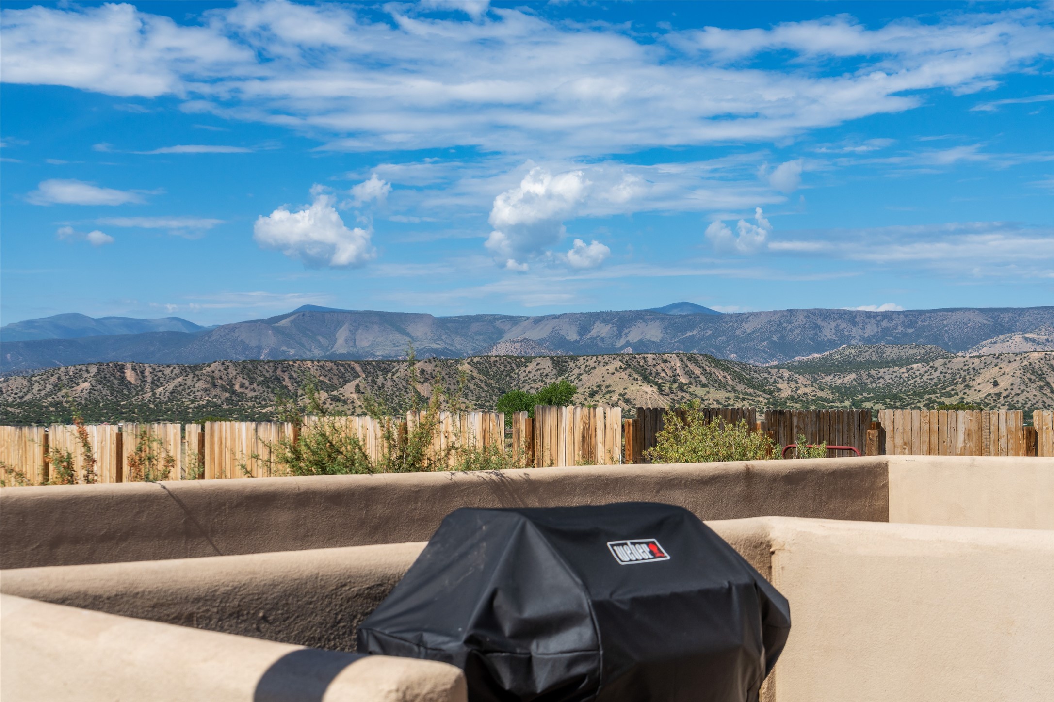 Centrally located between Los Alamos, Santa Fe, and Taos, this spacious 4-bed, 4-bath home on 5 acres offers peaceful family living in the heart of Medanales. With horses welcome and Abiquiu Lake and national forest lands just minutes away, it's an ideal setting for those who love space, nature, and quiet. Inside, classic Southwestern style shines through with brick floors, beamed ceilings, multiple wood stoves, two kiva fireplaces, and cozy radiant heat. With newly remodeled custom baths featuring walk-in showers, a generous kitchen, separate dining room, and a dedicated office, this home perfectly suited for both family life and remote work. Multiple courtyards provide serene outdoor living spaces, while a large covered portal with a Kiva fireplace invites year-round enjoyment. Sweeping mountain views complete this exceptional property--offering a private, charming retreat with room to roam.
