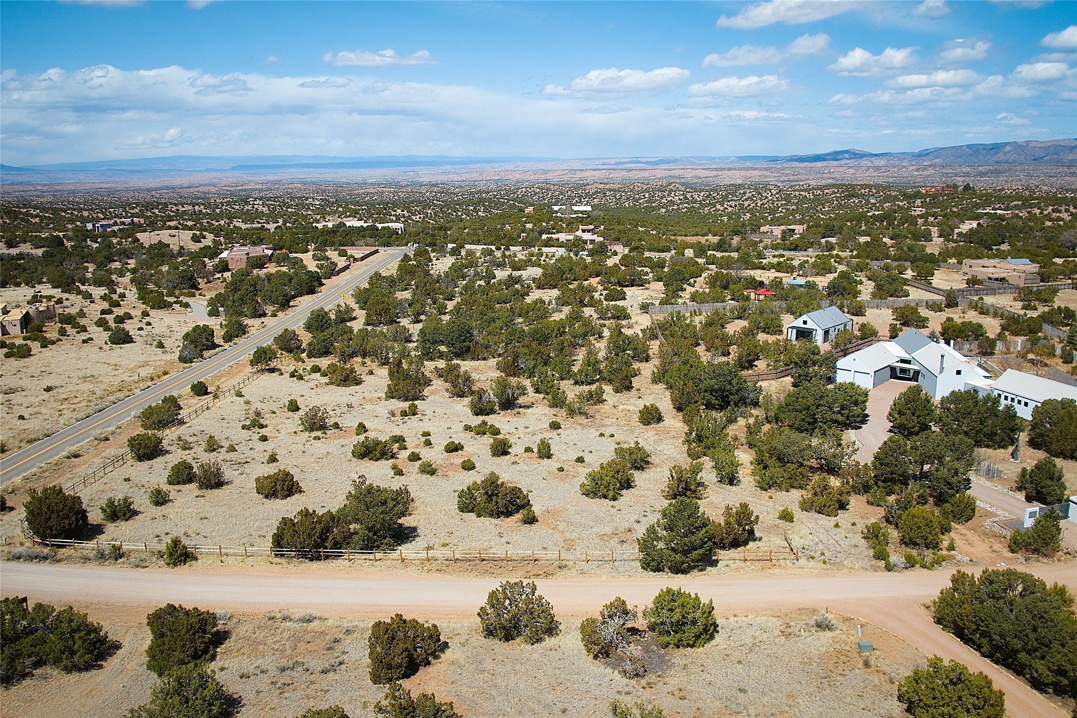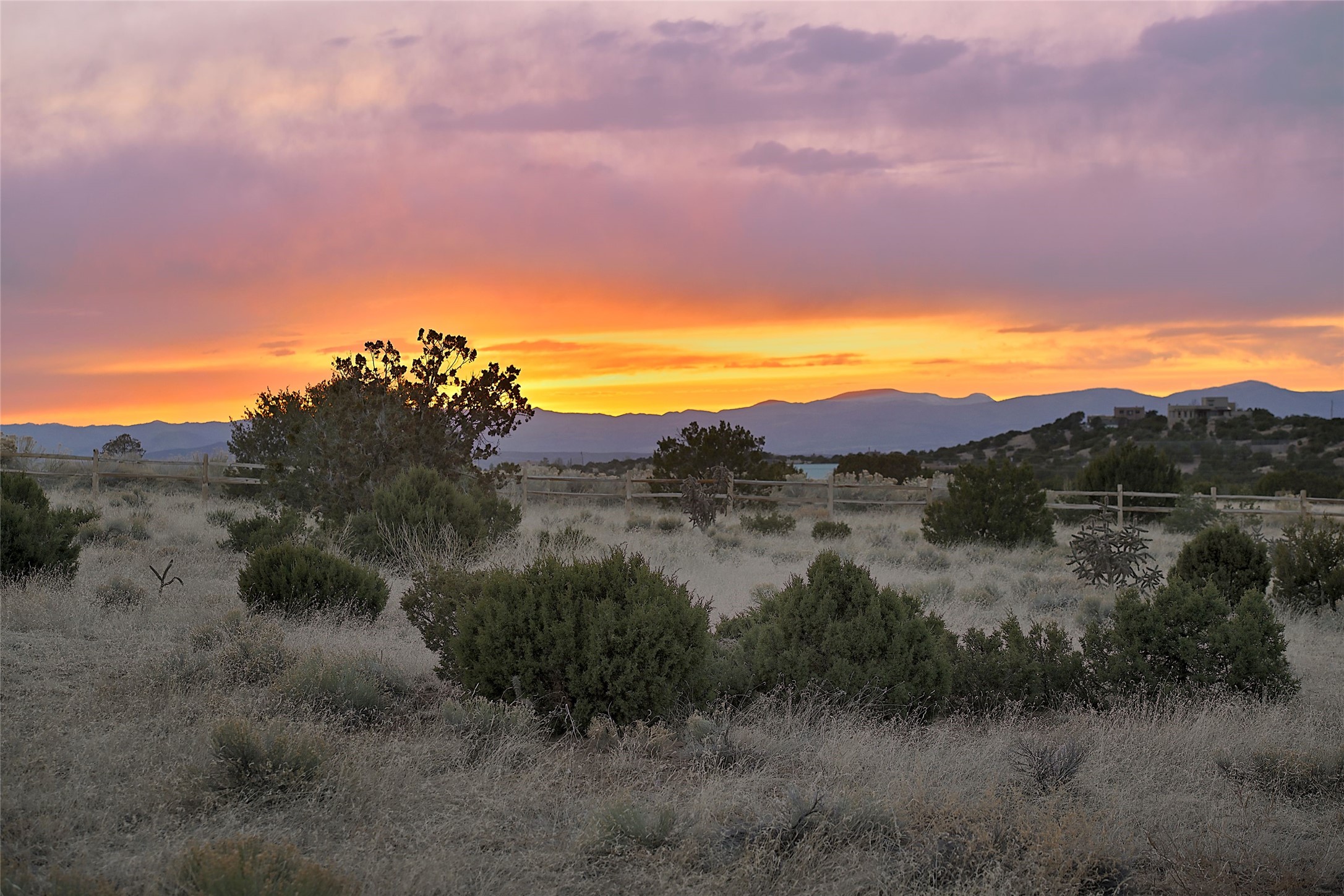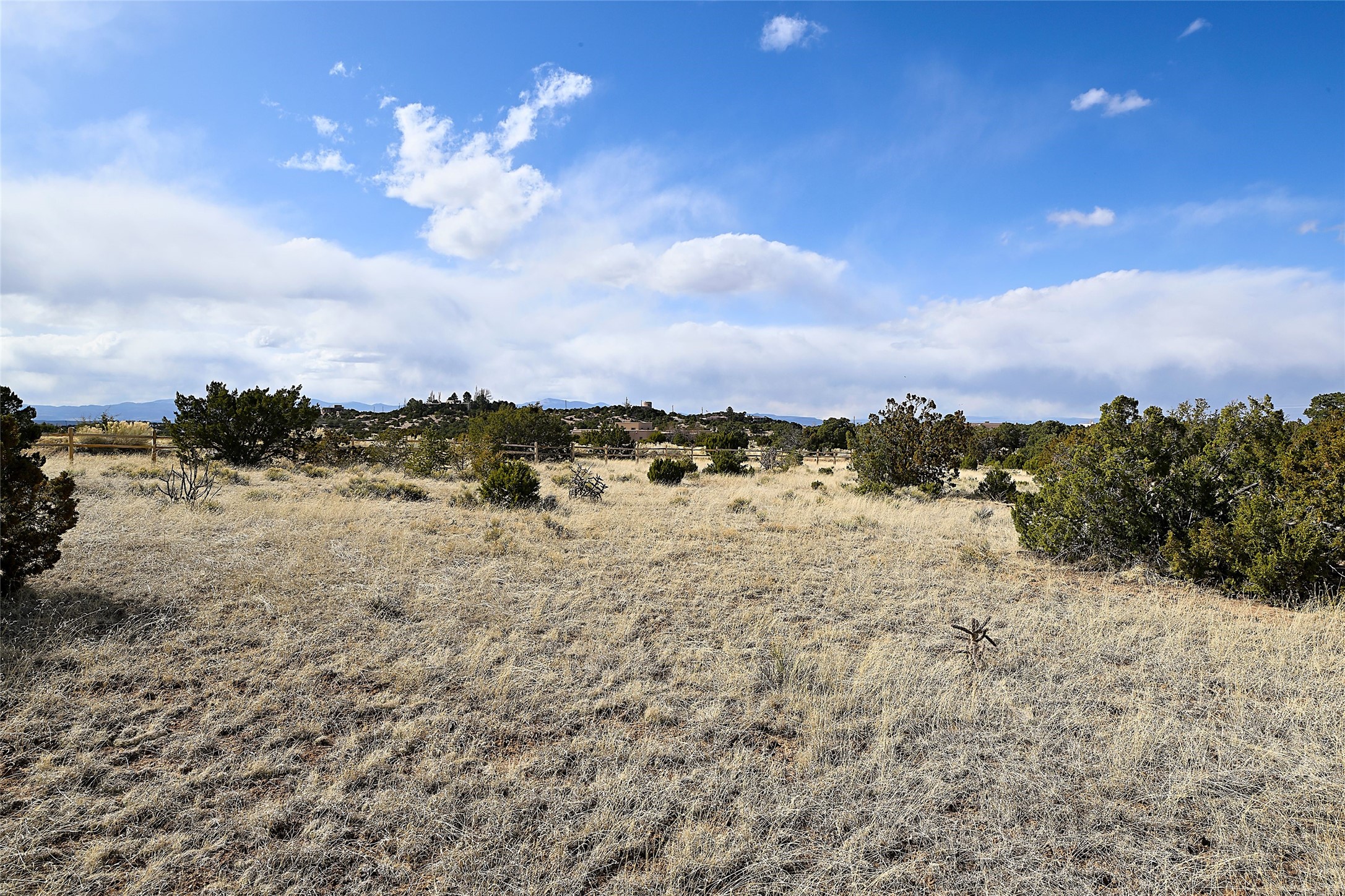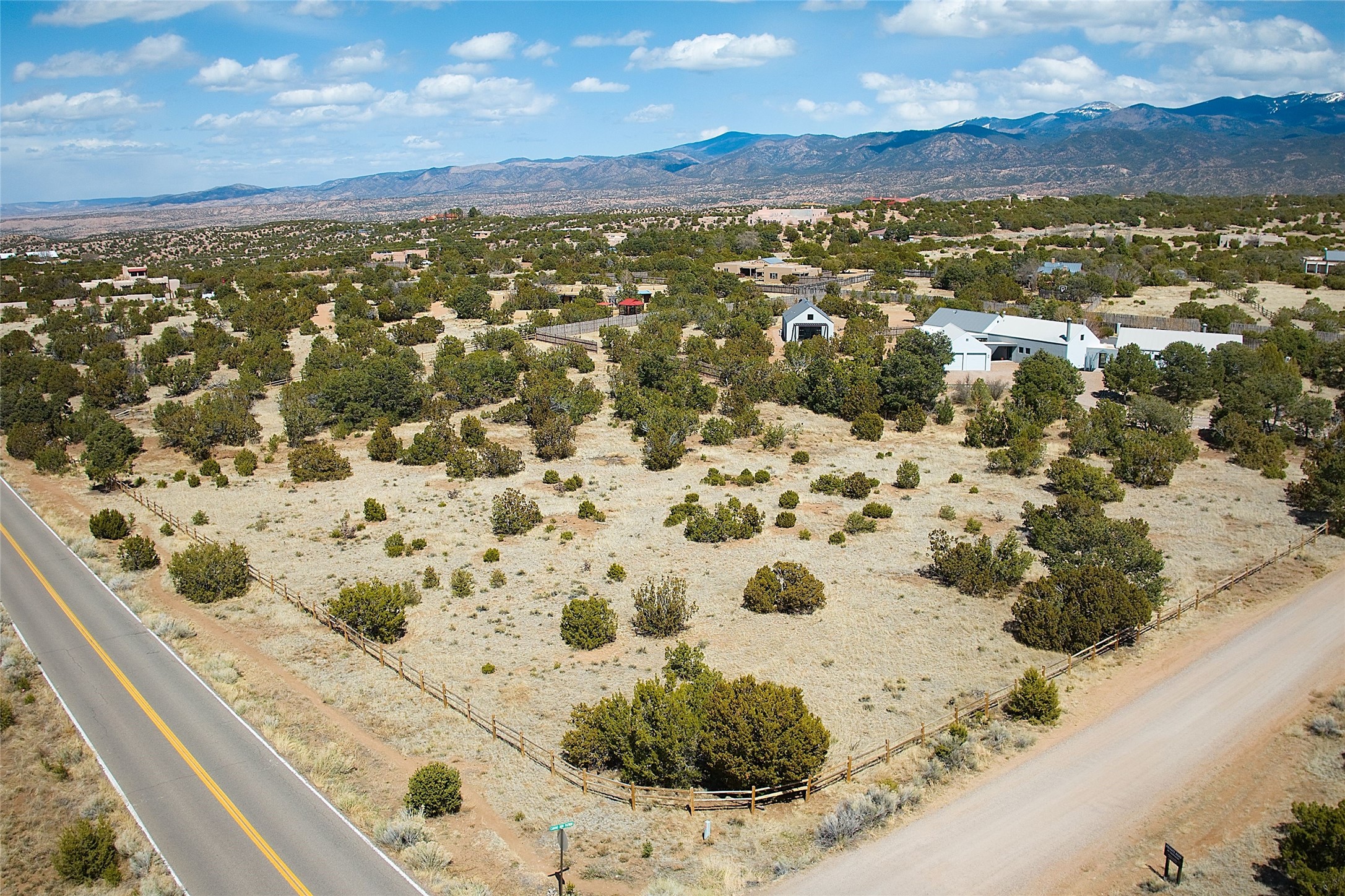 Along the desirable Tano Road to Camino De Los Monotyas, you'll find this 2.5 acre corner lot with panoramic views of the Sangre de Cristos to the east and the Jemez Mountains to the west. The property has great building sites, is flat and nicely fenced with split-rail fencin.