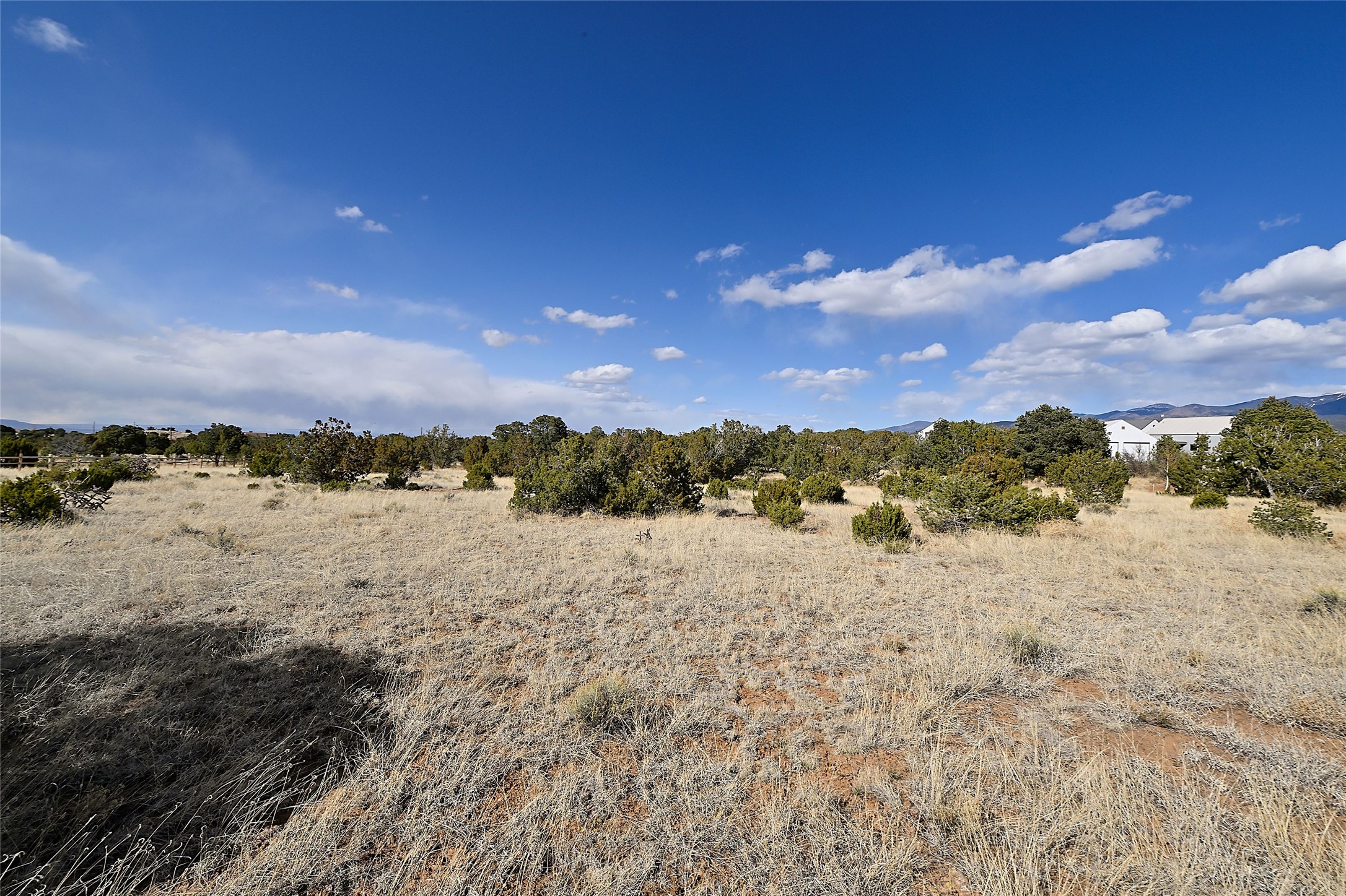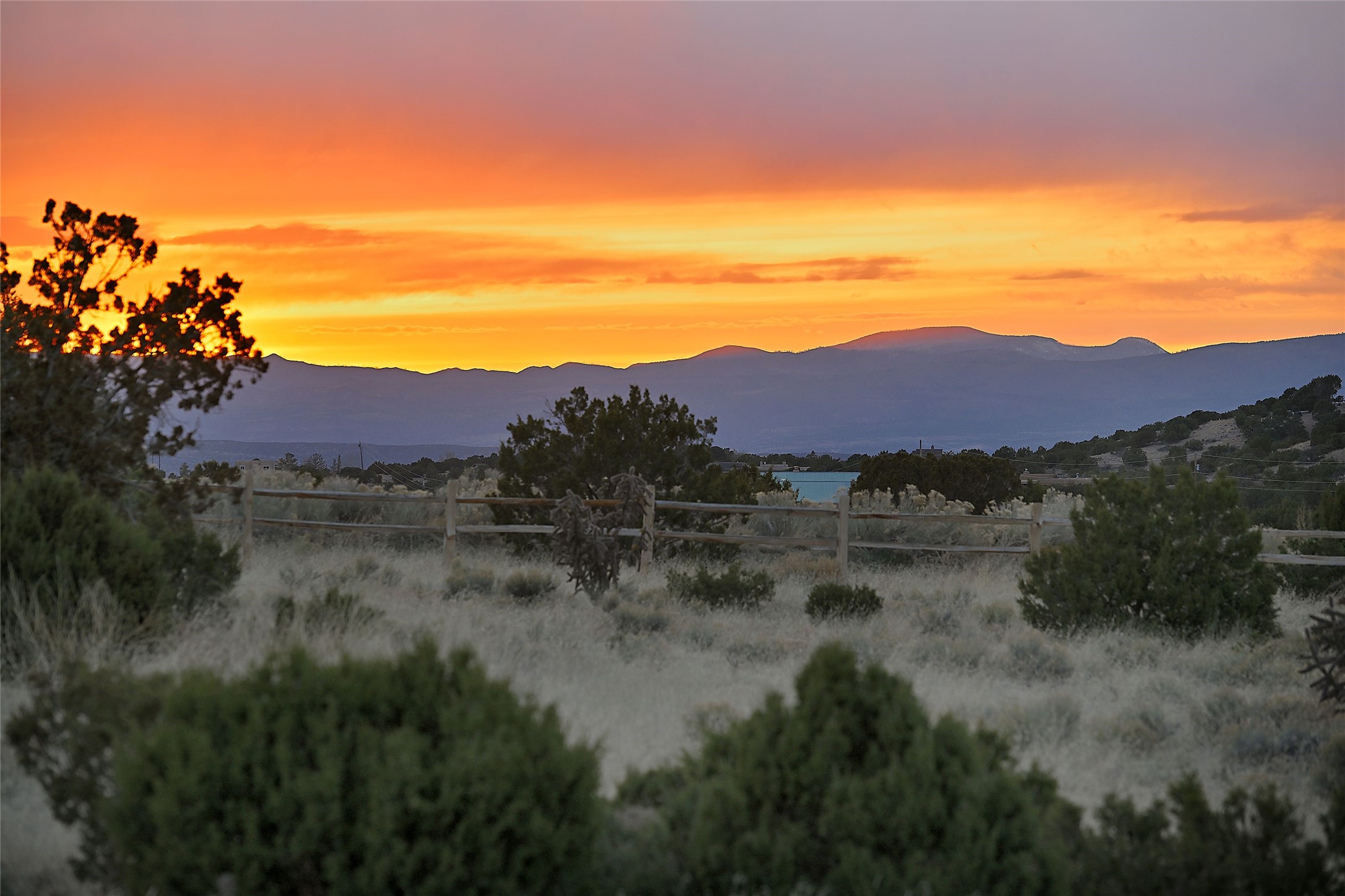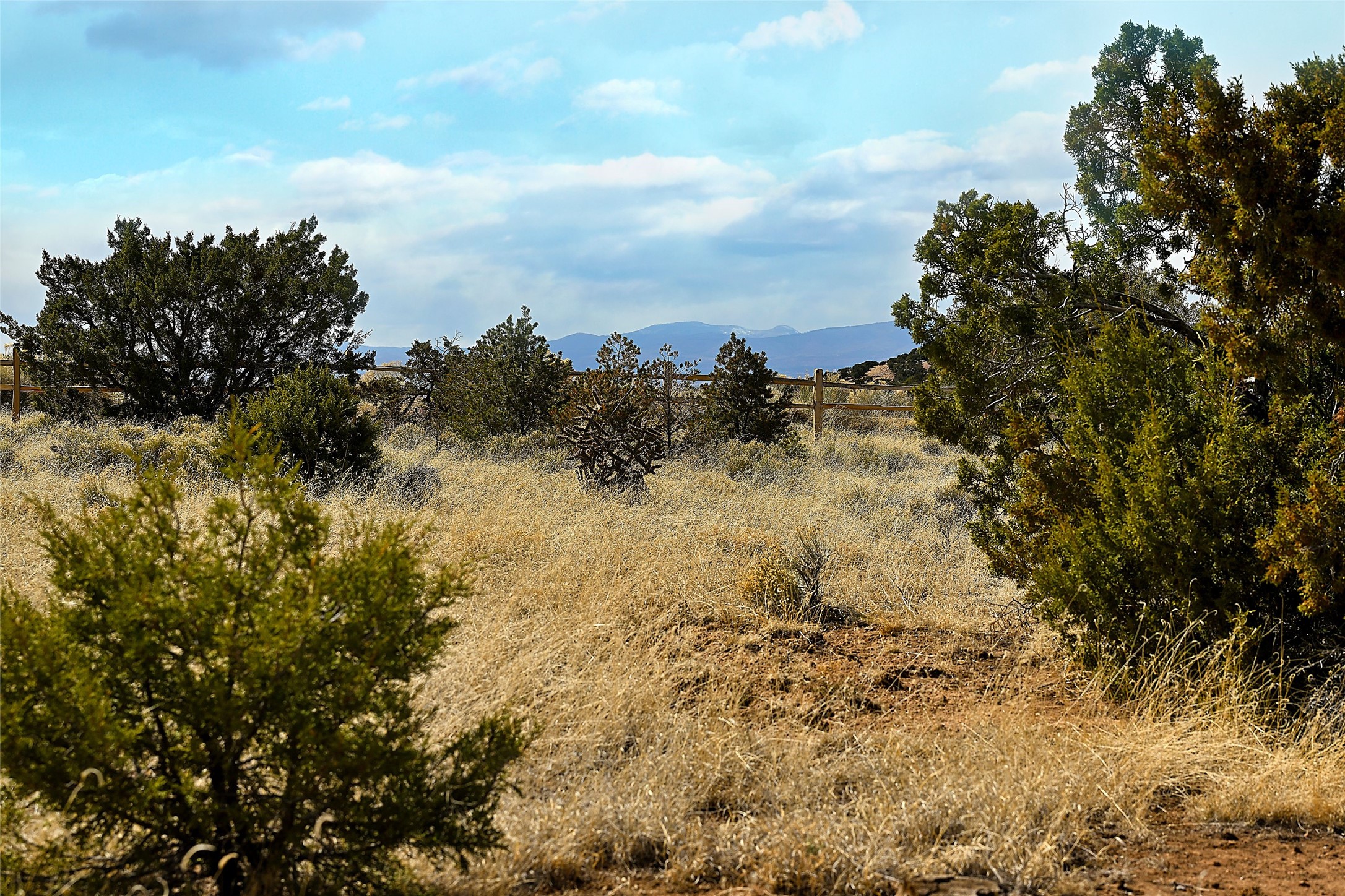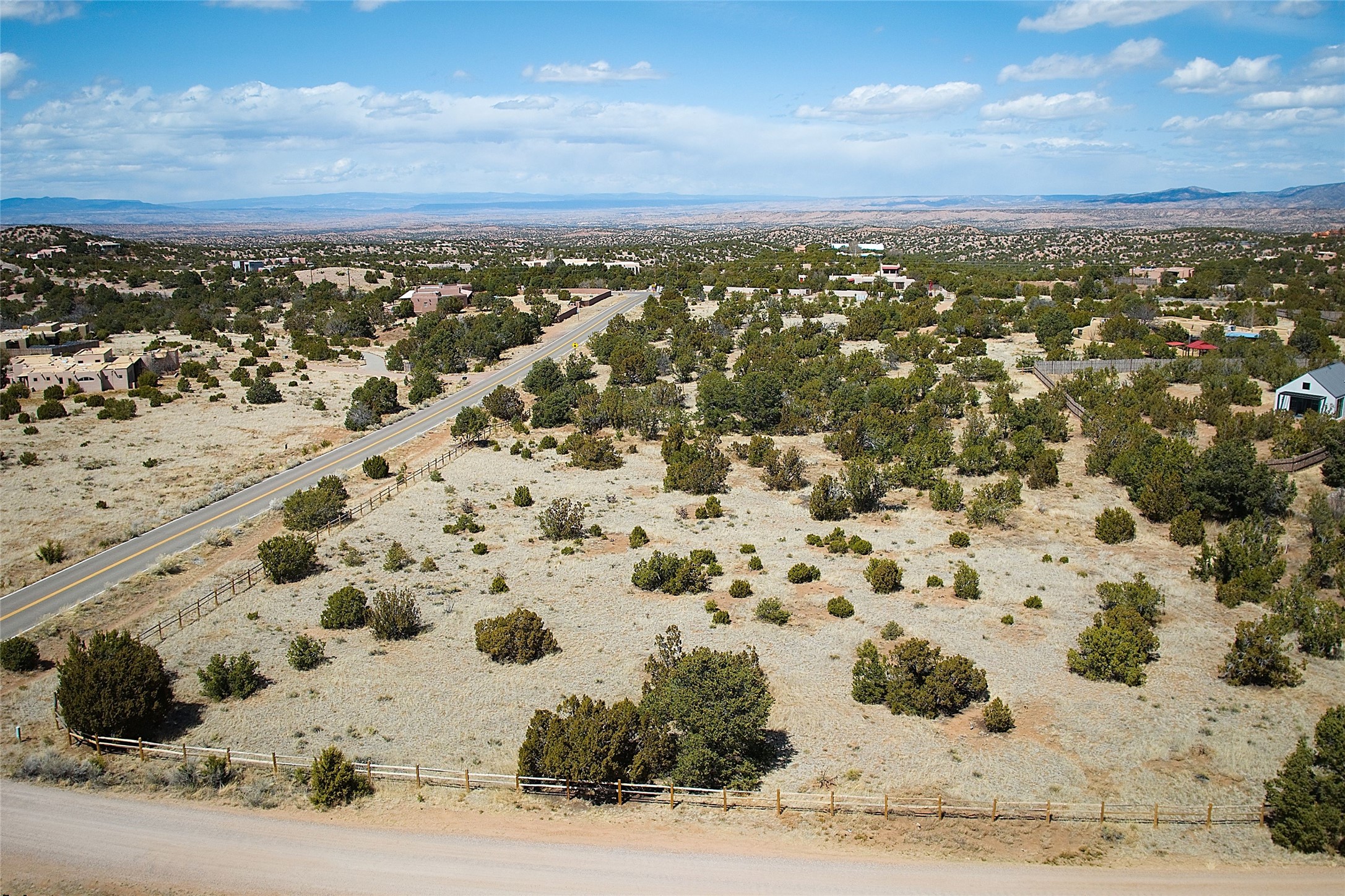 Along the desirable Tano Road to Camino De Los Monotyas, you'll find this 2.5 acre corner lot with panoramic views of the Sangre de Cristos to the east and the Jemez Mountains to the west. The property has great building sites, is flat and nicely fenced with split-rail fencin.