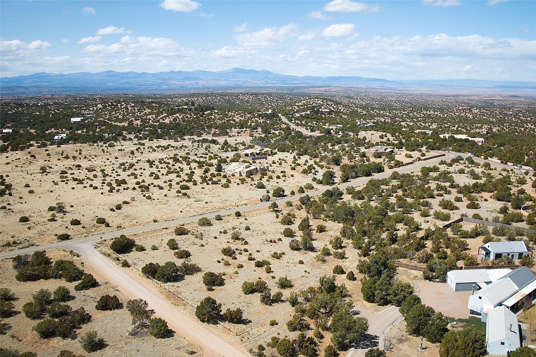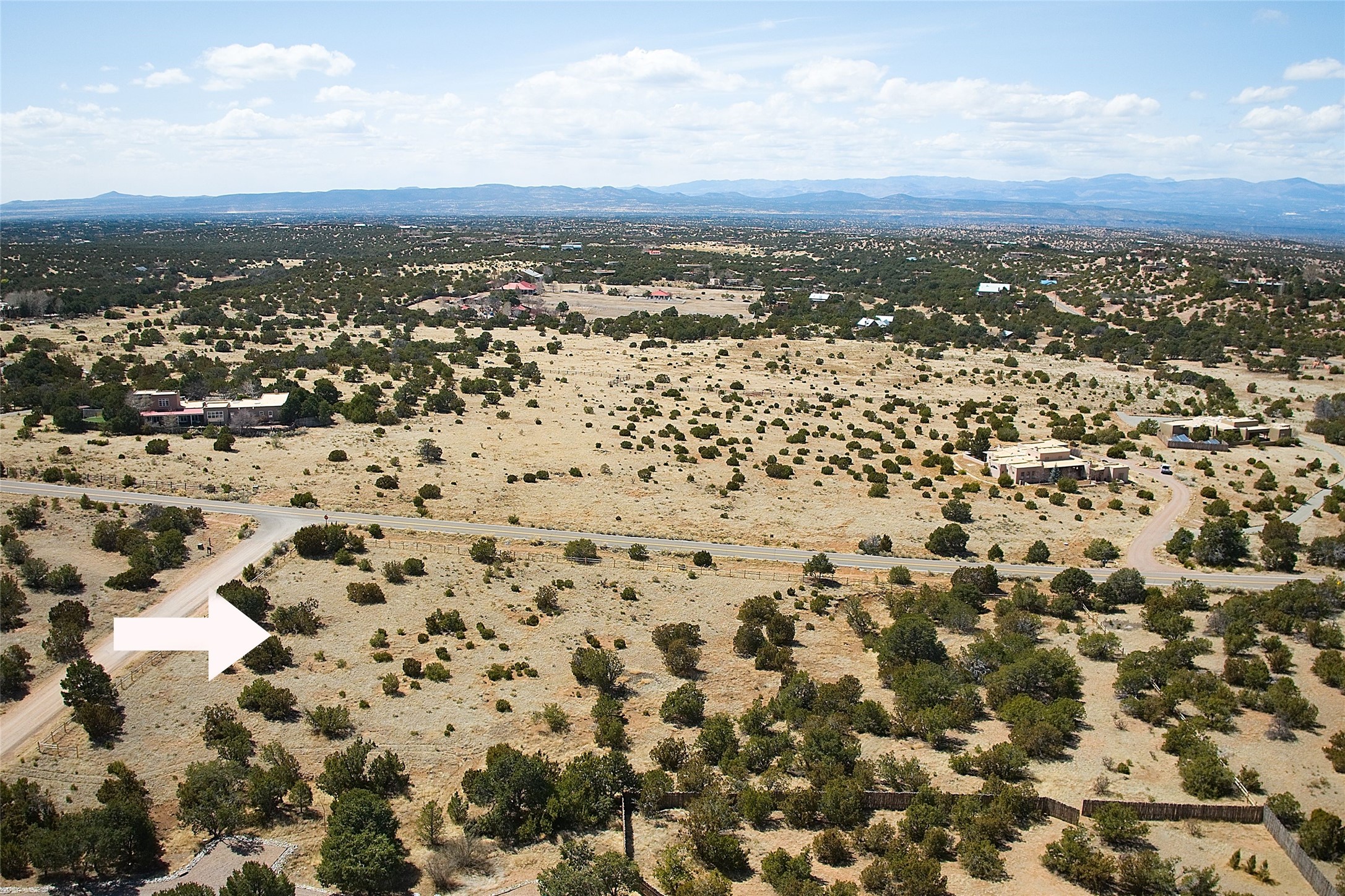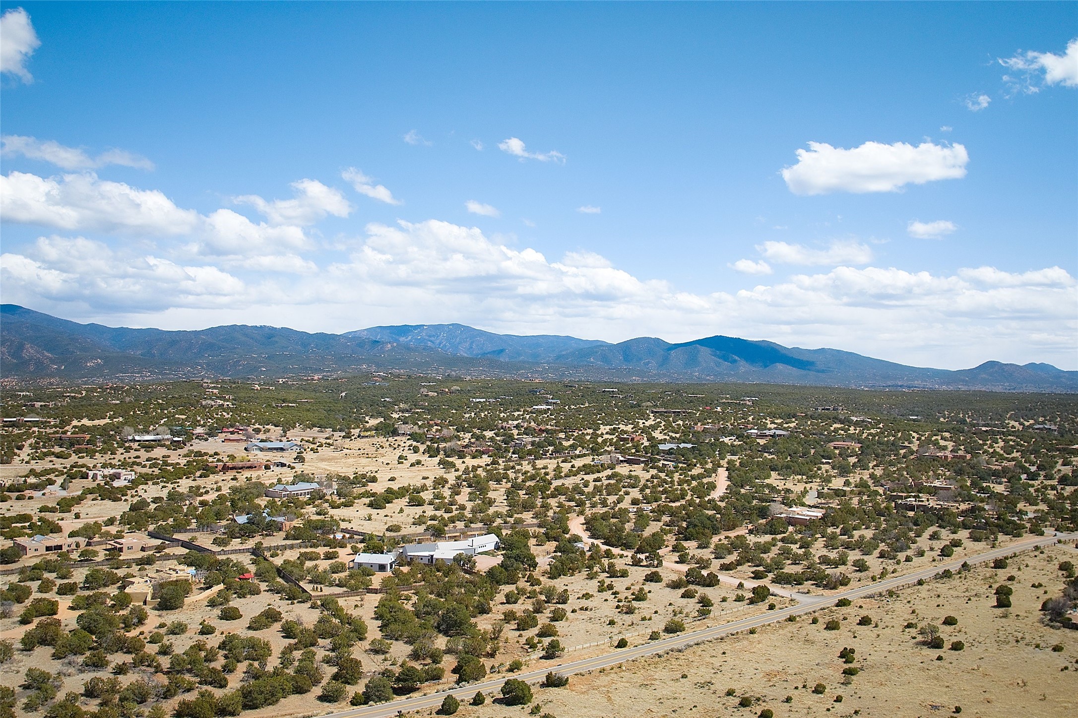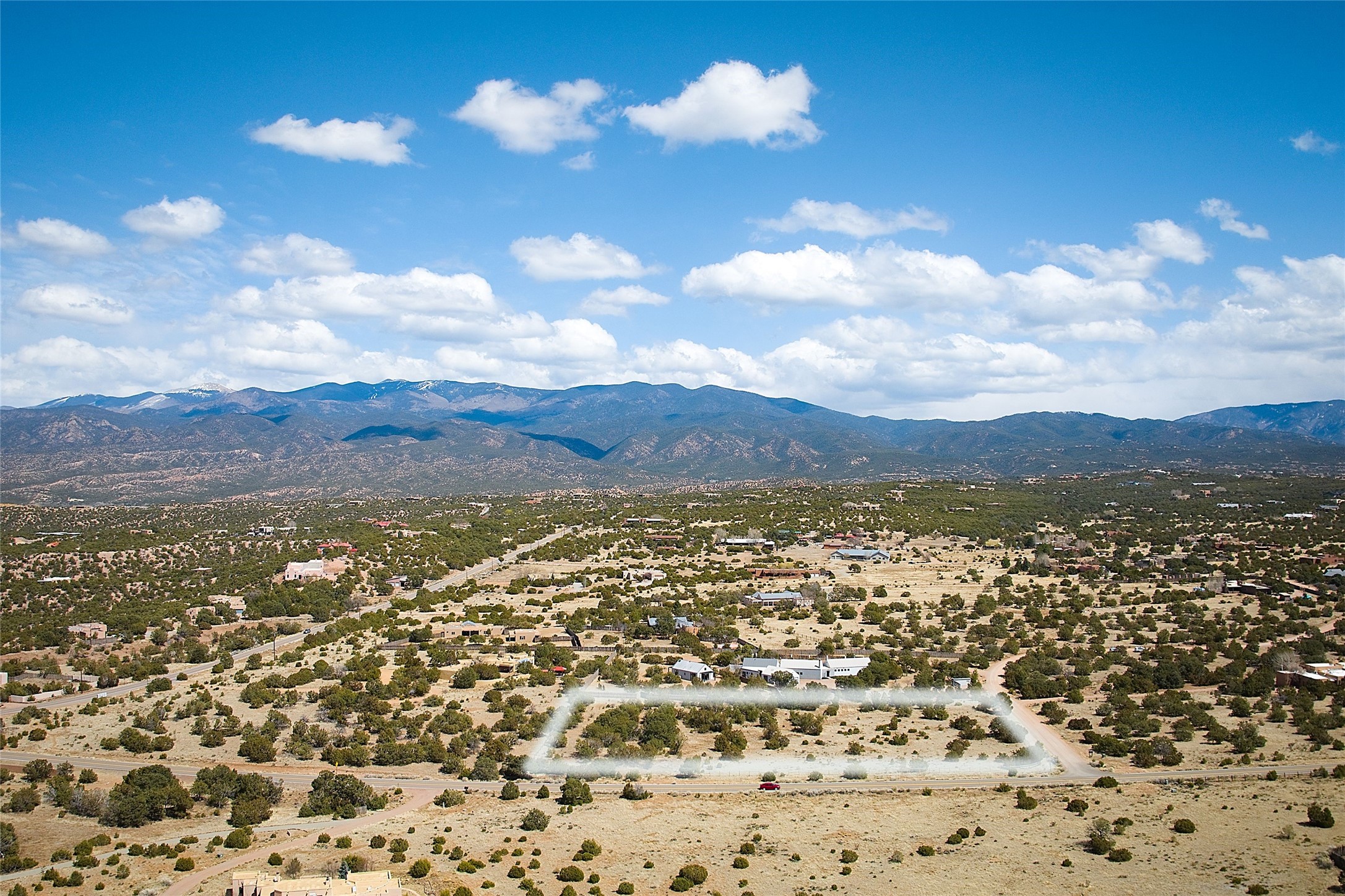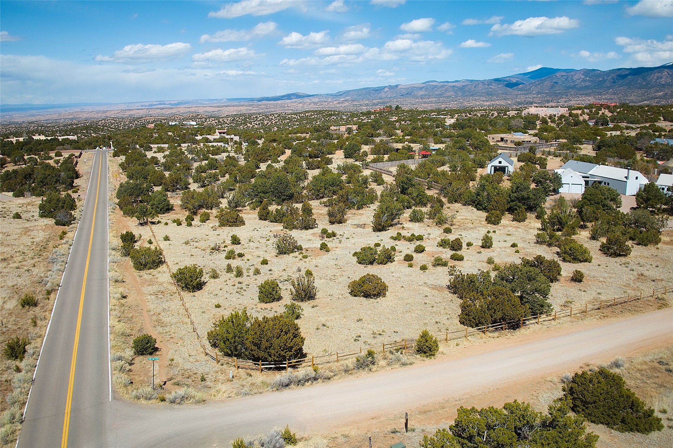 Along the desirable Tano Road to Camino De Los Monotyas, you'll find this 2.5 acre corner lot with panoramic views of the Sangre de Cristos to the east and the Jemez Mountains to the west. The property has great building sites, is flat and nicely fenced with split-rail fencin.