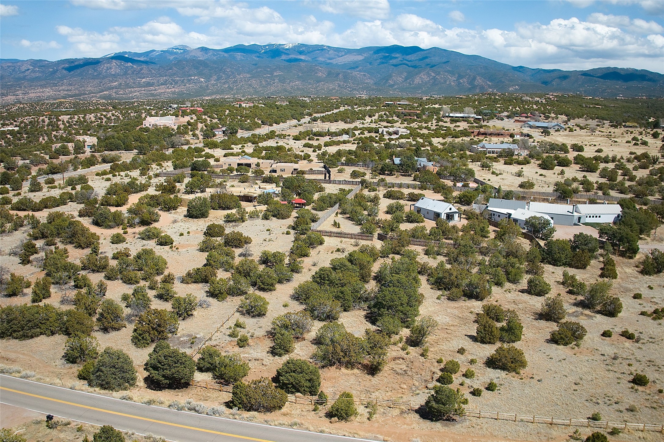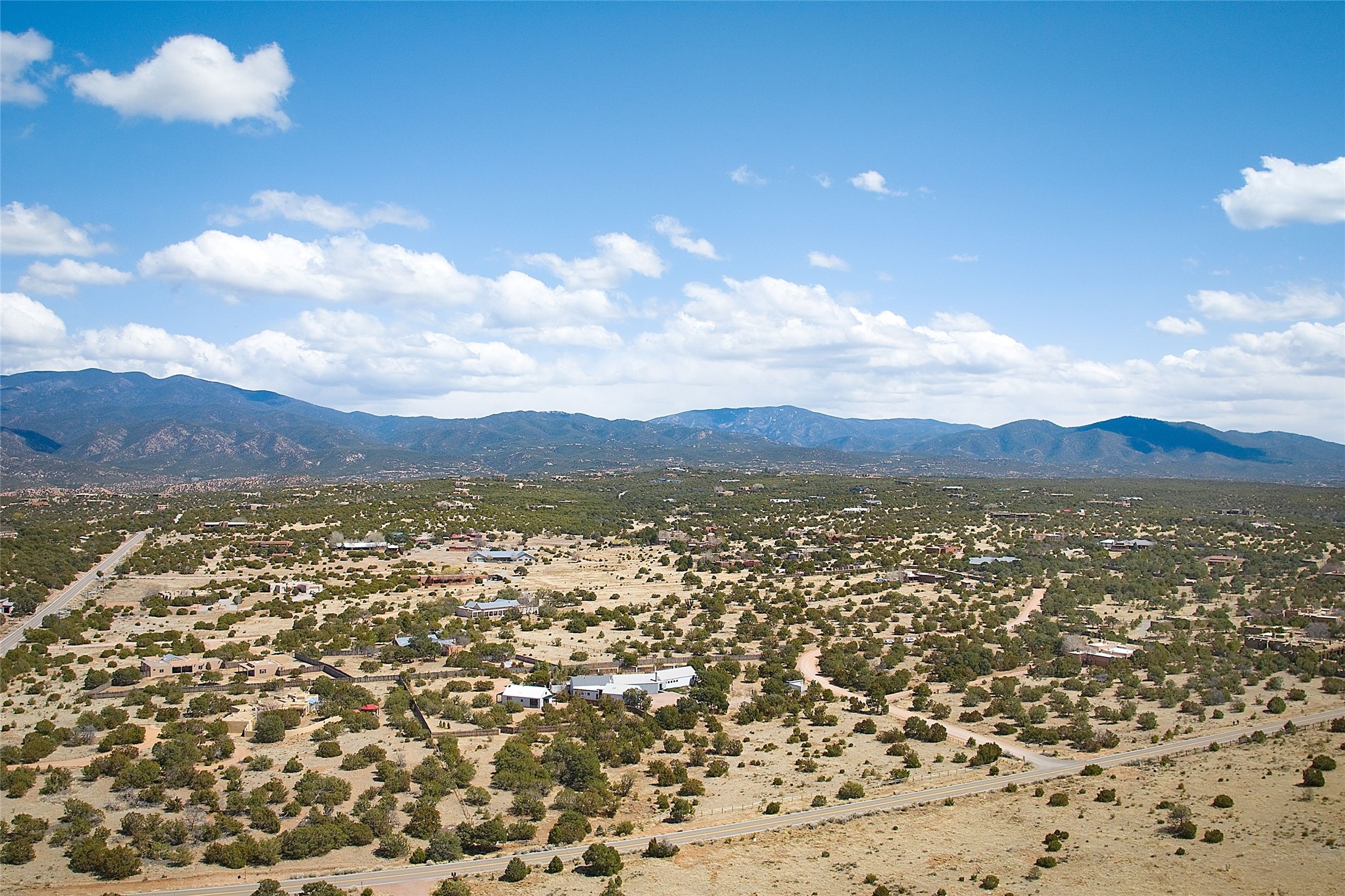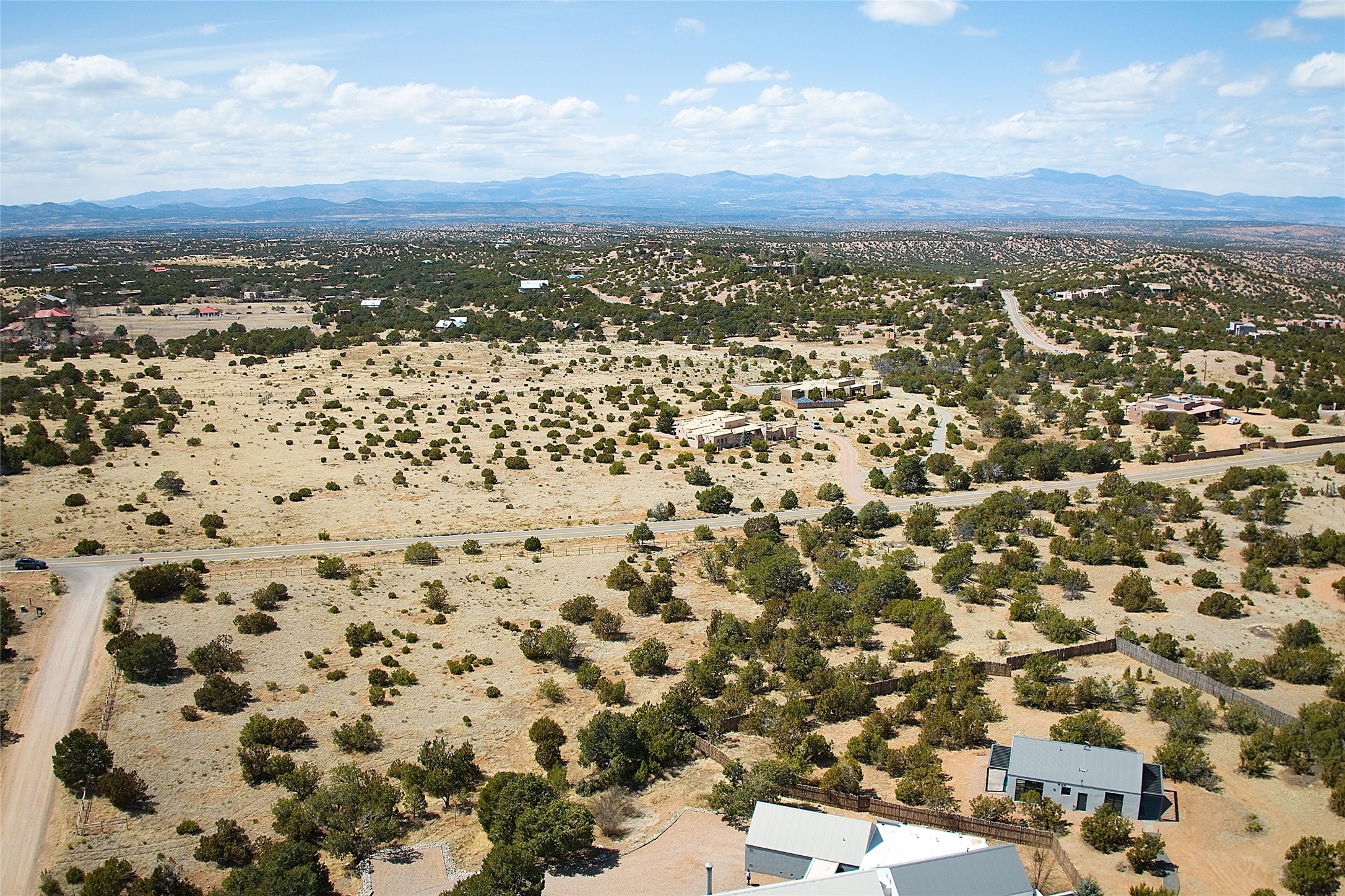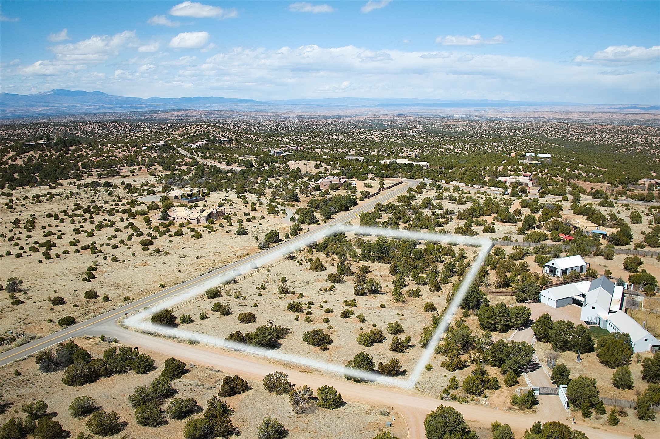 Along the desirable Tano Road to Camino De Los Monotyas, you'll find this 2.5 acre corner lot with panoramic views of the Sangre de Cristos to the east and the Jemez Mountains to the west. The property has great building sites, is flat and nicely fenced with split-rail fencin.