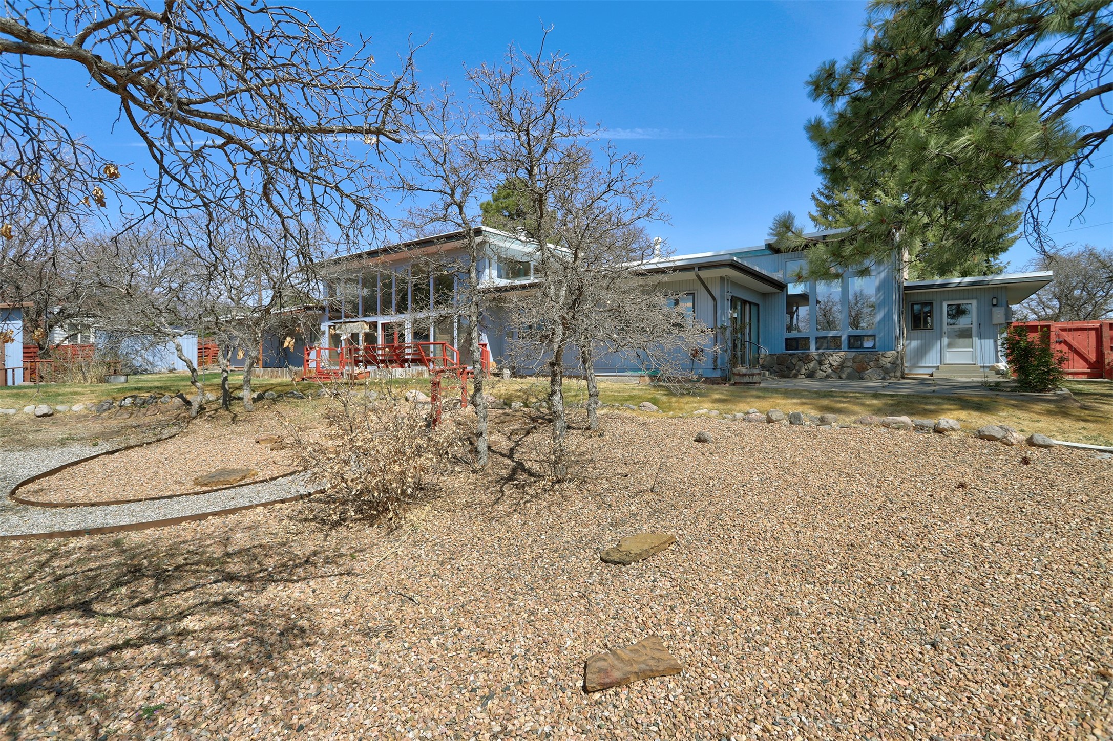 *Impressive Barranca Mesa Home on a Spacious .75-Acre Corner Lot* Welcome to this stunning single-level, 3,300 sq. ft. home, perfectly positioned on a .75-acre corner lot that backs to Bayo Canyon. With an expansive setting, the backyard feels as if it never ends. This residence offers abundant natural light, generous living spaces, and a layout designed for both comfort and functionality. Step into the grand foyer, where large picture windows fill the home with sunlight. The great room boasts floor-to-ceiling windows, a wood-burning fireplace, and a cozy reading nook--the perfect place to relax in the afternoon sun. Enjoy meals in the formal dining room or the inviting eat-in kitchen. Enjoy entertaining in the spacious sunroom, featuring charming redbrick floors, a wet bar, and ample room for a pool or other game tables. The west wing of the home features three well-appointed bedrooms, while the east wing is dedicated to the primary suite--a private retreat with its own fireplace, renovated en-suite bathroom, walk-in closet, and direct access to an outdoor patio. Outside, the front yard is beautifully maintained with a sprinkler system and has been cared for by Green Lawn for several years. The private backyard oasis provides ample space for gardening, play, and outdoor gatherings. Additional highlights include a workshop with front and back access, and a heated two-car garage. You'll love the prime location, the ease of single-level living, and the lush landscaping. Don't miss this incredible opportunity to own a home on Barranca Mesa. Schedule your private showing today!