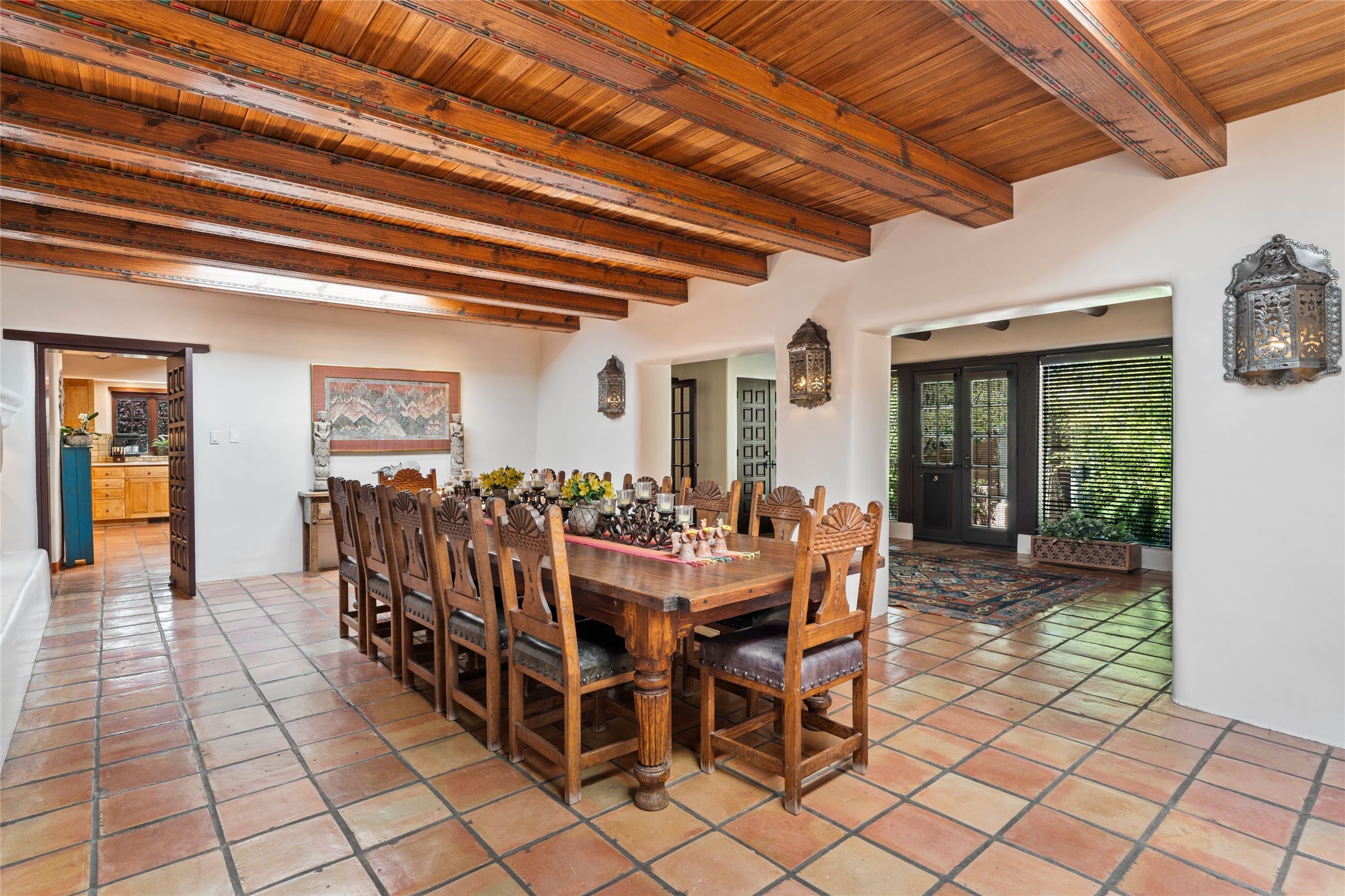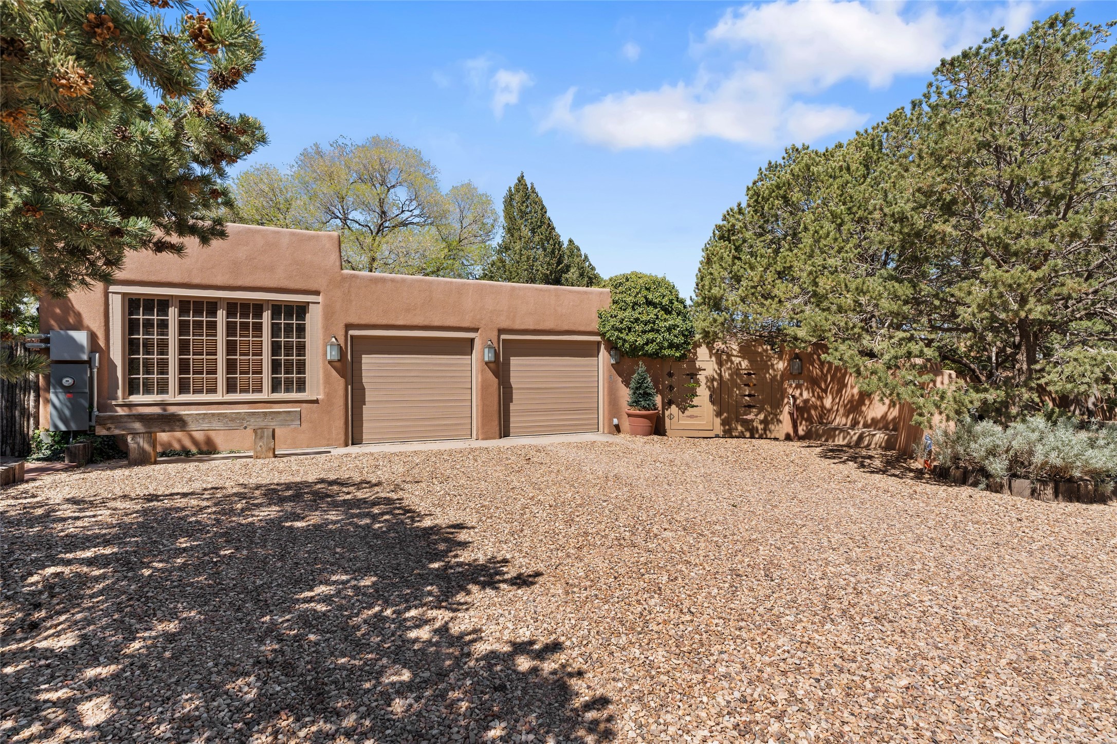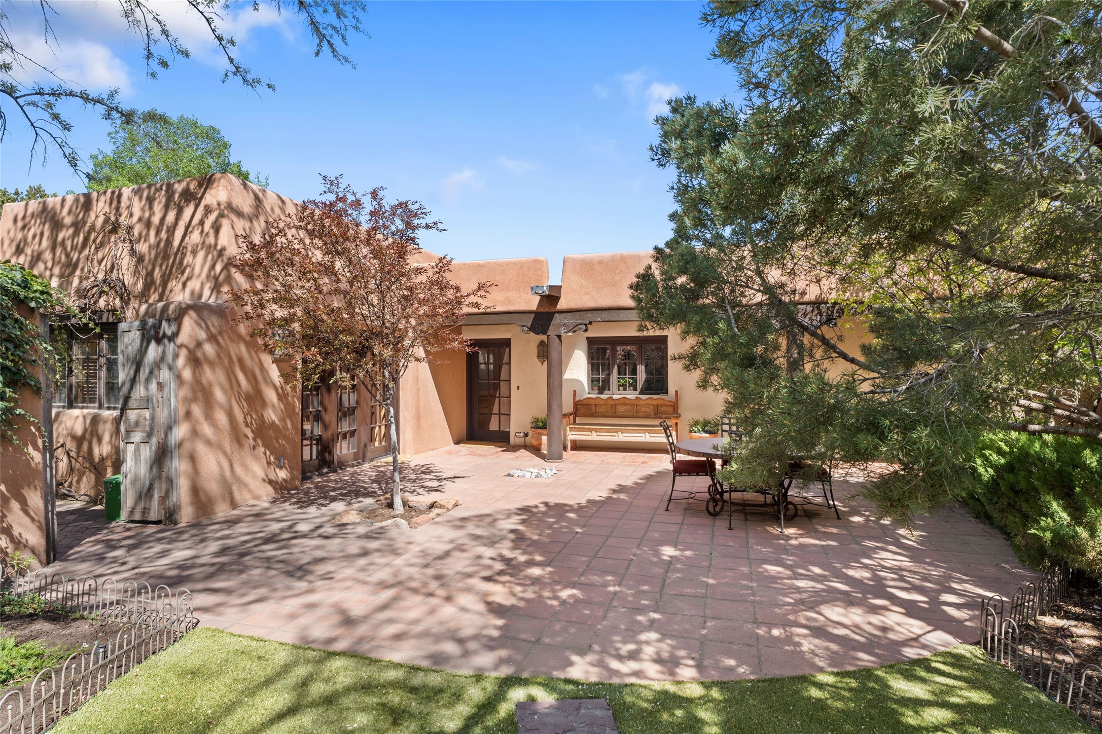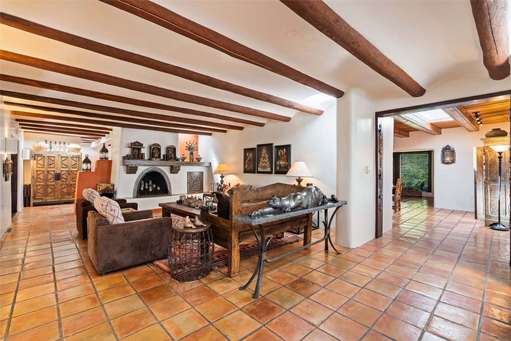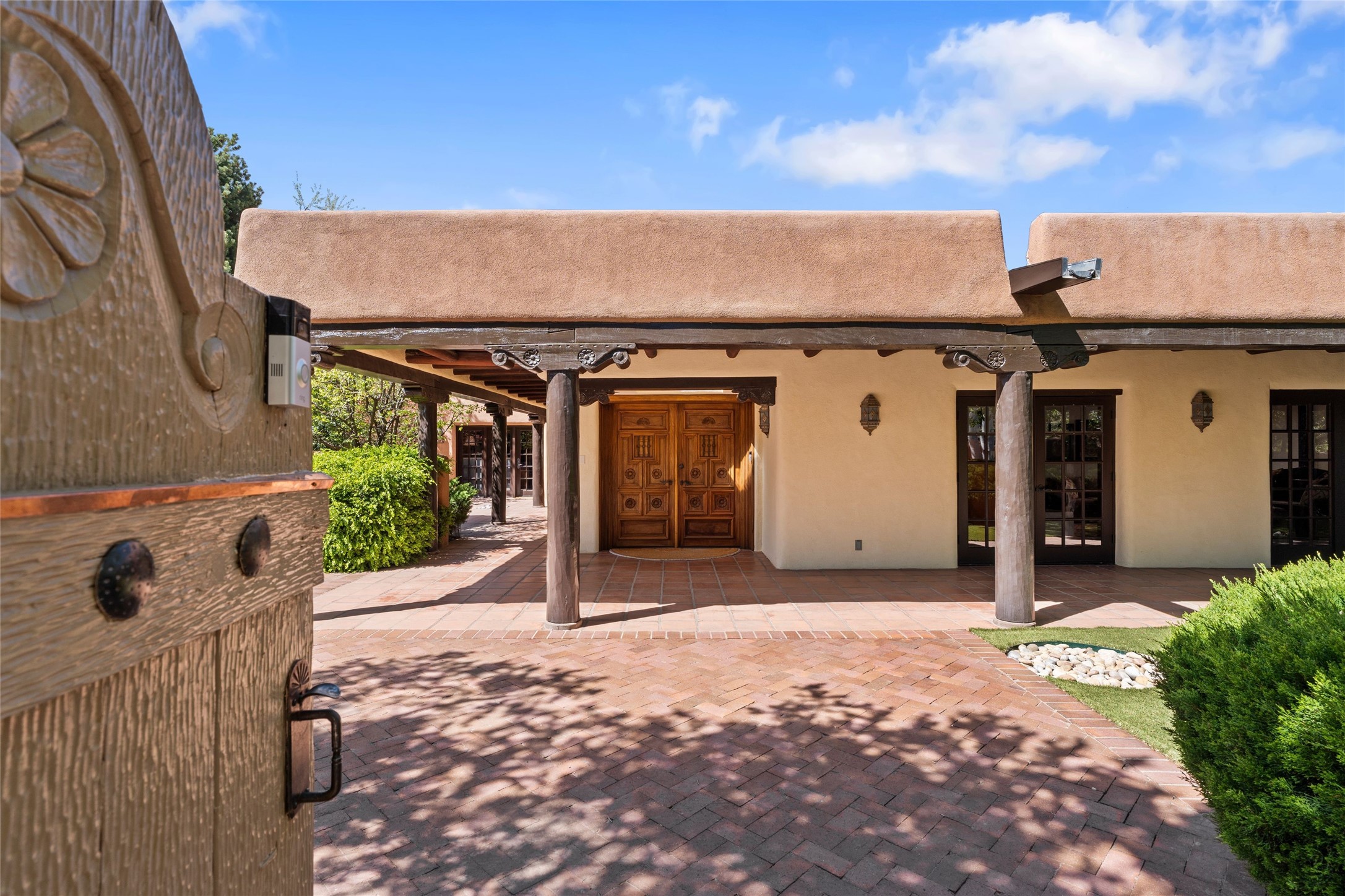 The elegant entry courtyard and portal set an appropriate tone for this impressive property. Privately hidden behind a gated wall is an impeccably maintained home, surrounded by mature trees and multiple courtyards. In addition to the main residence is a 1 bedroom casita. The main house is spacious , gracious and full of authentic Southwest details: vintage Saltillo floors, French doors, vigas, hand-carved and painted beams and woodwork, nichos, bancos and fireplaces. The primary bedroom is expansive and private, and opens to its own patio with hot tub, fireplace, and views.There are 2 additional bedrooms in the main house, plus many extras, including: a large office, a wet bar, a media/library room, a roof top deck and a generator that services the entire house. Plus ample parking (for up to 10 cars) and a 2 car garage are amenities not often found in this coveted Eastside neighborhood. And finally, the LOCATION - not to be missed!!!