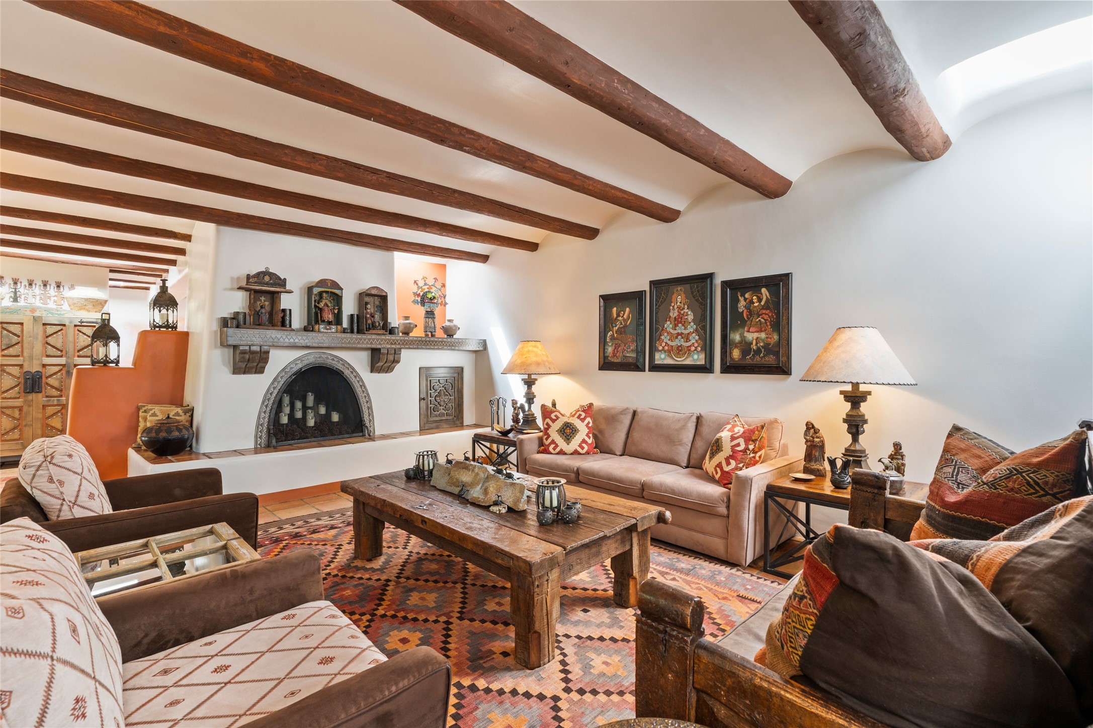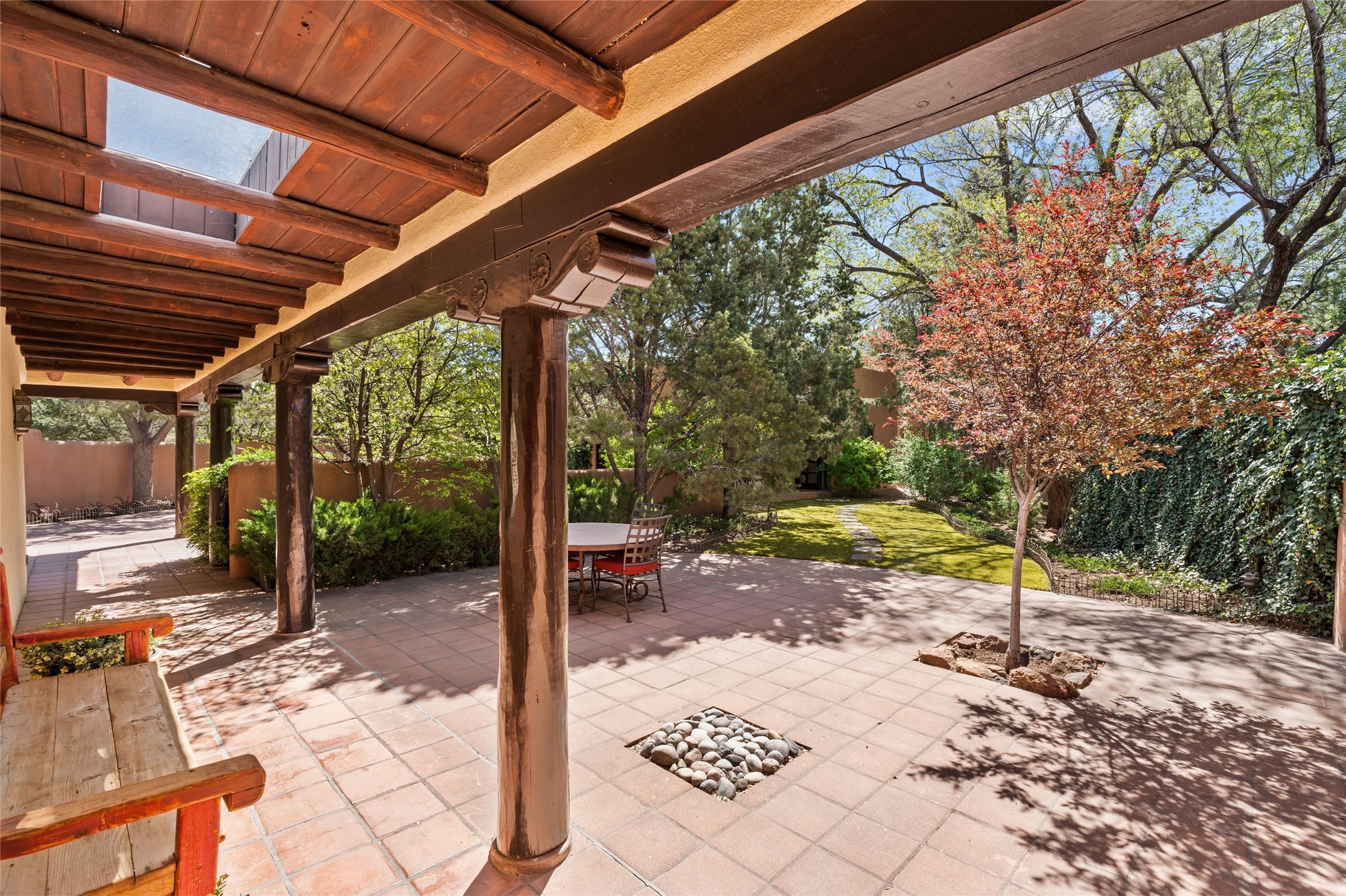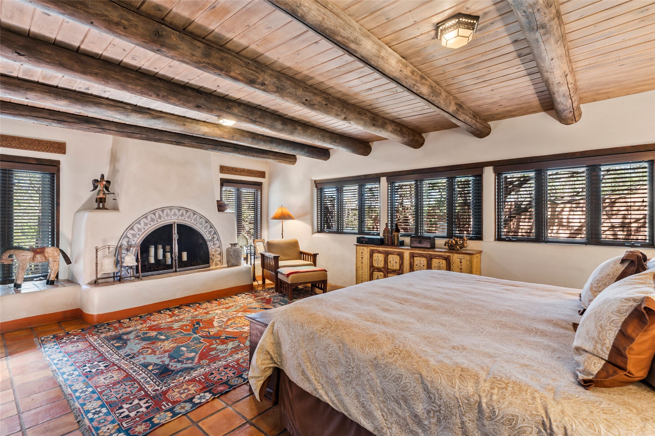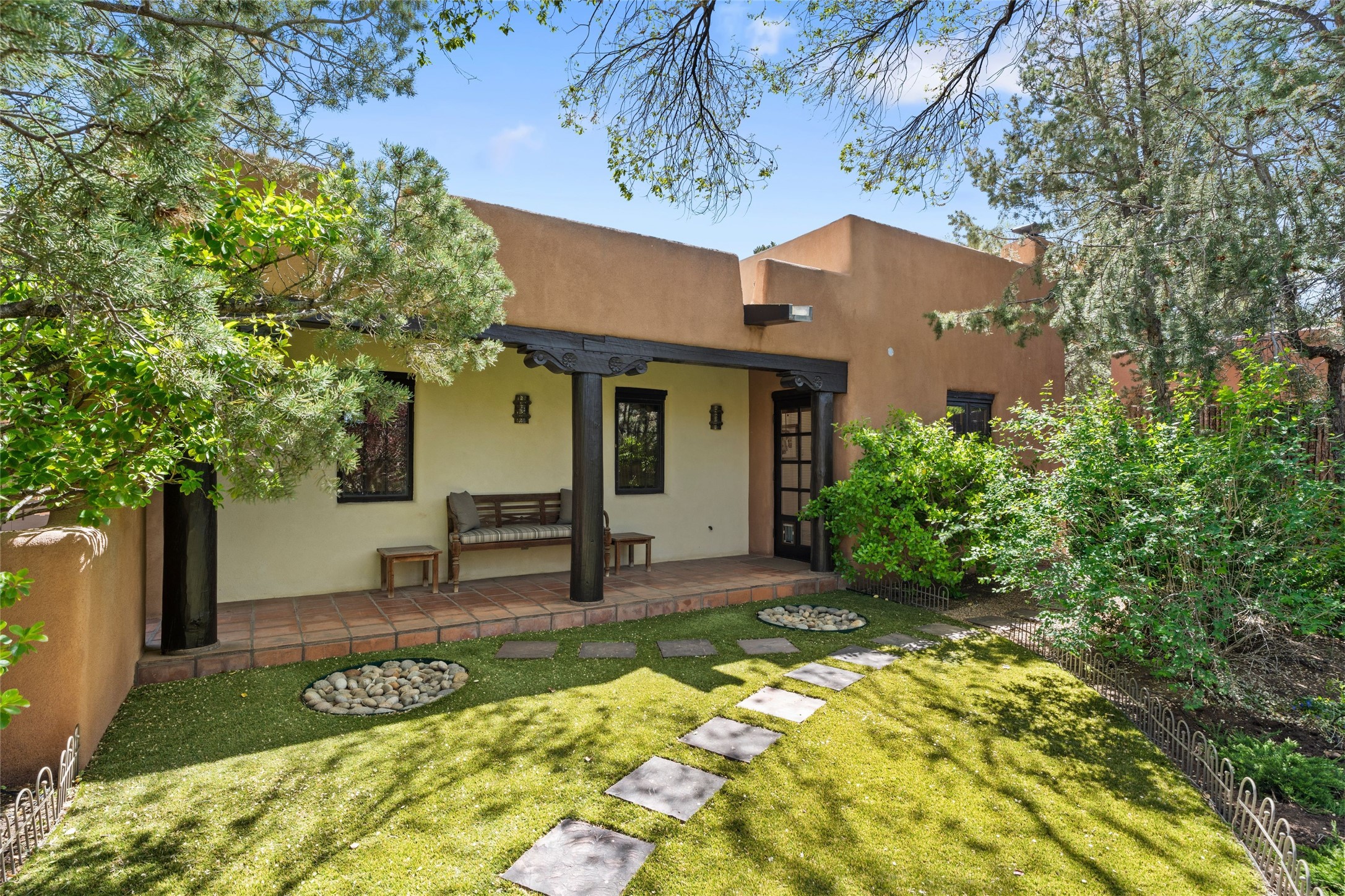 The elegant entry courtyard and portal set an appropriate tone for this impressive property. Privately hidden behind a gated wall is an impeccably maintained home, surrounded by mature trees and multiple courtyards. In addition to the main residence is a 1 bedroom casita. The main house is spacious , gracious and full of authentic Southwest details: vintage Saltillo floors, French doors, vigas, hand-carved and painted beams and woodwork, nichos, bancos and fireplaces. The primary bedroom is expansive and private, and opens to its own patio with hot tub, fireplace, and views.There are 2 additional bedrooms in the main house, plus many extras, including: a large office, a wet bar, a media/library room, a roof top deck and a generator that services the entire house. Plus ample parking (for up to 10 cars) and a 2 car garage are amenities not often found in this coveted Eastside neighborhood. And finally, the LOCATION - not to be missed!!!