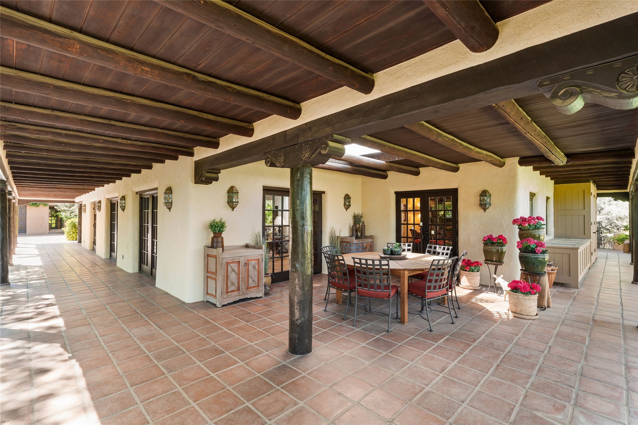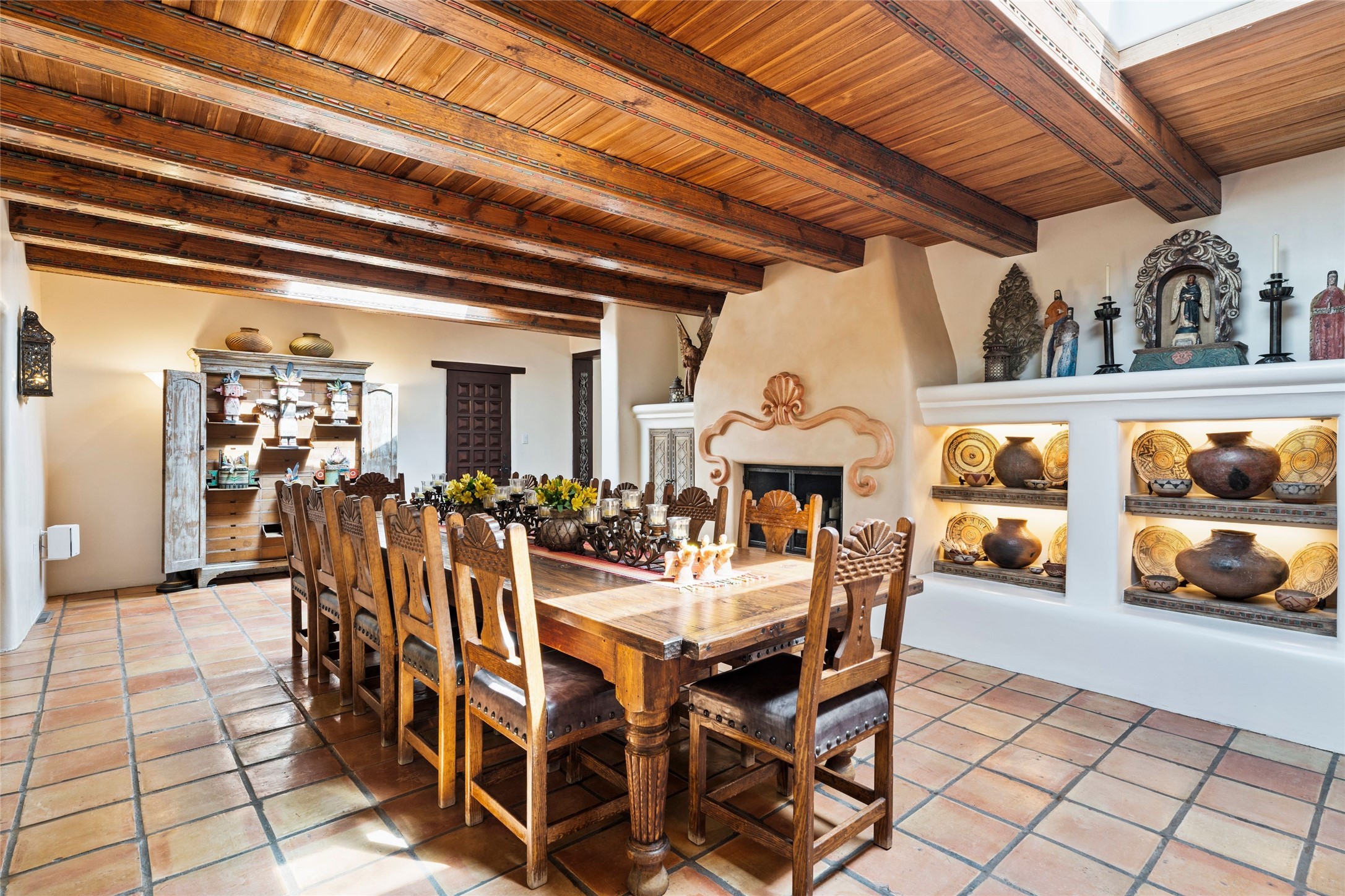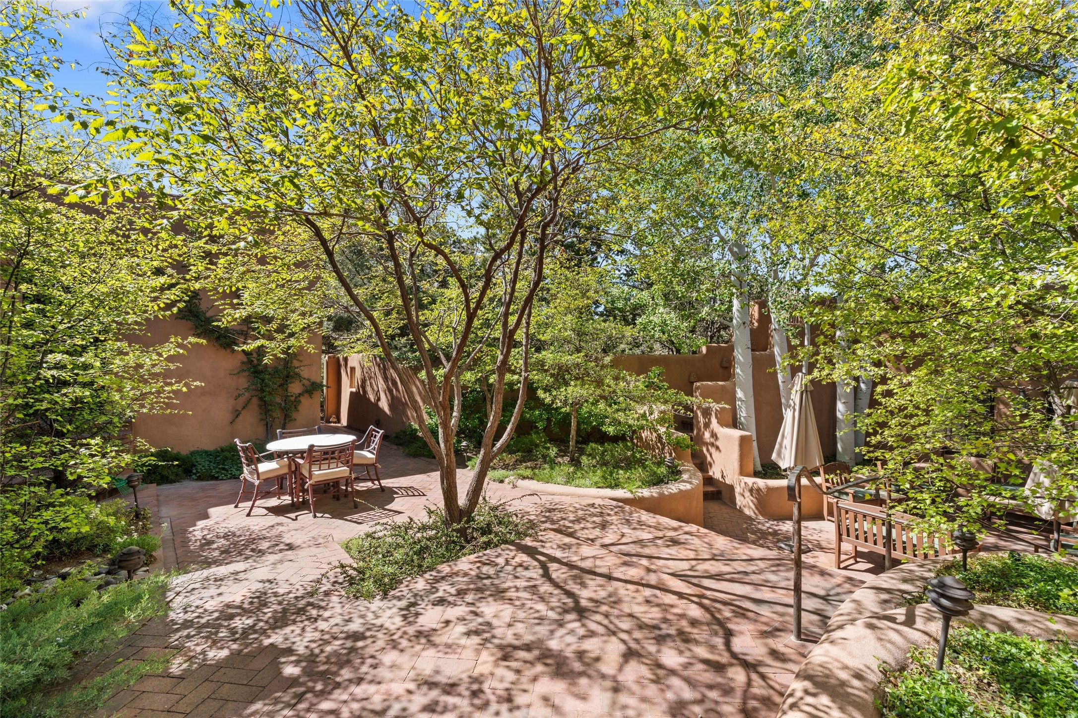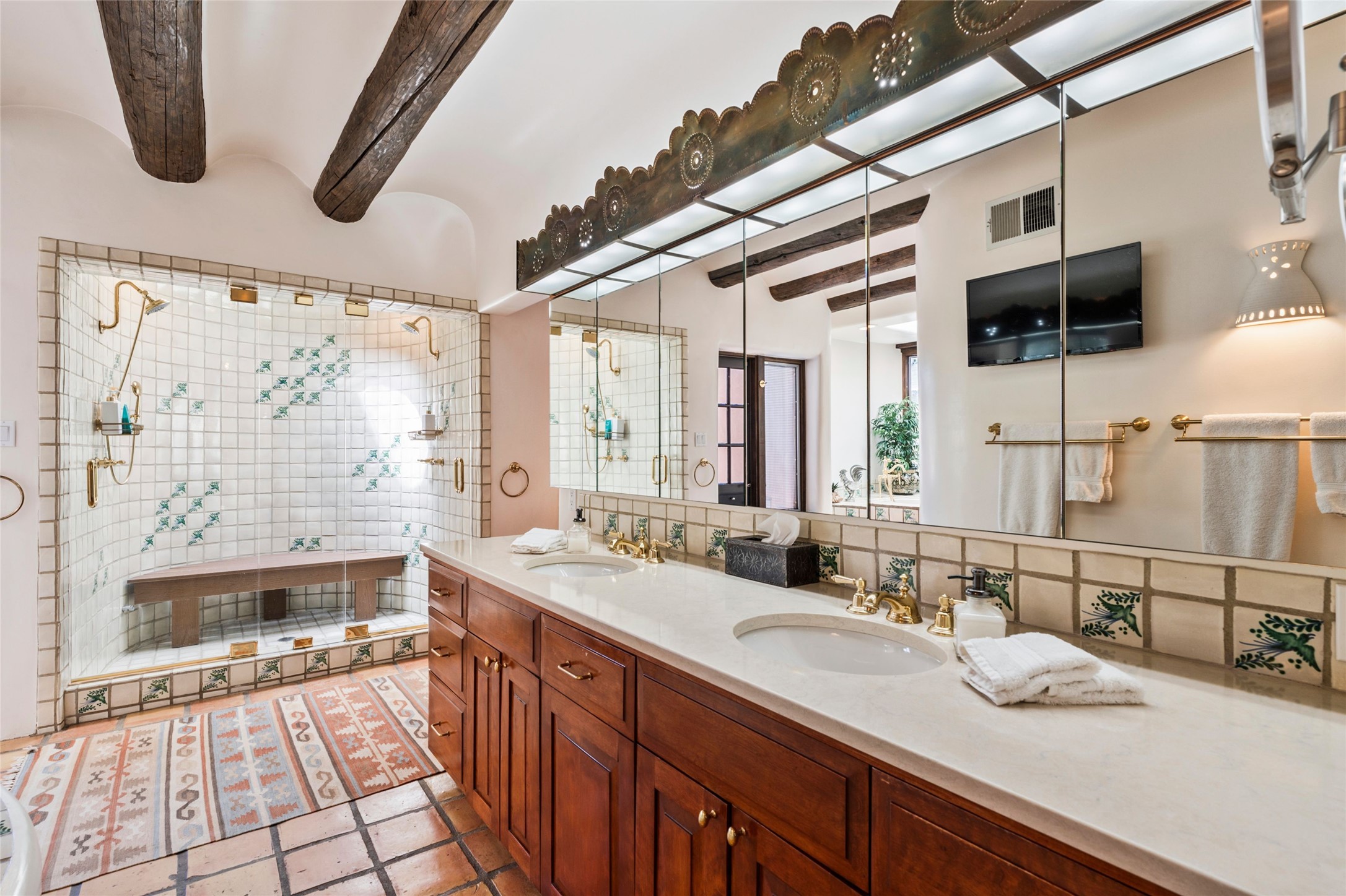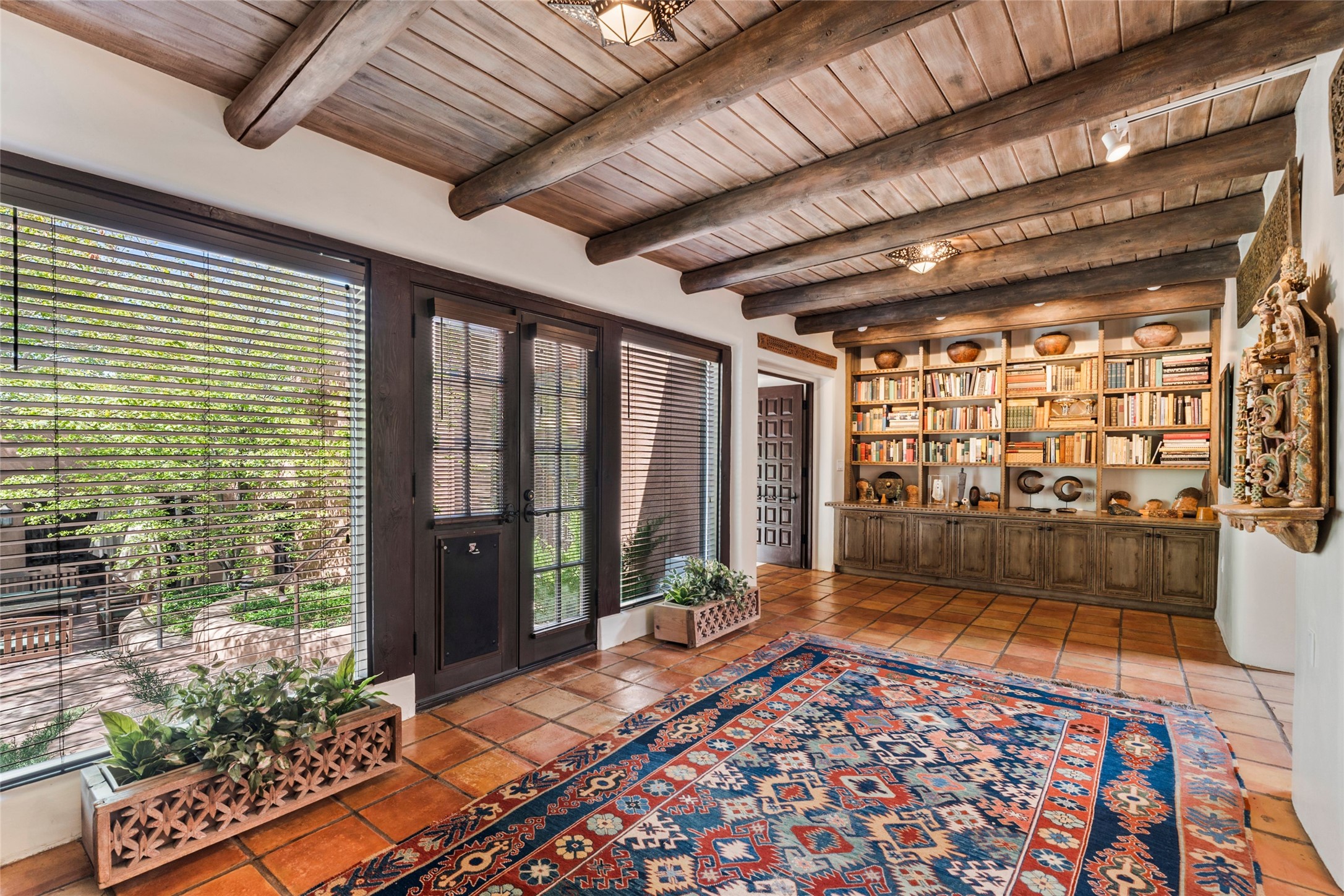 The elegant entry courtyard and portal set an appropriate tone for this impressive property. Privately hidden behind a gated wall is an impeccably maintained home, surrounded by mature trees and multiple courtyards. In addition to the main residence is a 1 bedroom casita. The main house is spacious , gracious and full of authentic Southwest details: vintage Saltillo floors, French doors, vigas, hand-carved and painted beams and woodwork, nichos, bancos and fireplaces. The primary bedroom is expansive and private, and opens to its own patio with hot tub, fireplace, and views.There are 2 additional bedrooms in the main house, plus many extras, including: a large office, a wet bar, a media/library room, a roof top deck and a generator that services the entire house. Plus ample parking (for up to 10 cars) and a 2 car garage are amenities not often found in this coveted Eastside neighborhood. And finally, the LOCATION - not to be missed!!!