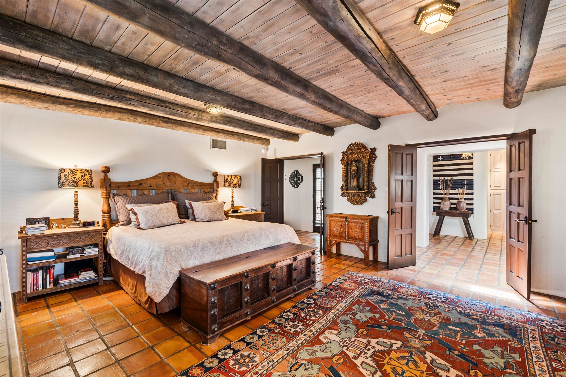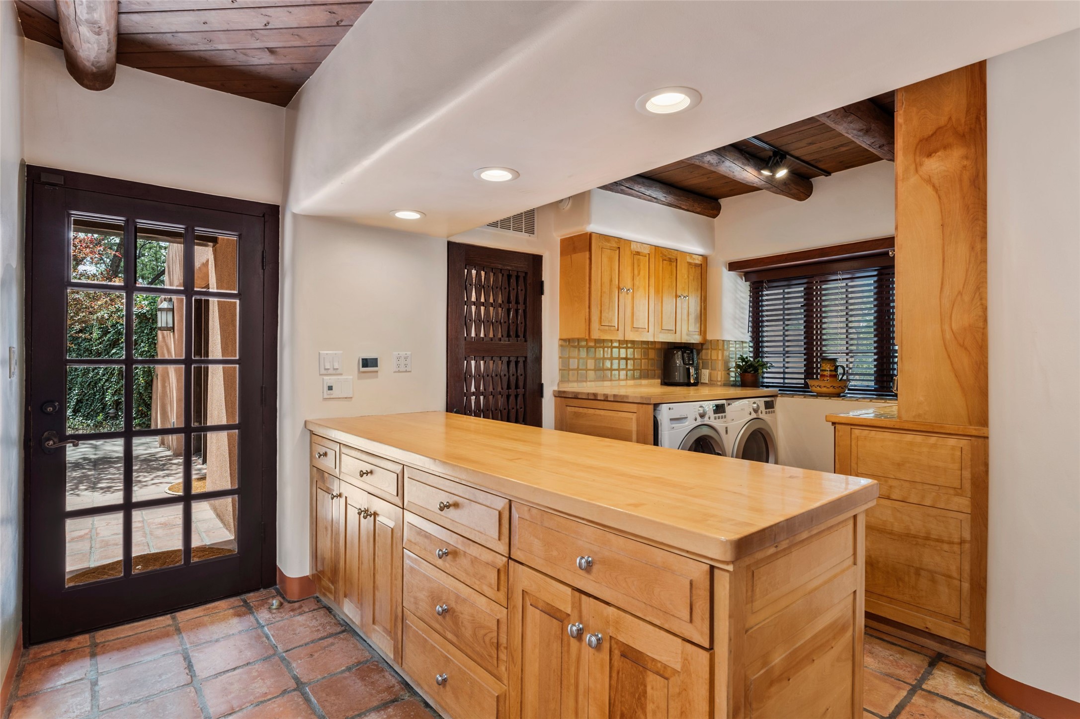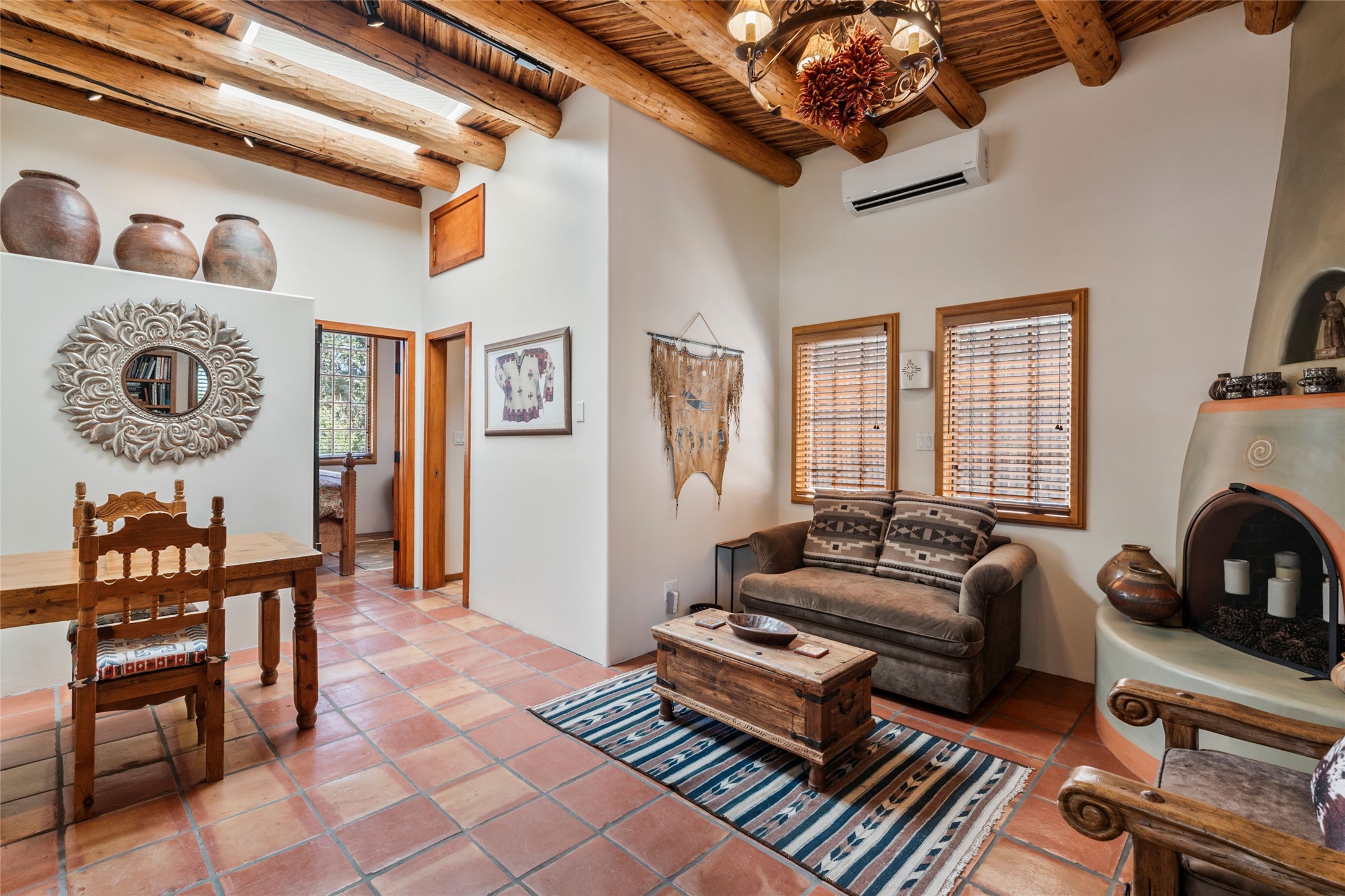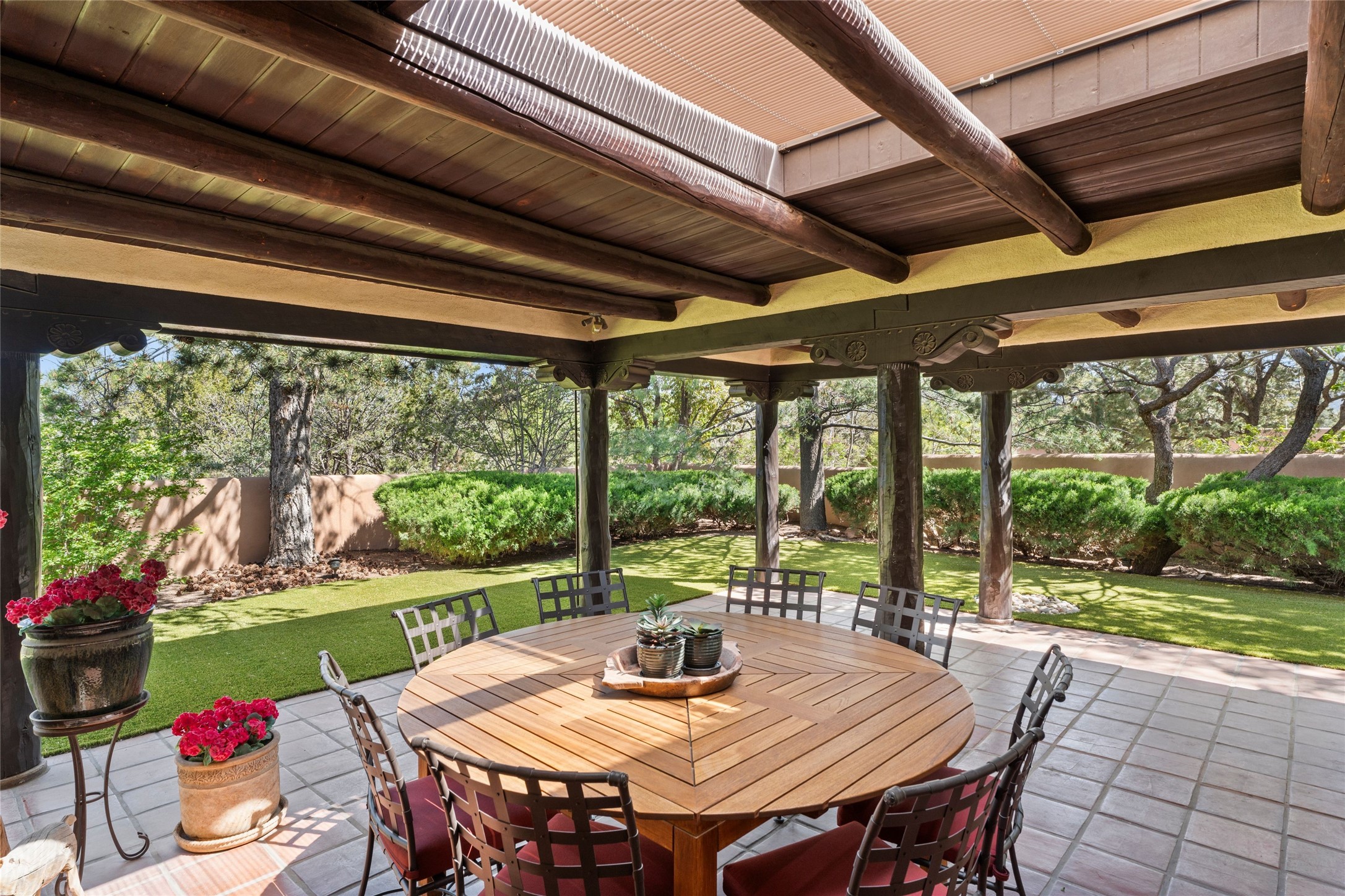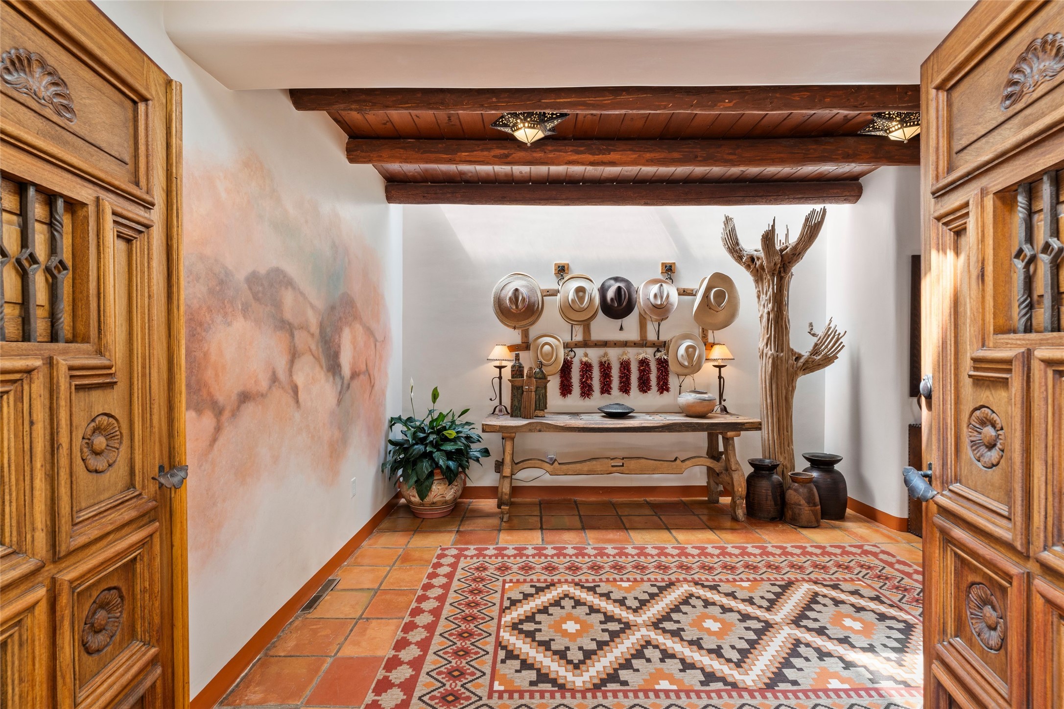 The elegant entry courtyard and portal set an appropriate tone for this impressive property. Privately hidden behind a gated wall is an impeccably maintained home, surrounded by mature trees and multiple courtyards. In addition to the main residence is a 1 bedroom casita. The main house is spacious , gracious and full of authentic Southwest details: vintage Saltillo floors, French doors, vigas, hand-carved and painted beams and woodwork, nichos, bancos and fireplaces. The primary bedroom is expansive and private, and opens to its own patio with hot tub, fireplace, and views.There are 2 additional bedrooms in the main house, plus many extras, including: a large office, a wet bar, a media/library room, a roof top deck and a generator that services the entire house. Plus ample parking (for up to 10 cars) and a 2 car garage are amenities not often found in this coveted Eastside neighborhood. And finally, the LOCATION - not to be missed!!!