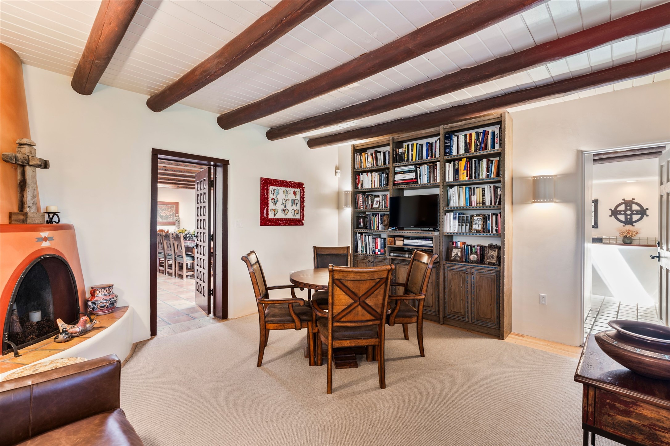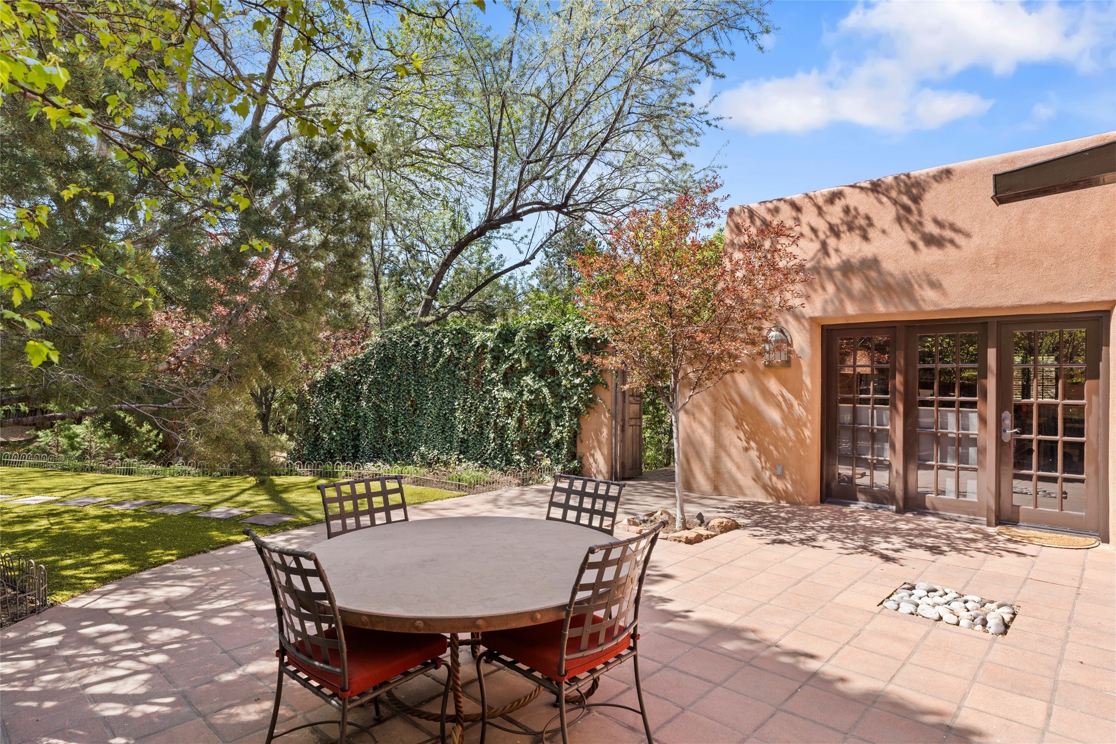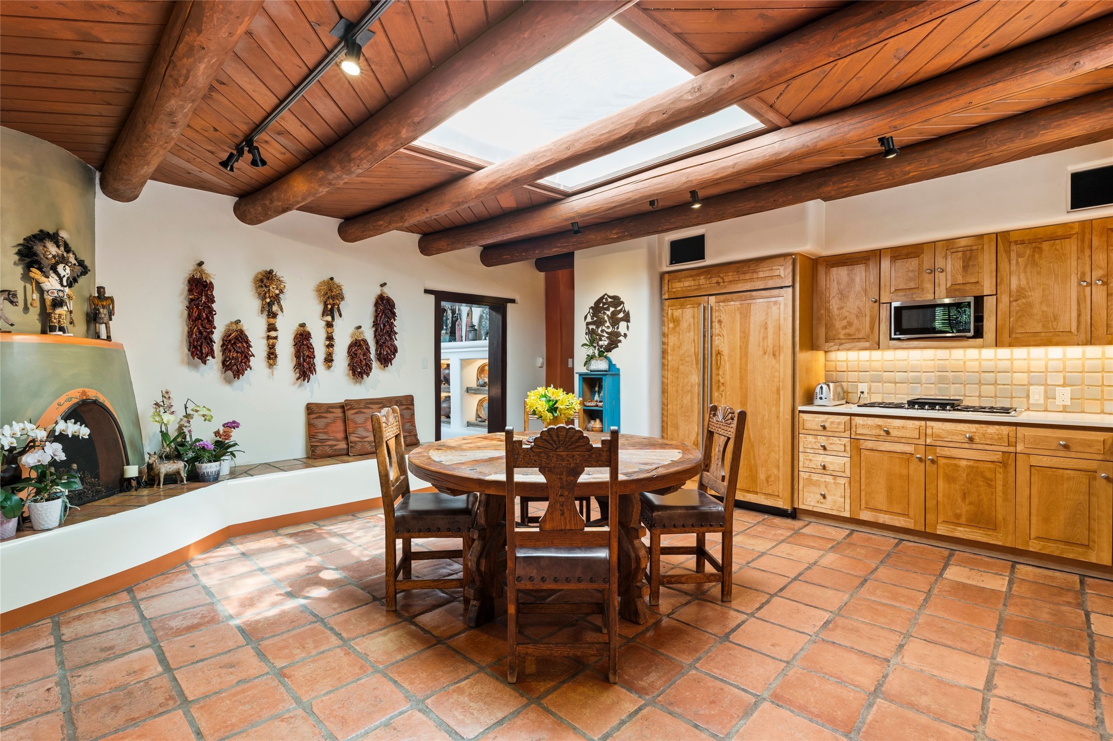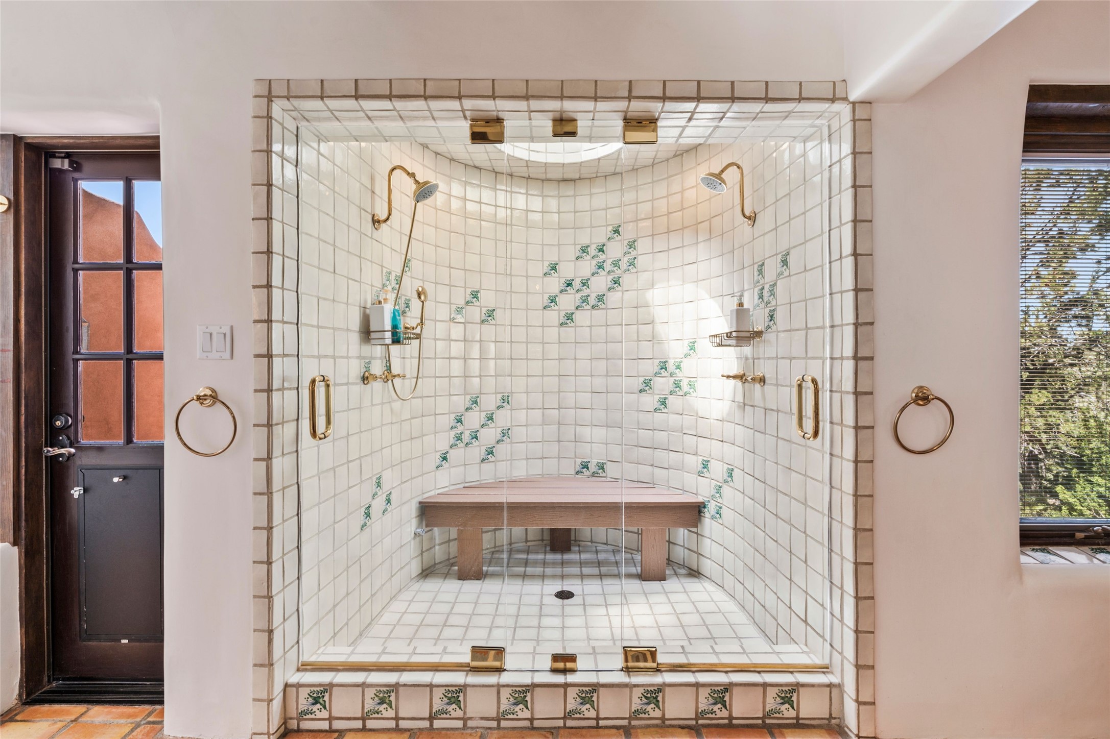The elegant entry courtyard and portal set an appropriate tone for this impressive property. Privately hidden behind a gated wall is an impeccably maintained home, surrounded by mature trees and multiple courtyards. In addition to the main residence is a 1 bedroom casita. The main house is spacious , gracious and full of authentic Southwest details: vintage Saltillo floors, French doors, vigas, hand-carved and painted beams and woodwork, nichos, bancos and fireplaces. The primary bedroom is expansive and private, and opens to its own patio with hot tub, fireplace, and views.There are 2 additional bedrooms in the main house, plus many extras, including: a large office, a wet bar, a media/library room, a roof top deck and a generator that services the entire house. Plus ample parking (for up to 10 cars) and a 2 car garage are amenities not often found in this coveted Eastside neighborhood. And finally, the LOCATION - not to be missed!!!
