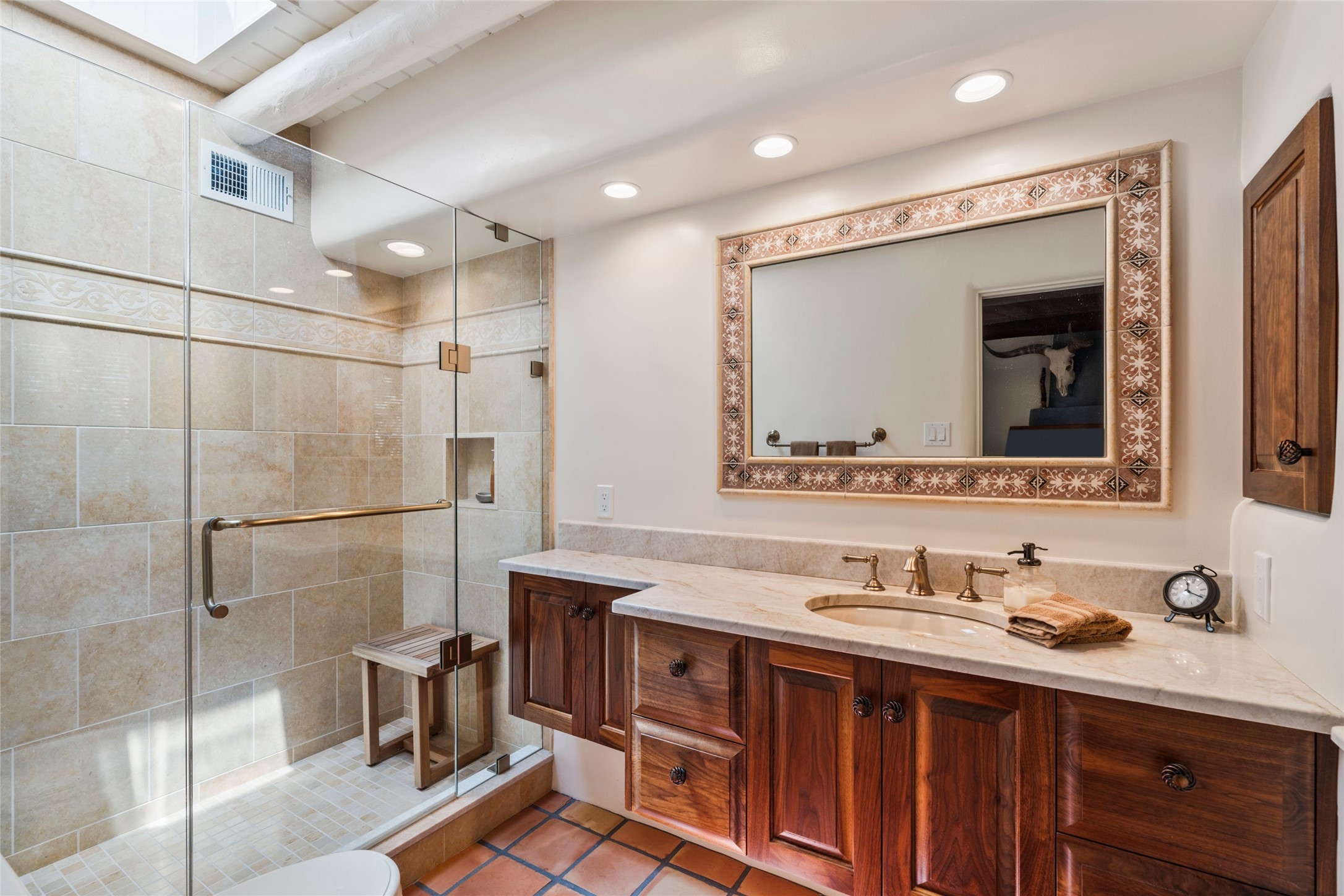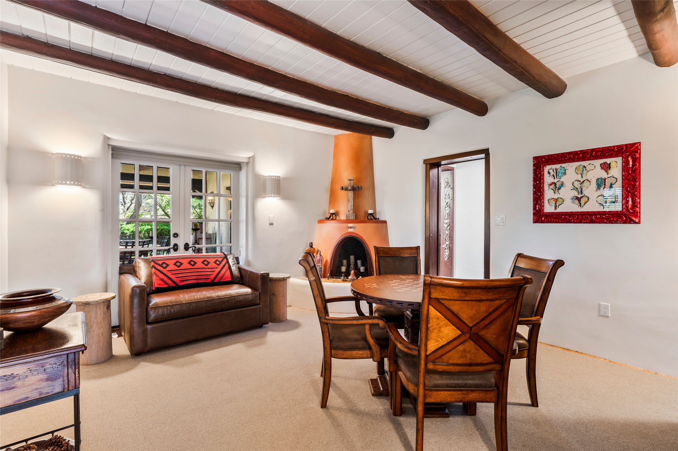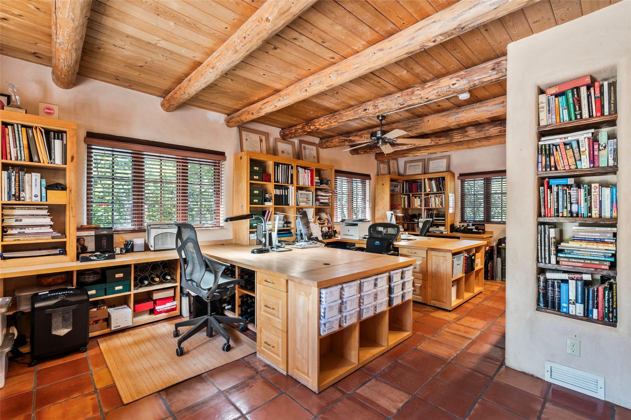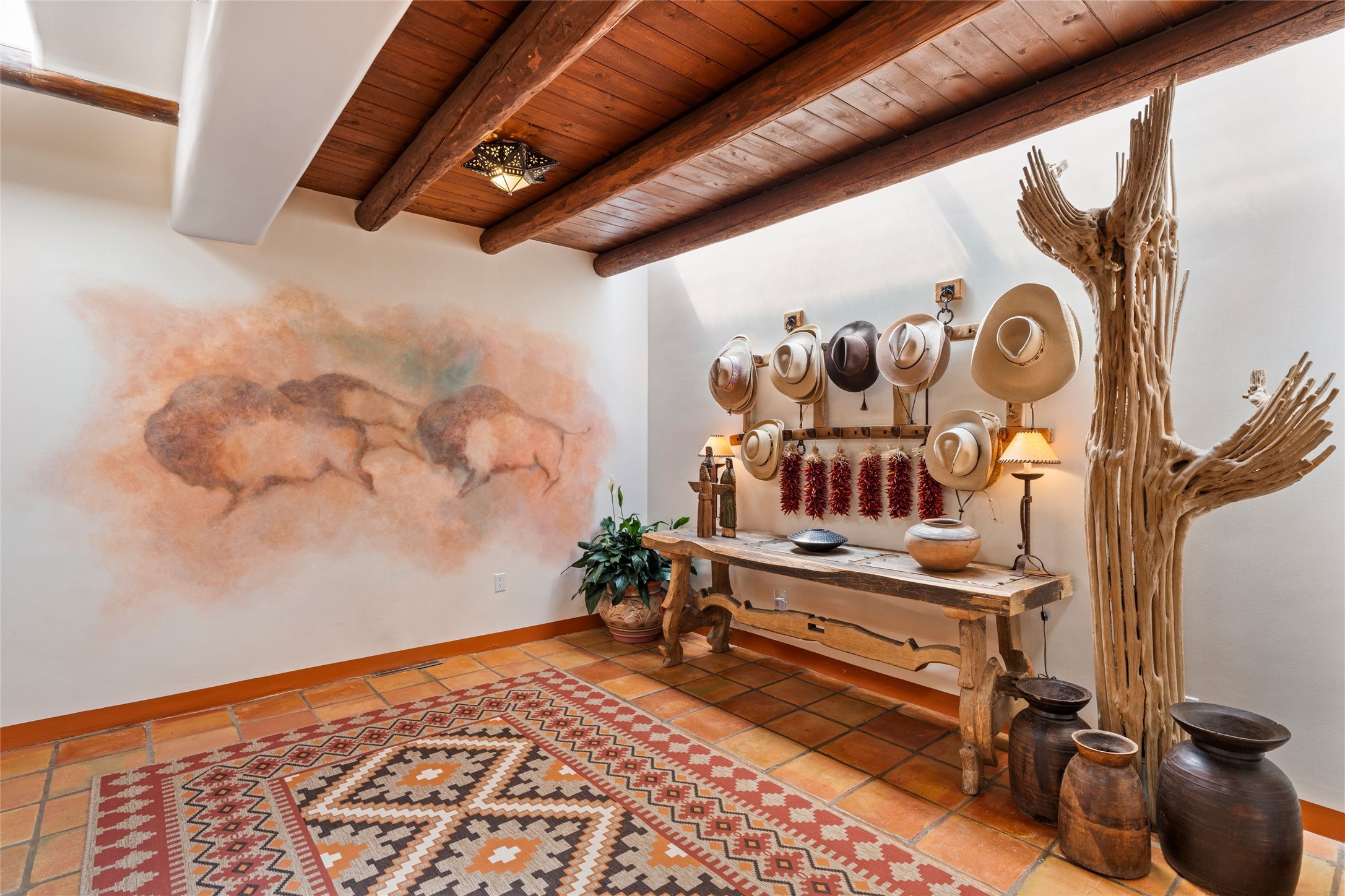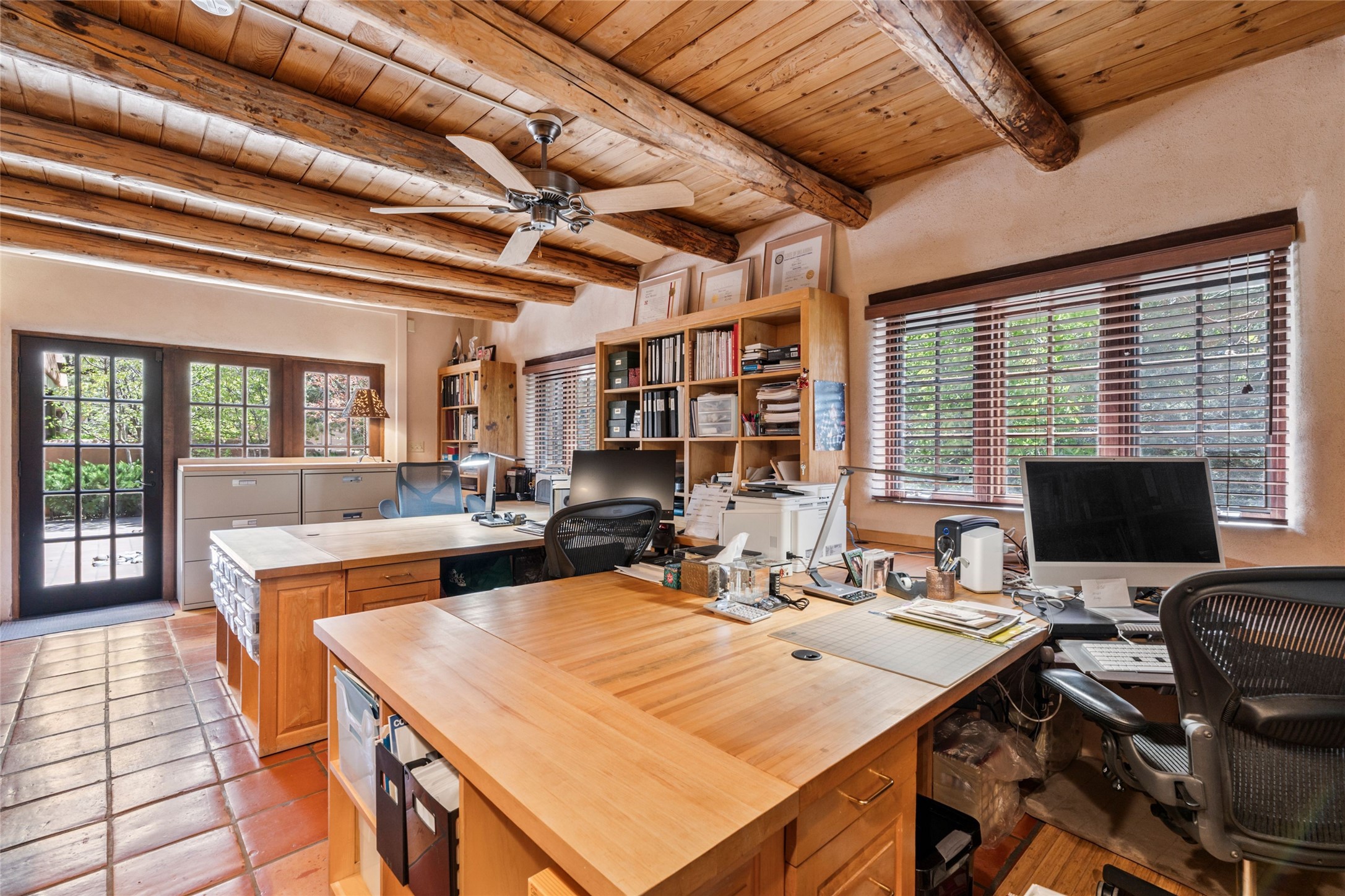 The elegant entry courtyard and portal set an appropriate tone for this impressive property. Privately hidden behind a gated wall is an impeccably maintained home, surrounded by mature trees and multiple courtyards. In addition to the main residence is a 1 bedroom casita. The main house is spacious , gracious and full of authentic Southwest details: vintage Saltillo floors, French doors, vigas, hand-carved and painted beams and woodwork, nichos, bancos and fireplaces. The primary bedroom is expansive and private, and opens to its own patio with hot tub, fireplace, and views.There are 2 additional bedrooms in the main house, plus many extras, including: a large office, a wet bar, a media/library room, a roof top deck and a generator that services the entire house. Plus ample parking (for up to 10 cars) and a 2 car garage are amenities not often found in this coveted Eastside neighborhood. And finally, the LOCATION - not to be missed!!!