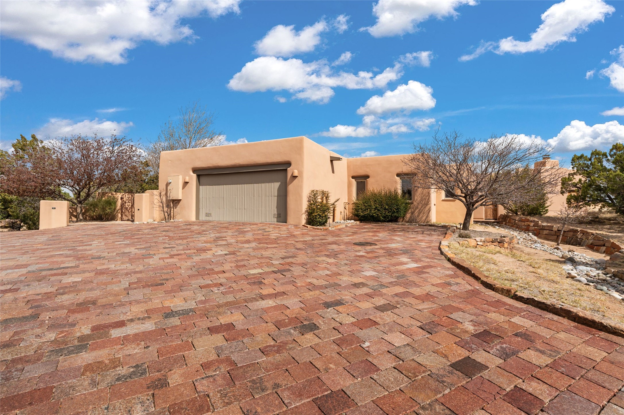Welcome home to timeless elegance and a space that is as beautiful and functional on the inside as it is on the outside. Ideal living is captured with an open, recently updated kitchen which includes Wolf and Sub Zero appliances along with a charming beverage bar that overlooks the serene front courtyard, all enhanced with stylish Taj Majal quartzsite counters. Classic Saltillo tile, tall ceilings and rich wood accents tastefully adorn this peaceful space. True Santa Fe living is captured in the expansive rear portal with a full outdoor kitchen, Infratech heaters, fireplace and expert lighting. Between the large versatile space inside and the fabulous kitchen outside; this is the place to entertain! Entertainers come and see! Retire inside to an accommodating primary suite complete with an office, large bathroom and closet and charming outdoor space. Optimal separation of bedrooms, updated bathrooms, mini splits throughout, heated stone driveway, tasteful landscape with ample flagstone and meticulous maintenance combine to create a space which satisfies all the creature comforts. This gem is located a half mile from The Club in Las Campanas' popular Park Estates. Come and see!