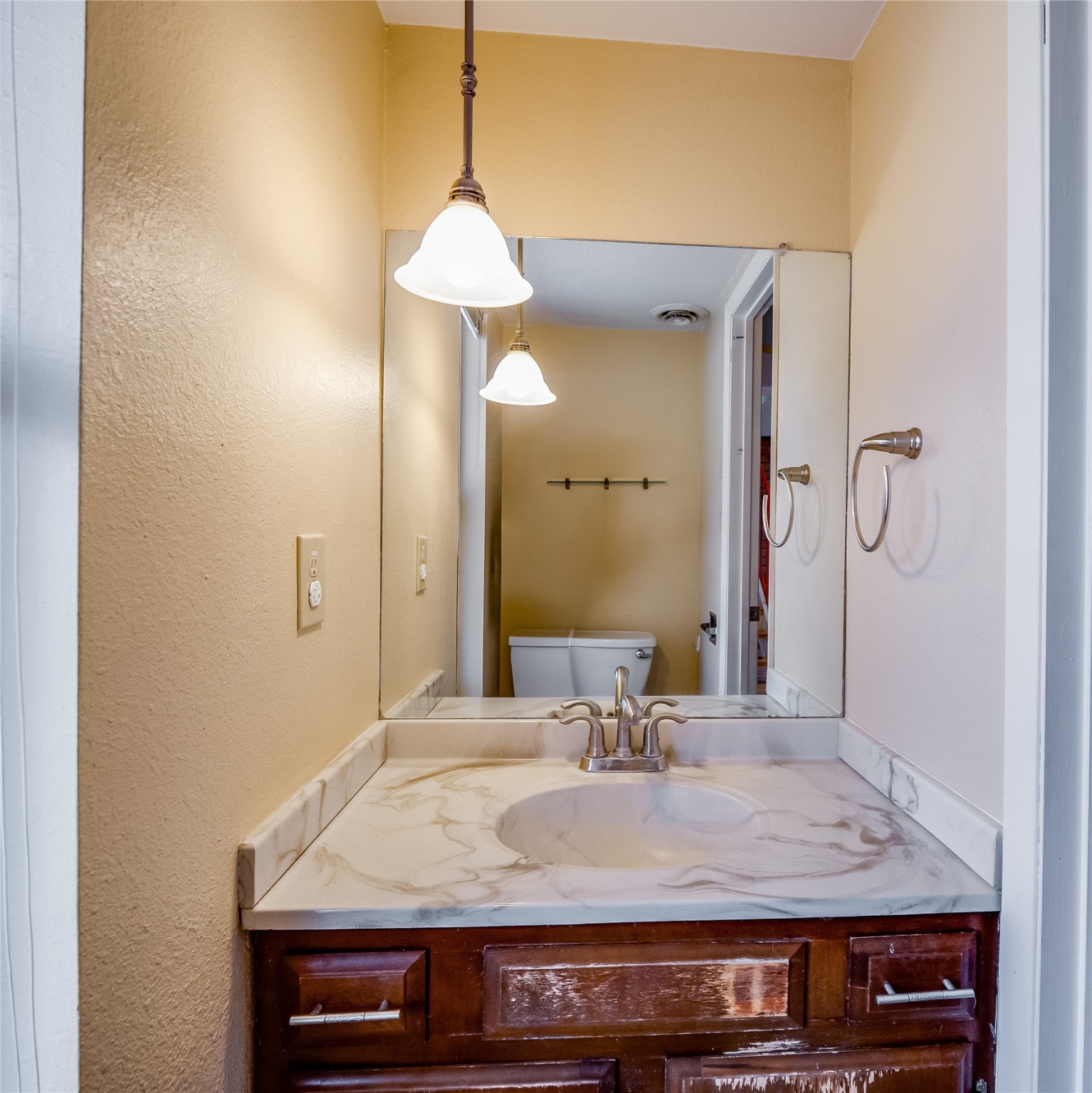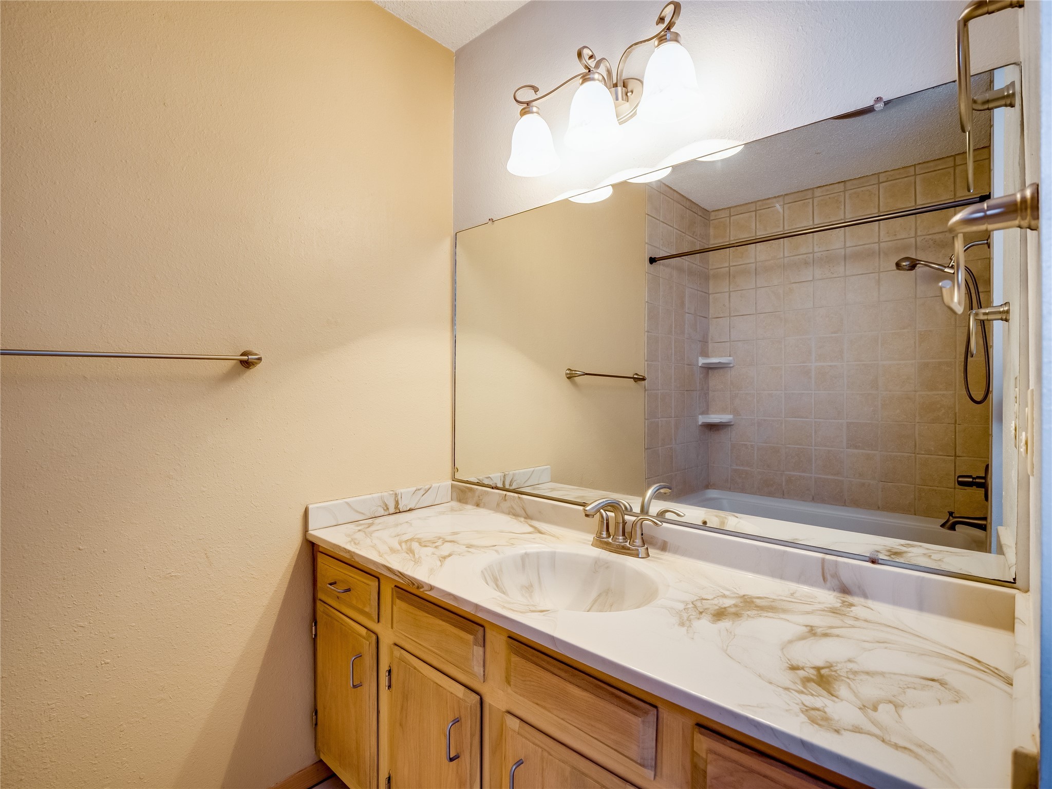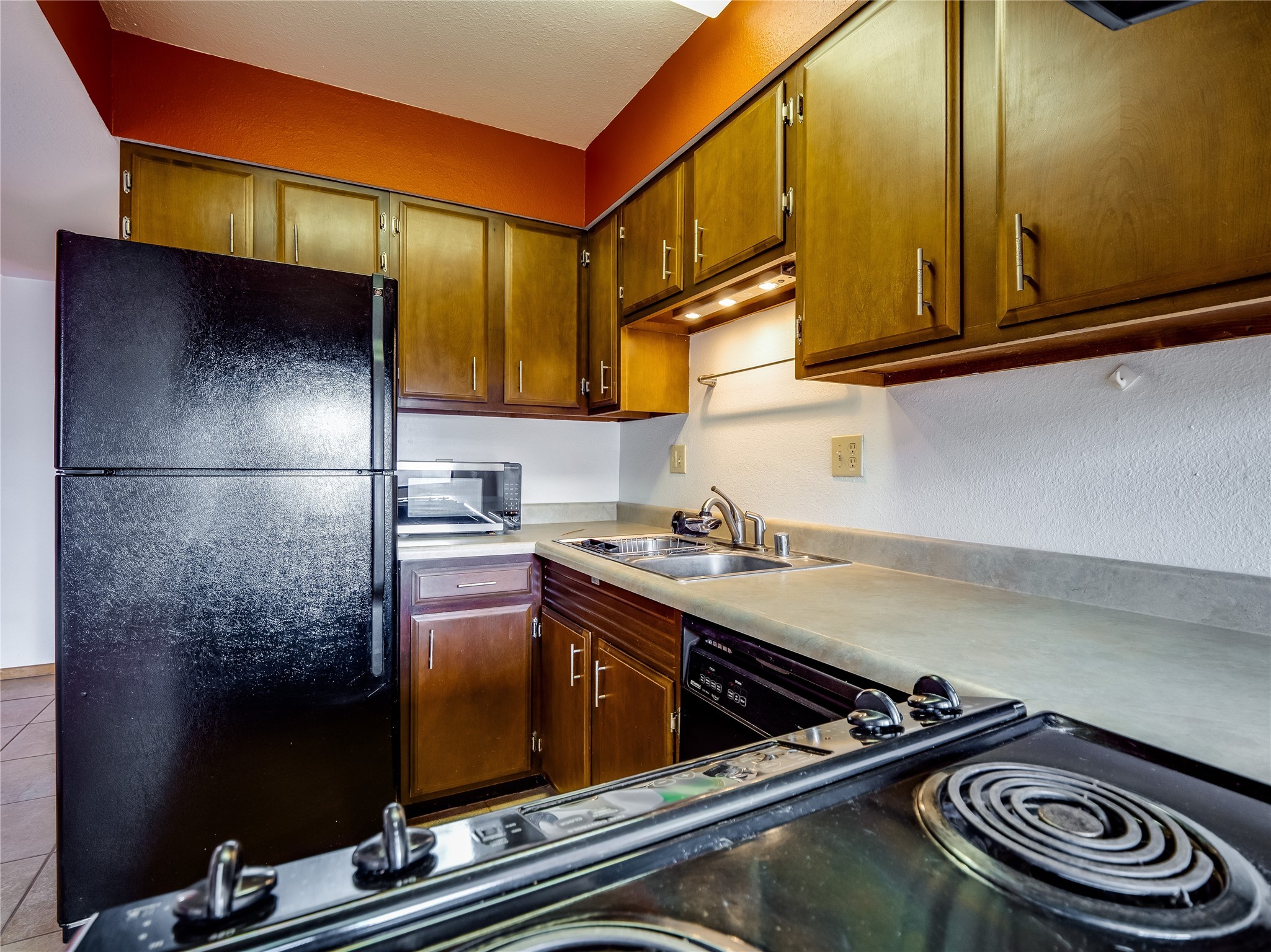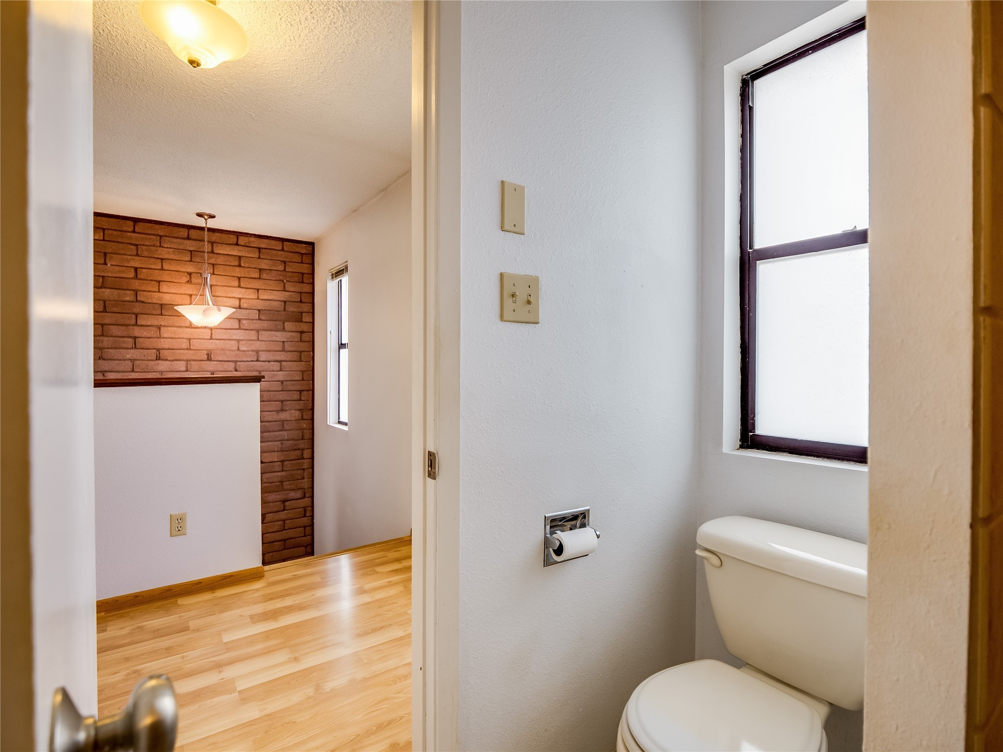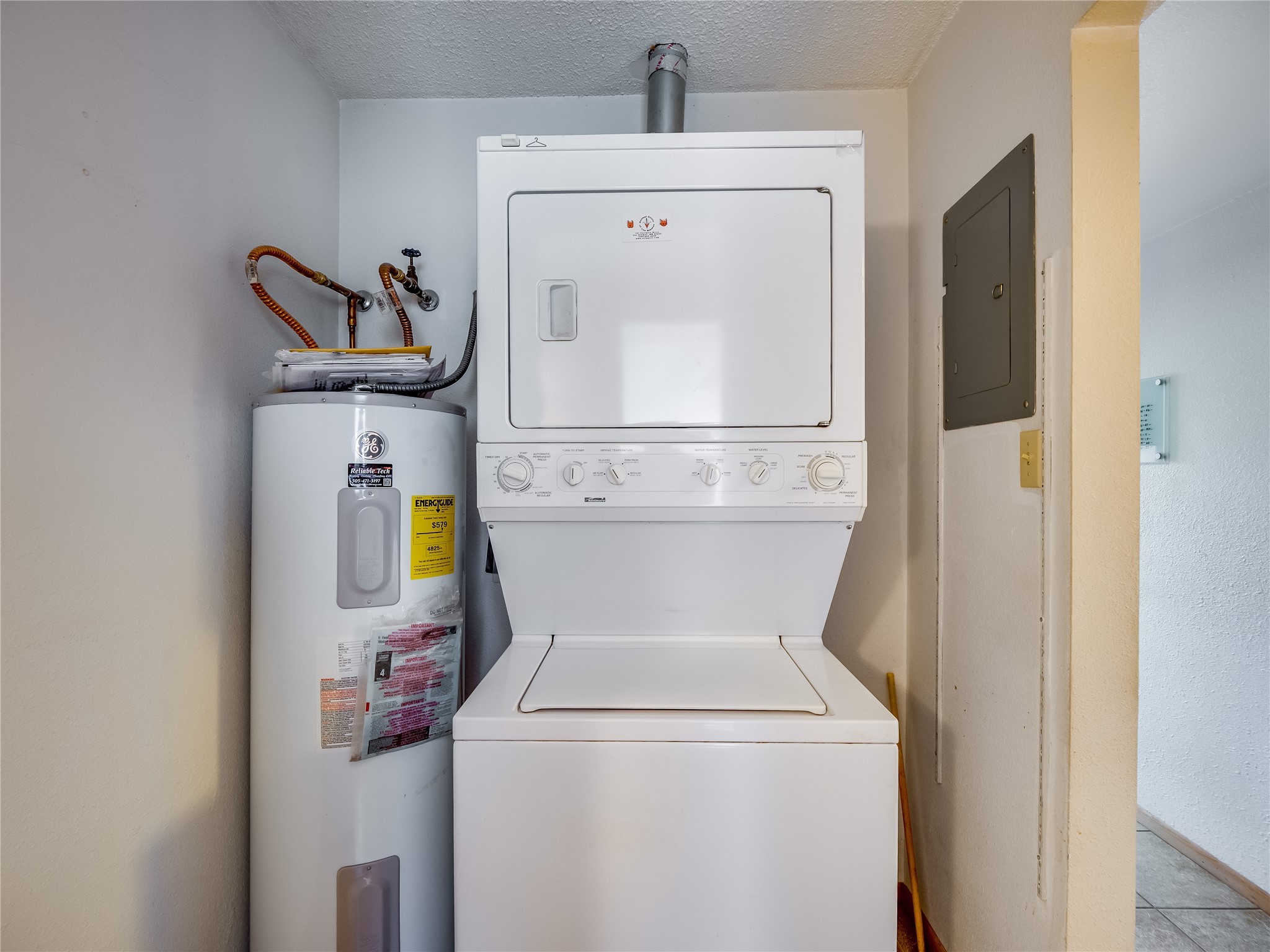Discover character and comfort in this unique two-story condo perched above the canyon in the sought-after Eastern Area. From your designated parking spots, descend to your front entrance and step into a welcoming foyer featuring a convenient coat closet and a deep storage closet--perfect for stashing gear and everyday essentials. Light-colored laminate wood flooring flows throughout the home, creating a bright and cohesive aesthetic. The spacious living room invites you in with a stunning focal point, a vibrant painted brick fireplace accented by natural brick on either side, adding both warmth and personality. Sliding glass doors lead to a fully fenced yard with a covered patio--ideal for outdoor lounging and entertaining. There's also room for gardening and a large storage shed for all your tools and seasonal items. Just off the living area, the dining space seamlessly connects to the kitchen, promoting easy flow and conversation. The kitchen features tile flooring, rich wood cabinetry with sleek chrome hardware, light-colored countertops, and included black appliances that offer a classic contrast. Down the hallway, you'll find a well-placed powder room and a laundry space with stackable washer and dryer units that convey with the home, adding convenience to your daily routine. Upstairs, you'll find two generously sized bedrooms--nearly identical in layout--each offering plenty of natural light and ample closet space. One bedroom features a charming exposed brick wall, adding a touch of rustic texture and style. The full guest bathroom is equipped with a large single sink vanity, tiled flooring, and a tiled shower/tub combo for a timeless finish. Ideally located close to the gym, parks, shopping, and more, this condo offers the best of both nature and convenience. With its canyon-side setting, outdoor space, and thoughtful interior touches, this home is ready to welcome you. Come see it for yourself!