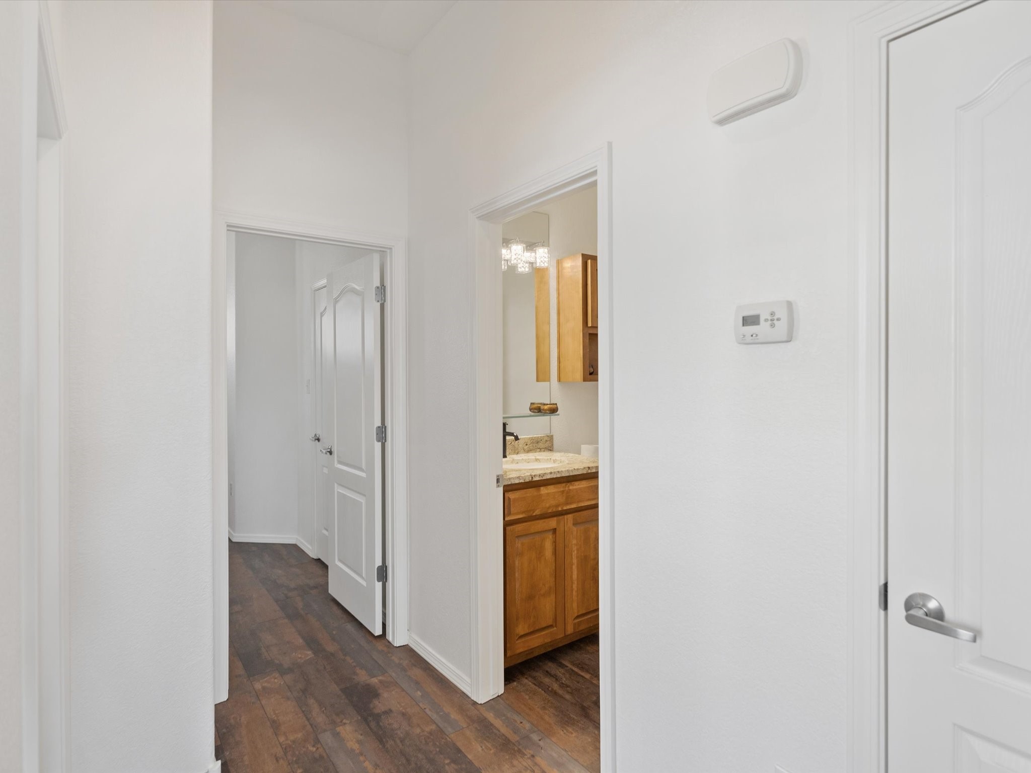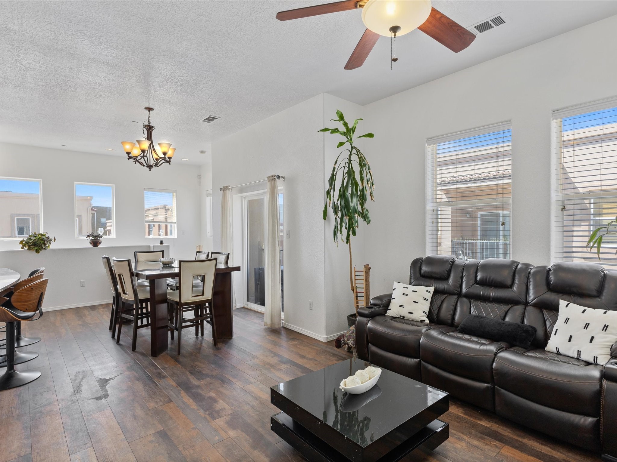 Modern Living in the Heart of Santa Fe - Ranchos Santos Condos.Elevate your lifestyle in this beautifully remodeled condo, a true contemporary gem nestled in the highly sought-after Ranchos Santos Condos. Featuring 2 bedrooms and 2 bathrooms, this stylish unit offers a seamless blend of comfort and functionality.Step inside to discover a bright and airy interior filled with natural light from large windows throughout the space. The open layout is enhanced by modern finishes, forced air heating, and air conditioning--ensuring year-round comfort.The kitchen is equipped with stainless steel appliances, a convenient breakfast counter, and a spacious pantry to help keep everything organized and clutter-free. The primary bedroom features an en-suite bathroom and a generous walk-in closet for all your storage needs.With an attached one-car garage, this condo offers added convenience and security. Enjoy being centrally located near shopping centers, gyms, restaurants, scenic trails, and more--everything you need is just minutes away.Whether you're a first-time homebuyer or looking to downsize in style, this upgraded condo is the perfect place to call home in Santa Fe.