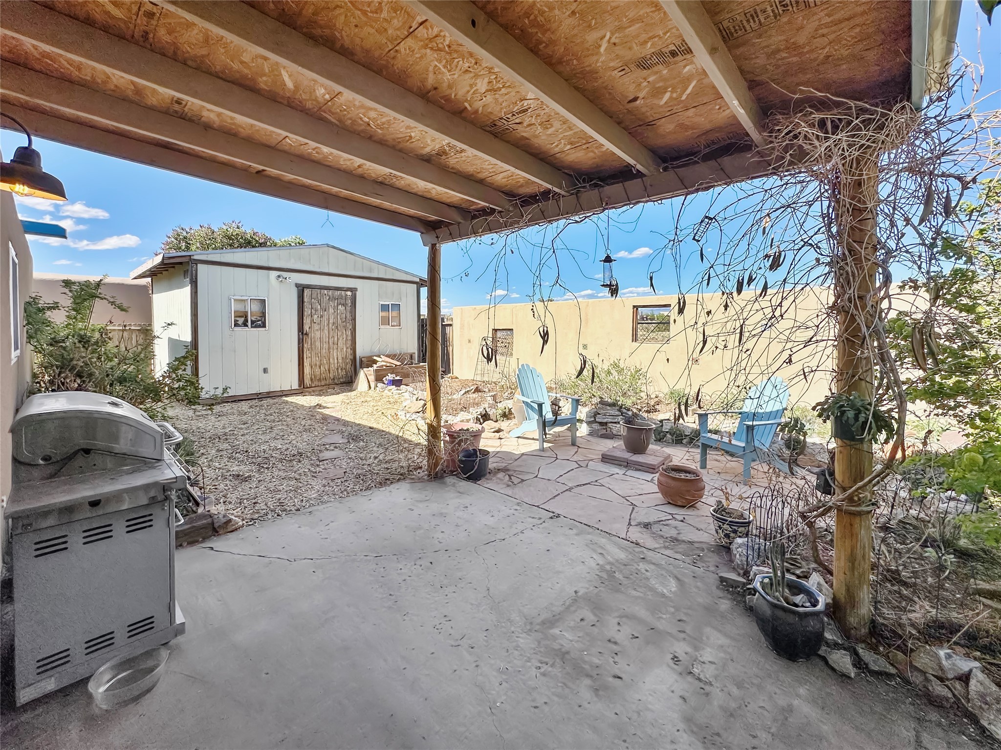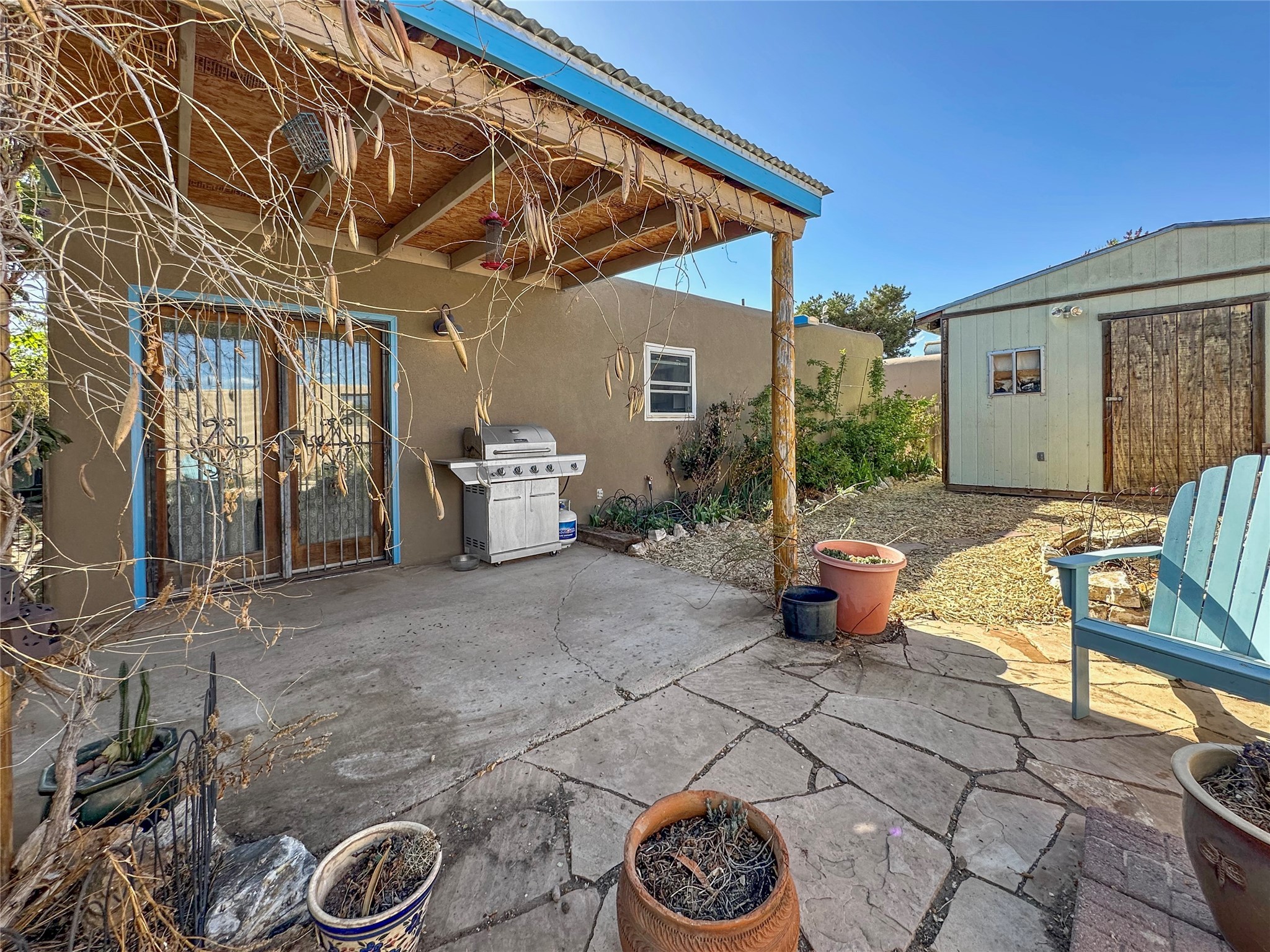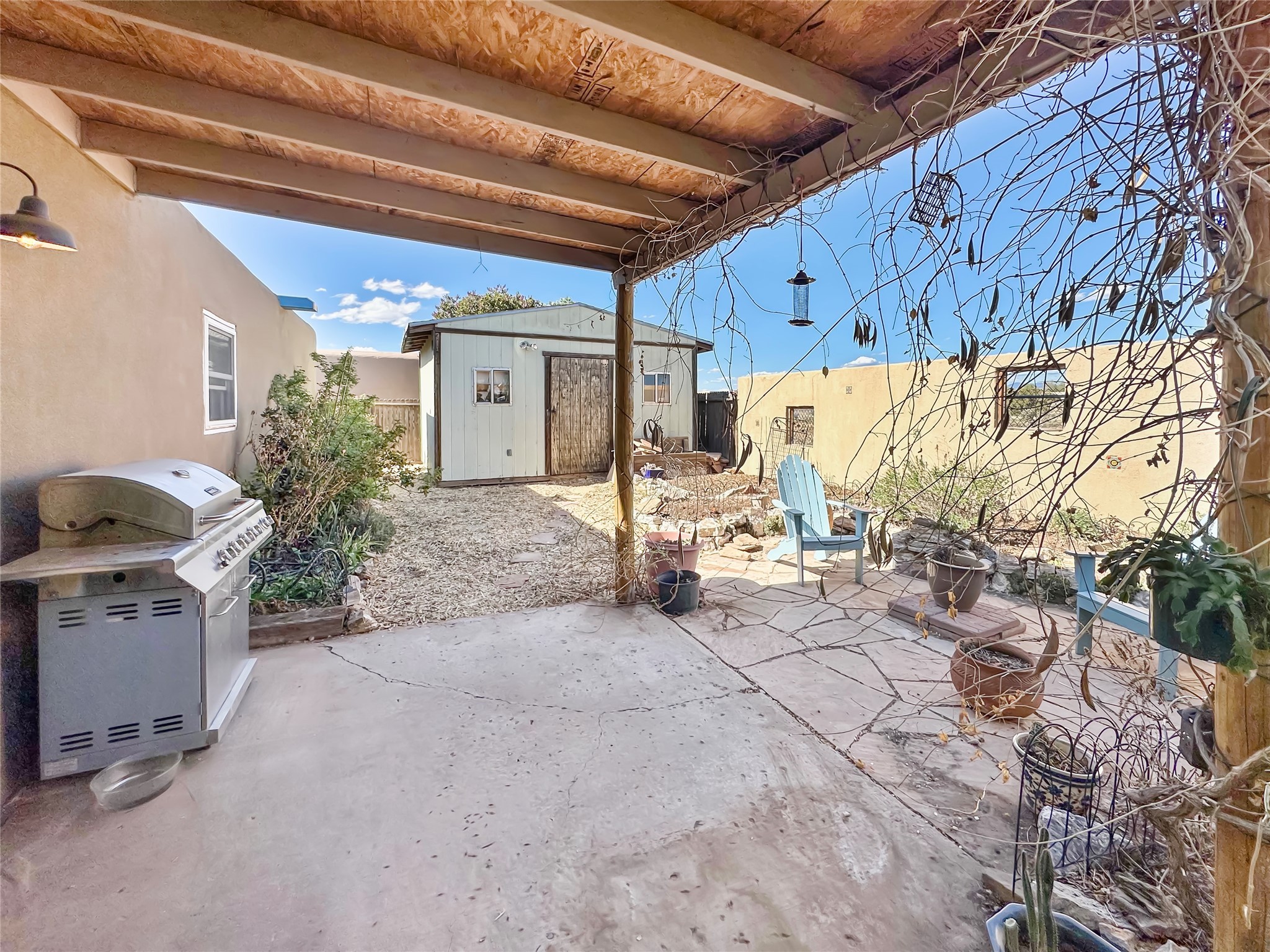 Discover the perfect blend of charm and convenience in this beautifully updated 3-bedroom, 2-bathroom home nestled in a sweet and vibrant neighborhood. This delightful residence offers ample living space, featuring fresh interior paint and sunlit rooms that beam with natural light, thanks to expansive windows throughout.Bask in the comfort of the newly installed mini split systems that provide efficient, climate-controlled spaces year-round, and relish the ease of maintenance with lovely tile flooring underfoot. Step outside to your personal oasis where lush garden beds, a fully fenced yard, and tasteful landscaping with mulch and flagstone await, the outdoor space is designed for both utility and leisure. The home also boasts a nearly new roof and stucco, newly sealed and painted canales and front portal. This home has 8 solar panels, significantly reducing energy costs and supporting sustainable living.