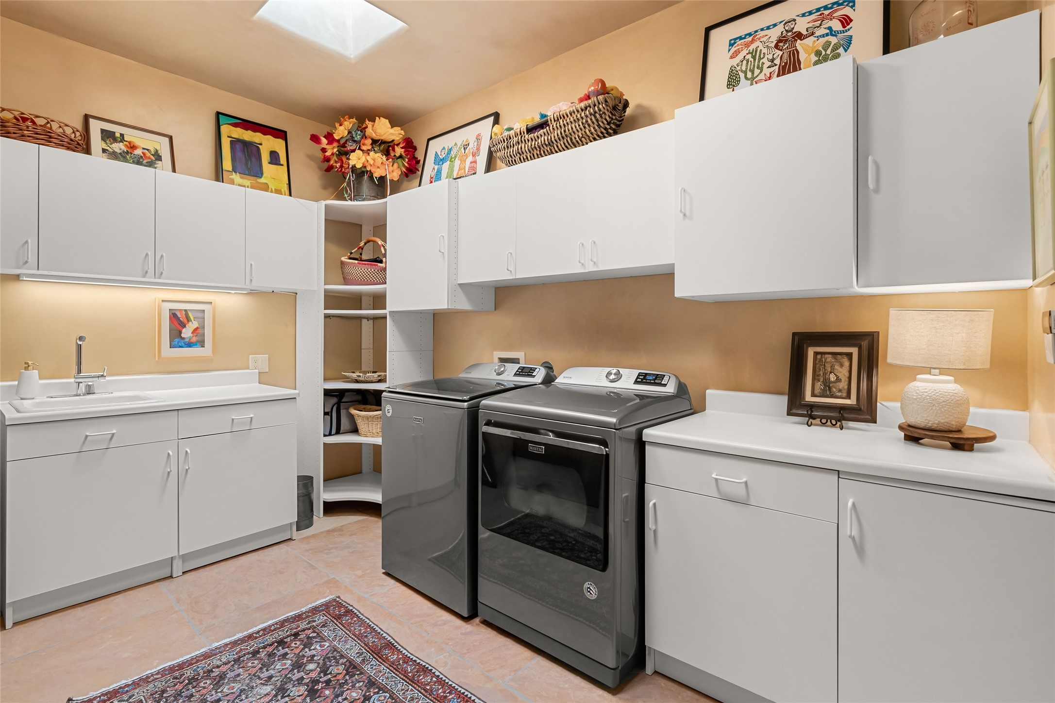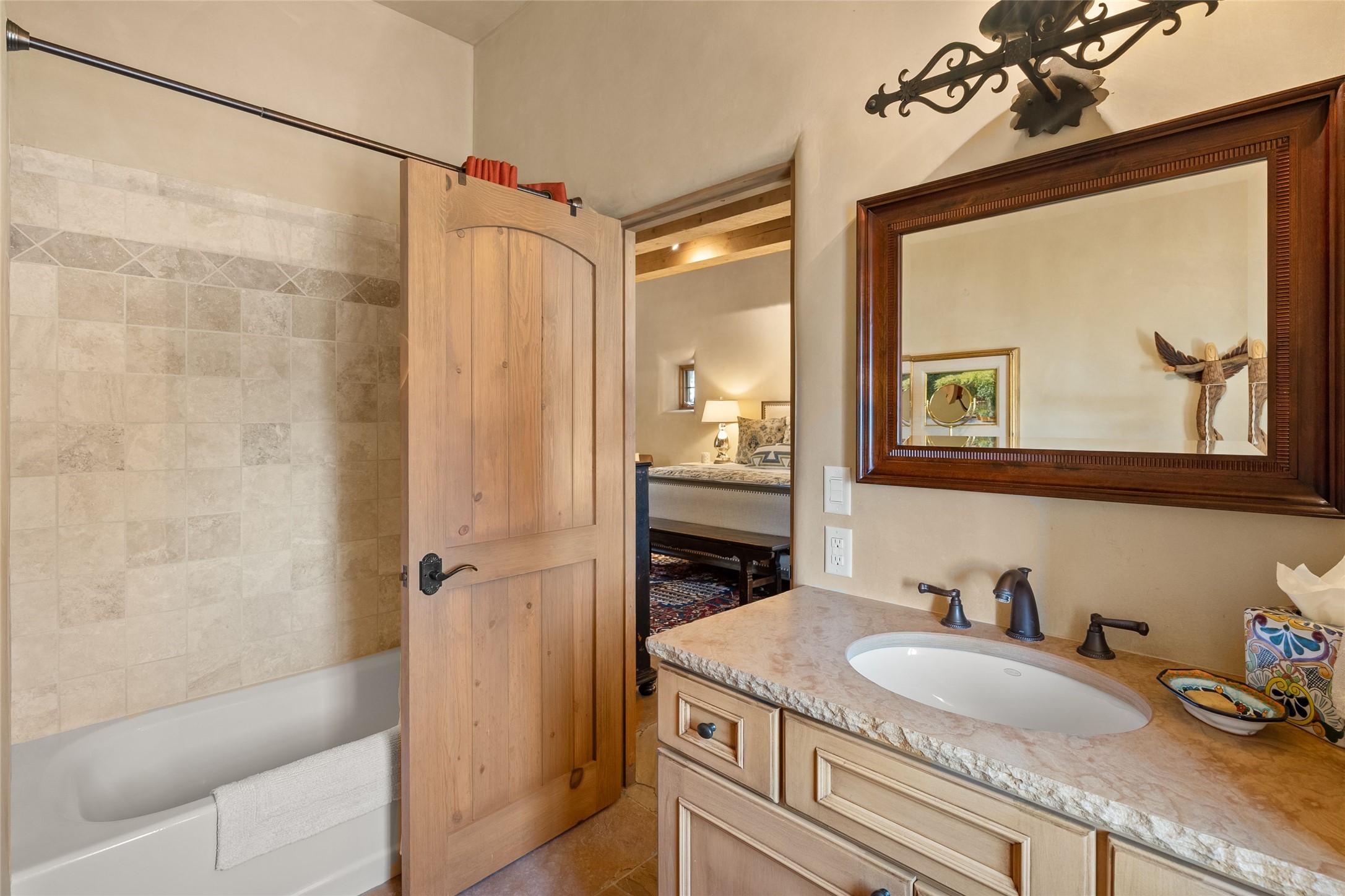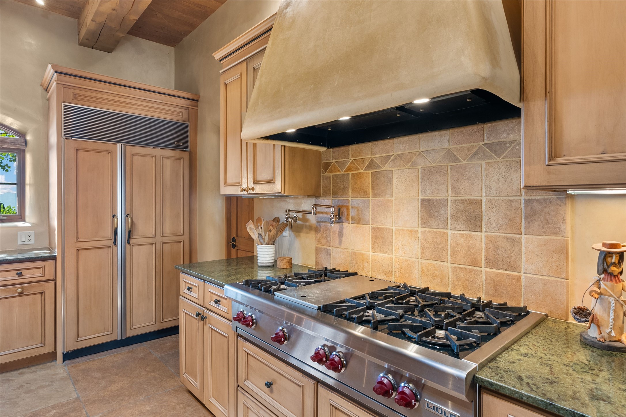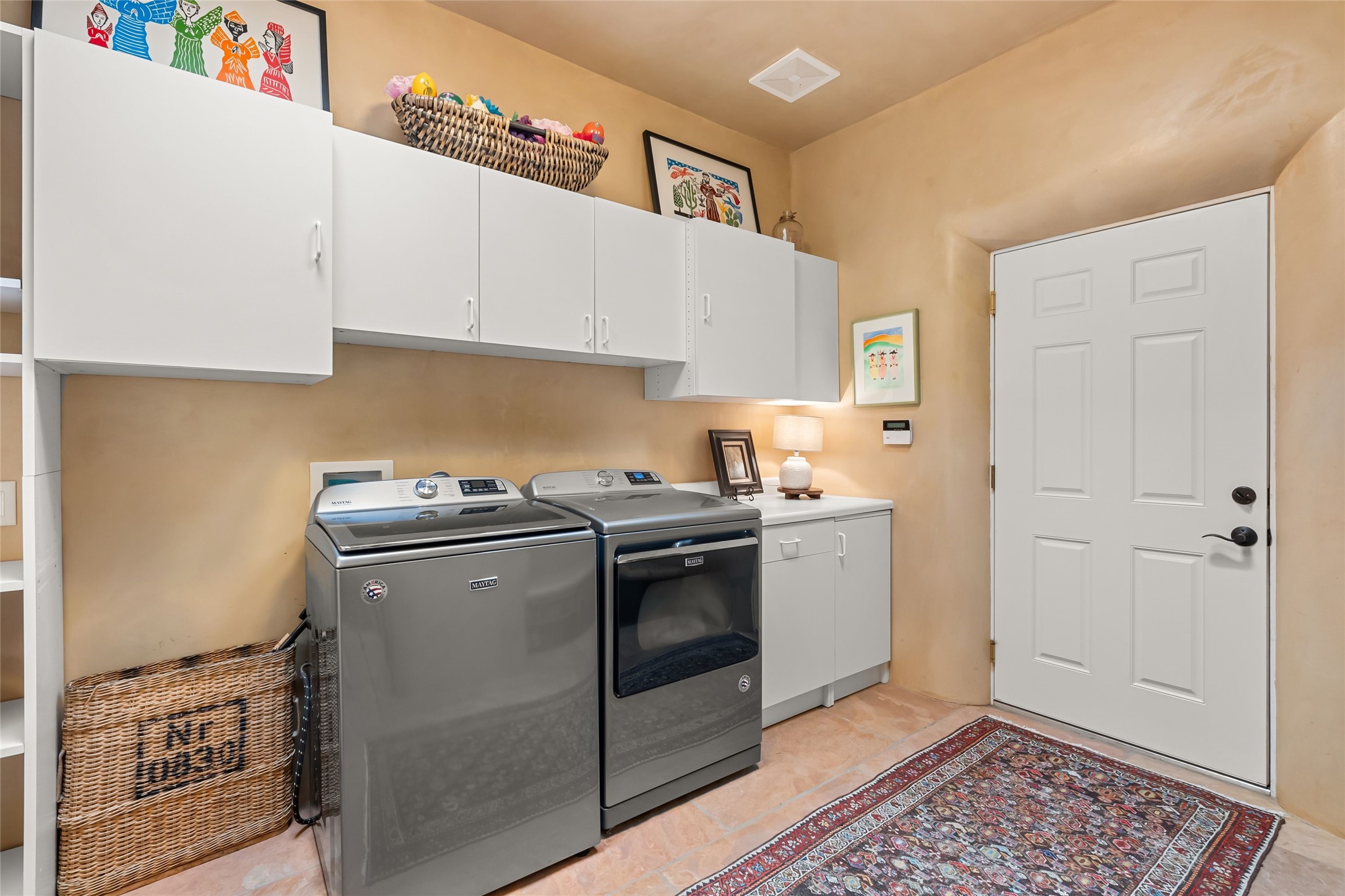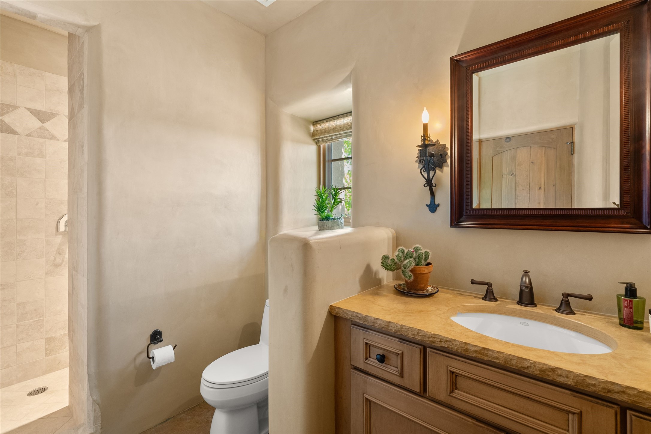 This gated 5.2-acre estate in the Sangre de Cristo foothills is only 18 minutes from the Santa Fe Plaza and offers panoramic views of the Sangres, Jemez Mountains, and Badlands. 4,752 sf living, 802 sf 2-car garage, 5 portals totaling 1,820 sf. of outdoor living space! 880 sf portal wraps the central, Aspen shaded courtyard with large stone fountain. Beds and gardens are filled with a vibrant array of flowers, grasses, and trees. West facing portal offers dramatic sunsets with lovely outdoor eating area. A private walled garden off the primary suite includes a smaller portal and outdoor fireplace. Interiors are warm, and light filled with a wide choice of cozy private and formal entertainment spaces. Rich interior finishes focus on traditional and timeless New Mexican details, beamed and wood plank ceilings, meticulously cut flagstone floors, Diamond plaster walls, 4 interior fireplaces, custom cabinetry, granite, sandstone counters and 10 skylights. Constructed with 2' to 4' thick Pumice-Crete walls, a labor-intensive, fireproof building method that beautifully replicates the look and feel of traditional triple-stacked adobe and is noted for its beauty, stability, noise reduction, and energy efficient qualities. Radiant floor heating, recently installed high efficiency AC condenser system save energy by preheating water for the propane fired boiler and converts to a chilled floor cooling system during summer months! Low profile solar panel system produces more power than the residence uses yielding monthly electric bills less than $12.00/month! A cozy family room, formal dining, kitchen, and spacious great room, all access the courtyard for spectacular entertaining or intimate gatherings. Two separated primarysuites plus office with tasteful built-ins. New improvements include stone planters and driveway borders, native trees, grasses, shrubs and flowers, new landscape irrigation system, new roof with extended warranty,new skylights, refreshed exterior stucco.
