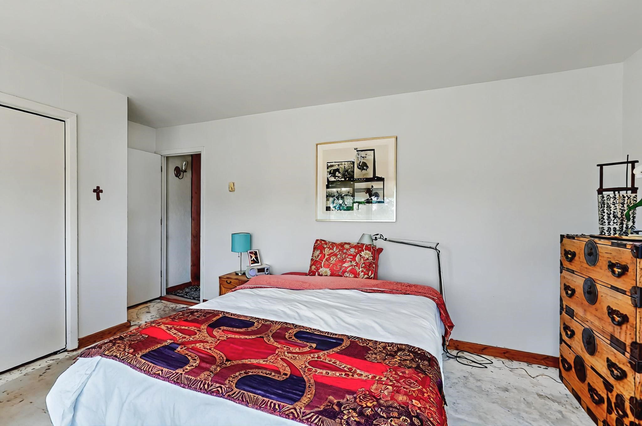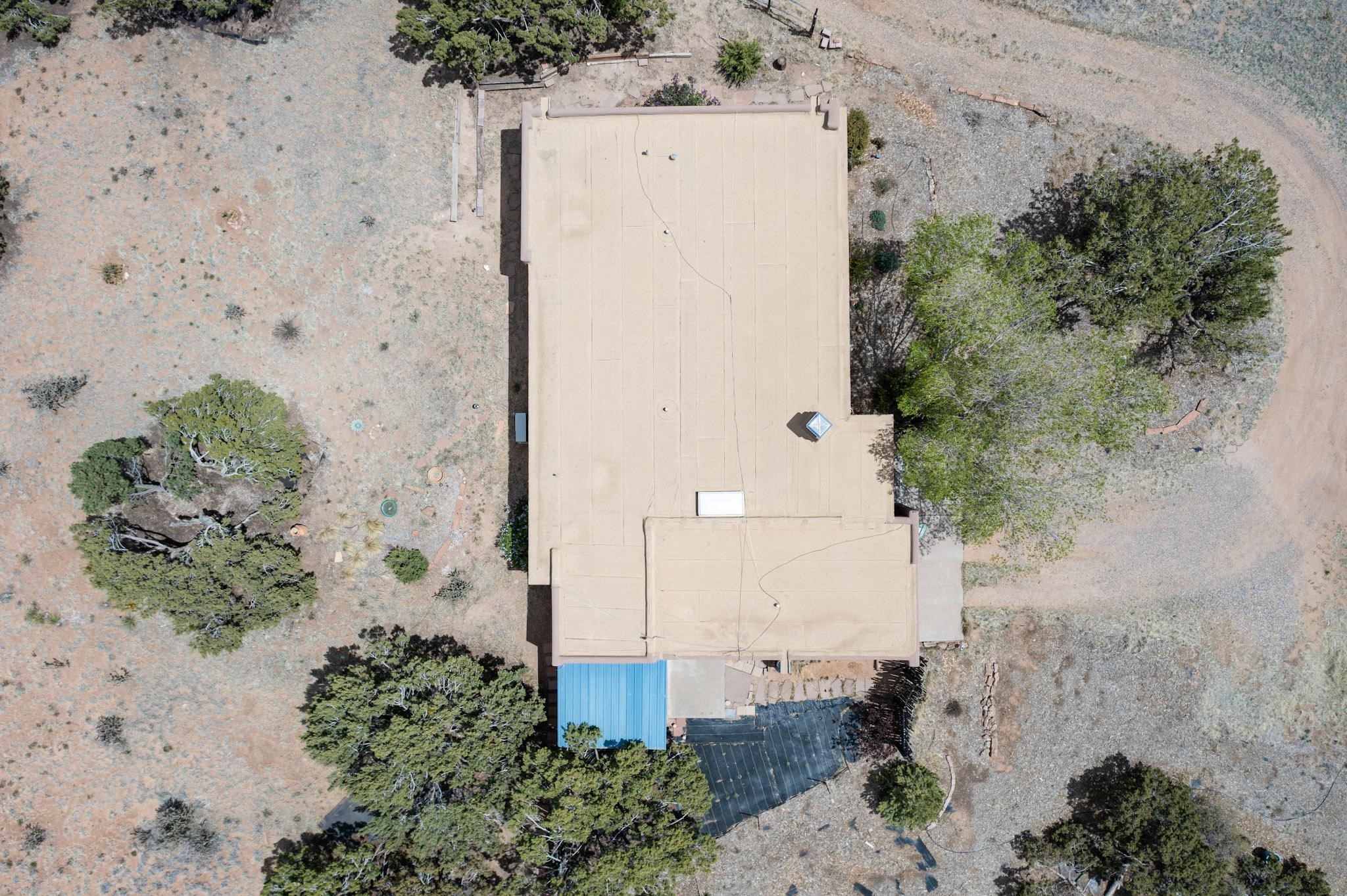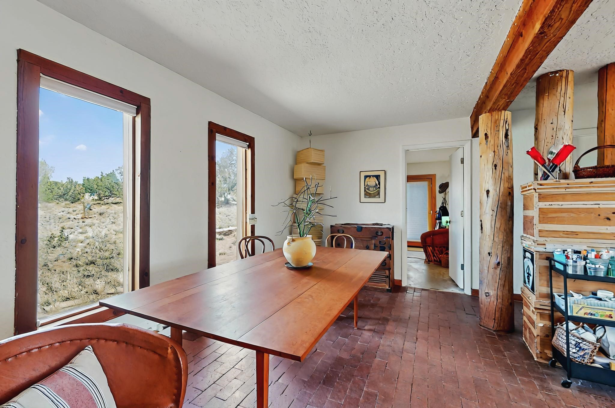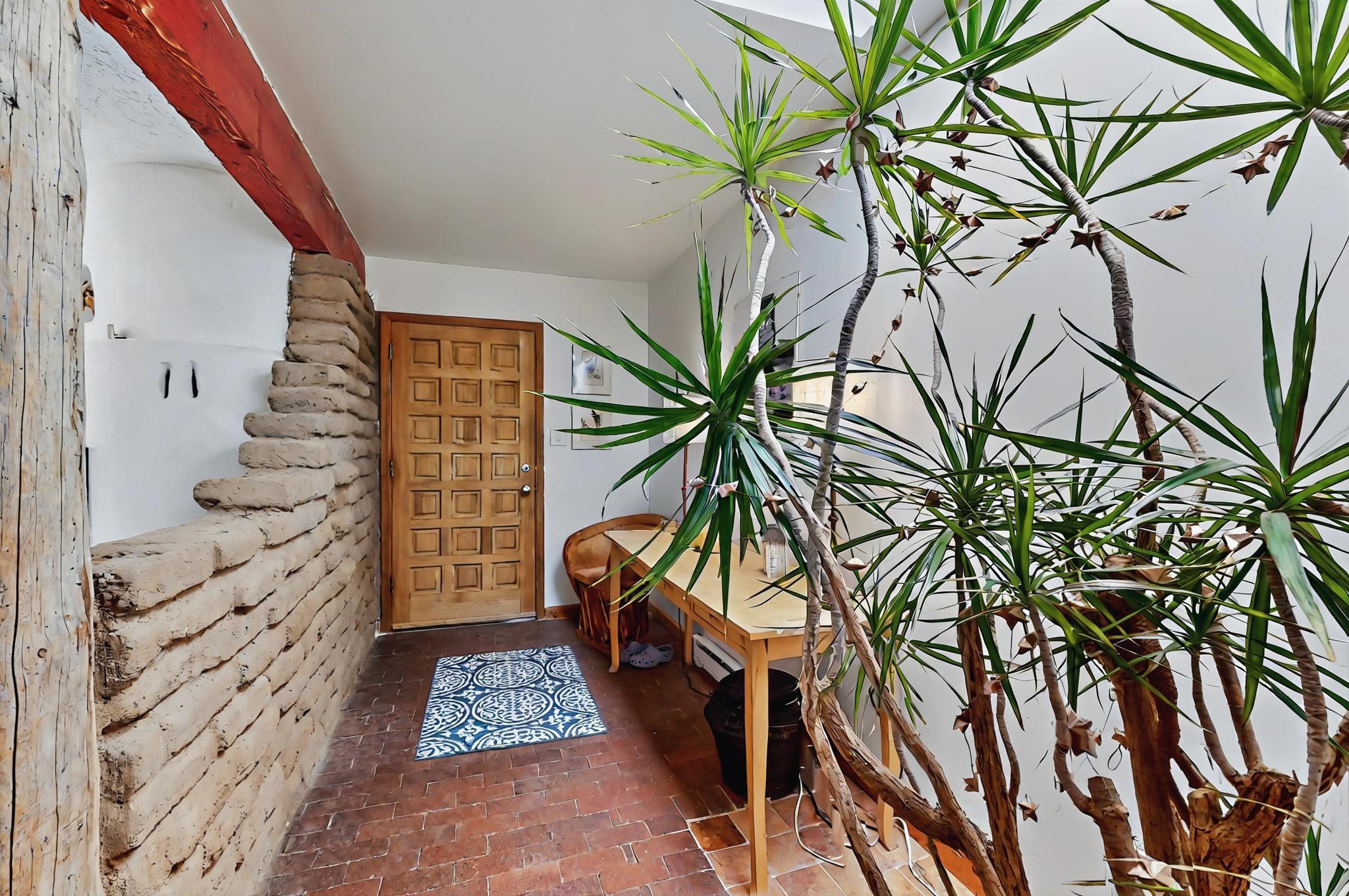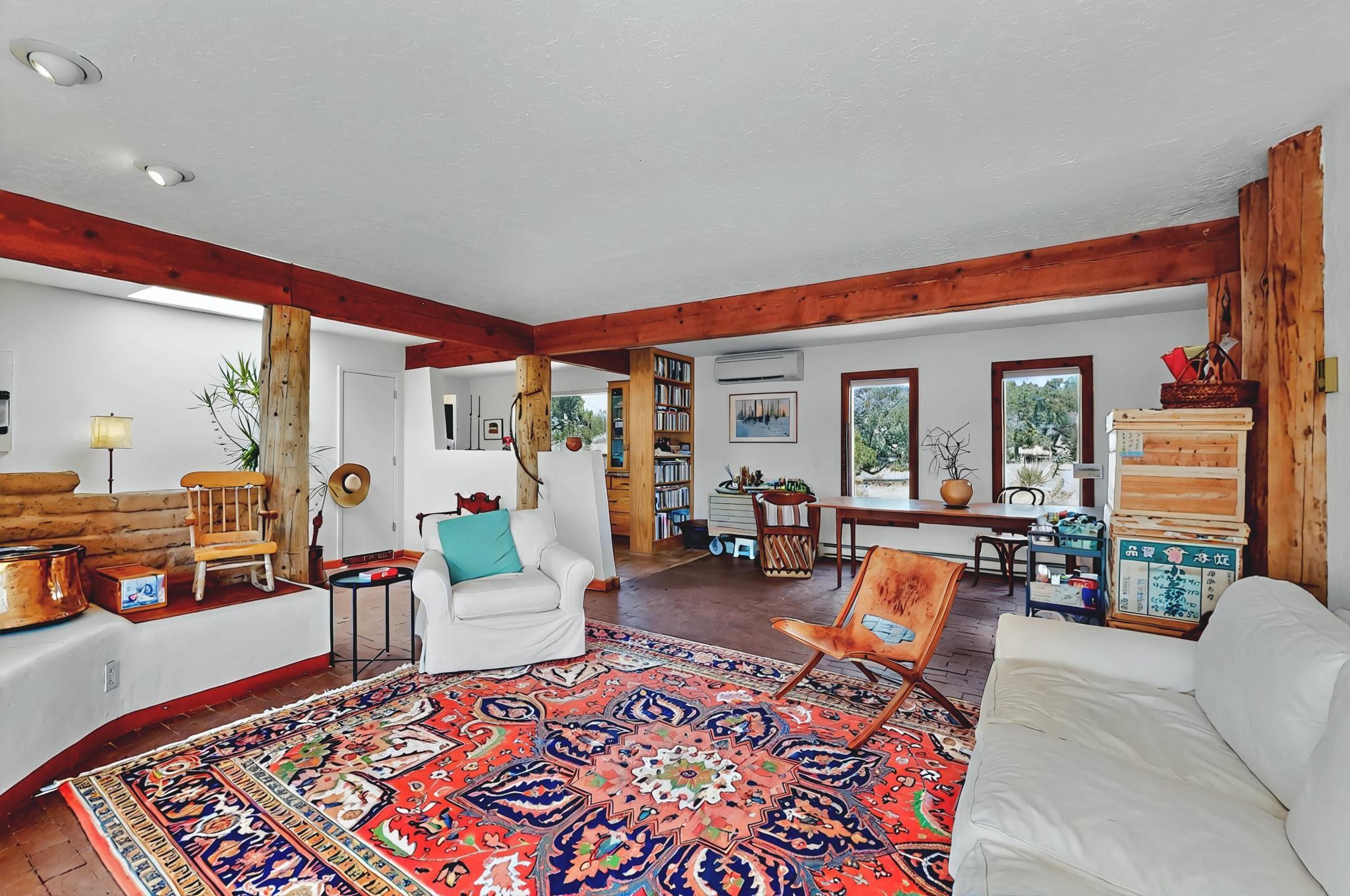 VIEWS VIEWS VIEWS from every room. Mountains, green belt and trees in a very private location. Traditional banco and kiva fireplace in living area, brick floors, and adobe wall at entry. Totally renovated kitchen with granite counters and totally renovated modern bathroom. Two bedrooms either side of updated bathroom have unfinished cement floors due to owner's allergies. Plantings on drip. 2 1/2 year old heat pump with electric baseboard backup; refrigerator 2020; dishwasher 2019; washing machine 2018; newer stucco with remaining 5 year warranty; roof refresh 2024 with 2 year warranty; water heater 2025. No VOC paints.