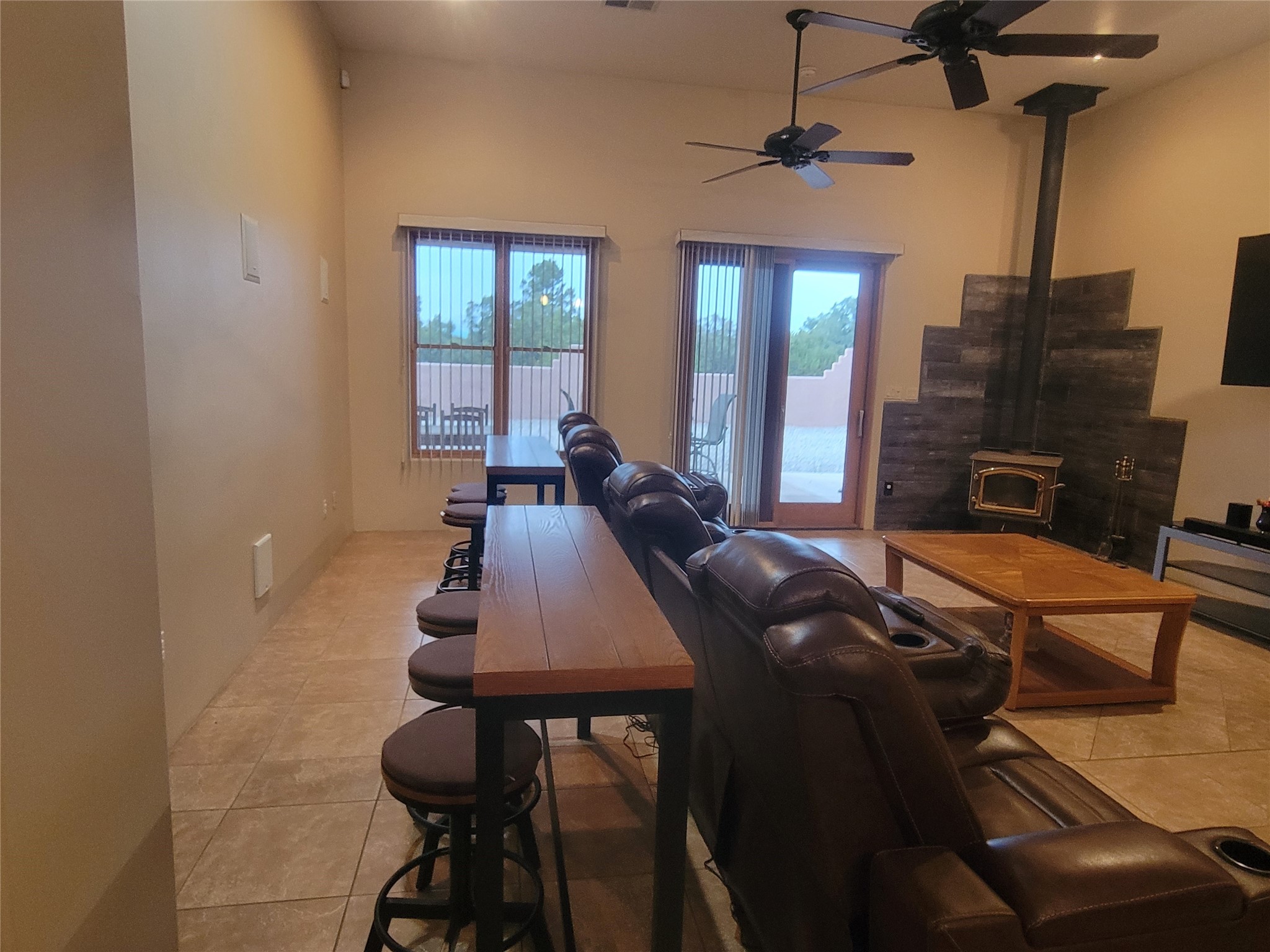 Highly motivated sellers! Country. Convenient. Comfort. This Pueblo Style home has had the price Cut to only $559,000. Which is belowthe appraisal of $585k in 2021!! It is secluded in a rural setting with easy access to I-25. Many large windows showcase the beauty of the area with striking views of Rowe Mesa. Only 40 minutes to Santa Fe and 30 minutes to Las Vegas with scenic drives both ways. It sits on 3 acres of unspoiled nature.The circular entrance opens to the welcoming warmth of this immaculately cared for home. A family area craves Cozy Cuddle-ups by the wood stove or patio opens to Courtyard Cookouts . Kitchen has beautiful granite cabinet tops and great, solid wood cabinets with unbelievable storage space. Extra large laundry room with W/D hookups, sink area and large cabinet space. Granite countertops in all bath areas. Master bedroom includes a massive walk-in closet. 3 car, insulated garage. High speed internet provided by Plateau is available.Main living area boasts a 14' ceiling and 12' ceiling in the rest of the home. Architectural design of Transoms above windows and doors increases natural light. Recessed lighting and Built-in sound system throughout. Walls are beautiful smooth, drywall . Solid wood doors and trim throughout. House includes radiant heat in the flooring. Upgrades in 2021 include 2 rooftop heating and refrigerated A/C units and new TPO roof on the entire structure (almost 5000 sf). Pella doors and windows. Bosch appliances.This home has special features to accommodate your large gatherings of friends and/or family, inside or outside. The hassle of the city is outdone by the secluded beauty and warmth of this home. Highly motivated sellers. Come take a look today!