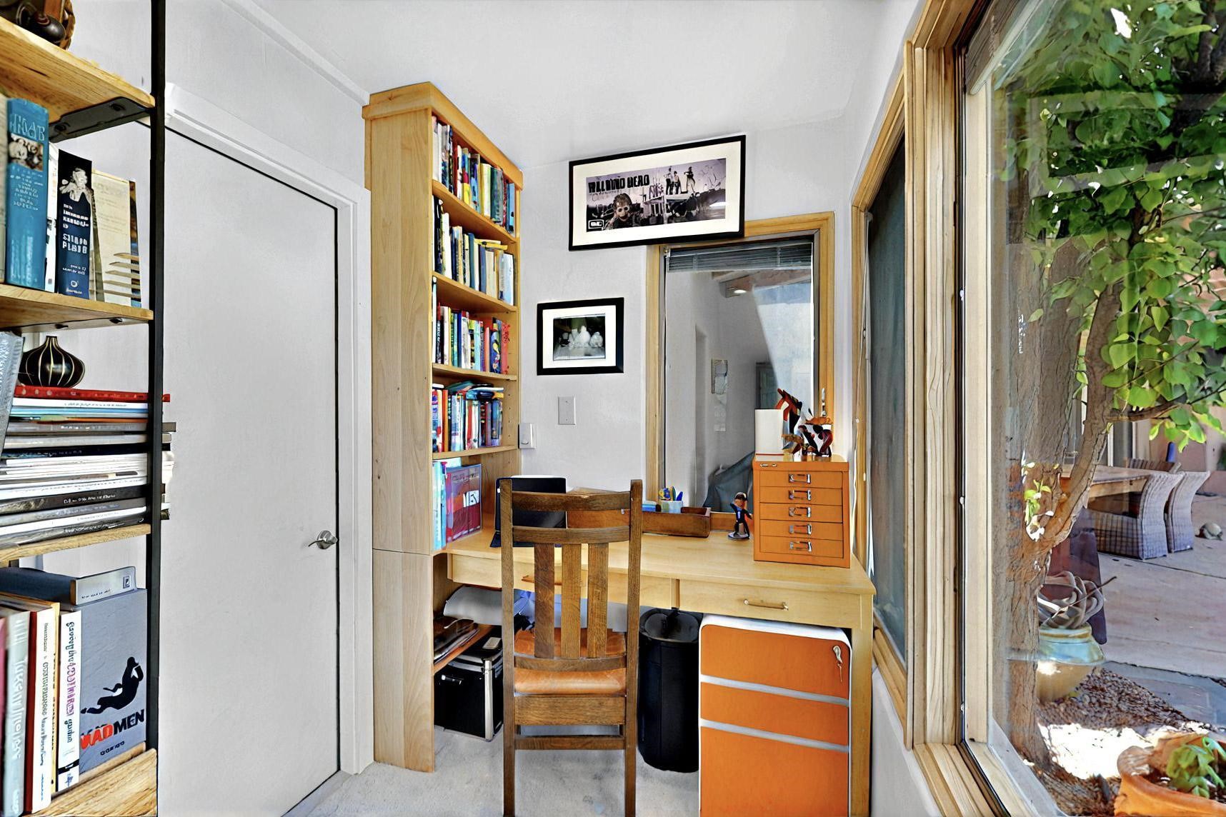 This 4 bedroom, 4 bath home, of which 1 Bedroom and 1 Bath are in an attached guest suite, is perfectly located with proximity to the Las Campanas clubhouse, spa, golf course, and equestrian center. The contemporary style with exposed beams, high ceilings, 4 fireplaces, and open floor plan enhance the spaciousness of the home. The primary suite is spacious and secluded with two separate bathrooms connected by a large shower. The guest spaces are at the other end of the home for privacy. The living area flows to a large portal with fireplace for easy living and entertaining. The portal overlooks a fully enclosed garden space from which to enjoy sunset and mountain views. Enjoy more views and stargaze from the roof deck. The spacious kitchen with pantry is an entertainer's and chef's delight with prep sink, two islands, double ovens, two dishwashers, a 6-burner gas cooktop with griddle, wine cooler, drink refrigerator and a Sub-Zero refrigerator. The attached 2 car heated garage has direct access to the home and guest spaces.