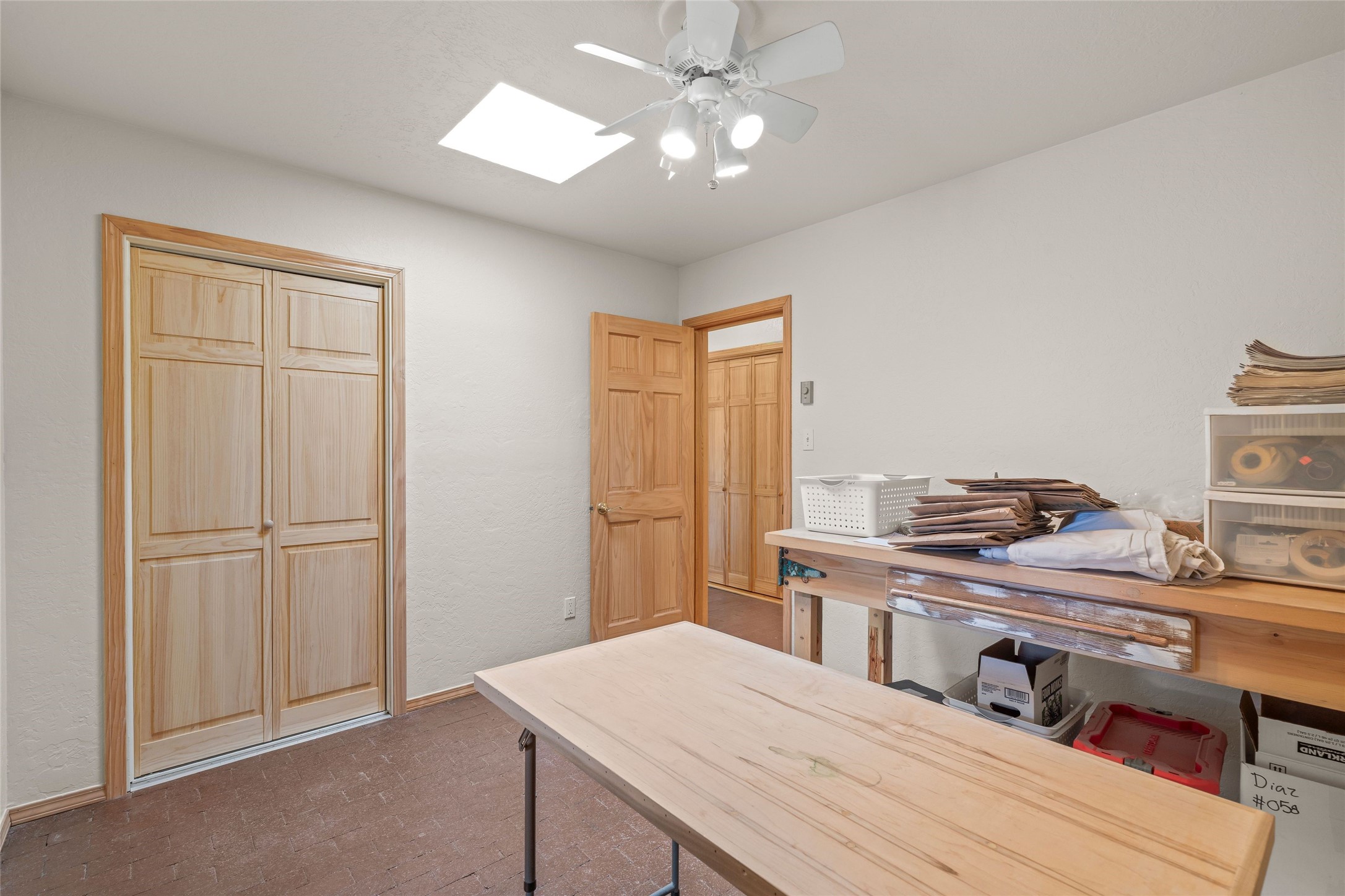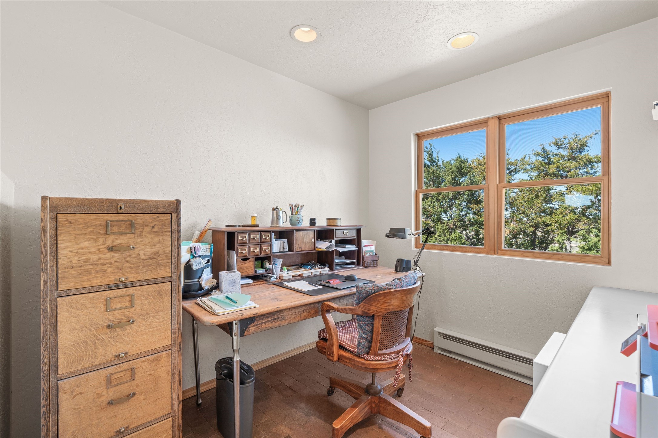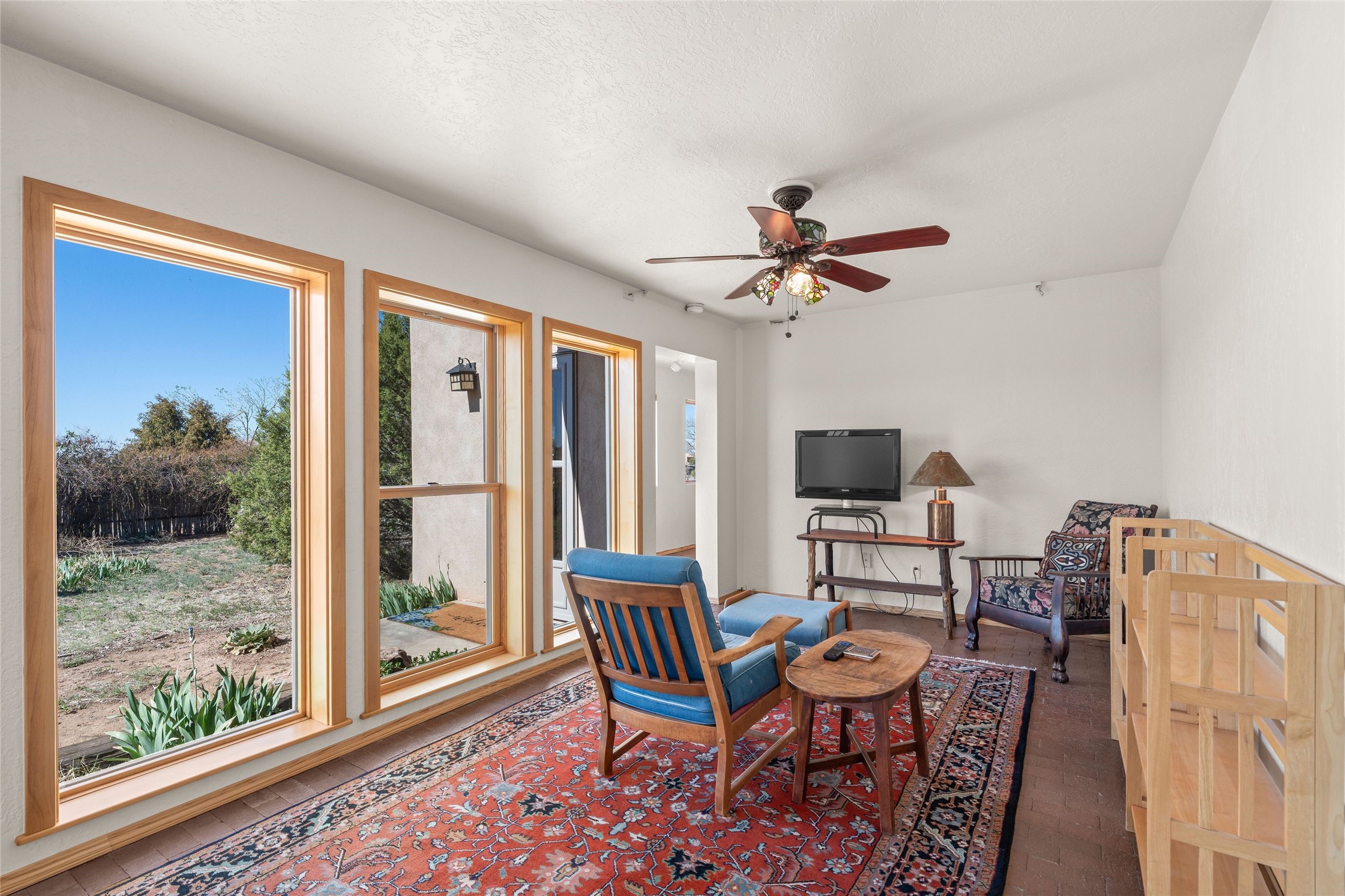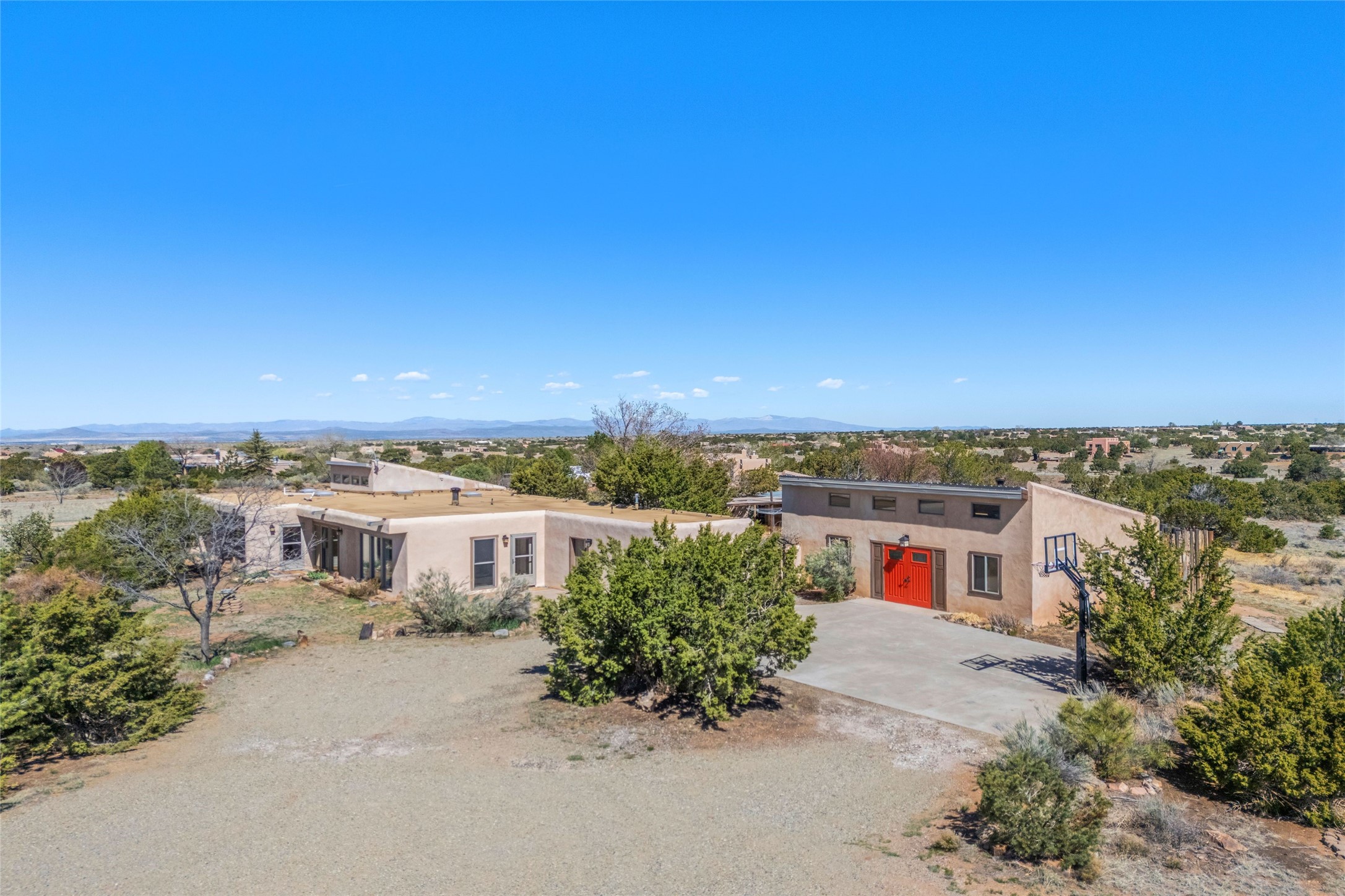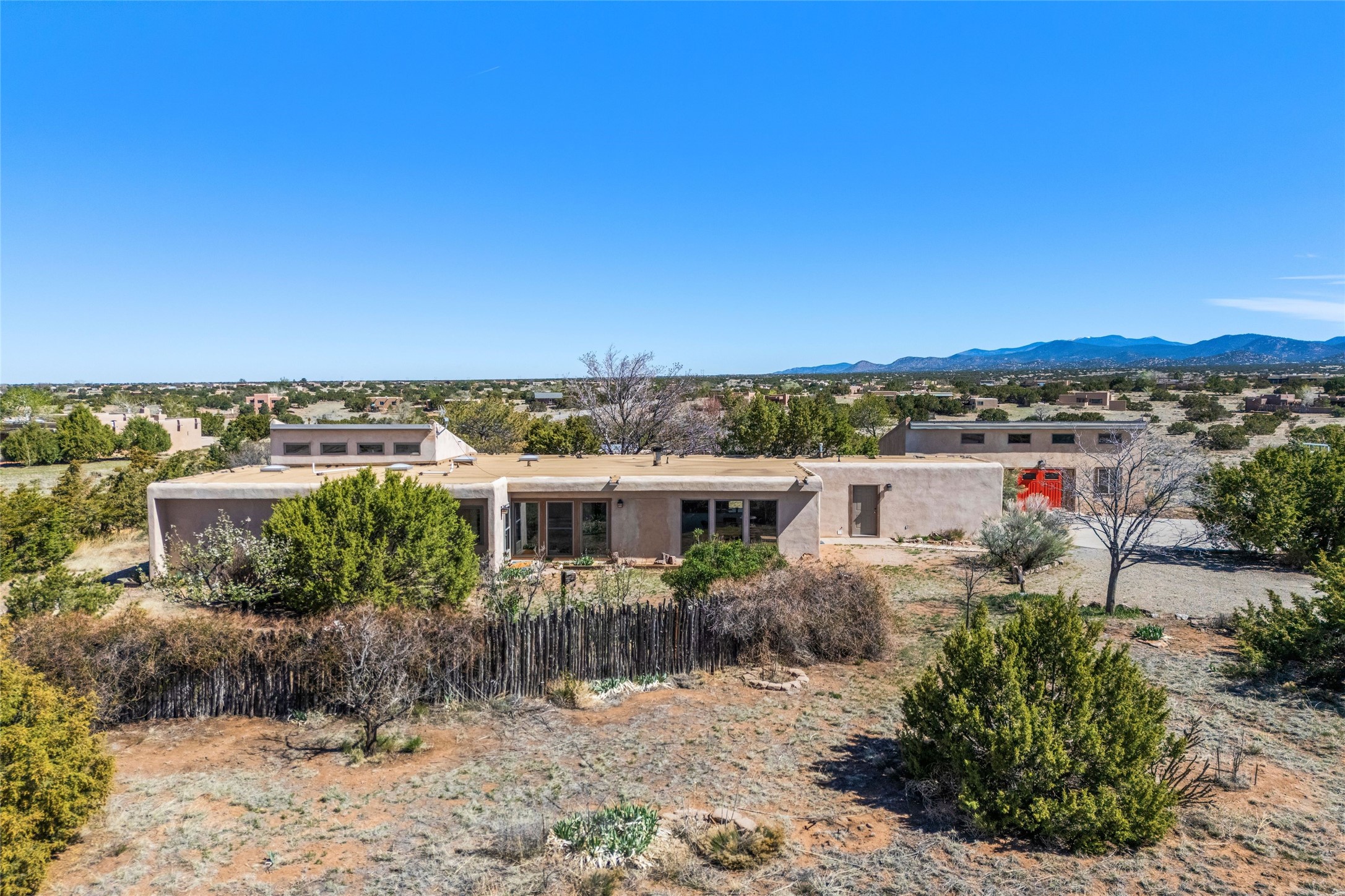 Situated on 1.49 acres in the beloved Eldorado community, this charming 3-bedroom, 2-bathroom retreat is a sanctuary of creativity, comfort, and connection. With 2,004 square feet of light-filled living space and a 704-square-foot detached studio.Inside, classic brick and tile floors, a welcoming kitchen, and a tranquil primary suite with outdoor access set the tone for easy living. Step outside to enjoy multiple patios, mature landscaping, wide-open skies, and the rare bonus of a private well. Backing to greenbelt and open space, the home offers peaceful seclusion with quick access to shopping, dining, and miles of nearby trails. Eldorado's sought-after amenities include scenic walking paths, a community pool, tennis and pickleball courts, a dog park, and an active community center. Just a short drive to the Santa Fe Plaza, this property invites you to embrace a lifestyle that's both grounded in nature and rich in community.