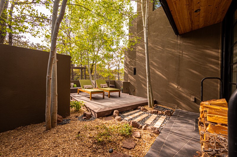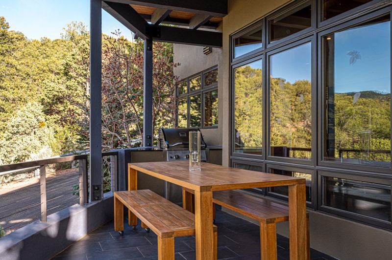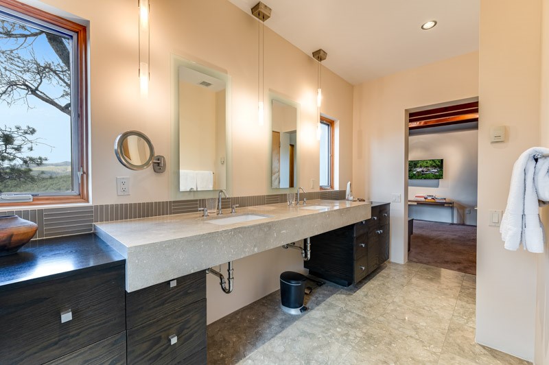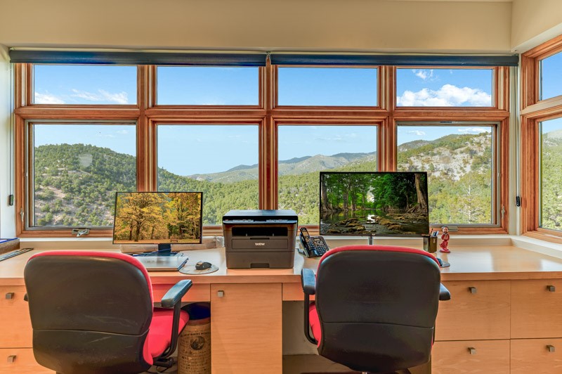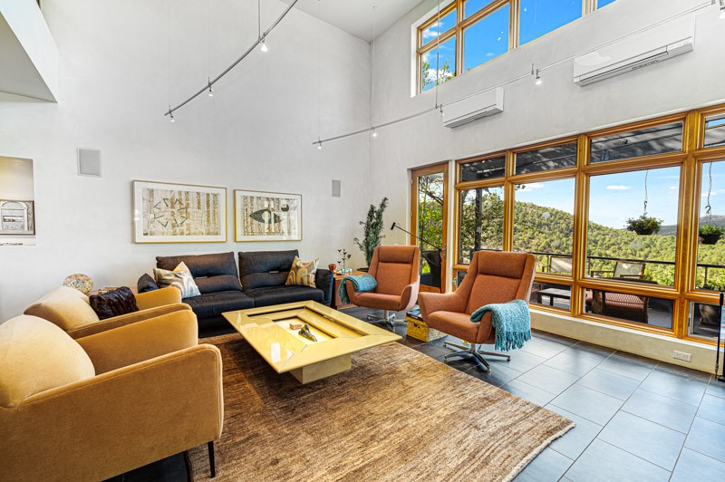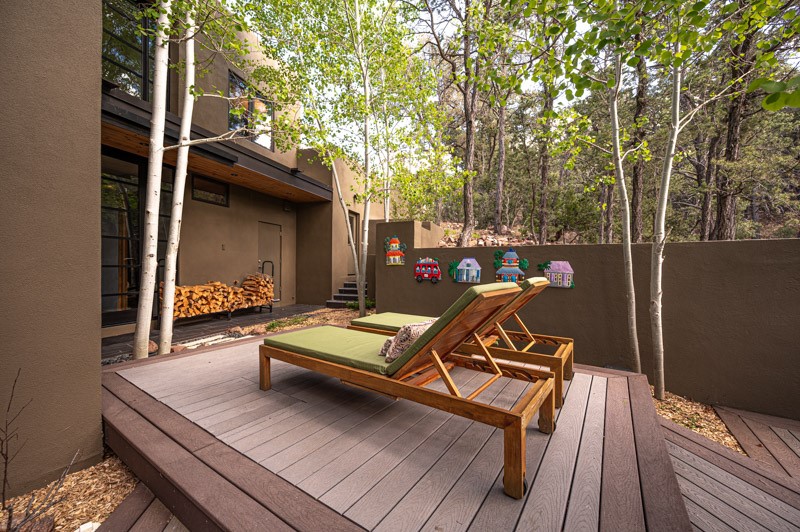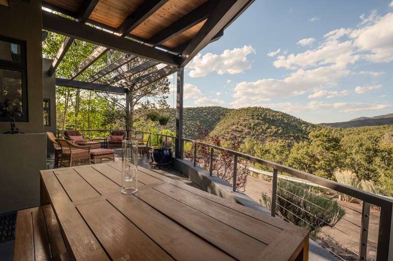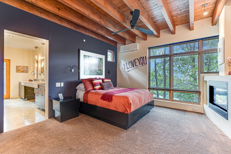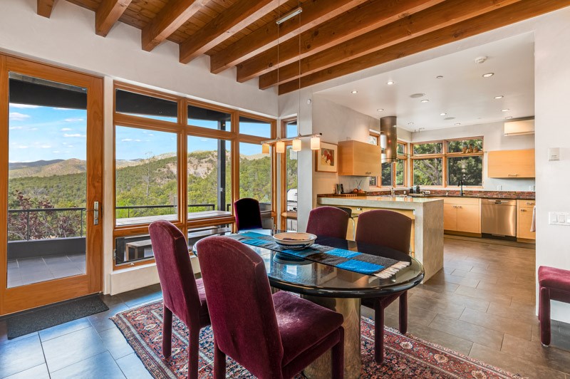 This custom built home is perfectly sited with unbeatable mountain views. Architecturally intelligent, first time on the market and impeccably maintained, this home has all of the amenities of quality living. The main floor has a beautiful owner's suite with a fireplace, bath, walk-in closet and French door to outside deck and portal. The living room has exceptional style with fireplace, soaring ceiling and glass wall engulfing mountain ambiance and the kitchen is light and view filled with Wolf, Bosch and Subzero appliances. The fine finishes include glass tile, unique high-gloss Parapan cabinetry, limestone and granite countertops. Dining is open to the mountain serenity and with maple buffet and access to outdoor built-in kitchen and portal. The spacious laundry/storage leads to a finished garage and wood working studio. Nature beckons with an outdoor hot tub. There is Trex decks, sound system inside/outside, and mature landscaping. There is an impressive use of rare wood such as Brazilian Rosewood that gives this contemporary home an inviting warmth. Upstairs is a stunning guest suite, additional bedroom with a full bath and walk-in closet. Open to the impressive views and to a private deck, the loft office has two built-in desks and bookshelves. This property is a rare piece of art.