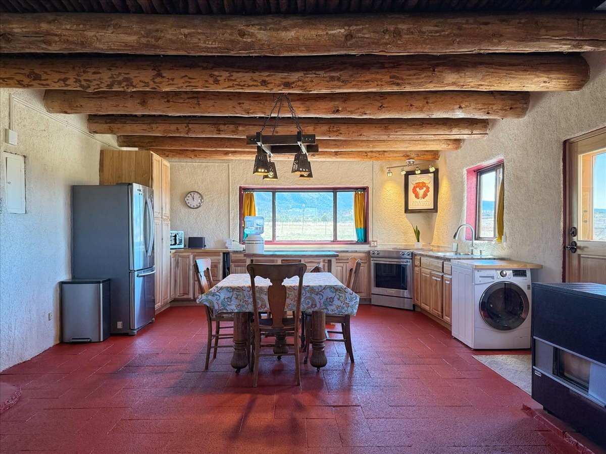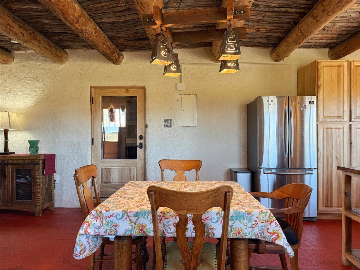 Escape to serenity in this sunny one bedroom one bath 1980s Adobe Revival home nestled in our stunning New Mexico mountains! The open concept living space flows effortlessly into a well appointed kitchen, while the spacious but cozy bedroom offers a restful night's sleep with tranquil views of the San Pedro mountain range in the Santa Fe National Forest right in the backyard. This 1.4 acre property boasts shipping container outbuildings, as well as RV parking and hook up, all fully fenced and includes a Michael Reynolds designed Earthship as a bonus separate/building with the potential of being a really sweet art studio with it's own wood burning stove! This peaceful location is graced by an abundance of wildlife while still conveniently located between Bernalillo and Los Alamos all while you can enjoy the sweet town of Cuba and the delicious Northern New Mexican food! If you are looking for something really cool and down to earth, this is it! Schedule your showing today! Owner financing possible with favorable terms. Call the listing broker for more information or to schedule your showing! Don't miss out on this fantastic opportunity to own such a special, very well maintained home (and bonus Earthship!) in the Land of Enchantment!