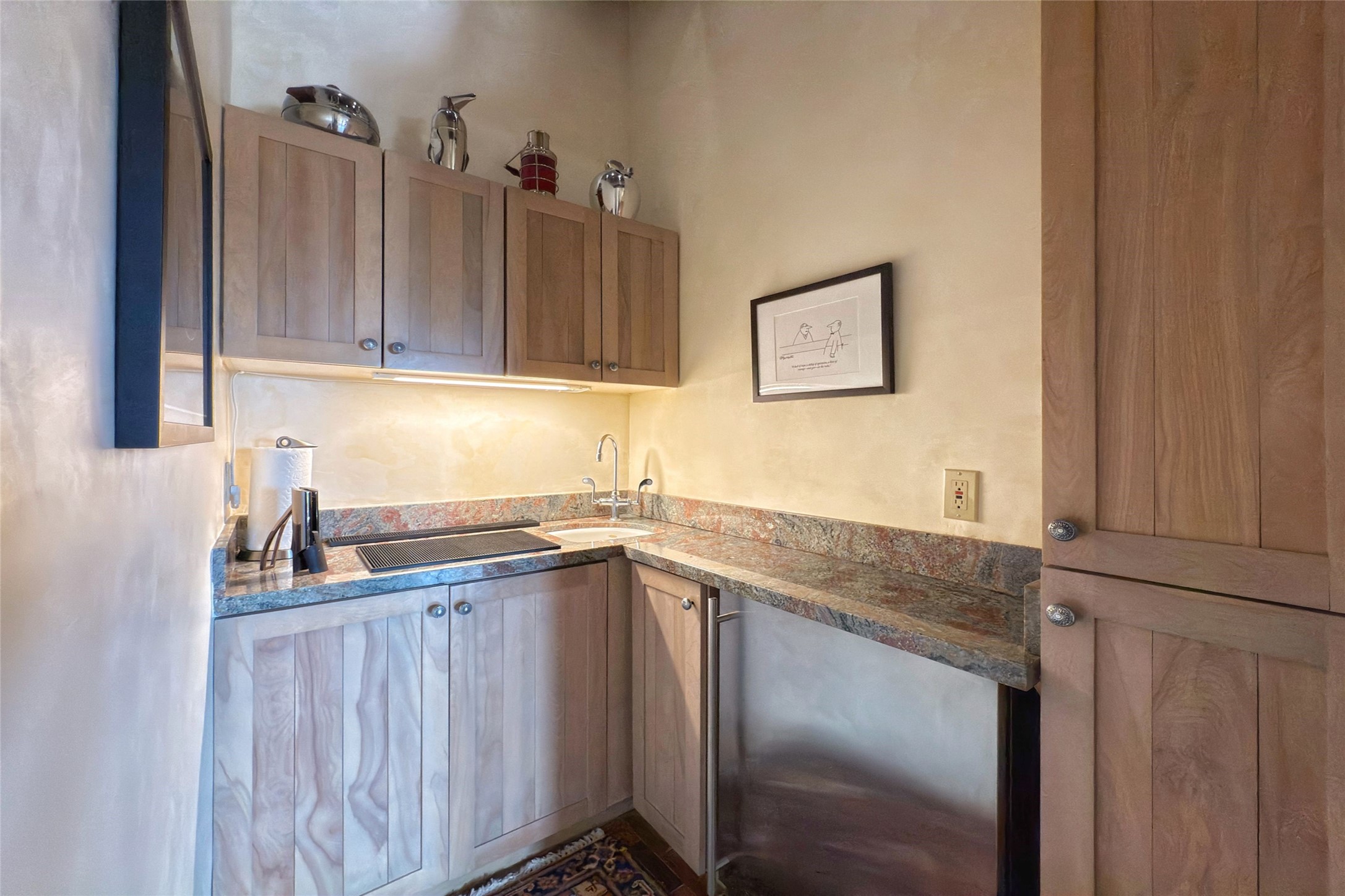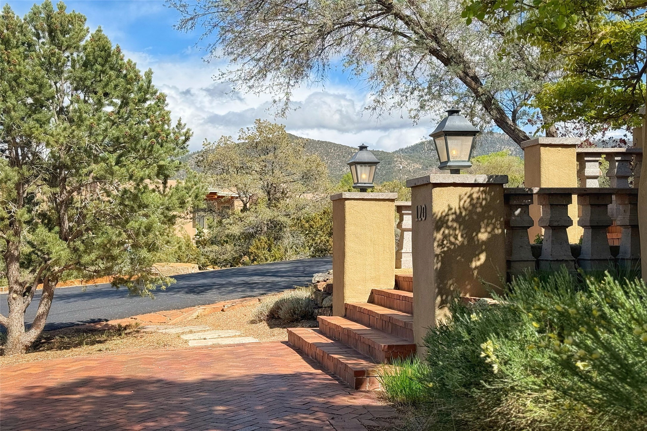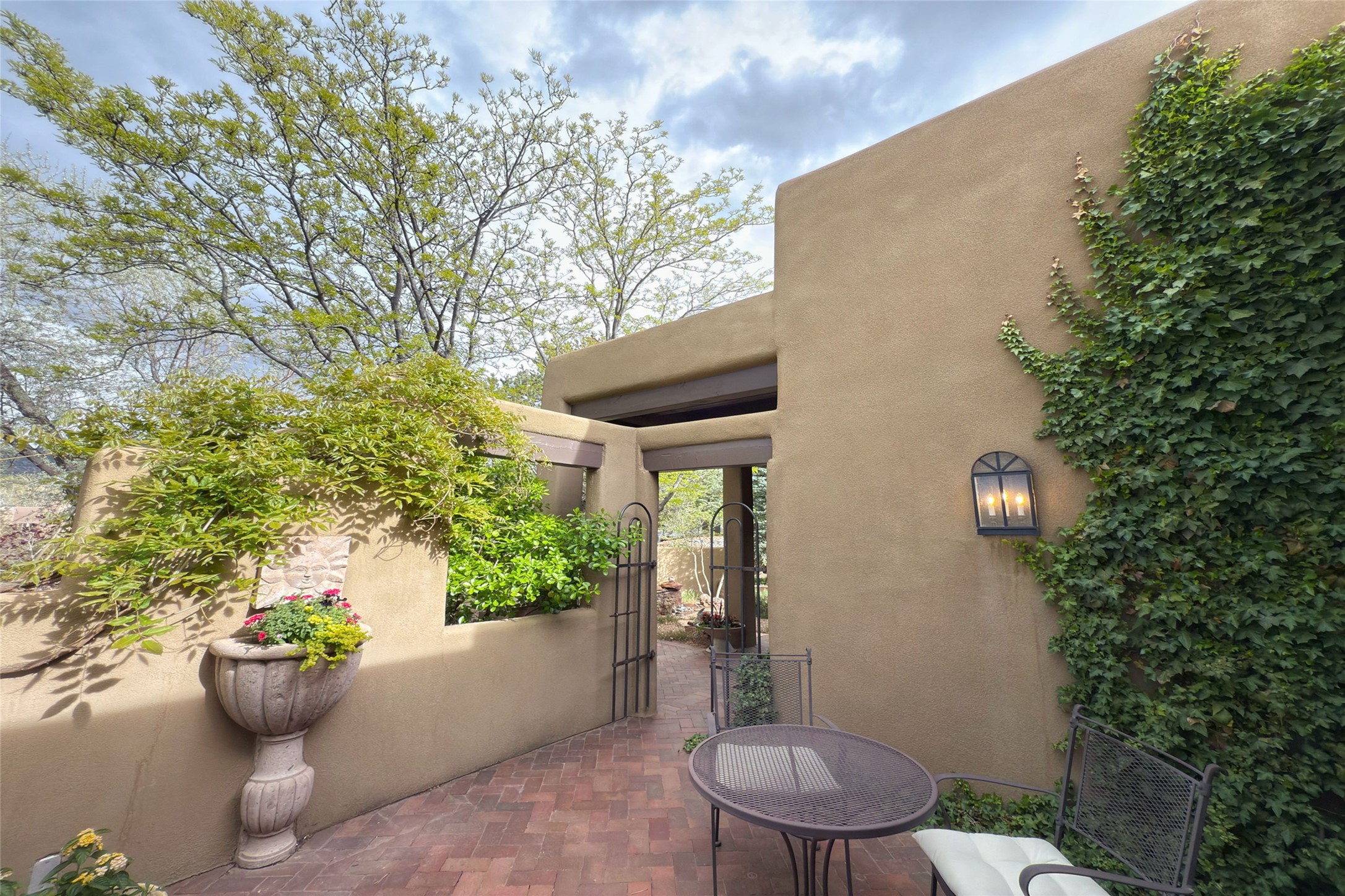 Elegant Foothills Estate with Sangre and Jemez Mountain Views in La CanteraThis exceptional residence is nestled within the prestigious, gated enclave of La Cantera--just moments from the world-class galleries and dining of Canyon Road and the Plaza. Designed for refined living and grand-scale entertaining, the home blends traditional Santa Fe architecture with timeless luxury and sweeping mountain vistas.Enter into a gated courtyard with mature landscaping. A gracious reception and a dramatic gallery hallway lead to an expansive great room with soaring beamed ceilings, one of five fireplaces, and panoramic views. The heart of the home is a spacious open-concept kitchen and dining area, offering breathtaking landscape views. Multiple outdoor living spaces, including a portal with fireplace are ideal for alfresco dining or sunset gatherings. The generous primary suite features a cozy fireplace, walk-in closet, sitting room, and courtyard access. Guests are accommodated in an ensuite bedroom with fireplace and private courtyard. The large studio, currently used as a gym, is ensuite and has a north-facing picture window. There is also outside entry making this space perfect for additional guests or an office. More highlights include a versatile media/office room ensuite with an adjoining sunroom, a wet bar with adjacent wine storage space, a cozy breakfast room, and a workshop off the garage.Set on a private, beautifully landscaped lot with mature trees and tranquil outdoor spaces, this is a rare opportunity to own a remarkable residence in one of Santa Fe's most sought-after communities.