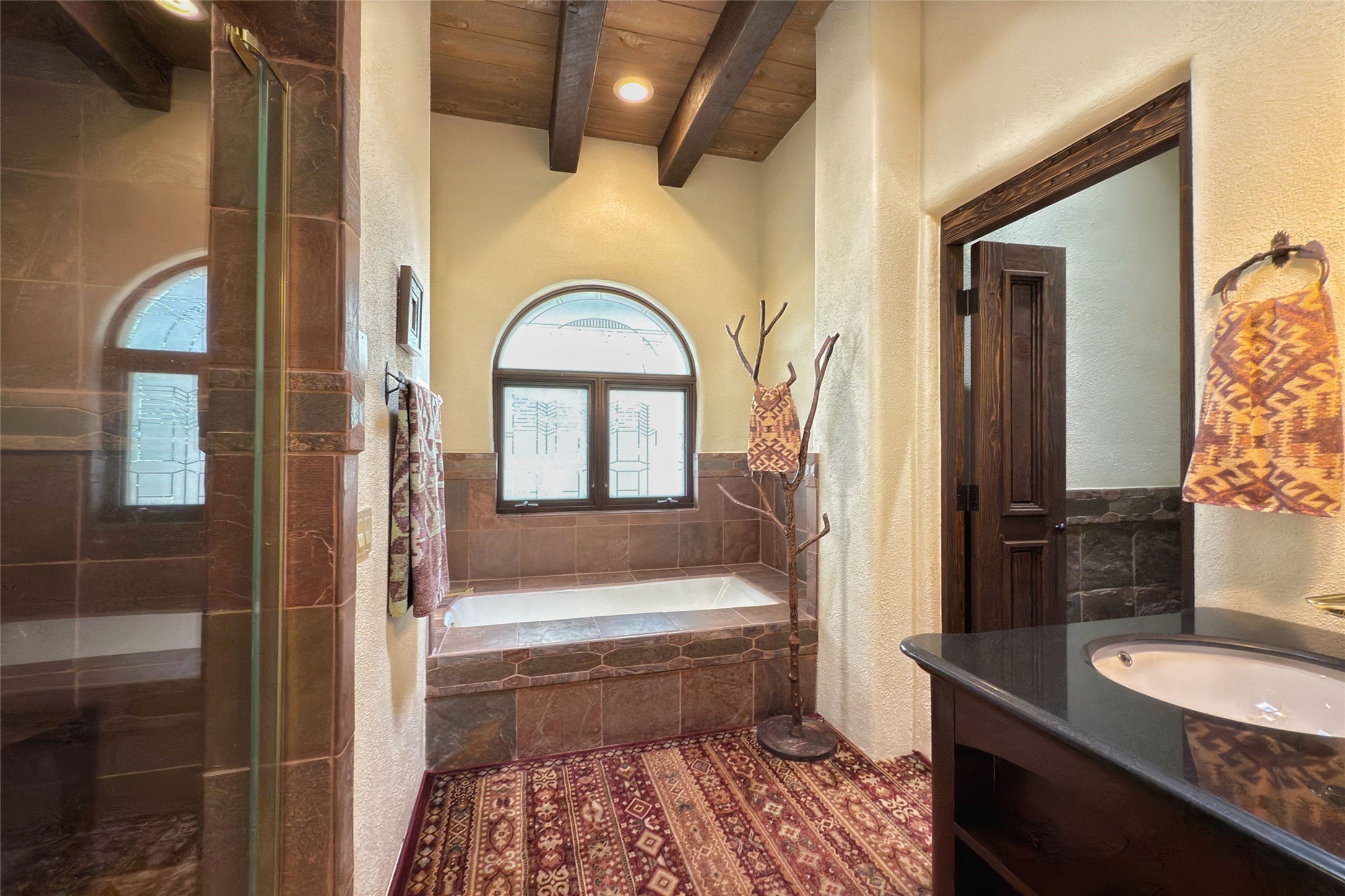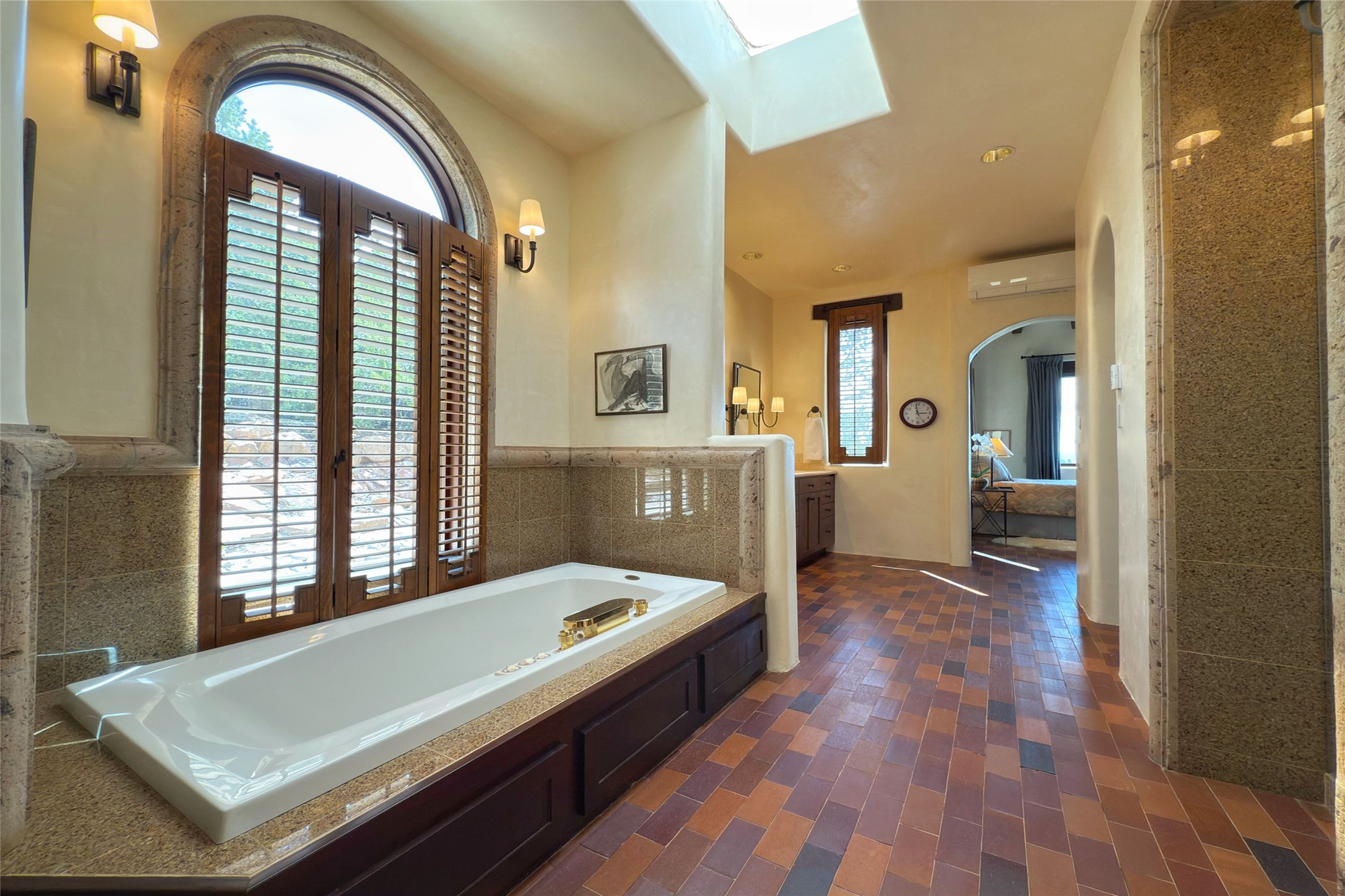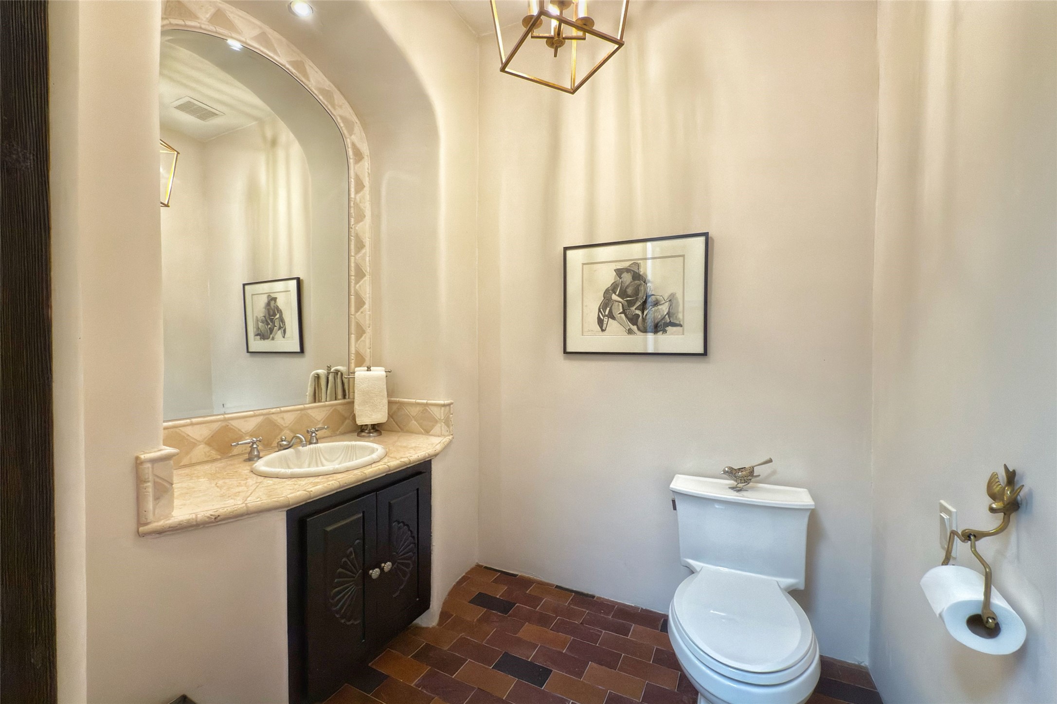 Elegant Foothills Estate with Sangre and Jemez Mountain Views in La CanteraThis exceptional residence is nestled within the prestigious, gated enclave of La Cantera--just moments from the world-class galleries and dining of Canyon Road and the Plaza. Designed for refined living and grand-scale entertaining, the home blends traditional Santa Fe architecture with timeless luxury and sweeping mountain vistas.Enter into a gated courtyard with mature landscaping. A gracious reception and a dramatic gallery hallway lead to an expansive great room with soaring beamed ceilings, one of five fireplaces, and panoramic views. The heart of the home is a spacious open-concept kitchen and dining area, offering breathtaking landscape views. Multiple outdoor living spaces, including a portal with fireplace are ideal for alfresco dining or sunset gatherings. The generous primary suite features a cozy fireplace, walk-in closet, sitting room, and courtyard access. Guests are accommodated in an ensuite bedroom with fireplace and private courtyard. The large studio, currently used as a gym, is ensuite and has a north-facing picture window. There is also outside entry making this space perfect for additional guests or an office. More highlights include a versatile media/office room ensuite with an adjoining sunroom, a wet bar with adjacent wine storage space, a cozy breakfast room, and a workshop off the garage.Set on a private, beautifully landscaped lot with mature trees and tranquil outdoor spaces, this is a rare opportunity to own a remarkable residence in one of Santa Fe's most sought-after communities.