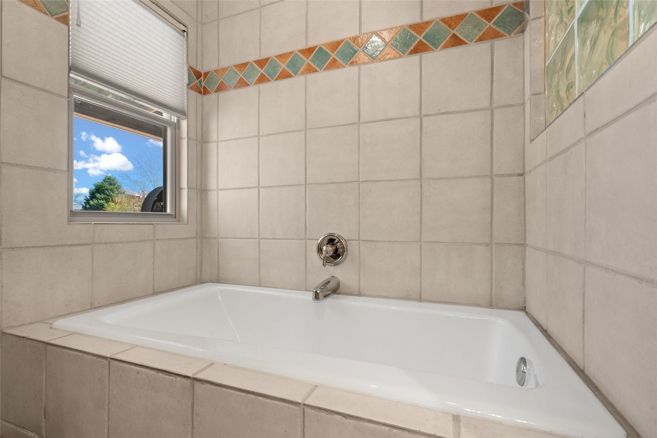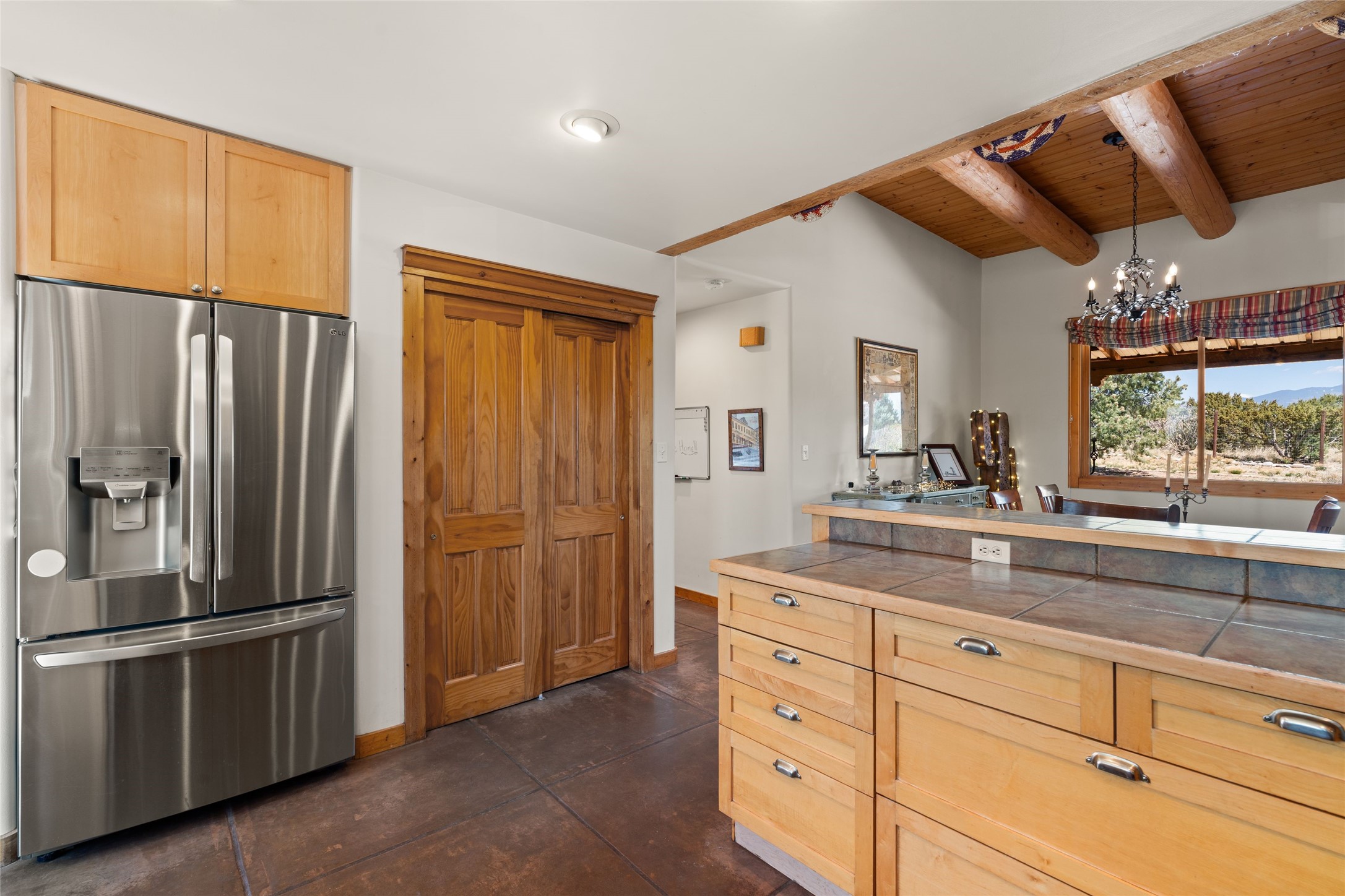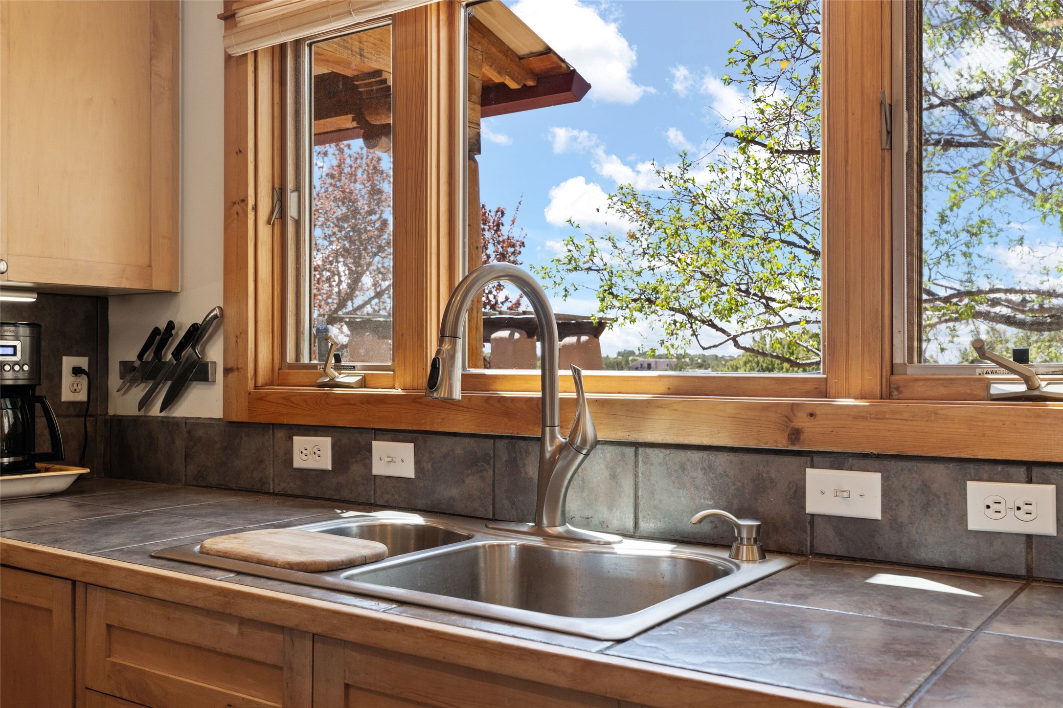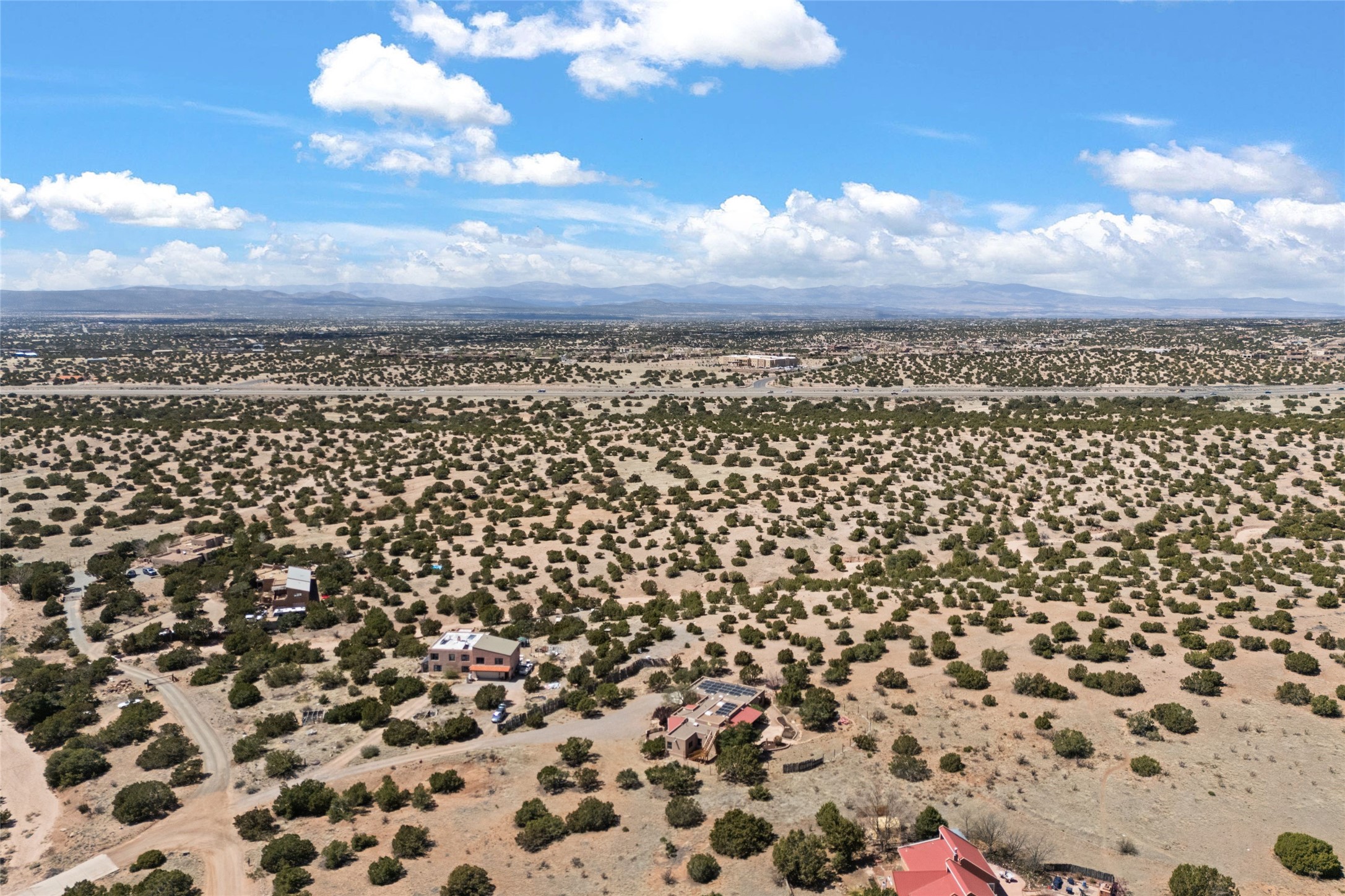 Welcome home to country living in the city with beautiful views in every direction! Enjoy the sunrise over the Sangre de Cristo's in the tastefully landscaped back portal and the sunset over the Jemez and Sandia mountains on the viewing deck off the sunroom or escape the sun in the spa off the primary bedroom at the north of the home. This 3 bedroom 2 bathroom pueblo style getaway has sleek concrete floors and a light and airy open living area with an extra space prime for a den. Peaceful and tranquil, 2.5 acres of lovely high desert expanse only a few miles from the downtown, ideally situated less than a mile off West Alameda. Oversized garage, solar powered, stairway to the roof to stargaze, fruit trees and pollinator garden and hiking trails all around. Also a great spot for dogs, with a large fenced in back yard and complete with custom doggie doors. Come and see, you'll be glad you did!