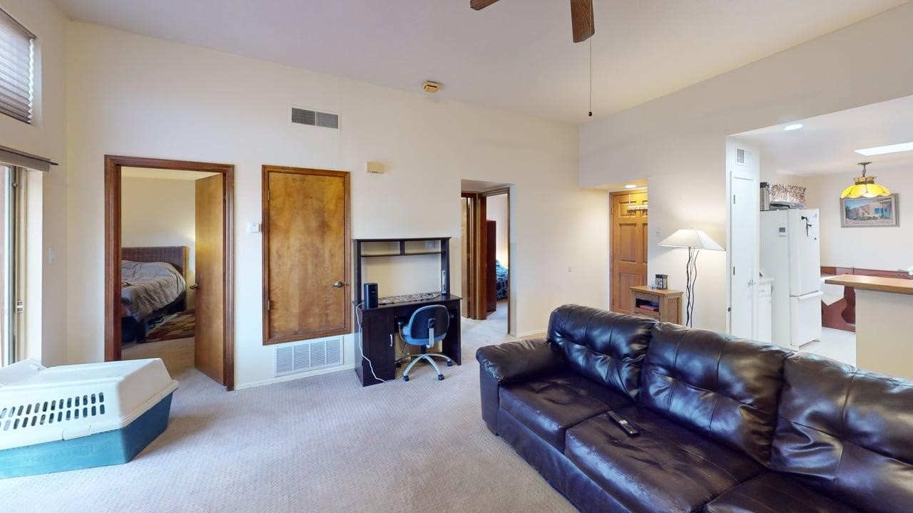 Welcome to this well-maintained two-bedroom, two-bathroom townhome in a prime central Santa Fe location. Enjoy modern comfort with recently added refrigerated air and a thoughtful layout that offers both privacy and functionality.Enter through a gated front courtyard that provides a peaceful buffer from the street. Out back, you'll find a fully fenced yard with mature trees offering shade and serenity, plus a spacious deck--perfect for outdoor dining, relaxing, or entertaining. The attached two-car garage offers direct entry into the home for added ease.This home is perfect for a single person, a couple, or a small family seeking a comfortable and low-maintenance lifestyle. Conveniently located near I-25, schools, walking trails, and shopping, it's also a great opportunity for investors looking for a solid rental property.Don't miss your chance to own this Santa Fe gem--schedule your showing today!