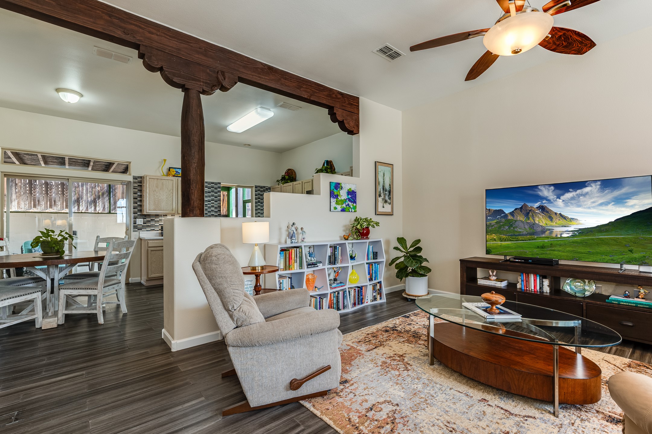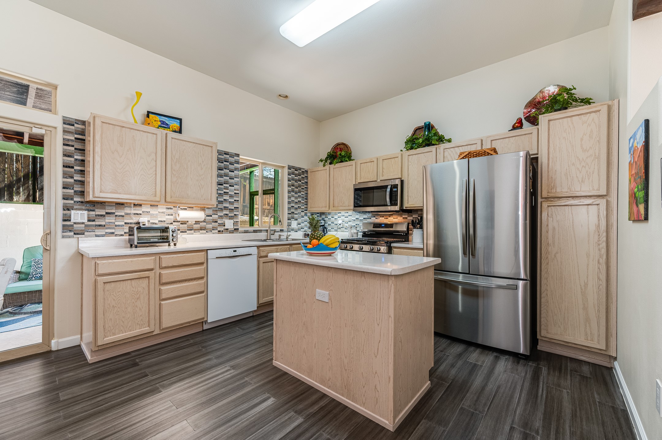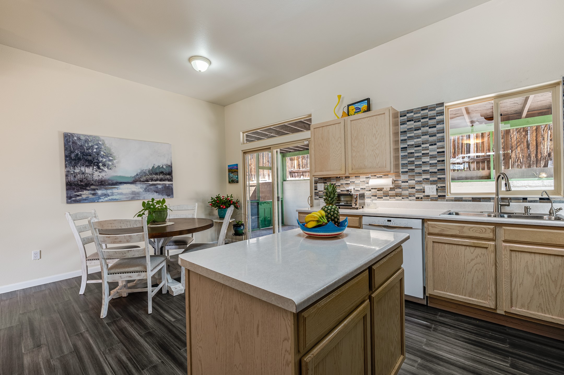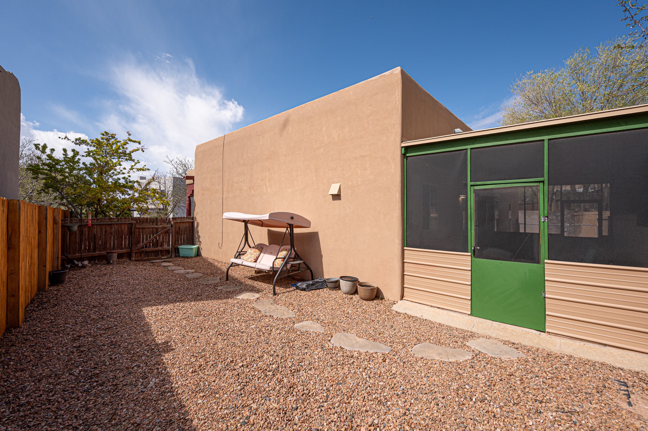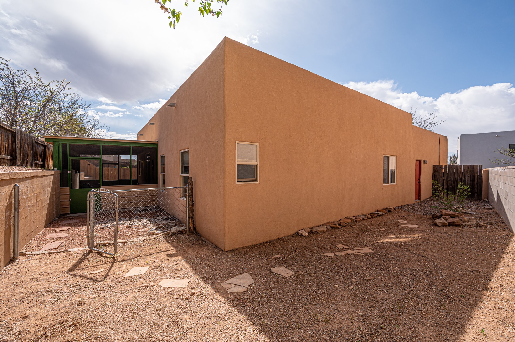 Comfort meets convenience in this inviting and well-maintained single-level home nestled next to the Santa Fe Country Club and surrounded by picturesque walking trails. The open eat-in kitchen features an island for meal preparation and an area for casual dining, making it a welcoming space for gatherings. The large screened back porch just outside the kitchen provides an ideal spot for relaxation or entertaining friends and family. The fully fenced back yard provides privacy, while the two side yard areas offer ample space for a dog run and various back yard activities. Three bedrooms and two bathrooms include a primary bedroom with en-suite bathroom and a second bathroom in the hallway, ensuring ample space for everyone. With plenty of built-in shelving in closets and a two-car garage with additional storage space, organization and storage are a breeze. Recent updates in the past few years include a new roof, fresh interior paint throughout, and exterior maintenance and painting. Whether you're commuting to work or planning a getaway, you'll appreciate the proximity to the Veterans Memorial Highway/599 and the Santa Fe Regional Airport. No Homeowners Association (HOA).