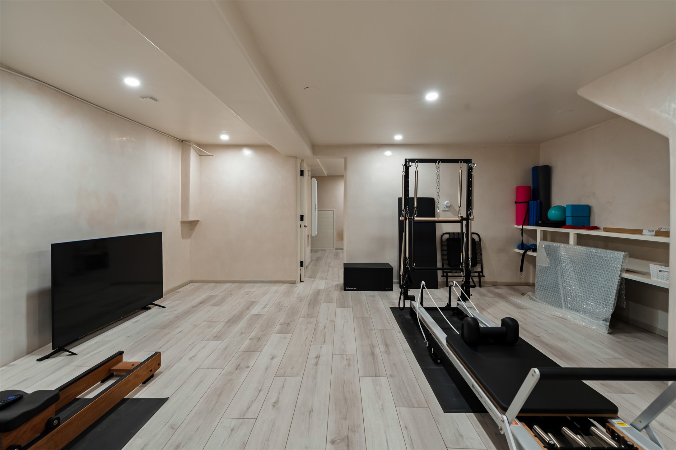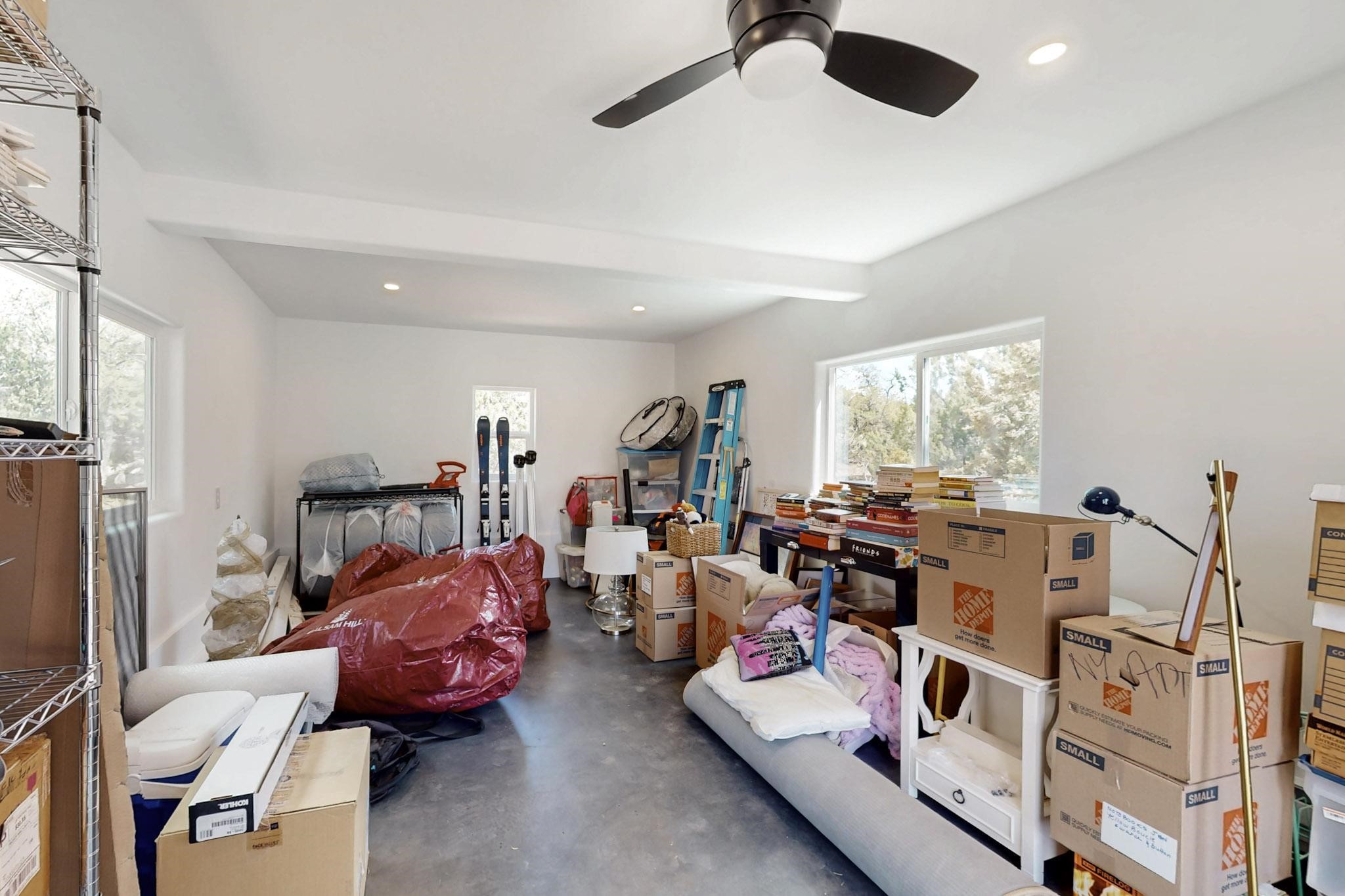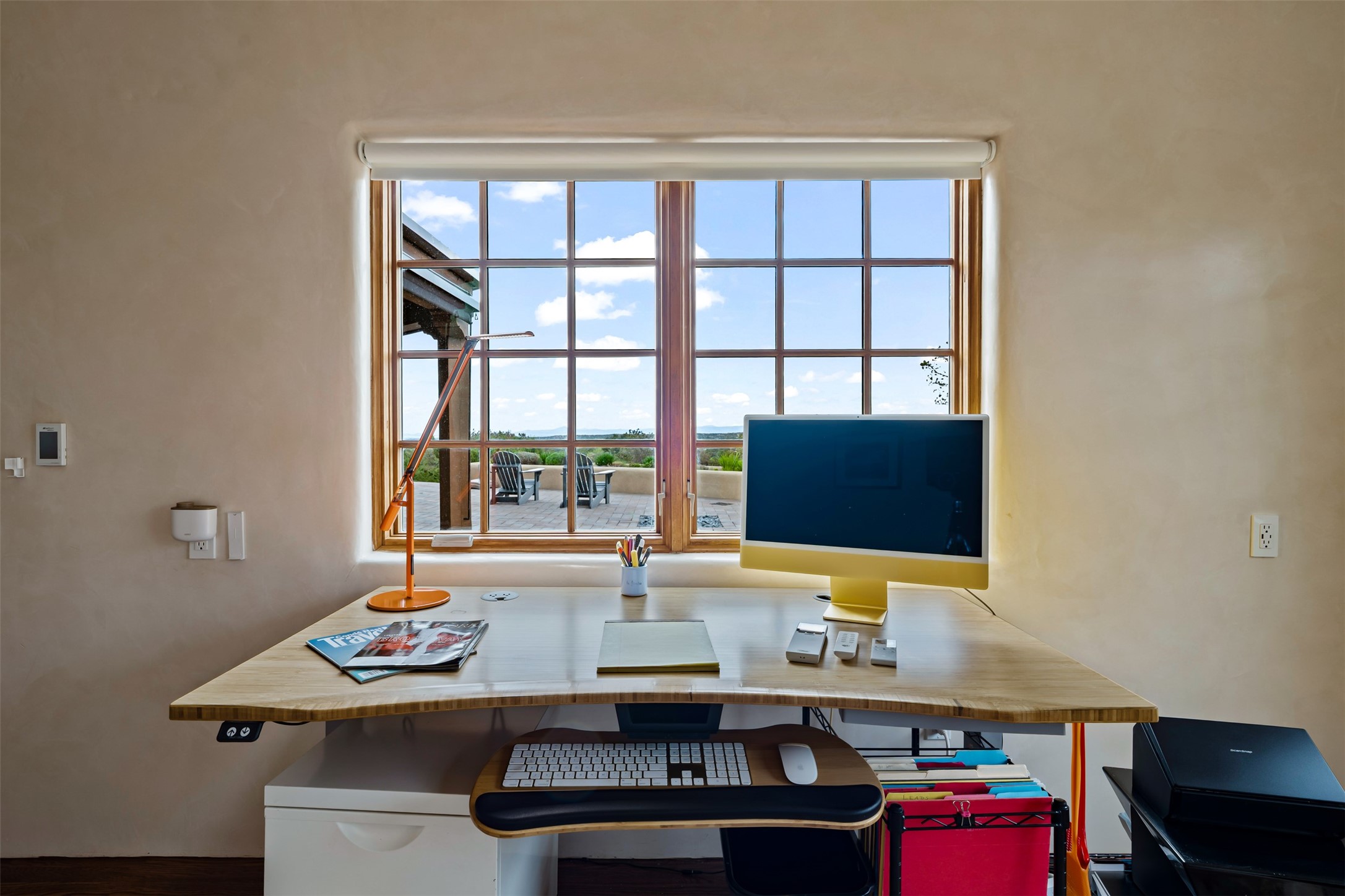 Beautiful, extensively remodeled, classic Santa Fe style home with jaw dropping panoramic mountain views on 3.4 wooded acres. Located on prestigious Circle Drive a mere 5 minute drive to downtown Santa Fe, this sensational home, built in 1936, impresses at every turn starting with the custom hand crafted iron gate, down the drive to a partially covered front entry courtyard leading to the front door and into a hallway of glistening diamond plaster walls that are throughout the house as, mostly, are the oak floors. Ahead is the spacious library/den with kiva fireplace. Through thick walled arches off the library is the formal living room beyond with its central fireplace and flanking windows and the 2 sets of French doors to bring in the light and the views; and boasting high ceilings with majestic corbels and vigas. The gourmet kitchen is entirely new with its own wet/coffee bar and nearby is an enormous pantry. Off the kitchen is a grand, heated portal and terrace to drink in the views and glory in the sunsets. The 3 bedroom suites are generously sized with remodeled bathrooms and each with glass doors to the outside. The closet in the primary bedroom is a wonder to behold and has its own washer and dryer. The 4th bedroom, currently set up as an office, is newly built and has some of the best views. A downstairs flex room (was a bedroom) is set up for exercise with adjacent laundry room. The heated detached studio nestles in the trees off the driveway and has multiple uses or, with adaption, could be another garage. A luxury home worthy of the name!