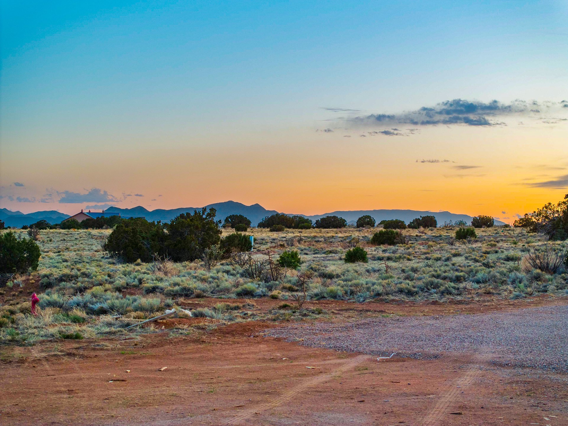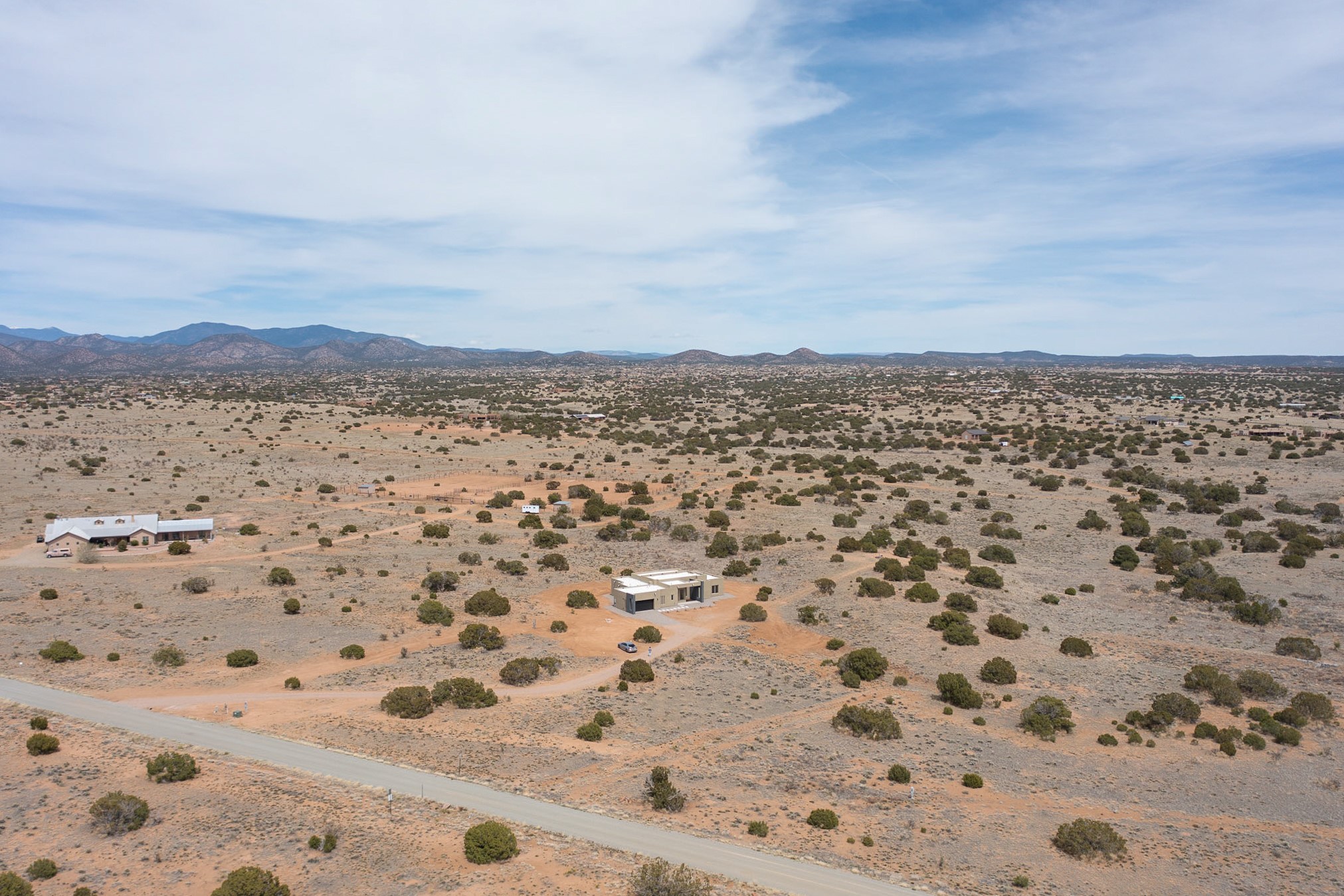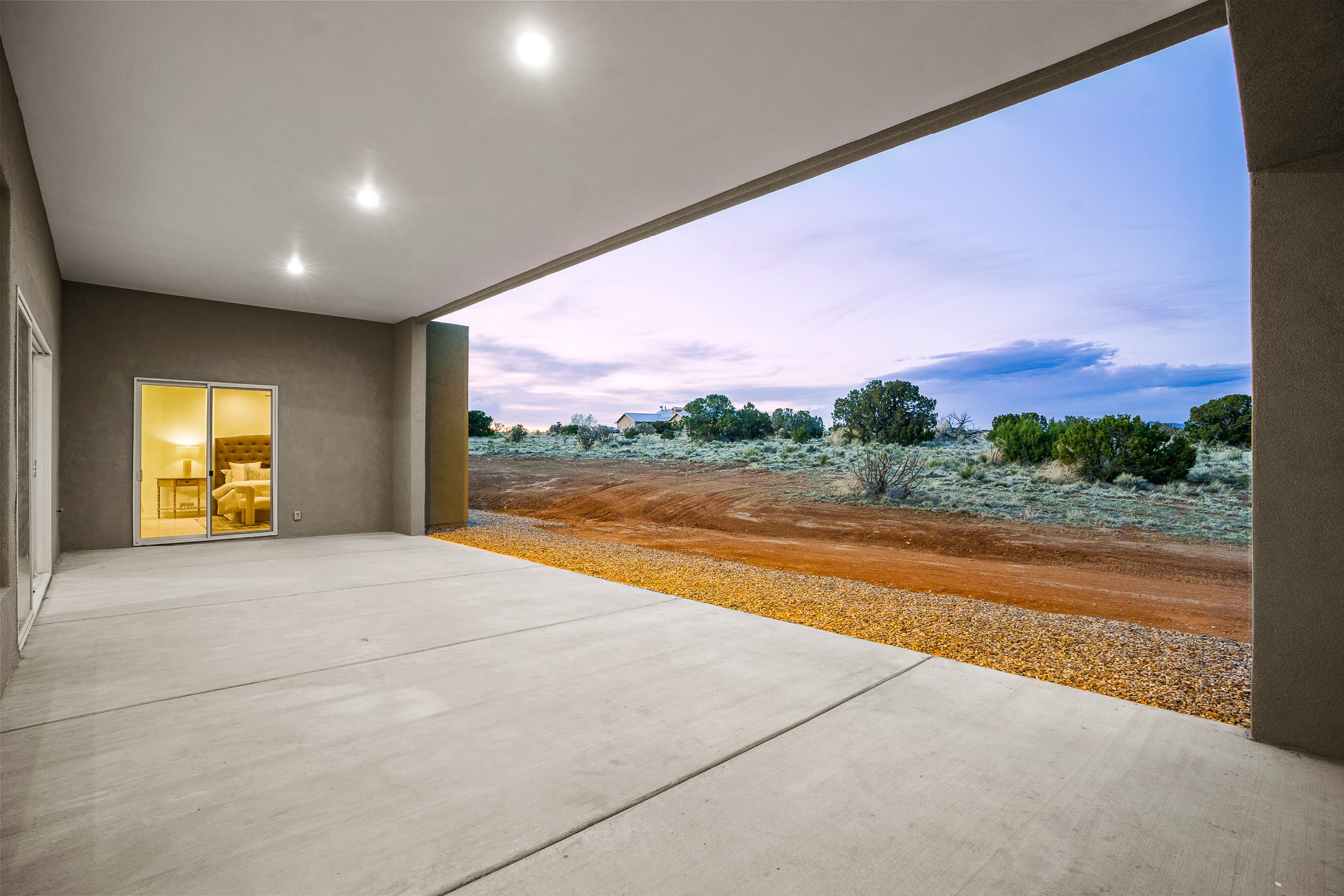 Just completed and ready for occupancy! One of the best view lots in the area. Mountain views from every window in this new custom built contemporary pueblo style home with open floor plan situated on a huge 12.50 +/- ac. private lot in Ceilo Tranquilo. Perfect for indoor and outdoor entertaining with 1000 square foot (50 x 20) back portal and over 200 square foot front portal. Open kitchen/family/dining room has floor to ceiling windows and double sliding glass doors to take in the fabulous views and access to the portal. The contemporary kitchen has a huge island bar and large walk in pantry. Home has all tile floors, high ceilings throughout and central a/c and heat. Owner's suite has large picture window with fabulous mountain views and sliding door to the portal. Owner's bath has double sinks, soaking tub and large walk in shower room with double shower heads and rain showers and a large walk in closet. Home features contemporary style vigas in living areas. Many extras including a bonus room that could be a mud room, office, studio or crafts room, oversized two car garage with extra storage space. This home has it all; new home, fabulous views, great outdoor spaces, contemporary open floor plan, large private lot that allows horses and additional structures. Easy access to all the shopping and dining and near all the outdoor activities. $4000 appliance credit for range, dishwasher and microwave.