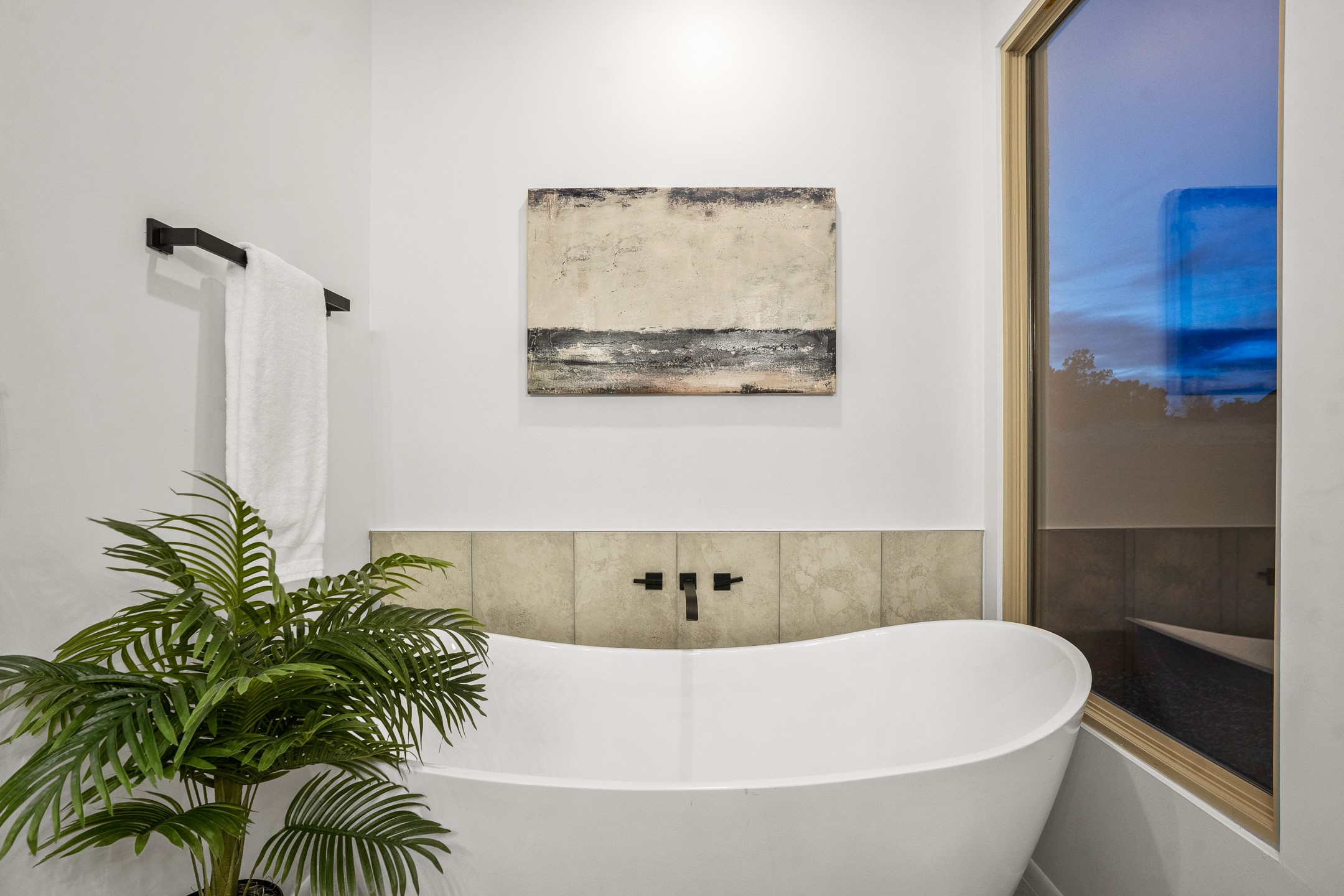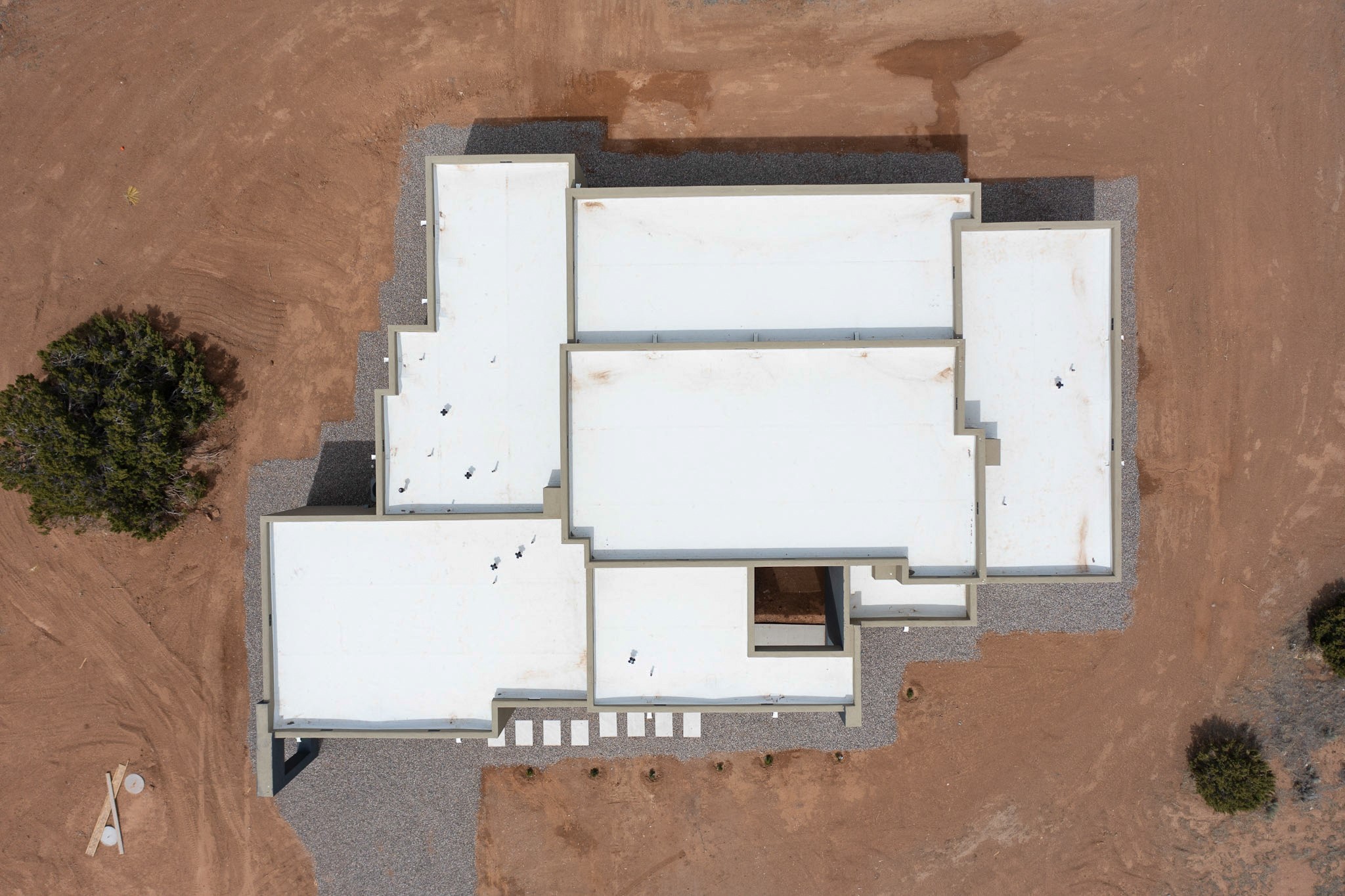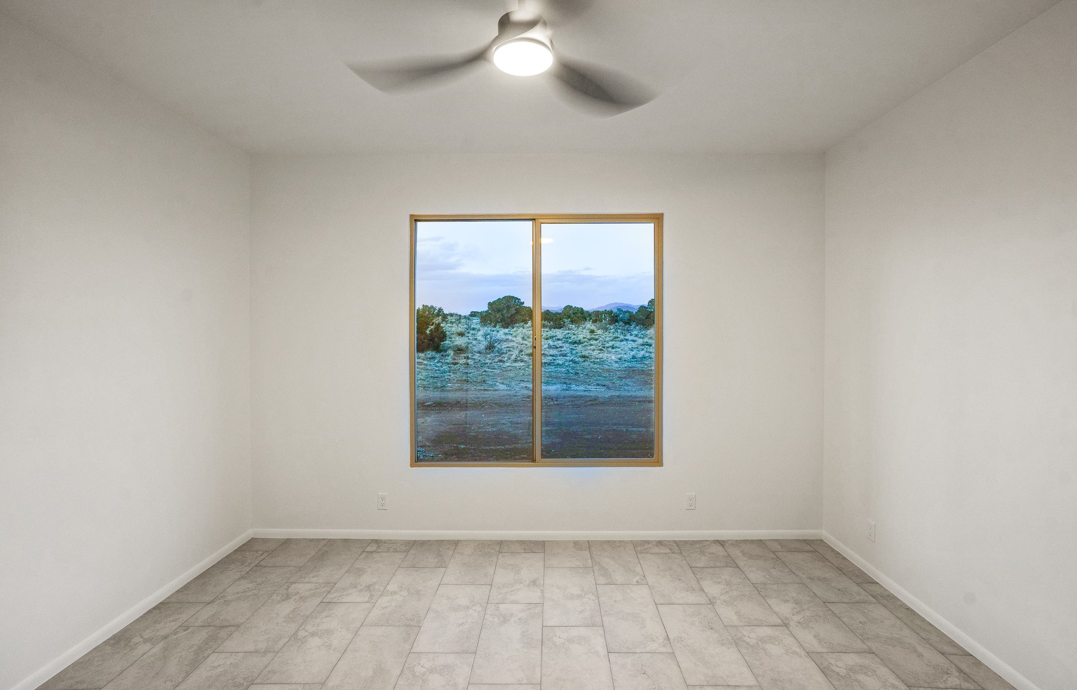Just completed and ready for occupancy! One of the best view lots in the area. Mountain views from every window in this new custom built contemporary pueblo style home with open floor plan situated on a huge 12.50 +/- ac. private lot in Ceilo Tranquilo. Perfect for indoor and outdoor entertaining with 1000 square foot (50 x 20) back portal and over 200 square foot front portal. Open kitchen/family/dining room has floor to ceiling windows and double sliding glass doors to take in the fabulous views and access to the portal. The contemporary kitchen has a huge island bar and large walk in pantry. Home has all tile floors, high ceilings throughout and central a/c and heat. Owner's suite has large picture window with fabulous mountain views and sliding door to the portal. Owner's bath has double sinks, soaking tub and large walk in shower room with double shower heads and rain showers and a large walk in closet. Home features contemporary style vigas in living areas. Many extras including a bonus room that could be a mud room, office, studio or crafts room, oversized two car garage with extra storage space. This home has it all; new home, fabulous views, great outdoor spaces, contemporary open floor plan, large private lot that allows horses and additional structures. Easy access to all the shopping and dining and near all the outdoor activities. $4000 appliance credit for range, dishwasher and microwave.