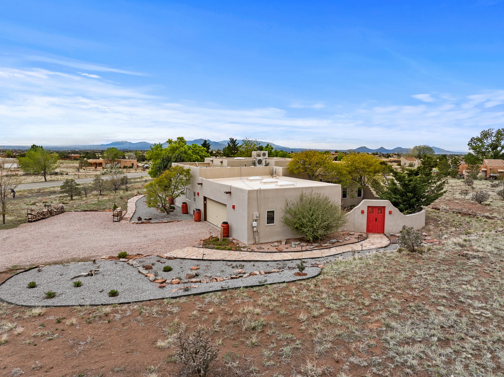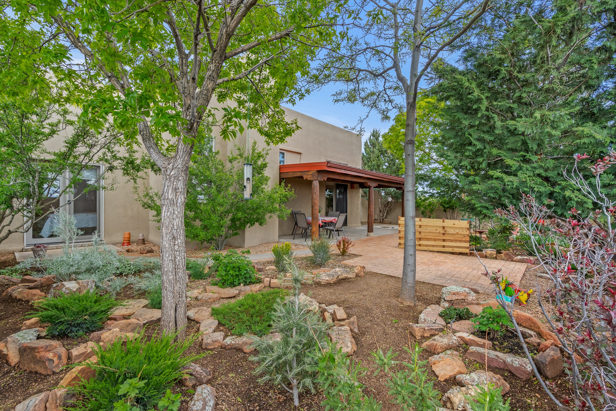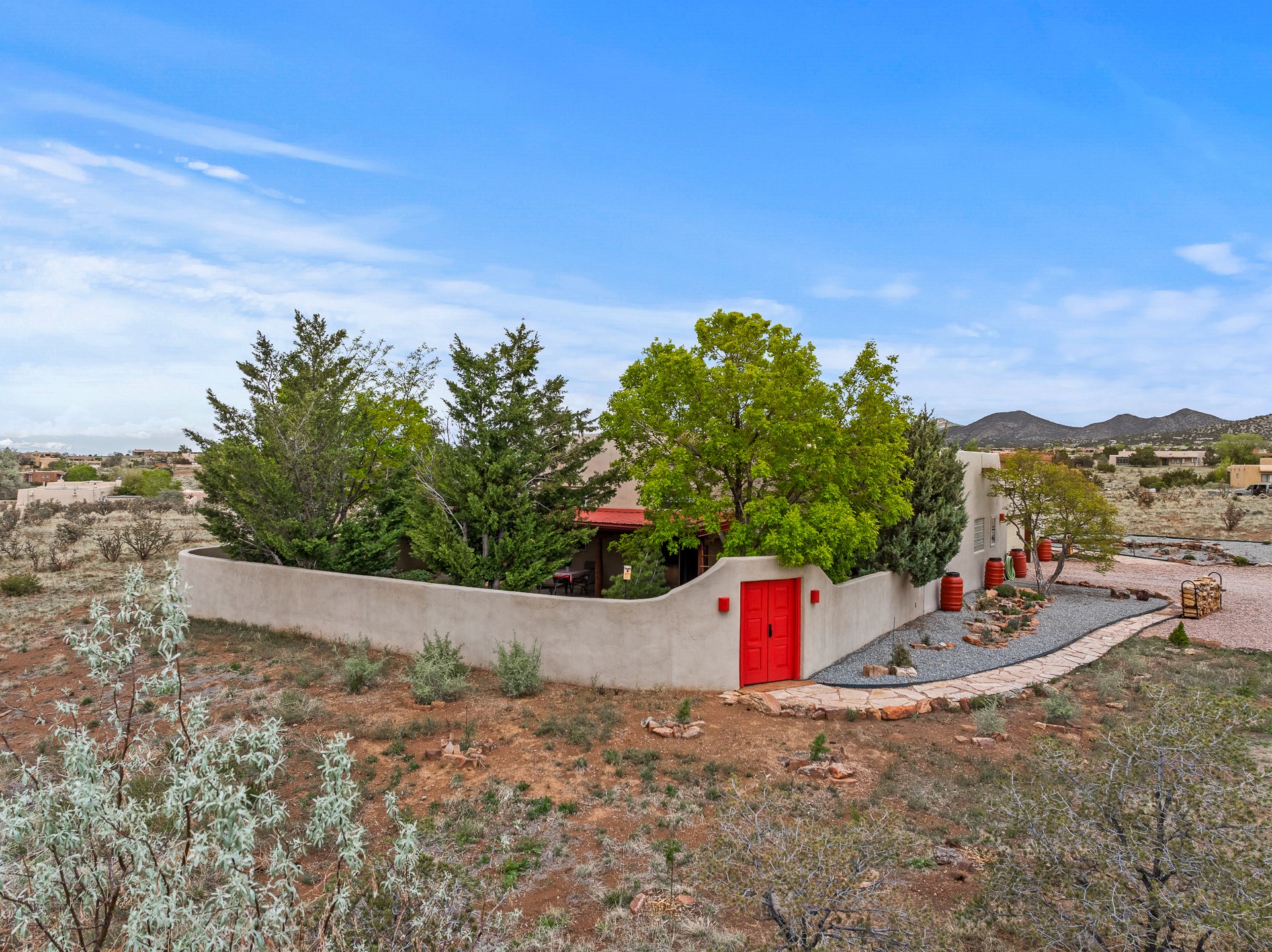 In the heart of Eldorado, where timeless Santa Fe style meets curated modern living, this 3-bedroom, 2-bath residence unfolds across 2,230 square feet of refined space. Every detail is intentional: from the artisanal nichos and exposed vigas to the soaring ceilings and the play of natural light through perfectly placed skylights. The newly reimagined kitchen, sleek yet warm, becomes the centerpiece -- a space where form meets function in perfect harmony.A flexible room invites transformation, whether as a sophisticated home office or a serene study, while the intimate art studio offers a private escape for creative expression. Recent additions, including mini-split air conditioning systems, ensure year-round comfort without compromising style. Surrounded by 1.32 acres of impeccably landscaped grounds and walled courtyards, the home invites indoor-outdoor living, blending privacy with stunning views.Poised gracefully along Avenida Eldorado, with effortless access to US 285, Santa Fe, and the shopping and dining at the Agora and La Tienda centers, this home isn't just a place -- it's a statement, a lifestyle, a canvas waiting to be lived in.