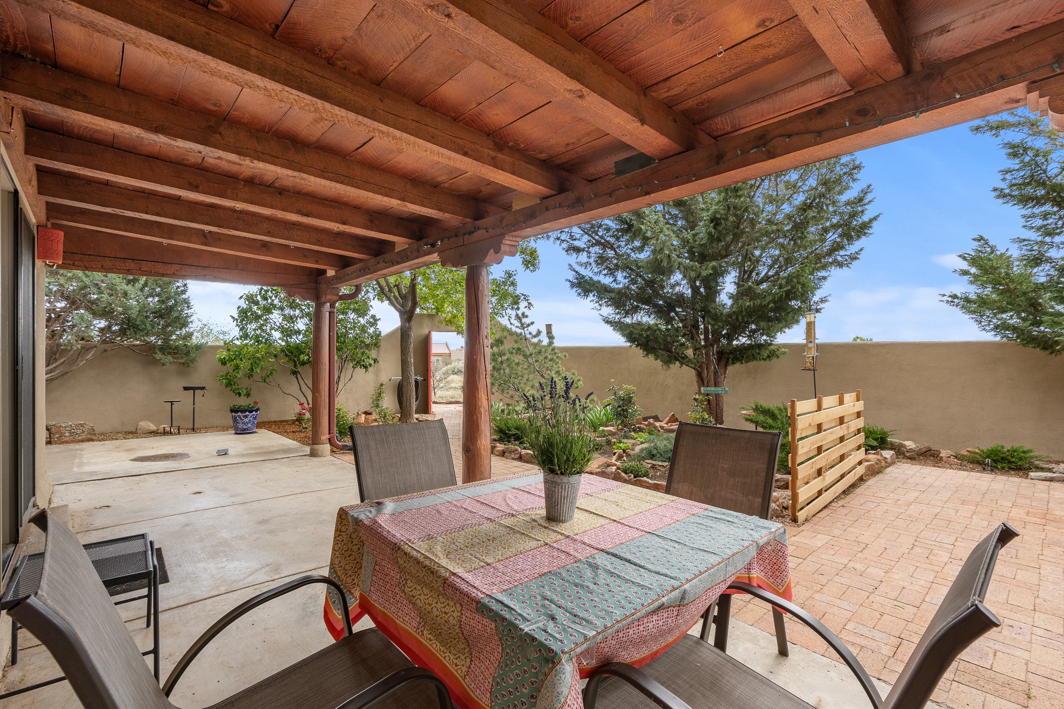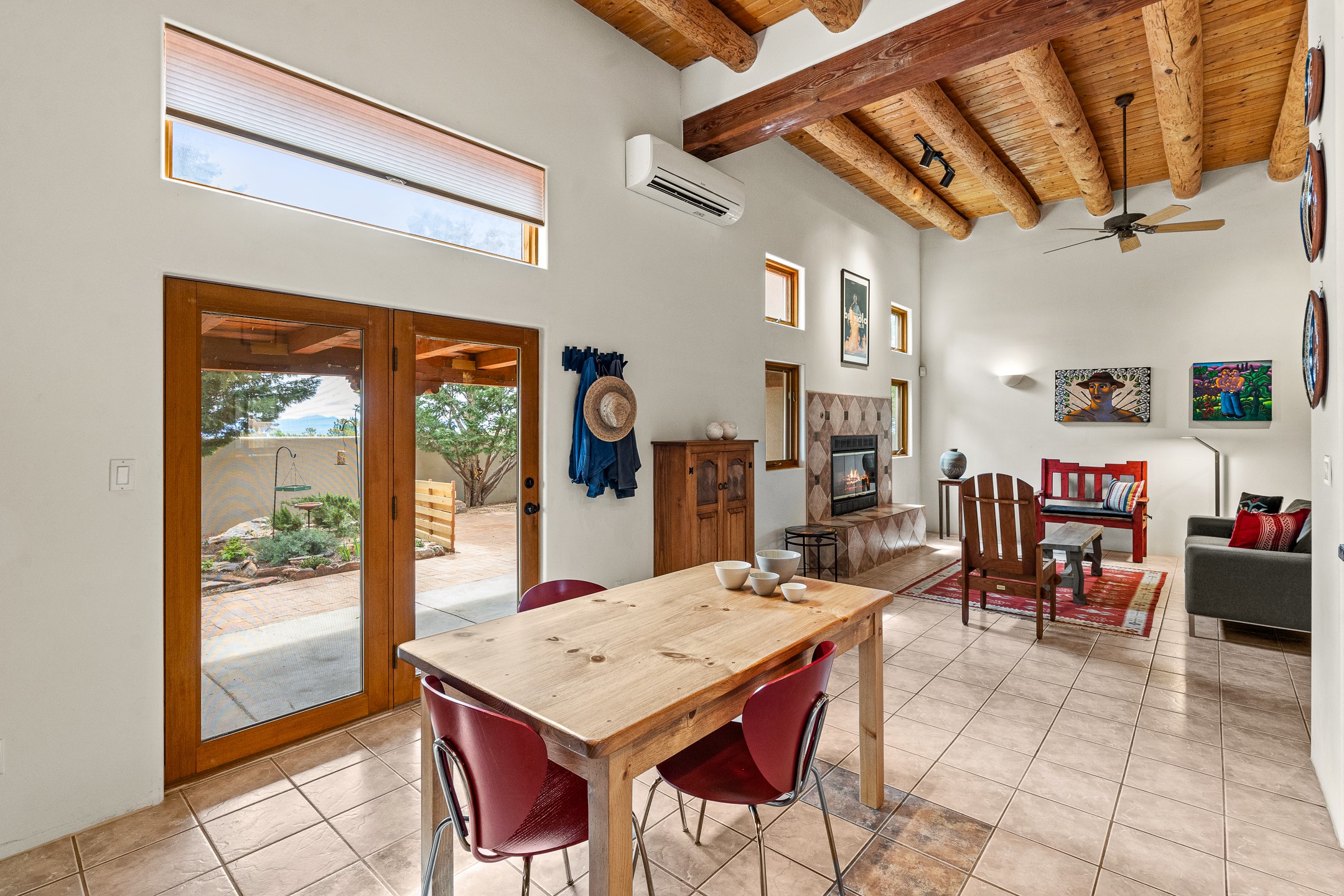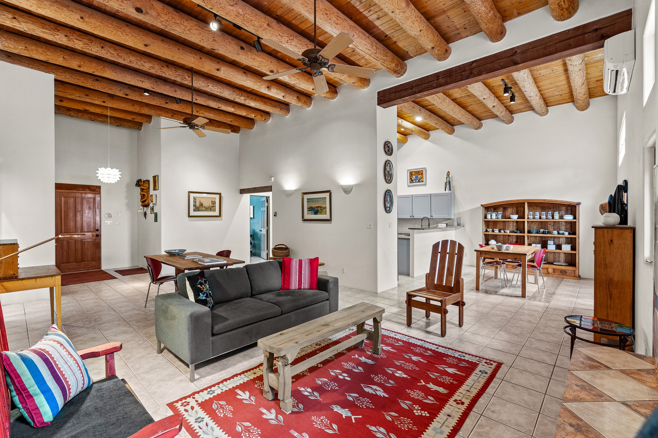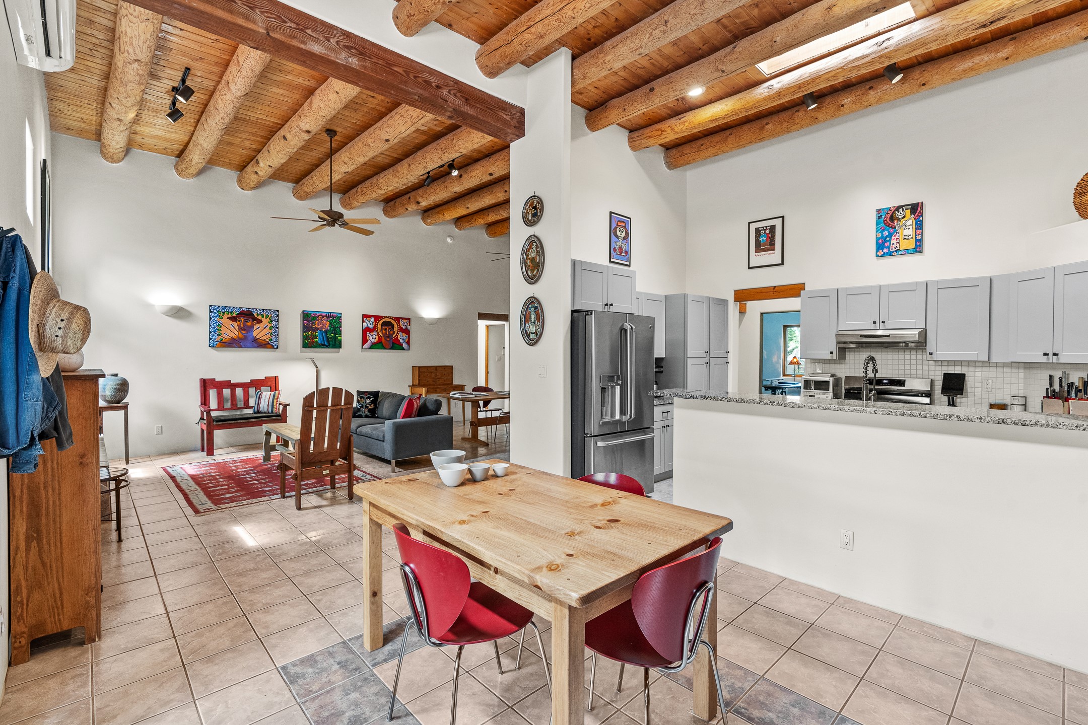 In the heart of Eldorado, where timeless Santa Fe style meets curated modern living, this 3-bedroom, 2-bath residence unfolds across 2,230 square feet of refined space. Every detail is intentional: from the artisanal nichos and exposed vigas to the soaring ceilings and the play of natural light through perfectly placed skylights. The newly reimagined kitchen, sleek yet warm, becomes the centerpiece -- a space where form meets function in perfect harmony.A flexible room invites transformation, whether as a sophisticated home office or a serene study, while the intimate art studio offers a private escape for creative expression. Recent additions, including mini-split air conditioning systems, ensure year-round comfort without compromising style. Surrounded by 1.32 acres of impeccably landscaped grounds and walled courtyards, the home invites indoor-outdoor living, blending privacy with stunning views.Poised gracefully along Avenida Eldorado, with effortless access to US 285, Santa Fe, and the shopping and dining at the Agora and La Tienda centers, this home isn't just a place -- it's a statement, a lifestyle, a canvas waiting to be lived in.