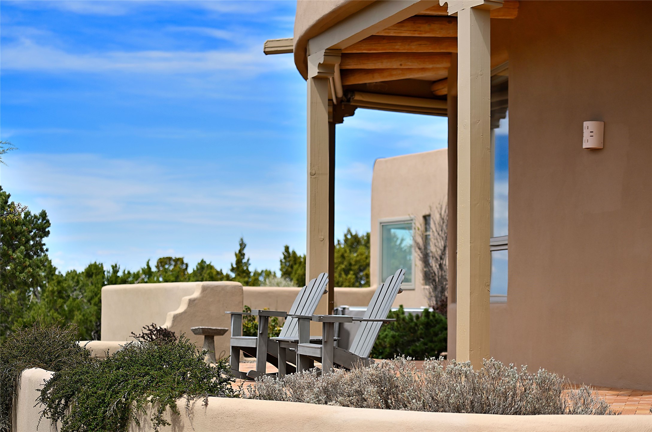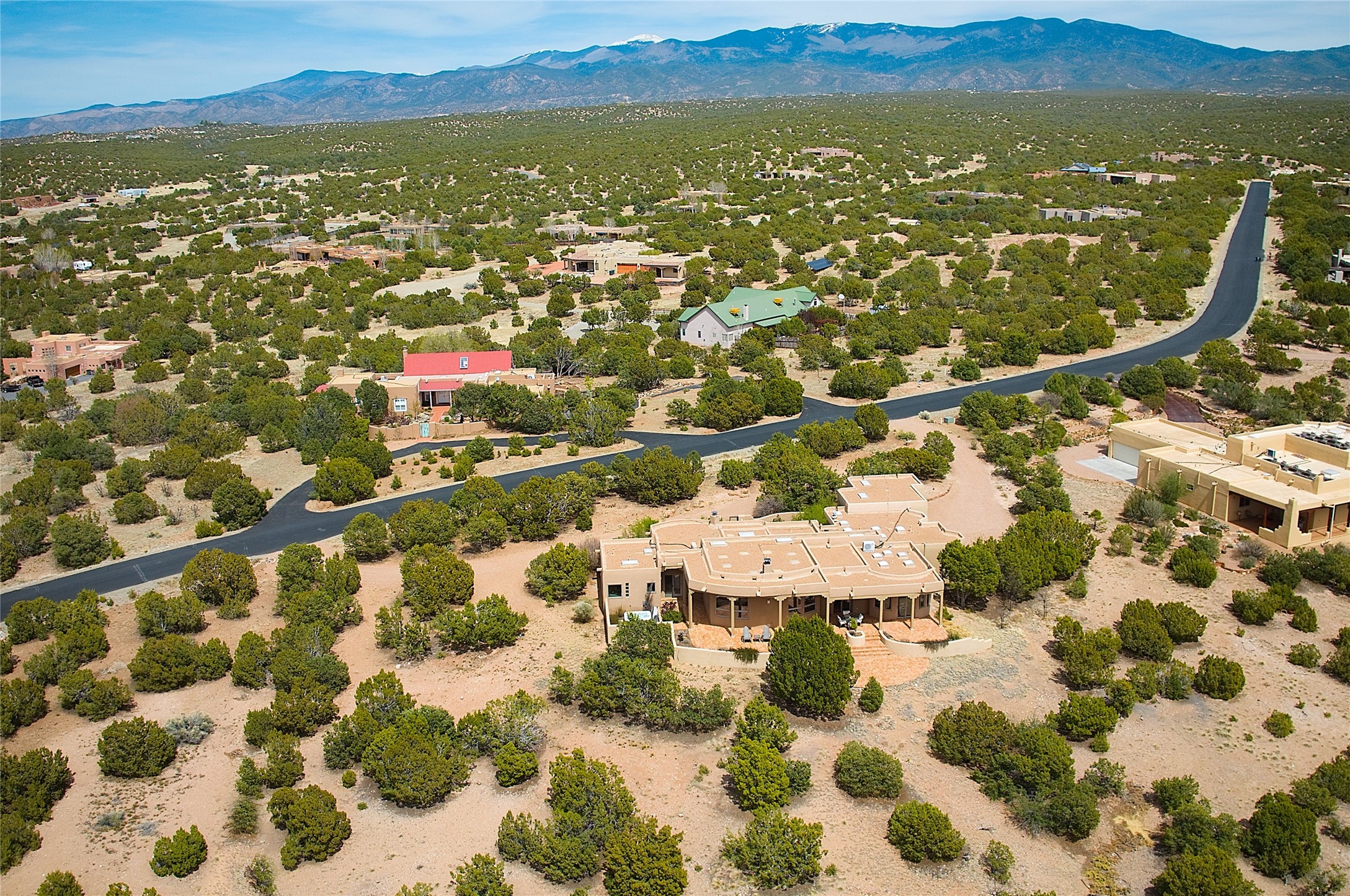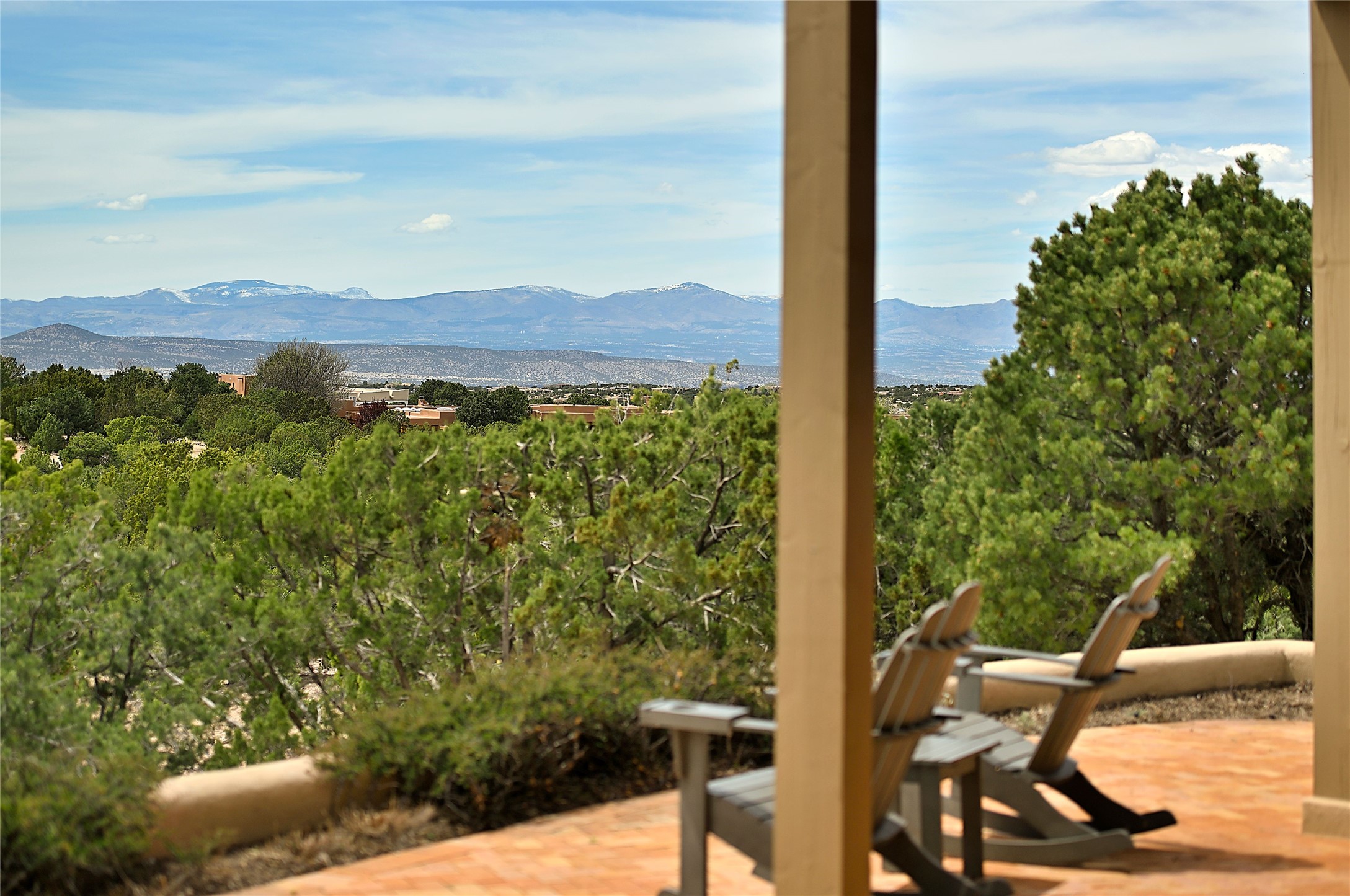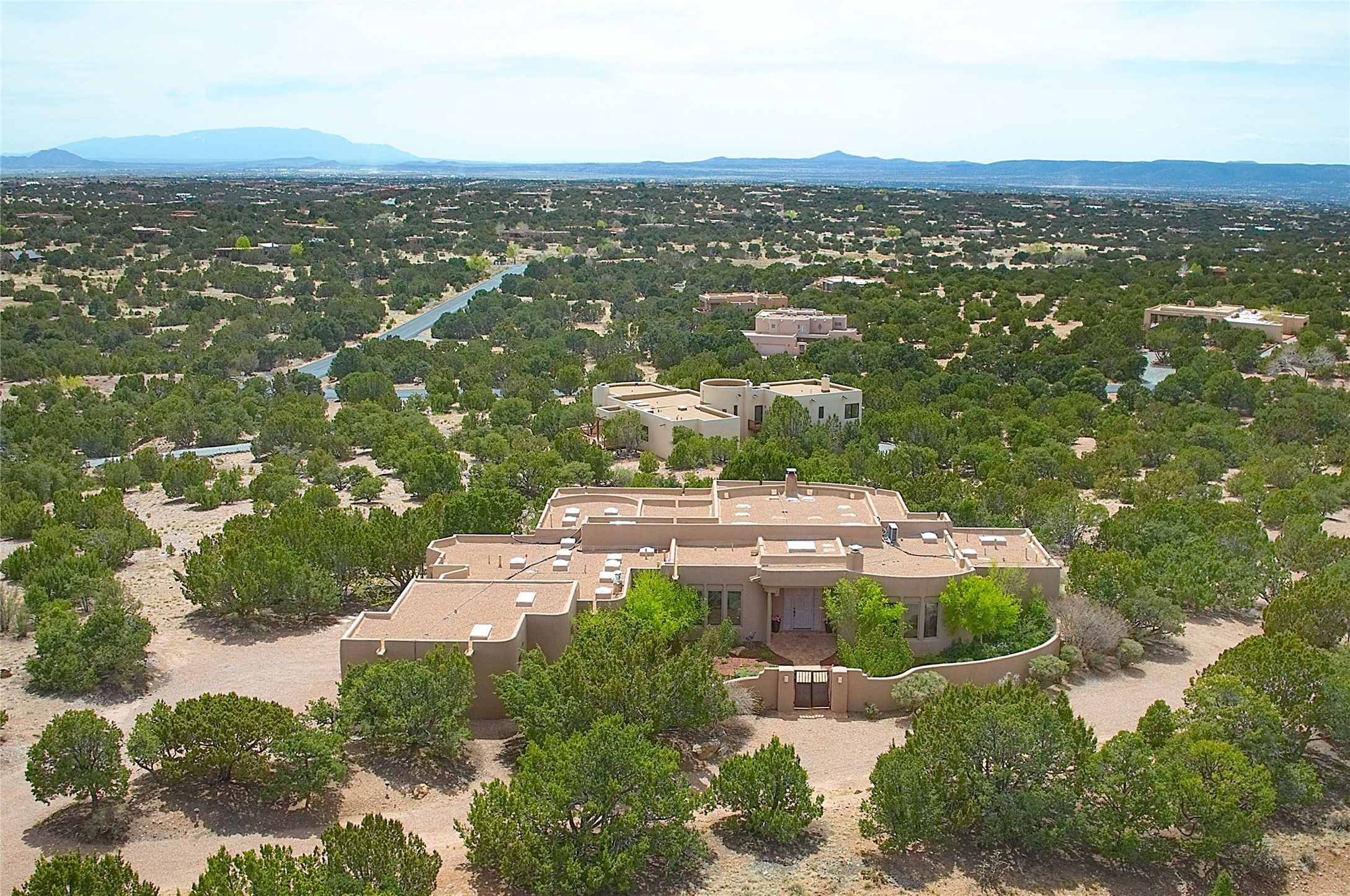 SIMPLY THE BEST VIEWS! Like being in your own private IMAX theater at sunset and on starry, starry nights! Vista Sandia means a 180 degree gigantic, overlooking viewscape featuring the Sandia mountains 50 miles south, and Sangre and Jemez views to the east and west; you can even watch 4th of July fireworks in Santa Fe and Los Alamos from the portal! Inside, simply sophisticated luxury awaits, an oversized great room with a high ceiling and extra large windows sited to take advantage of the views from the entry foyer stops visitors in their tracks. Plastered thick and round pumice-crete walls surround and lead to long, tall hallways to a well separated large owner's suite one way, and to the dining room and kitchen the other way. Santa Fe style with all the southwest charm, light and airy, soft and grand. Guest rooms at the far end provide privacy and distance. And a den off the foyer completes the functional floor plan all on one level. A two car attached garage up a couple steps gives easy access. In floor radiant heating is complemented by mini-splits. Pex tubing and on demand, high efficiency Navien tankless boiler system. All on a 1.82 acre lot in La Mariposa, an active and welcoming HOA which is a short drive to town, yet far enough away for privacy and serenity with easy access to the La Tierra trails. Close to the Club at Las Campanas and a short drive to the Plaza or the Santa Fe Regional Airport. Diligently maintained and presale inspected, this sanctuary is ready to enjoy. Watch the video, take the virtual tour, but you must see in person to believe.
