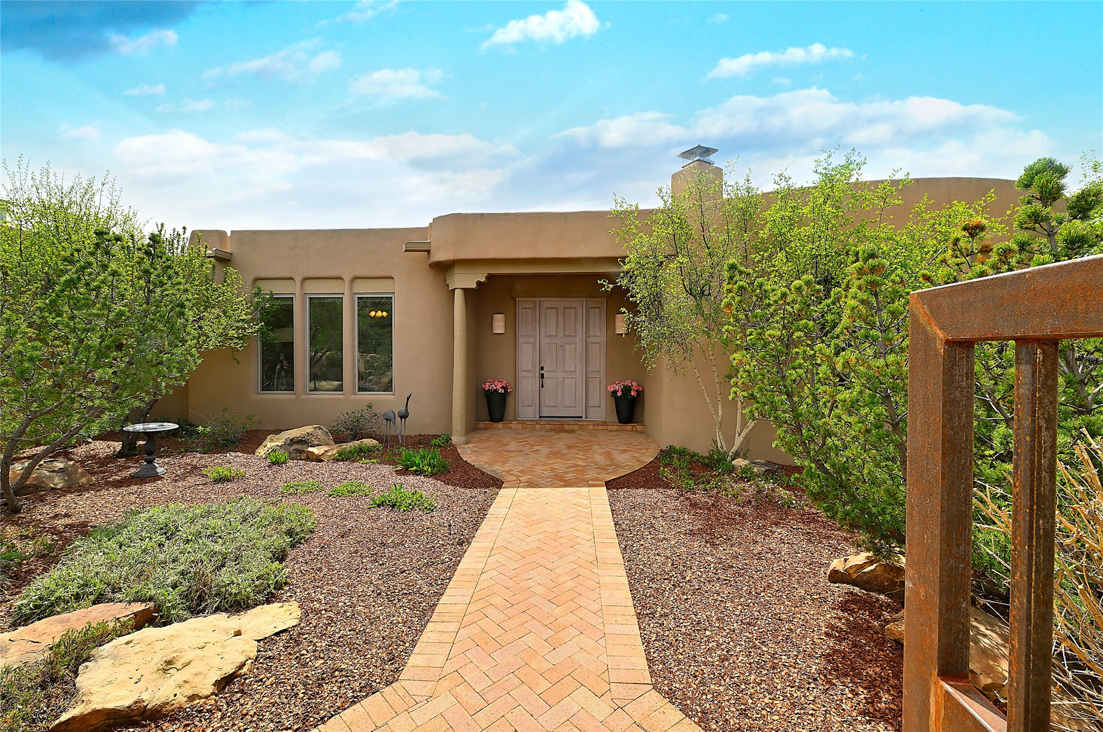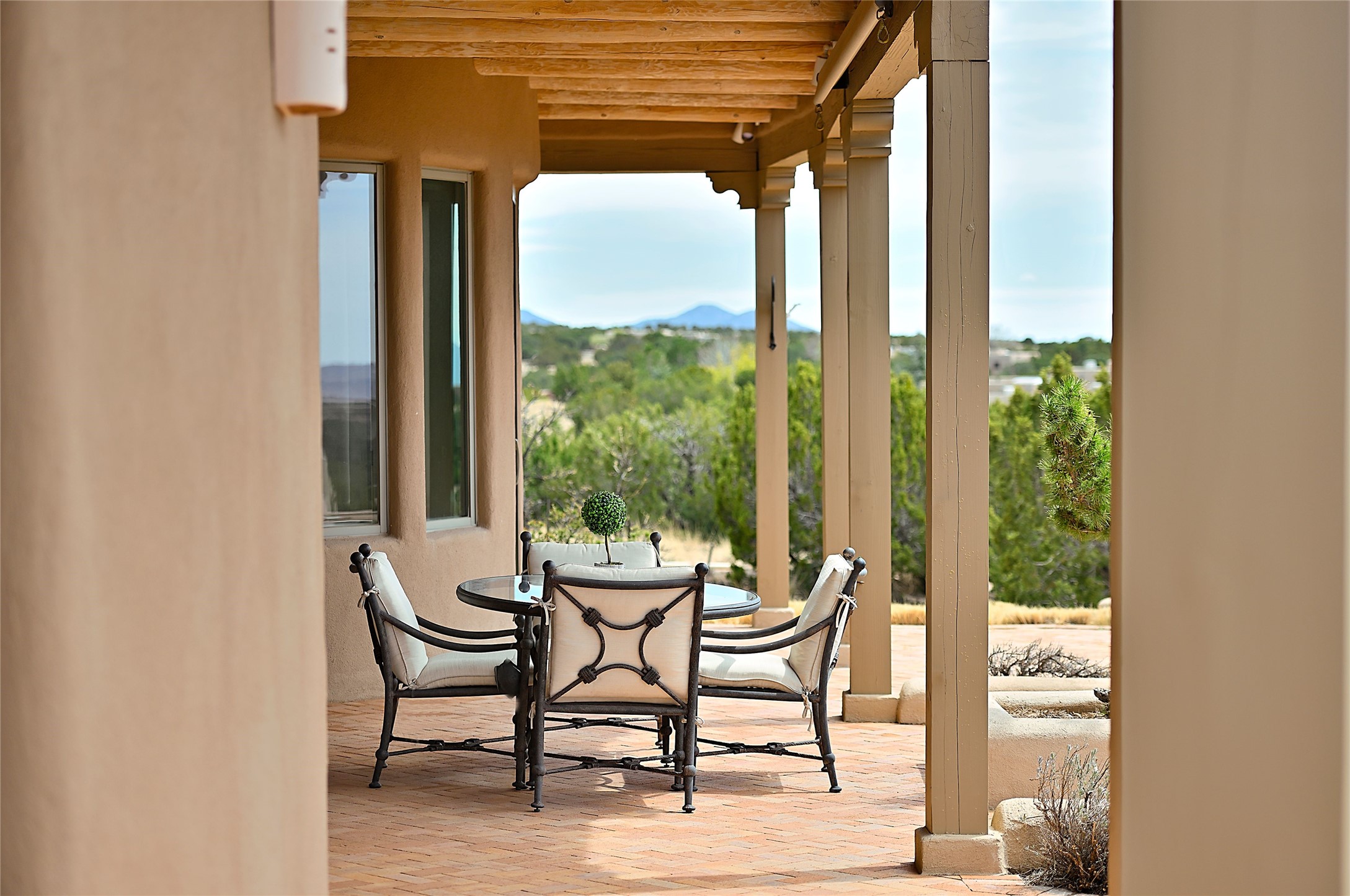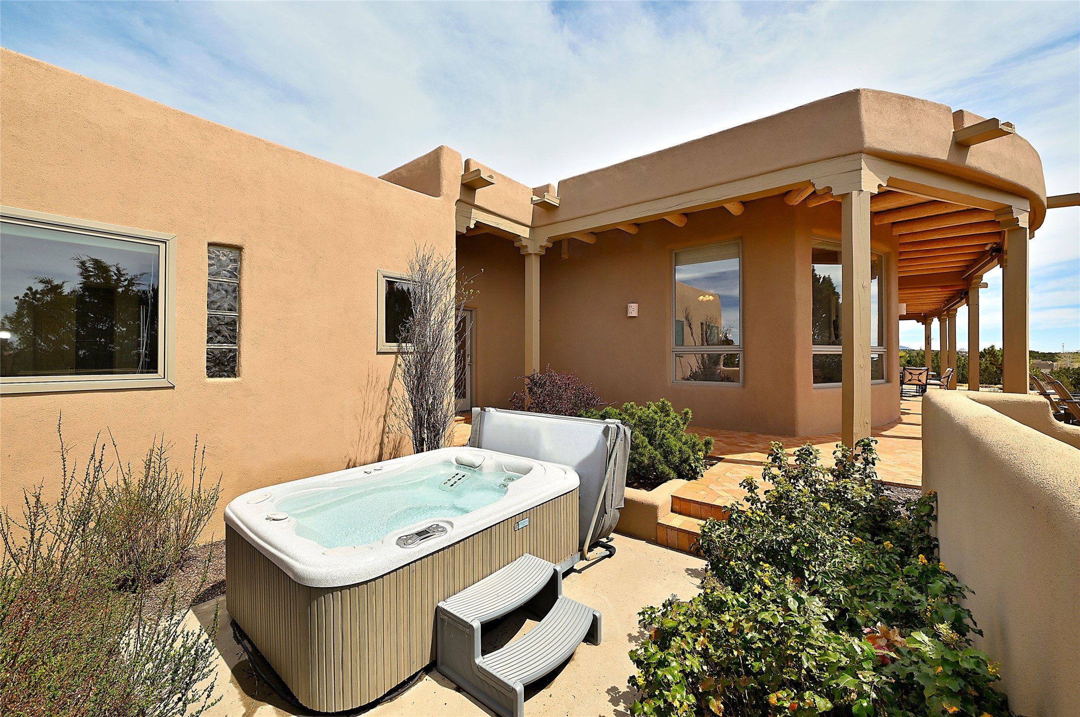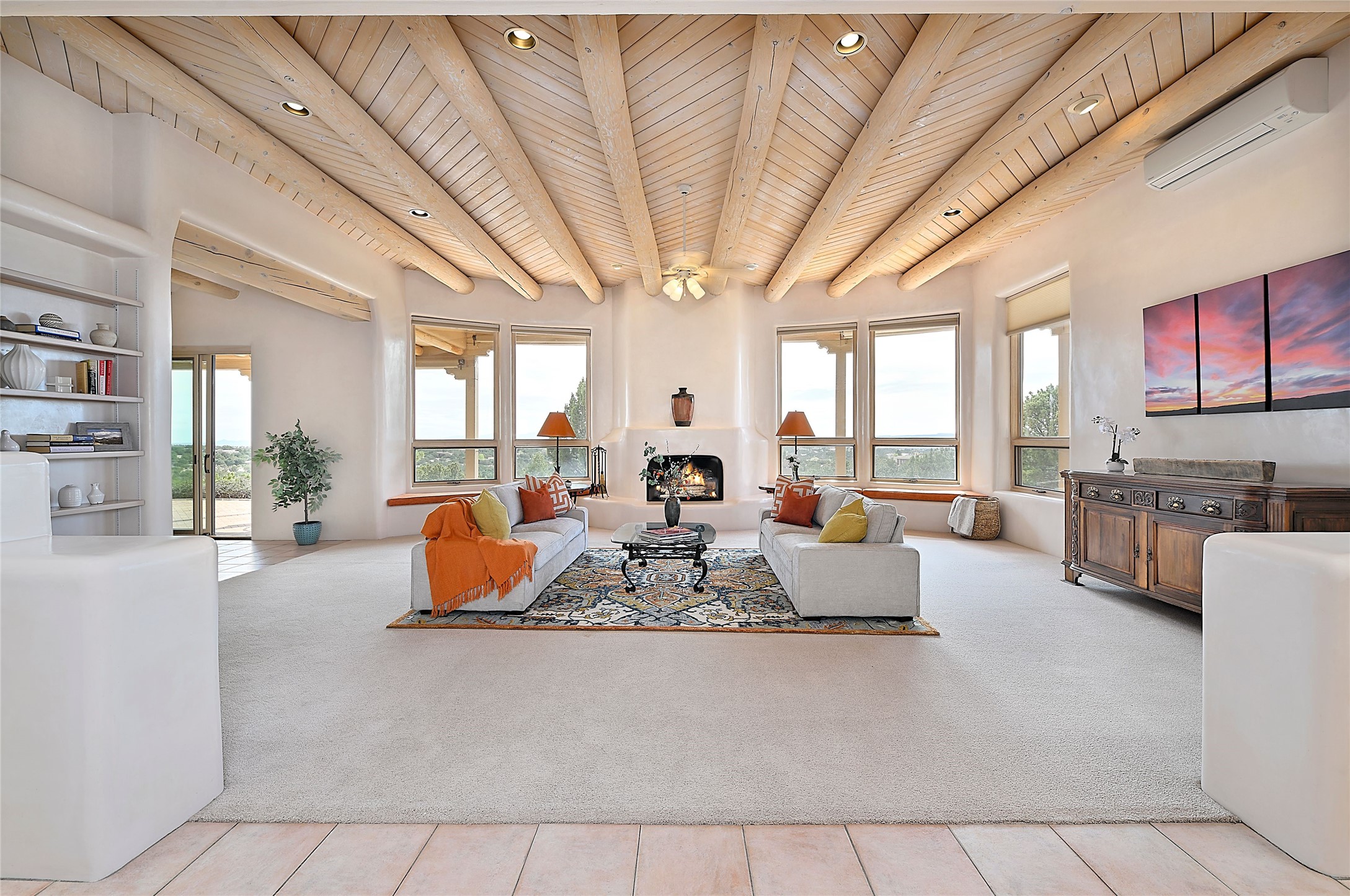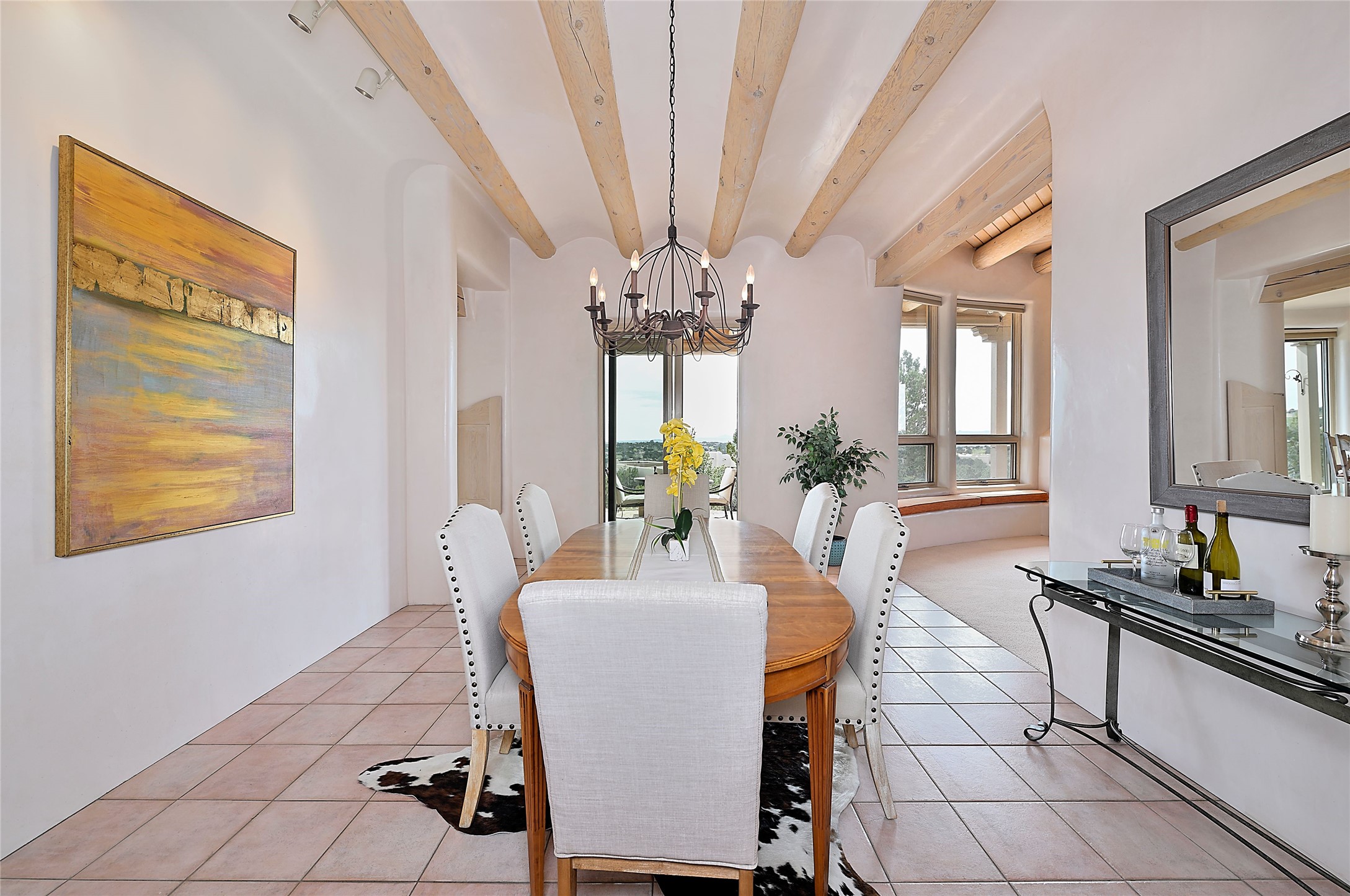 SIMPLY THE BEST VIEWS! Like being in your own private IMAX theater at sunset and on starry, starry nights! Vista Sandia means a 180 degree gigantic, overlooking viewscape featuring the Sandia mountains 50 miles south, and Sangre and Jemez views to the east and west; you can even watch 4th of July fireworks in Santa Fe and Los Alamos from the portal! Inside, simply sophisticated luxury awaits, an oversized great room with a high ceiling and extra large windows sited to take advantage of the views from the entry foyer stops visitors in their tracks. Plastered thick and round pumice-crete walls surround and lead to long, tall hallways to a well separated large owner's suite one way, and to the dining room and kitchen the other way. Santa Fe style with all the southwest charm, light and airy, soft and grand. Guest rooms at the far end provide privacy and distance. And a den off the foyer completes the functional floor plan all on one level. A two car attached garage up a couple steps gives easy access. In floor radiant heating is complemented by mini-splits. Pex tubing and on demand, high efficiency Navien tankless boiler system. All on a 1.82 acre lot in La Mariposa, an active and welcoming HOA which is a short drive to town, yet far enough away for privacy and serenity with easy access to the La Tierra trails. Close to the Club at Las Campanas and a short drive to the Plaza or the Santa Fe Regional Airport. Diligently maintained and presale inspected, this sanctuary is ready to enjoy. Watch the video, take the virtual tour, but you must see in person to believe.
