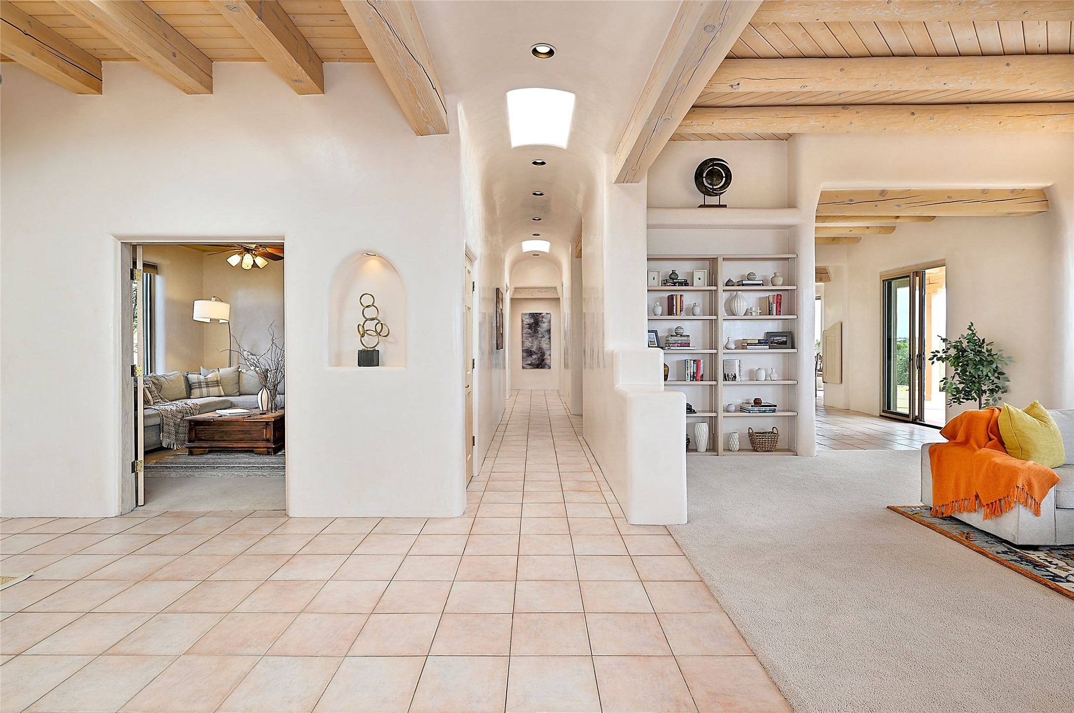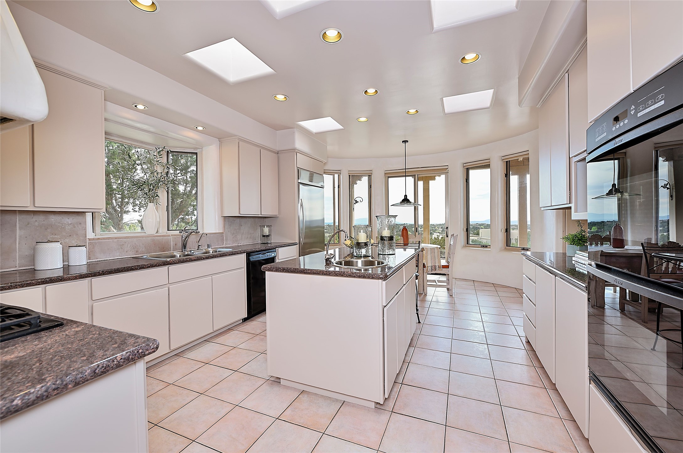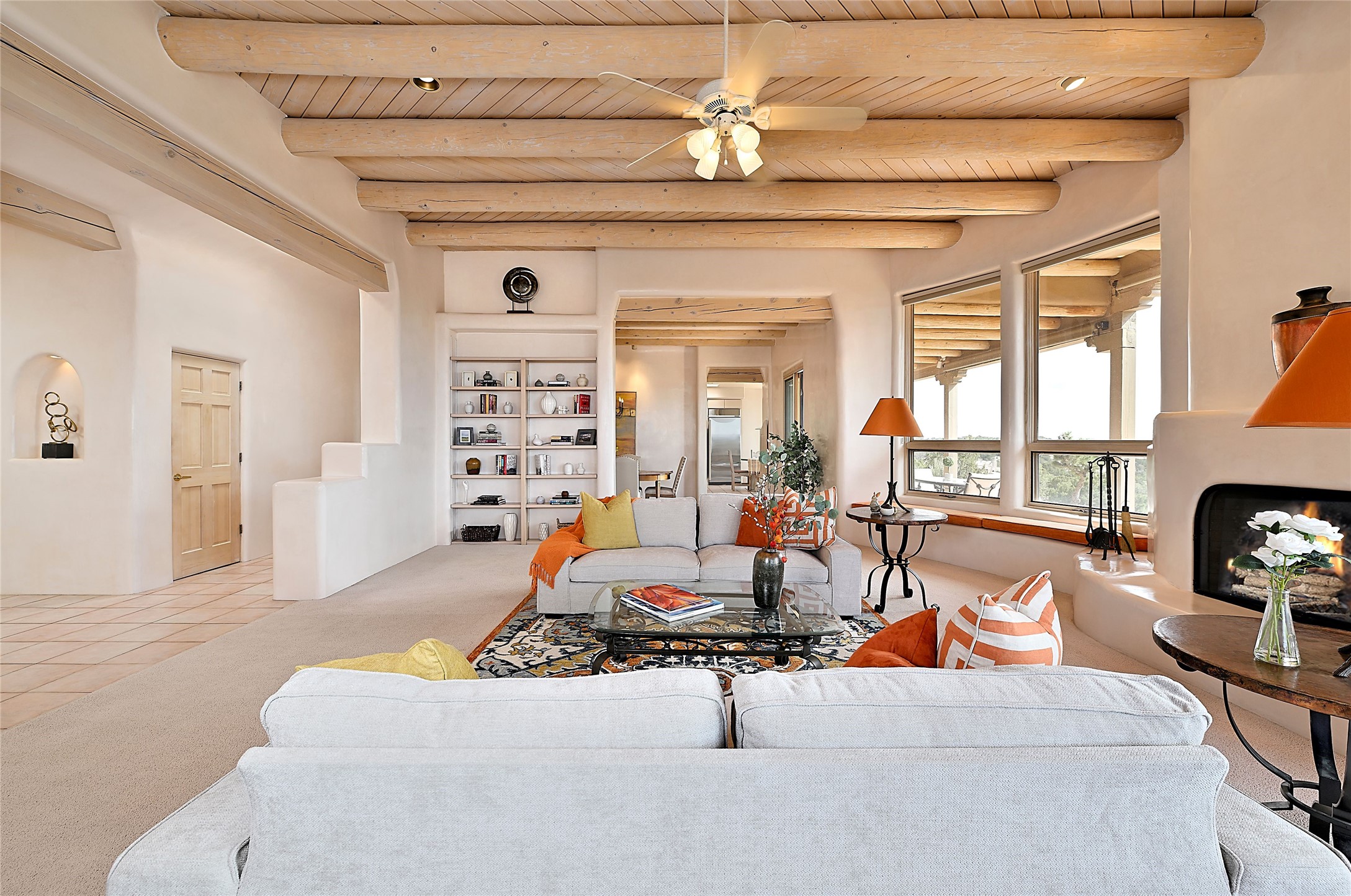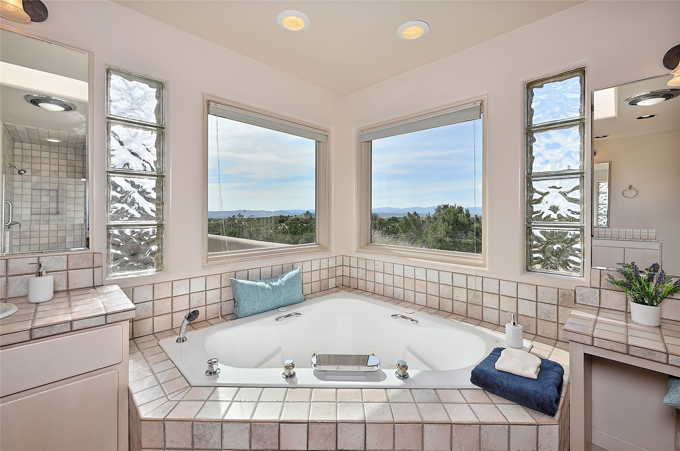 SIMPLY THE BEST VIEWS! Like being in your own private IMAX theater at sunset and on starry, starry nights! Vista Sandia means a 180 degree gigantic, overlooking viewscape featuring the Sandia mountains 50 miles south, and Sangre and Jemez views to the east and west; you can even watch 4th of July fireworks in Santa Fe and Los Alamos from the portal! Inside, simply sophisticated luxury awaits, an oversized great room with a high ceiling and extra large windows sited to take advantage of the views from the entry foyer stops visitors in their tracks. Plastered thick and round pumice-crete walls surround and lead to long, tall hallways to a well separated large owner's suite one way, and to the dining room and kitchen the other way. Santa Fe style with all the southwest charm, light and airy, soft and grand. Guest rooms at the far end provide privacy and distance. And a den off the foyer completes the functional floor plan all on one level. A two car attached garage up a couple steps gives easy access. In floor radiant heating is complemented by mini-splits. Pex tubing and on demand, high efficiency Navien tankless boiler system. All on a 1.82 acre lot in La Mariposa, an active and welcoming HOA which is a short drive to town, yet far enough away for privacy and serenity with easy access to the La Tierra trails. Close to the Club at Las Campanas and a short drive to the Plaza or the Santa Fe Regional Airport. Diligently maintained and presale inspected, this sanctuary is ready to enjoy. Watch the video, take the virtual tour, but you must see in person to believe.