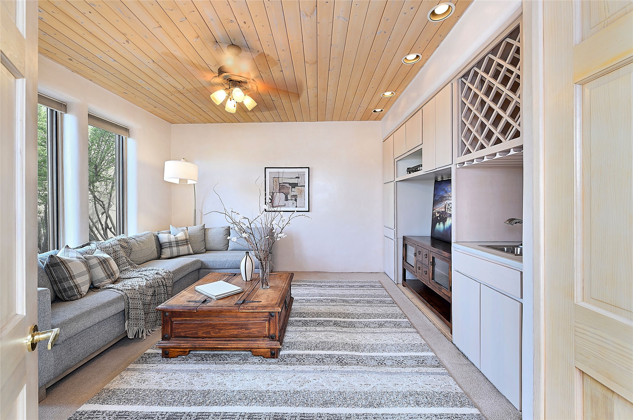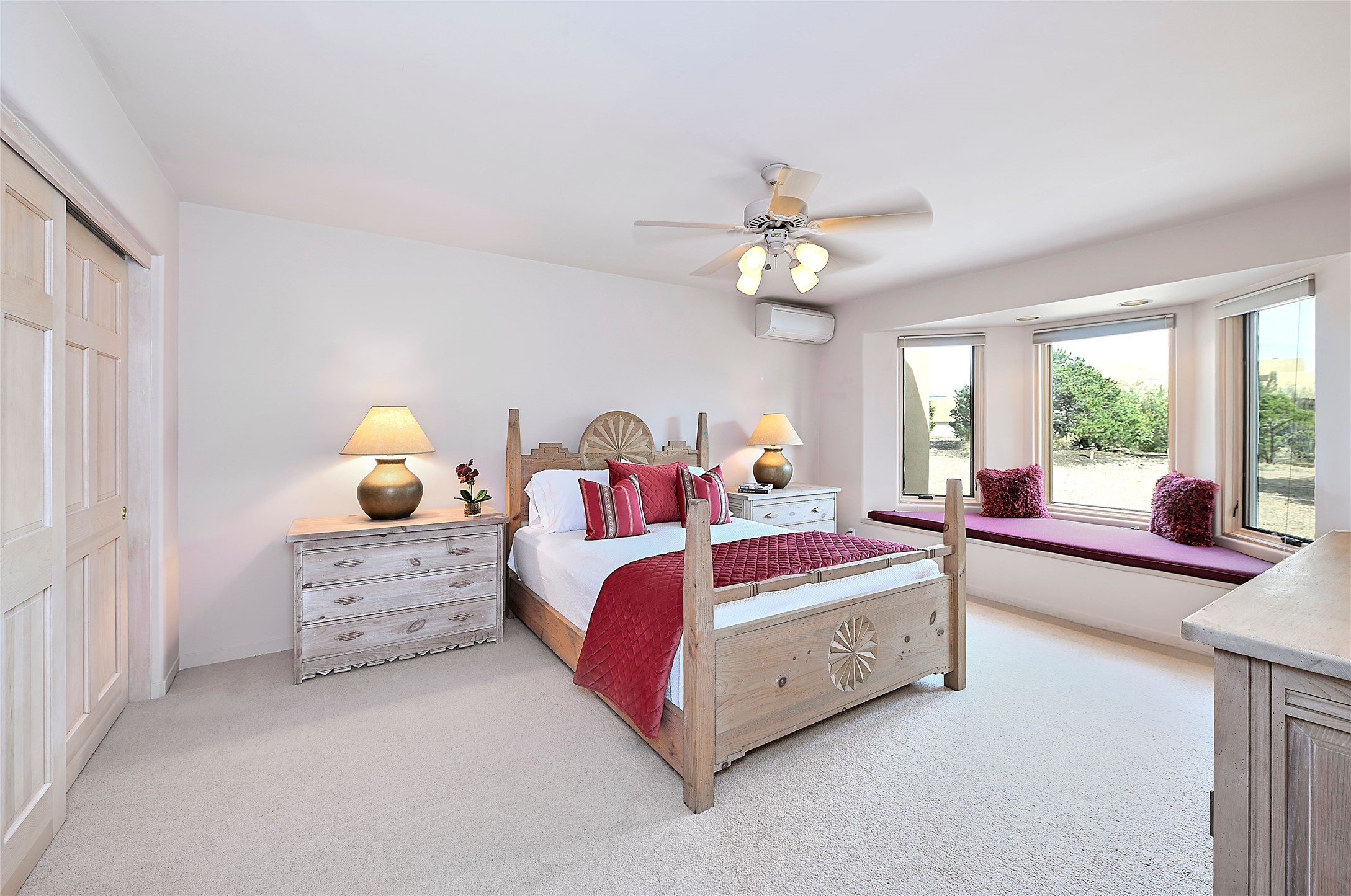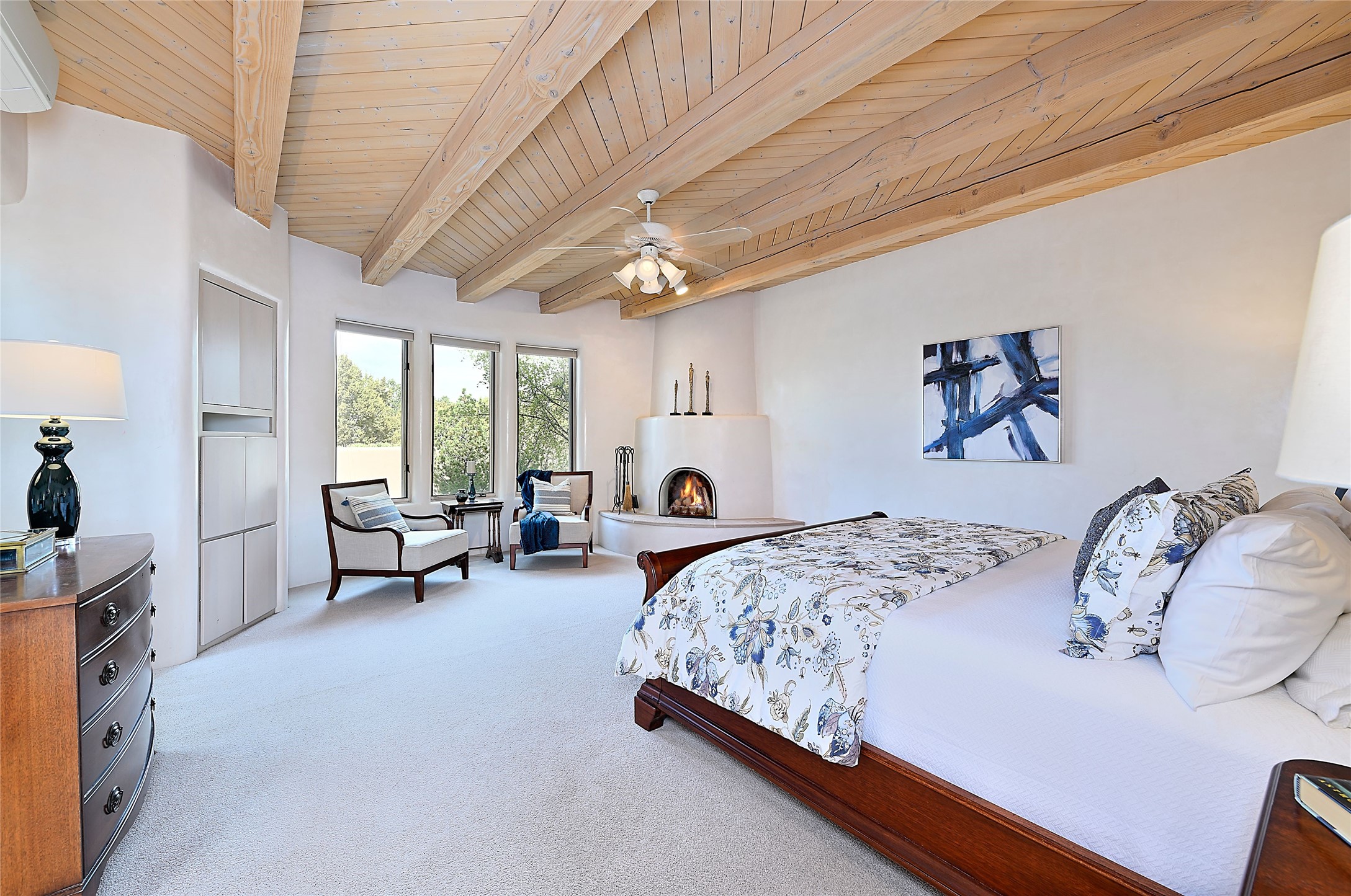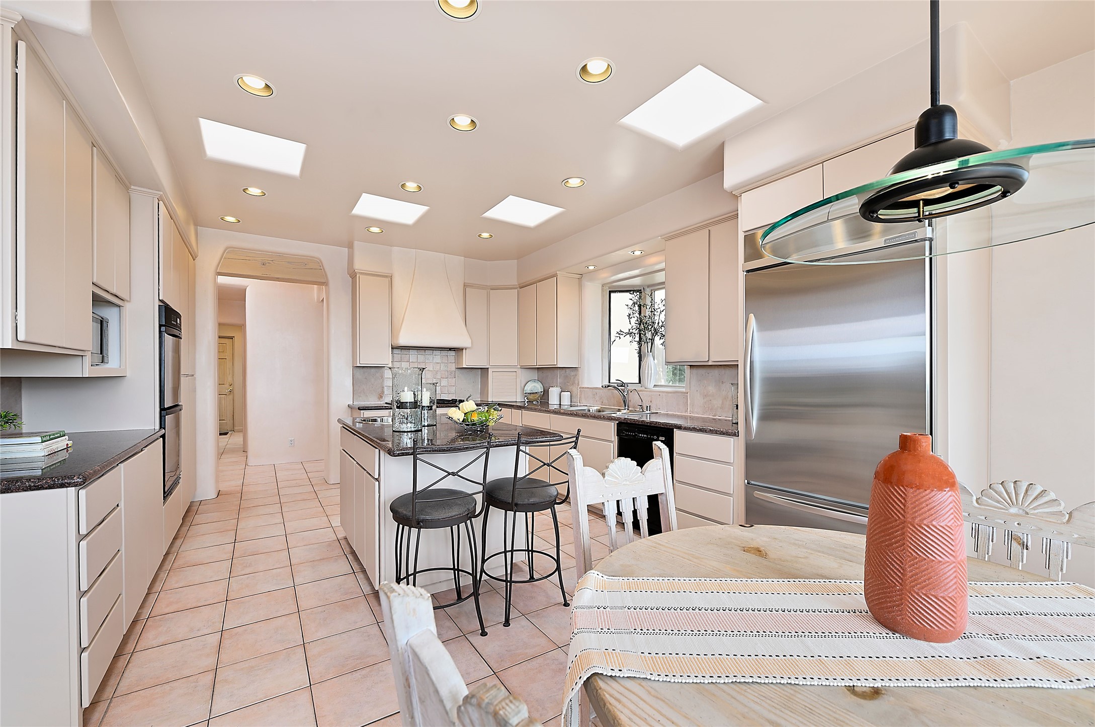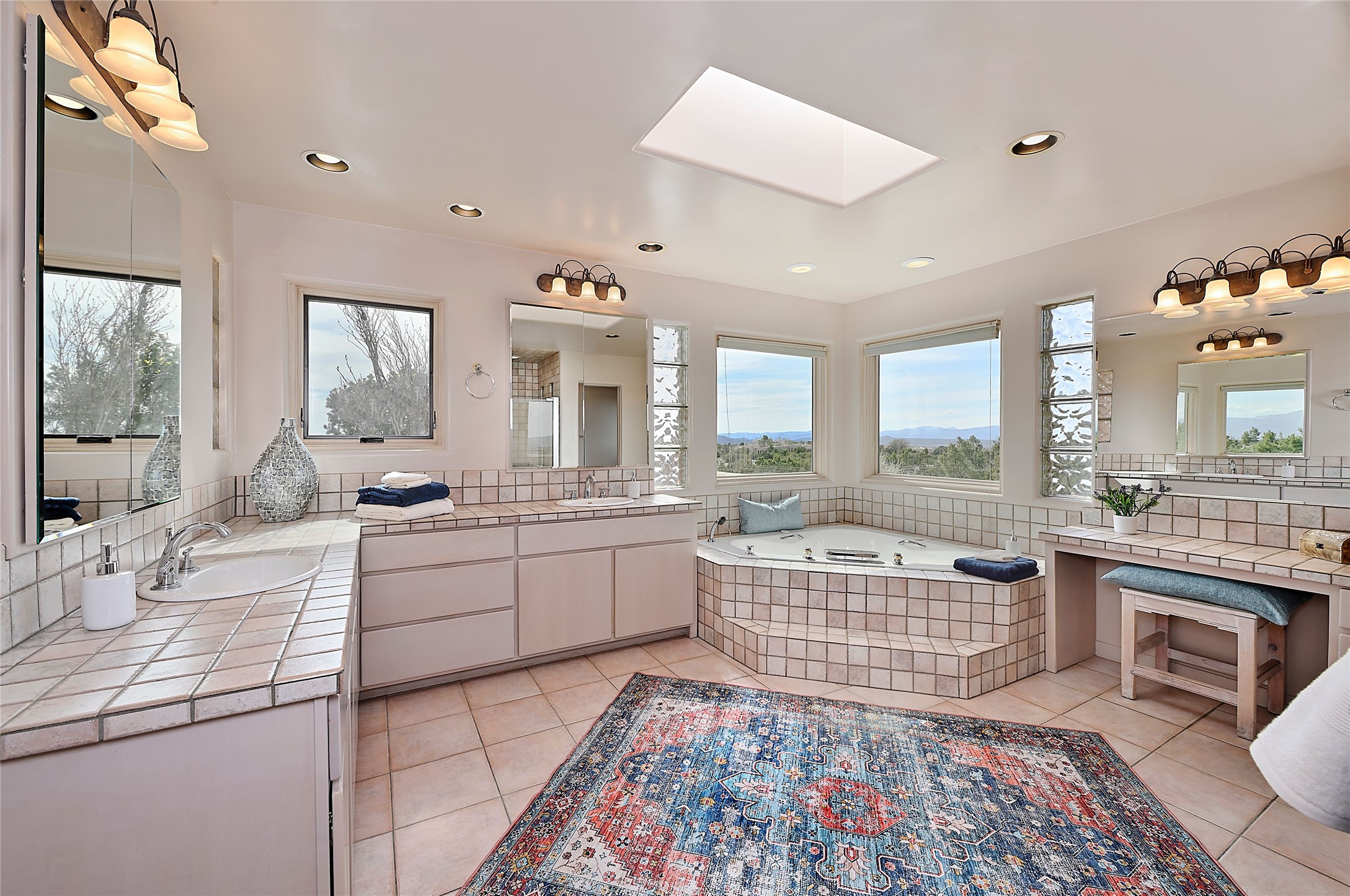 SIMPLY THE BEST VIEWS! Like being in your own private IMAX theater at sunset and on starry, starry nights! Vista Sandia means a 180 degree gigantic, overlooking viewscape featuring the Sandia mountains 50 miles south, and Sangre and Jemez views to the east and west; you can even watch 4th of July fireworks in Santa Fe and Los Alamos from the portal! Inside, simply sophisticated luxury awaits, an oversized great room with a high ceiling and extra large windows sited to take advantage of the views from the entry foyer stops visitors in their tracks. Plastered thick and round pumice-crete walls surround and lead to long, tall hallways to a well separated large owner's suite one way, and to the dining room and kitchen the other way. Santa Fe style with all the southwest charm, light and airy, soft and grand. Guest rooms at the far end provide privacy and distance. And a den off the foyer completes the functional floor plan all on one level. A two car attached garage up a couple steps gives easy access. In floor radiant heating is complemented by mini-splits. Pex tubing and on demand, high efficiency Navien tankless boiler system. All on a 1.82 acre lot in La Mariposa, an active and welcoming HOA which is a short drive to town, yet far enough away for privacy and serenity with easy access to the La Tierra trails. Close to the Club at Las Campanas and a short drive to the Plaza or the Santa Fe Regional Airport. Diligently maintained and presale inspected, this sanctuary is ready to enjoy. Watch the video, take the virtual tour, but you must see in person to believe.